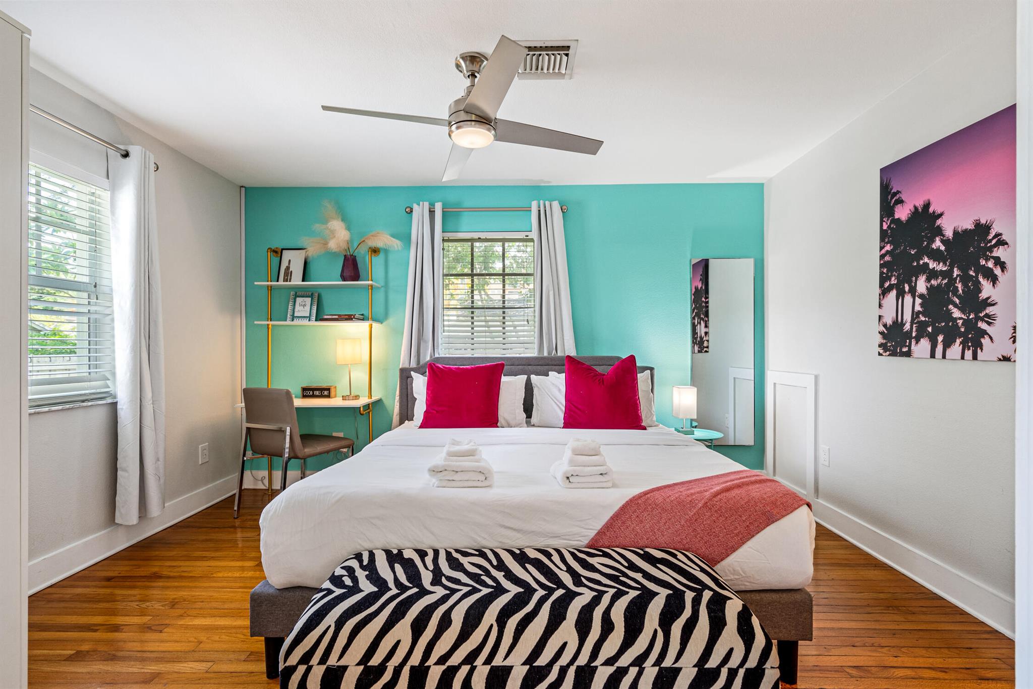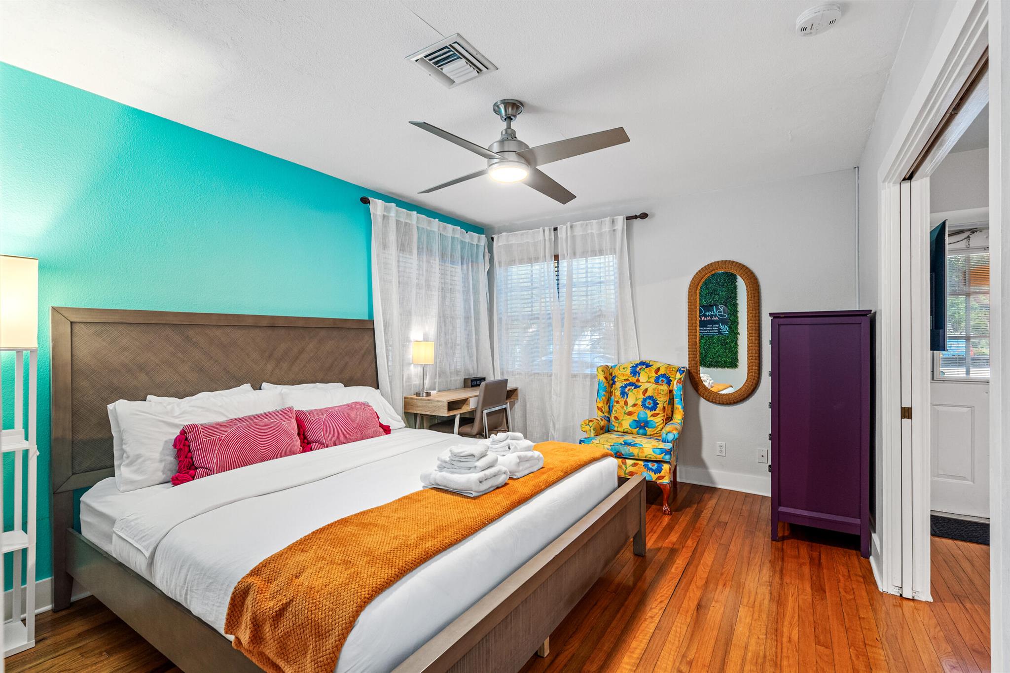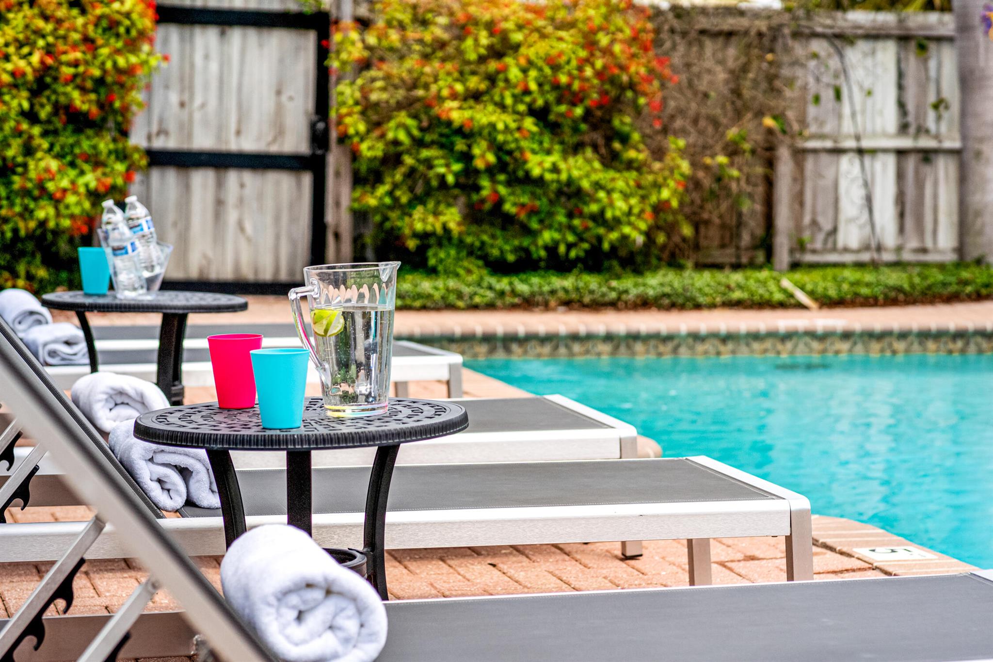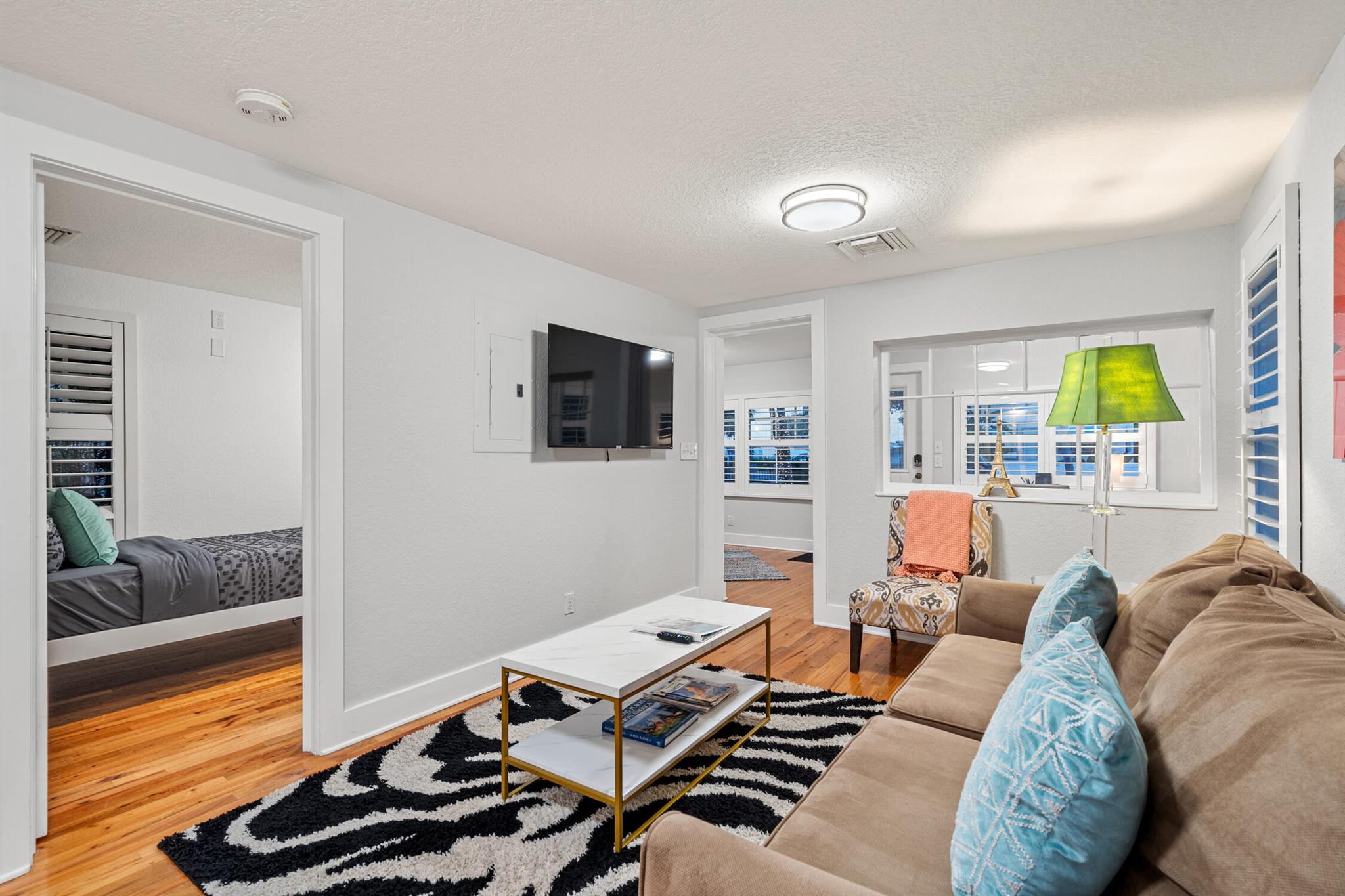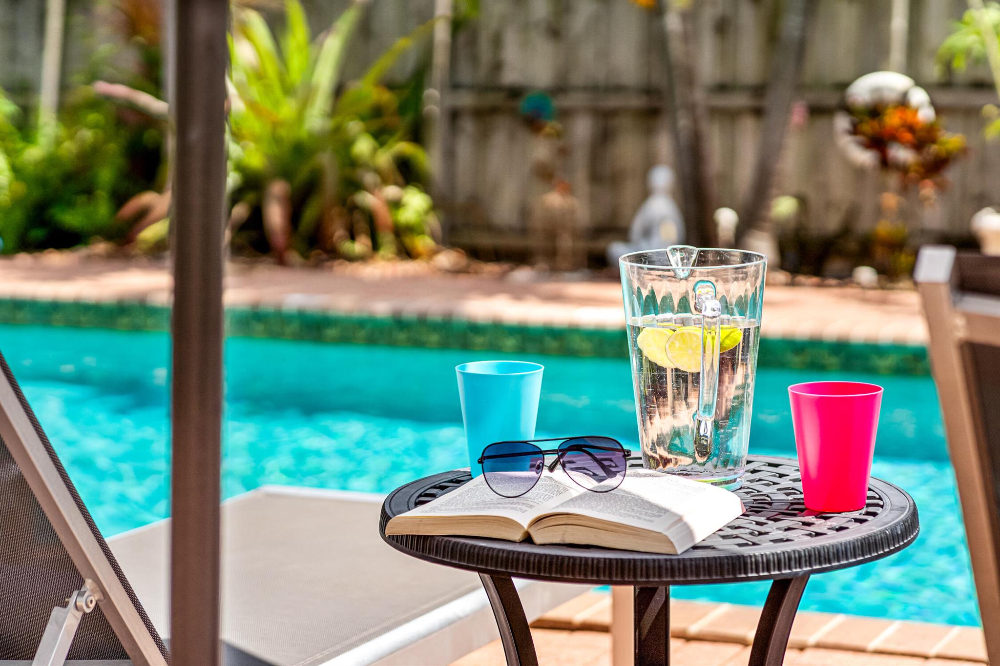 Bliss Villas is 3 building, 4-unit complex in the downtown Lake Worth Beach Entertainment District – steps from the shops and restaurants on Lucerne Ave. There is one 2 BD/1 BA and three 1 BD/1 BA, and units are centered around a large heated pool in a beautifully landscaped, completely private and nearly 12,000 sq ft fenced lot. The property is a turnkey asset – fully equipped and furnished – and is zoned Commercial allowing for multiple business and personal uses. All 3 buildings are concrete block with 2023 roofs, new central A/Cs, tankless water heaters, and washers/dryers! Features 8 off-street private spaces. There is a pool bath and air conditioned garage for storage. Superior location and infrastructure make this investment property exceptional.