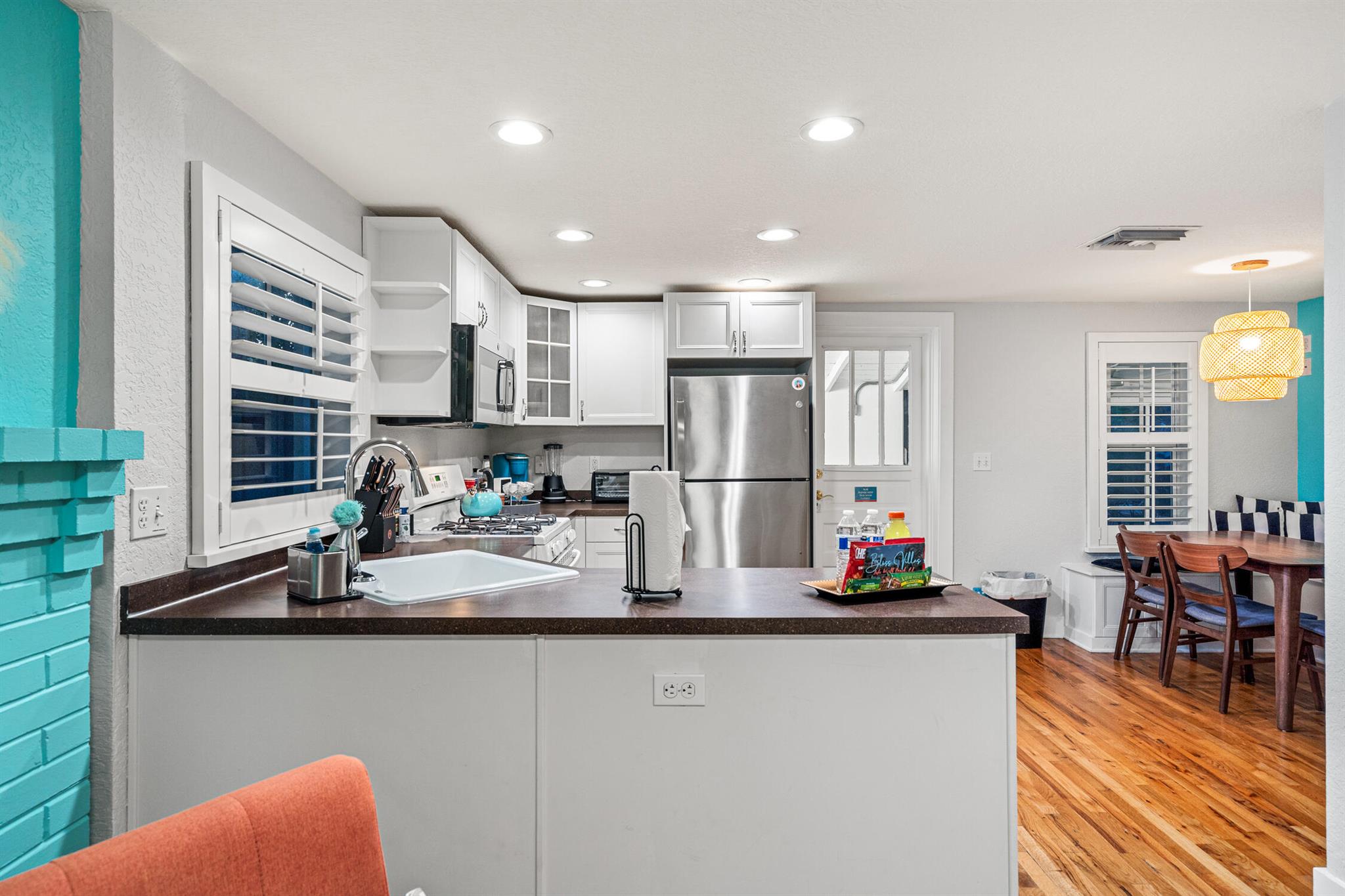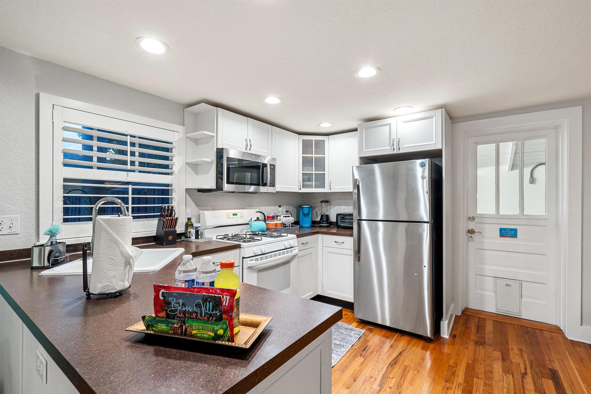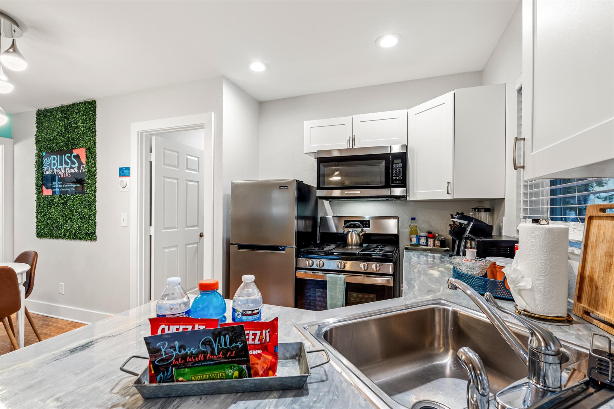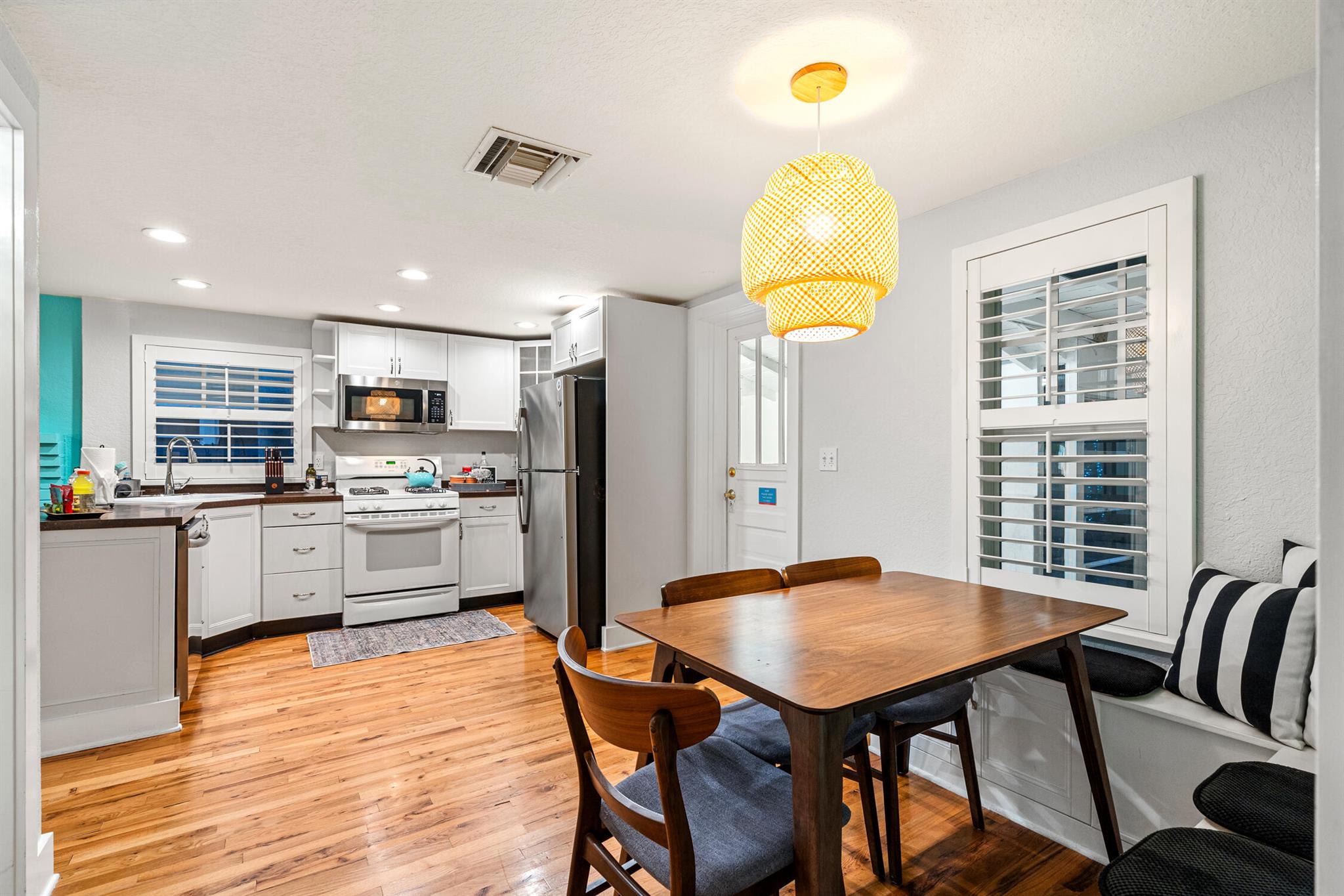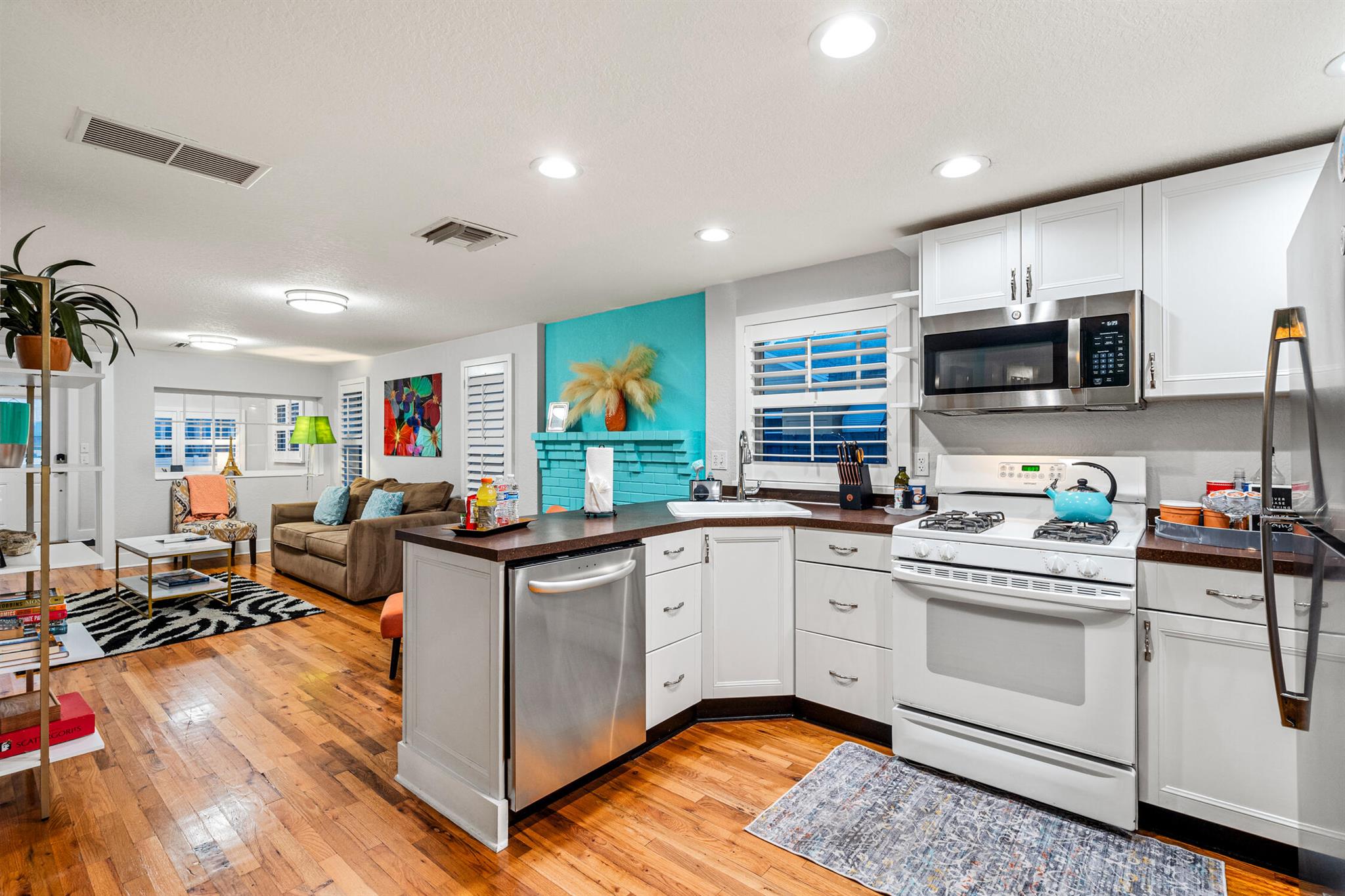 Bliss Villas is 3 building, 4-unit complex in the downtown Lake Worth Beach Entertainment District – steps from the shops and restaurants on Lucerne Ave. There is one 2 BD/1 BA and three 1 BD/1 BA, and units are centered around a large heated pool in a beautifully landscaped, completely private and nearly 12,000 sq ft fenced lot. The property is a turnkey asset – fully equipped and furnished – and is zoned Commercial allowing for multiple business and personal uses. All 3 buildings are concrete block with 2023 roofs, new central A/Cs, tankless water heaters, and washers/dryers! Features 8 off-street private spaces. There is a pool bath and air conditioned garage for storage. Superior location and infrastructure make this investment property exceptional.