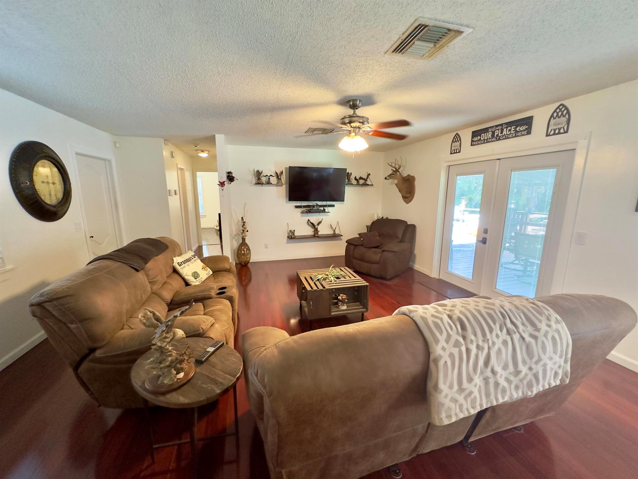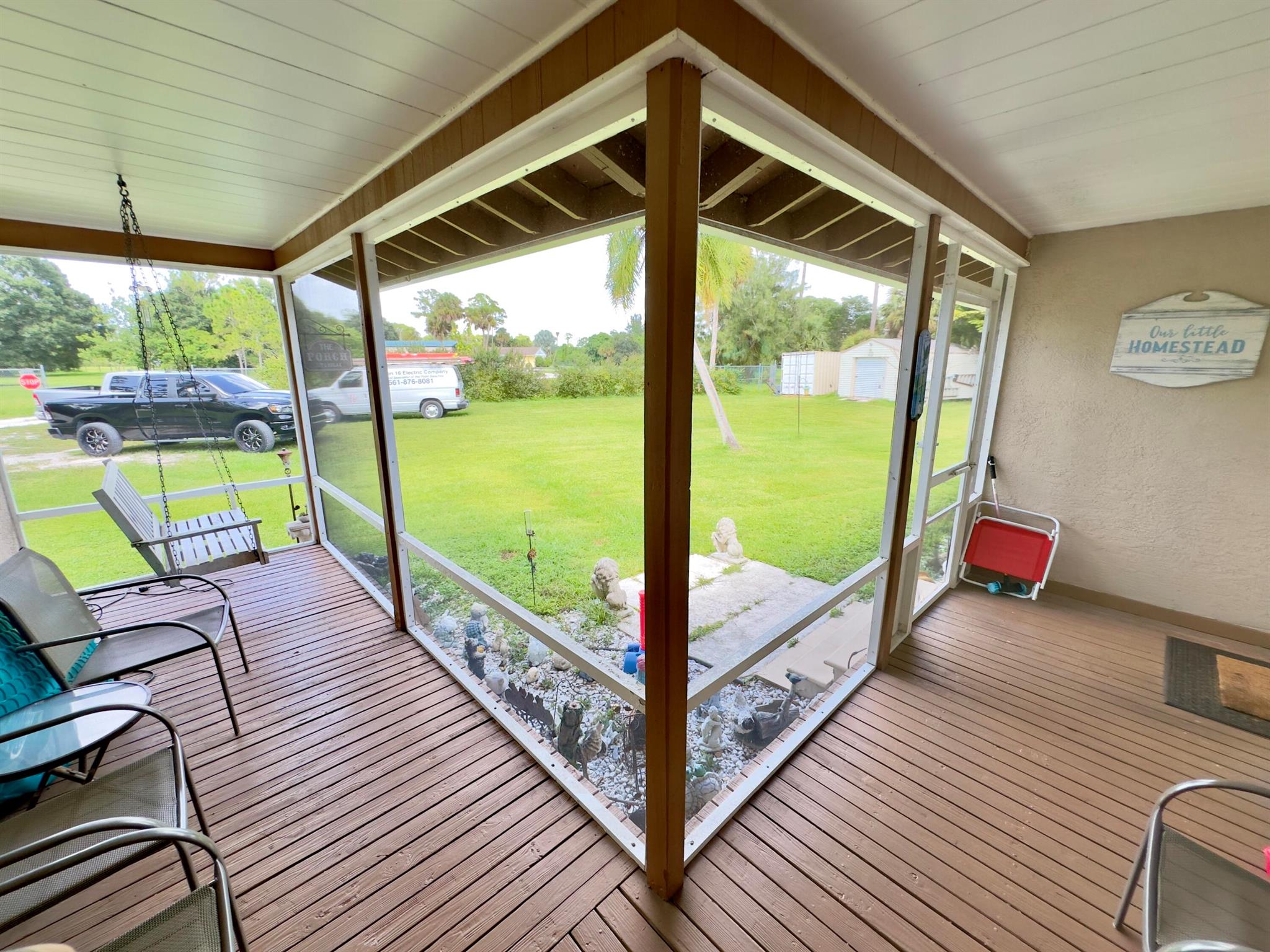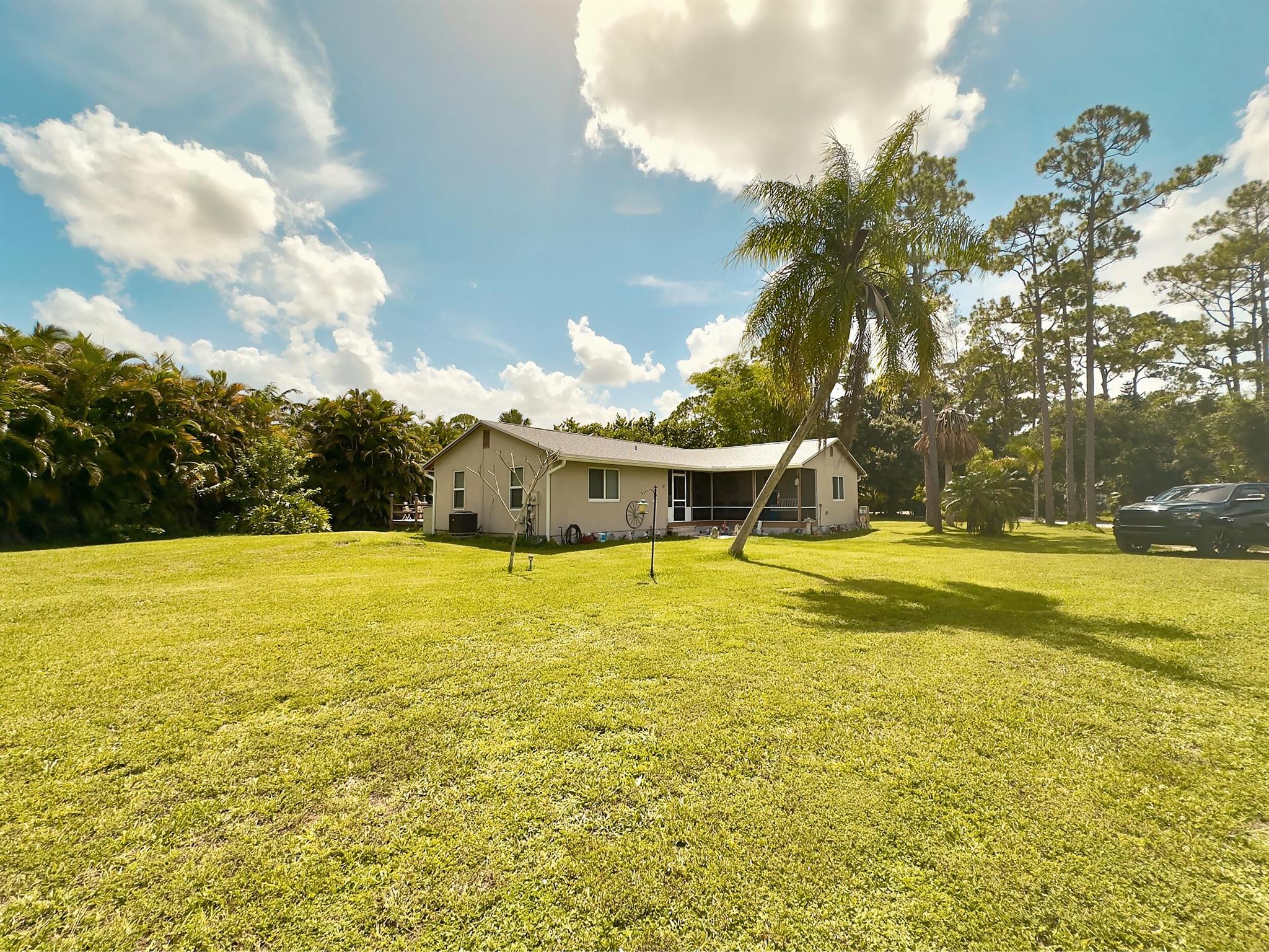 Discover this hidden gem tucked away on a private drive on just under an acre lot–offering the perfect blend of privacy, space, and modern comfort. This beautifully maintained home features 3 spacious bedrooms and 2 full bathrooms, all set on a large, agriculturally/residentially zoned lot with no HOA restrictions.Step inside to find gorgeous wood floors throughout, creating a warm and inviting atmosphere. The home features a newer roof (2023), new impact windows, and an A/C system (2022) giving you peace of mind and energy efficiency for years to come.