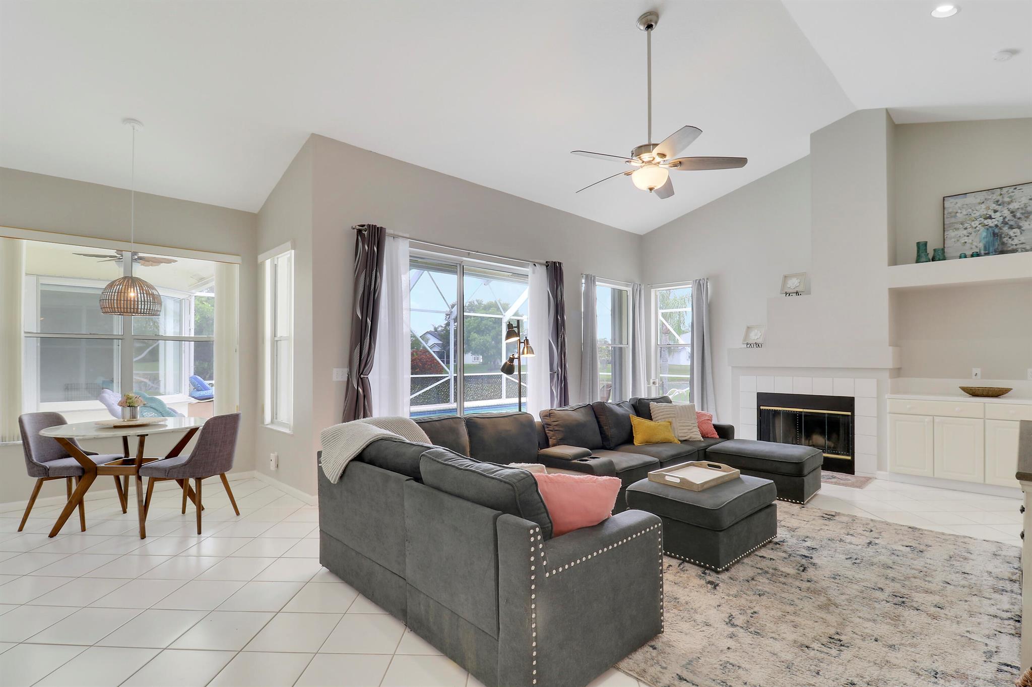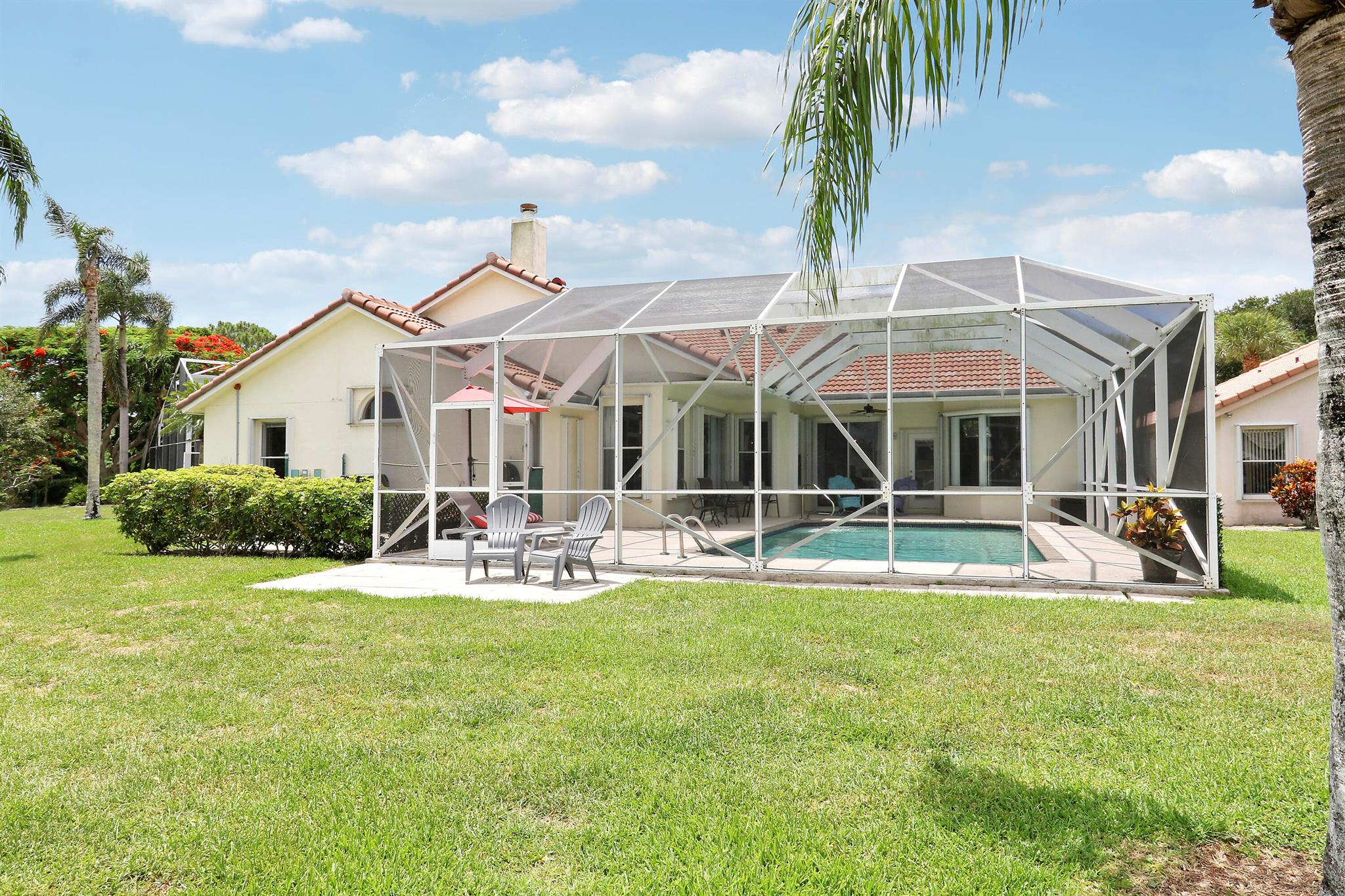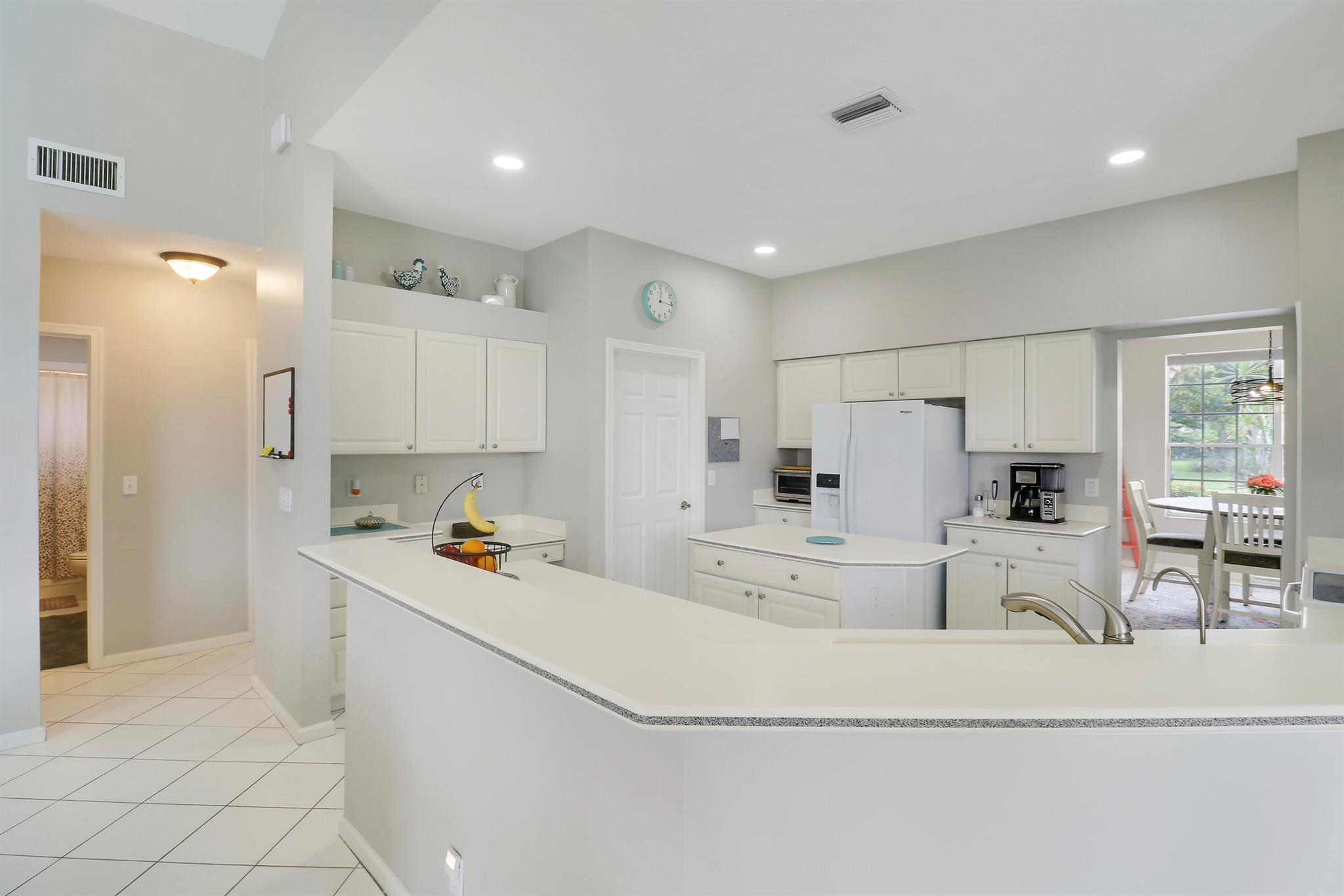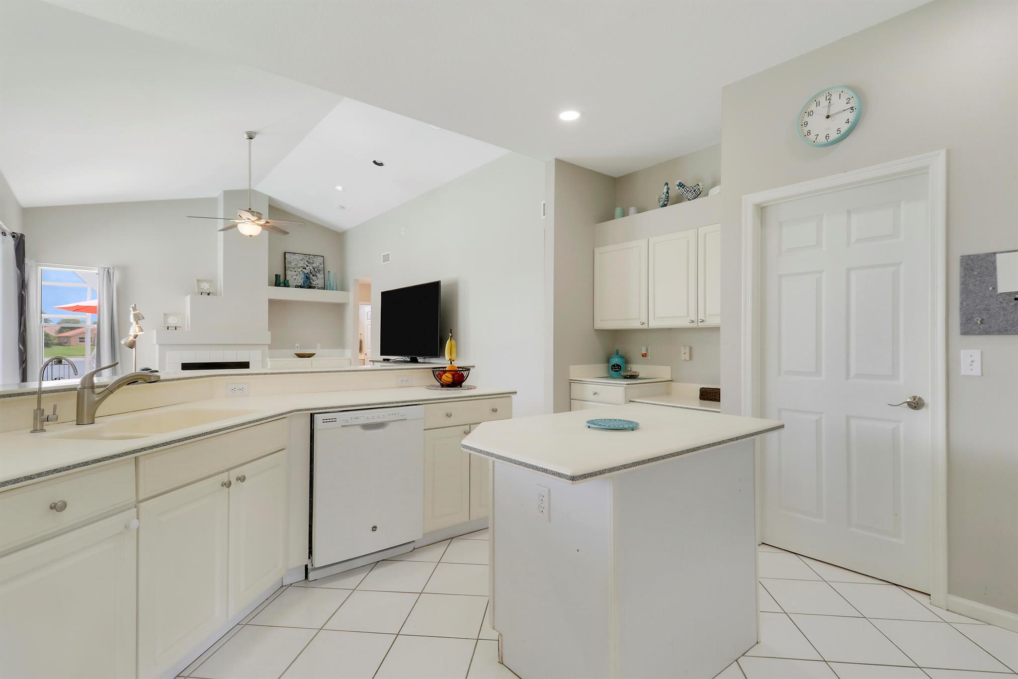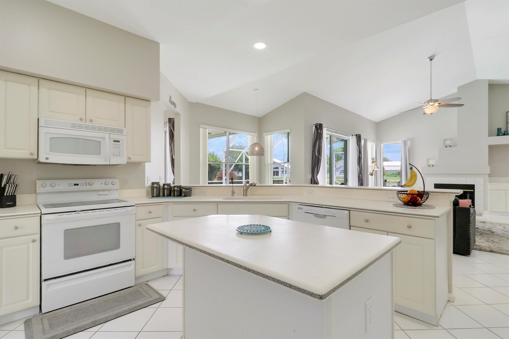 RARELY ON THE MARKET 4 Bdrm. 3 Full baths, 3 car garage pool home with wide lake view. This home features vaulted ceilings, accordion shutters throughout and whole house generator. ADDITIONAL UPGRADES INCLUDE: NEW garage door opener in 2024. The ROOF, POOL heater/chiller and lights are 2023. More upgrades completed in 2022, Repainted interior walls/ceiling, California Closets,Walk-in closet/barn door in primary, New interior doors/hardware, New doorbell/front door lock, New light fixtures (removed fluorescent and replaced with canned lighting in kitchen), Ceiling fans, Cabinetry in laundry room, Outdoor fan, Outdoor porch/garage lights, New sink fixtures in kitchen and bathrooms. This home is waiting for its new owner to make it their own.