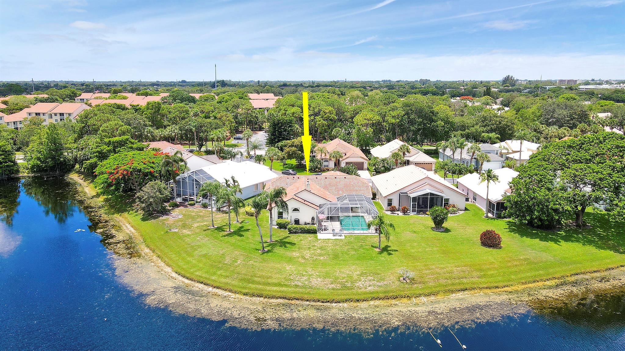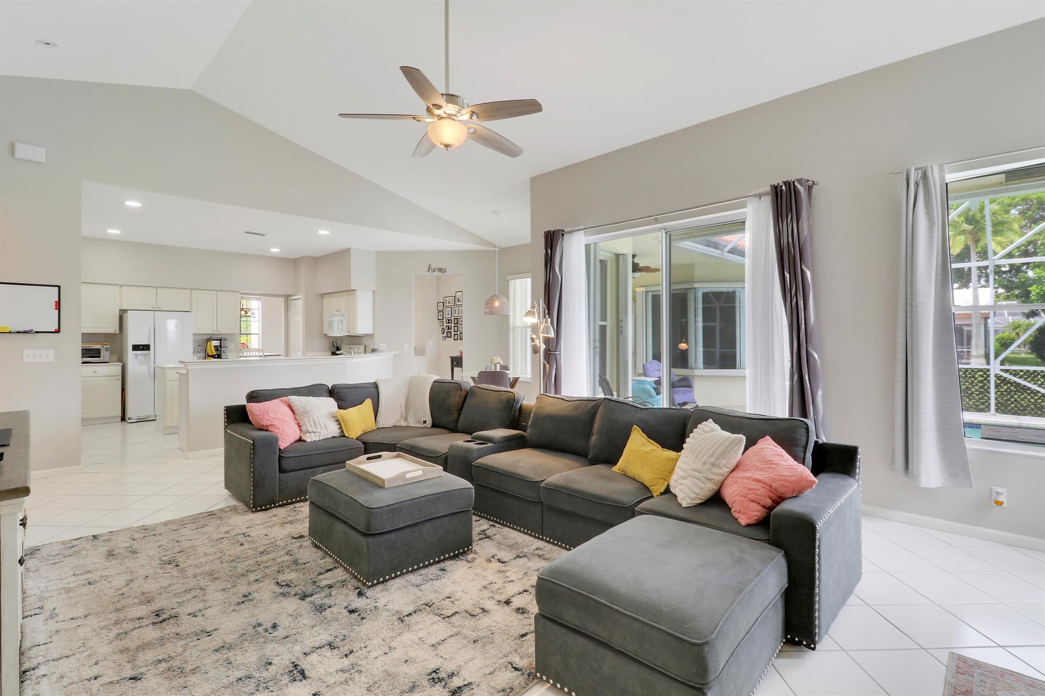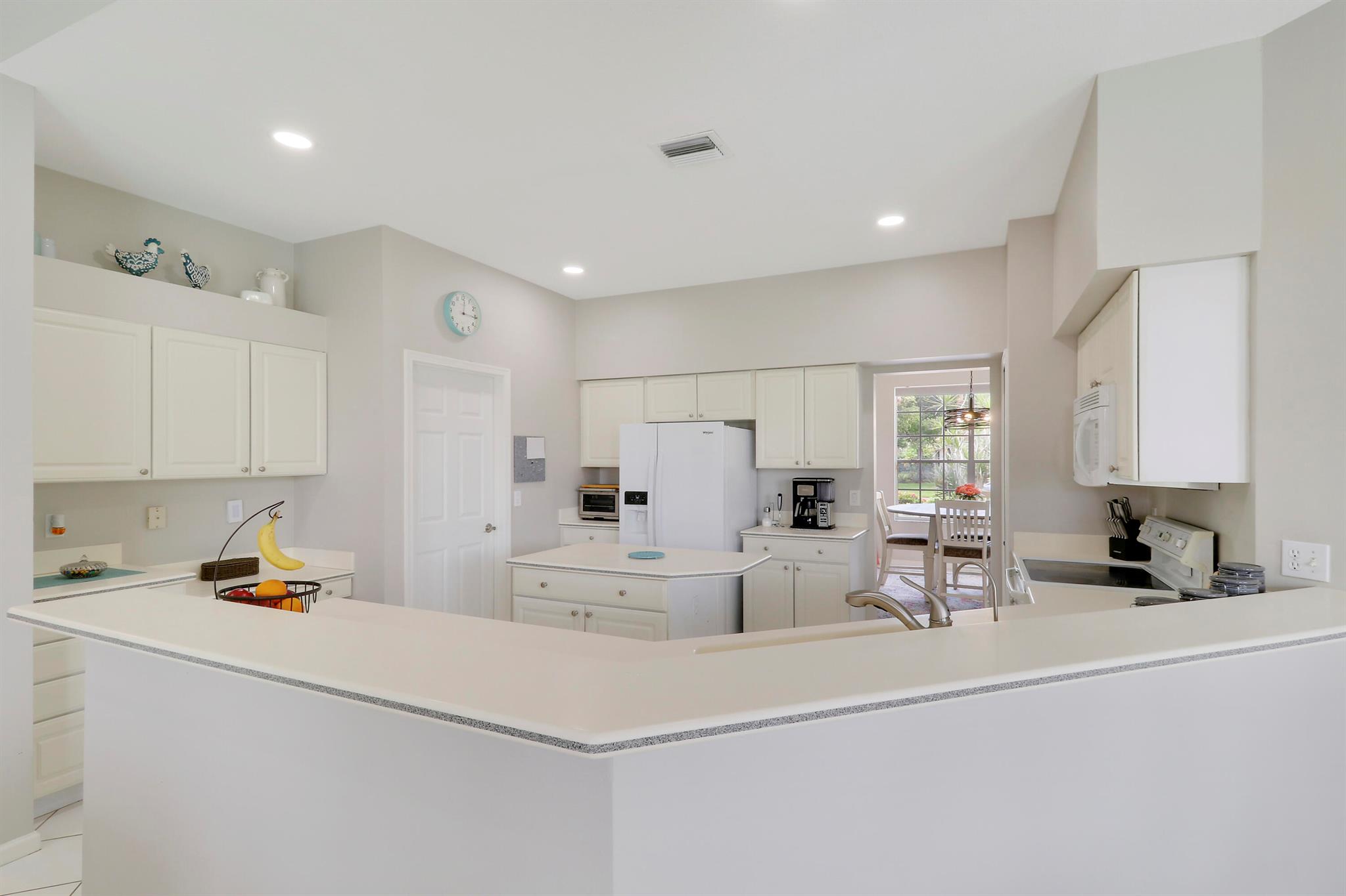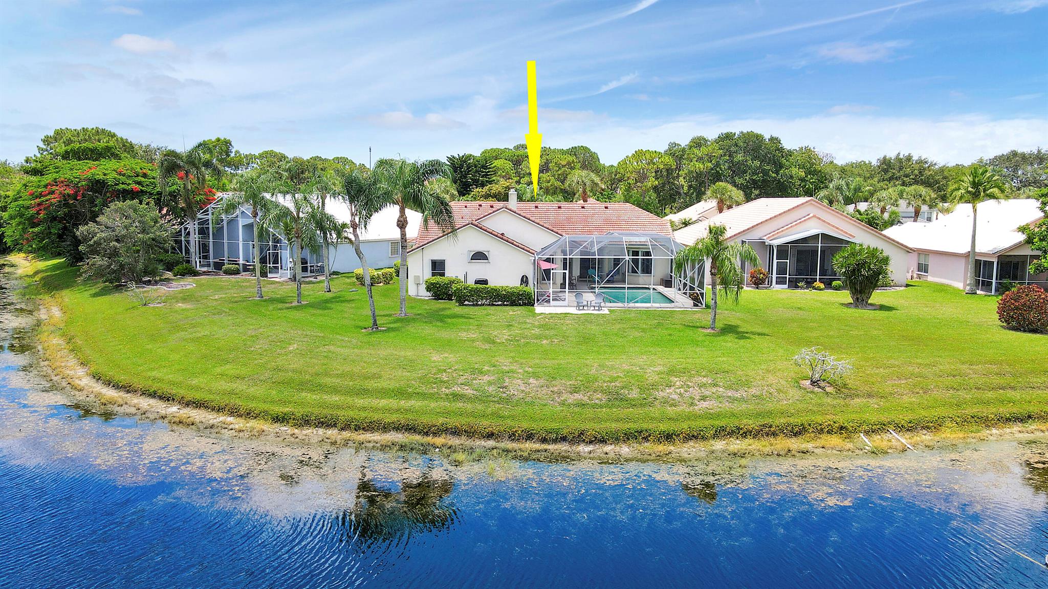 RARELY ON THE MARKET 4 Bdrm. 3 Full baths, 3 car garage pool home with wide lake view. This home features vaulted ceilings, accordion shutters throughout and whole house generator. ADDITIONAL UPGRADES INCLUDE: NEW garage door opener in 2024. The ROOF, POOL heater/chiller and lights are 2023. More upgrades completed in 2022, Repainted interior walls/ceiling, California Closets,Walk-in closet/barn door in primary, New interior doors/hardware, New doorbell/front door lock, New light fixtures (removed fluorescent and replaced with canned lighting in kitchen), Ceiling fans, Cabinetry in laundry room, Outdoor fan, Outdoor porch/garage lights, New sink fixtures in kitchen and bathrooms. This home is waiting for its new owner to make it their own.