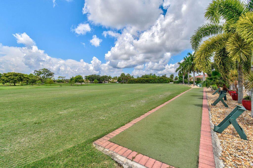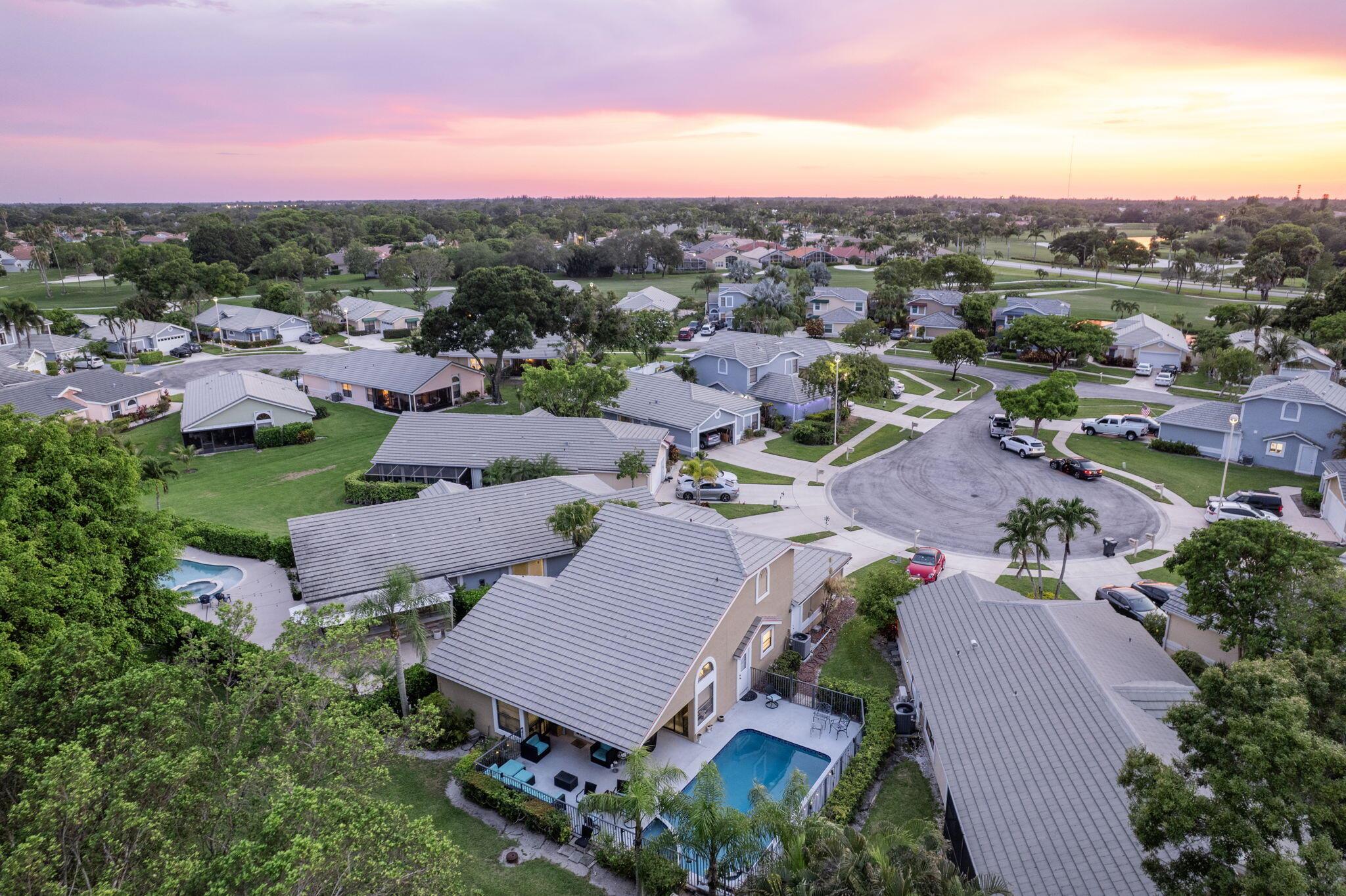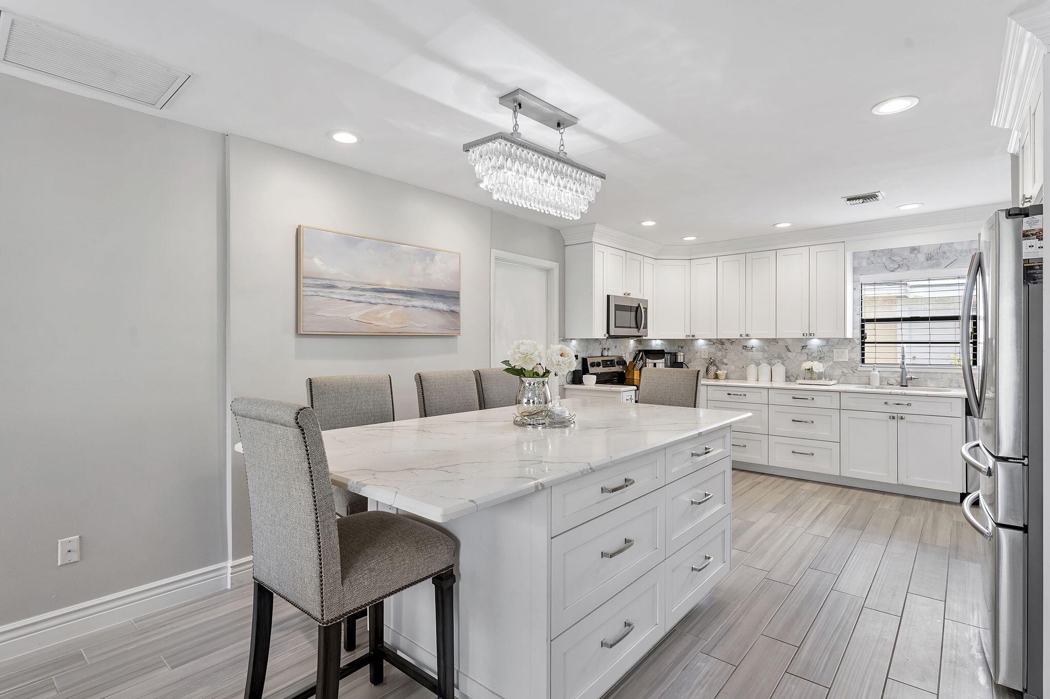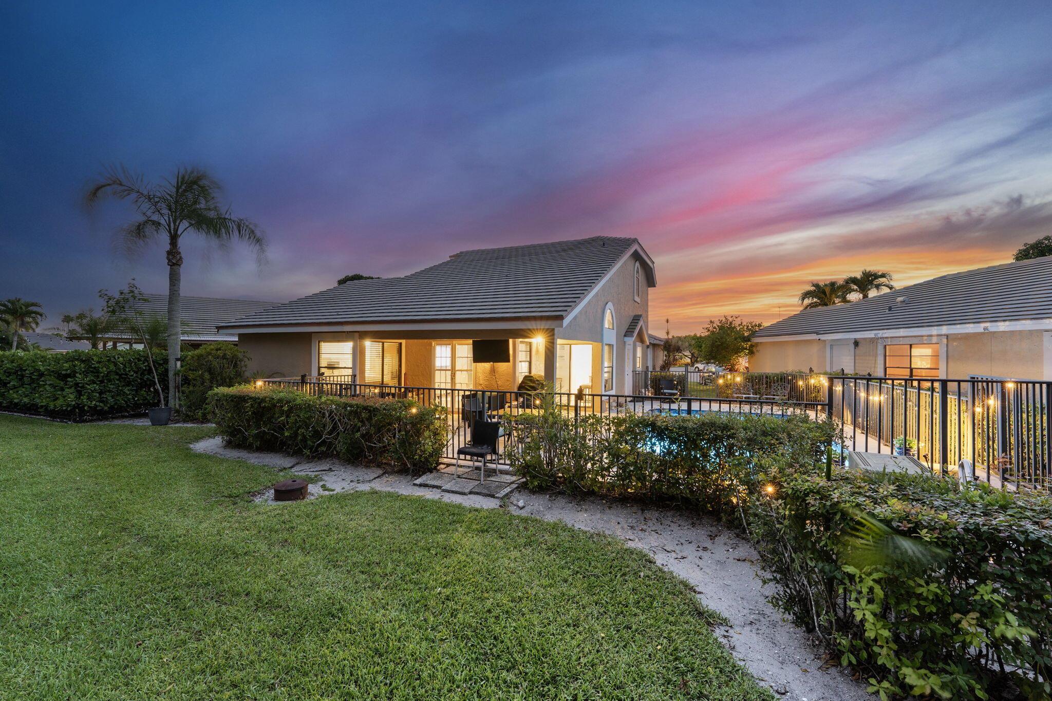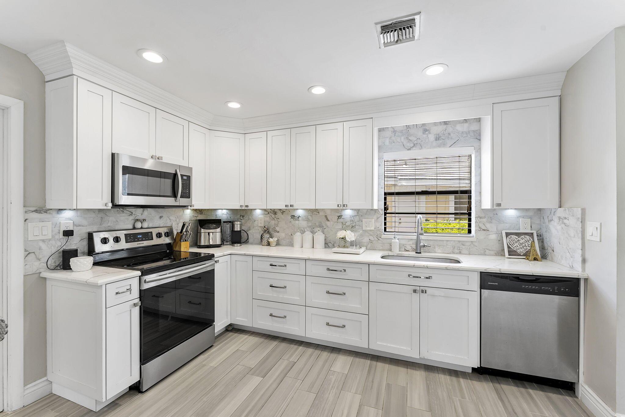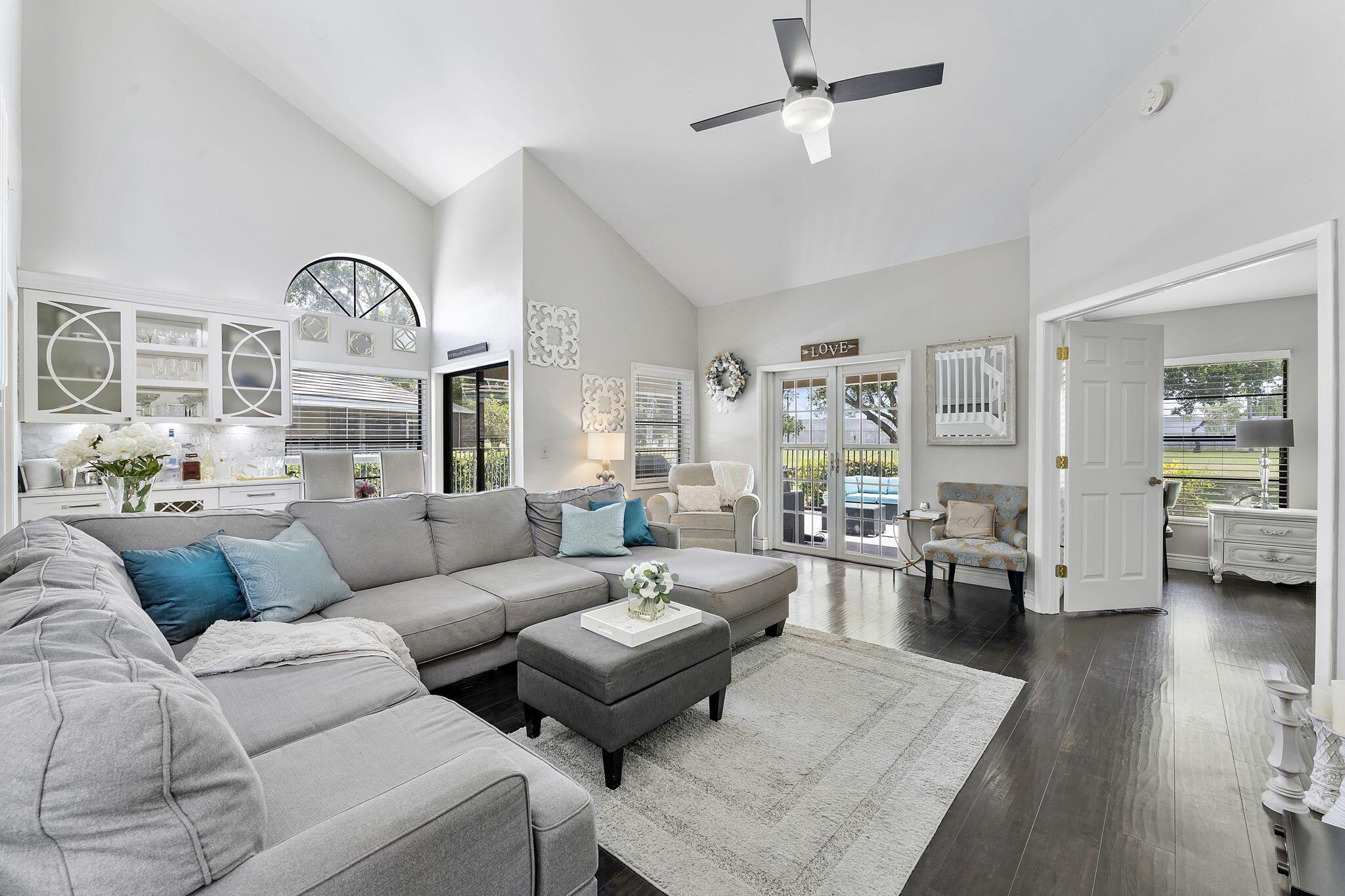 Welcome to your dream home on the 5th hole of a beautifully maintained golf course, nestled in a quiet cul-de-sac in one of South Florida’s premier gated communities with low HOA fees. This 3-bedroom, 2.5-bath home spans 1,851 sq ft under air, offering a bright and open floor plan with vaulted ceilings and stylish updates throughout. The primary suite is conveniently located on the first floor, featuring a spacious walk-in closet, ensuite bath with a separate soaking tub and walk-in shower. Enjoy cooking in the brand-new designer kitchen, complete with quartz countertops & backsplash, stainless steel appliances, and tile flooring. The rest of the home boasts beautiful wood look vinyl flooring, blending style and durability.