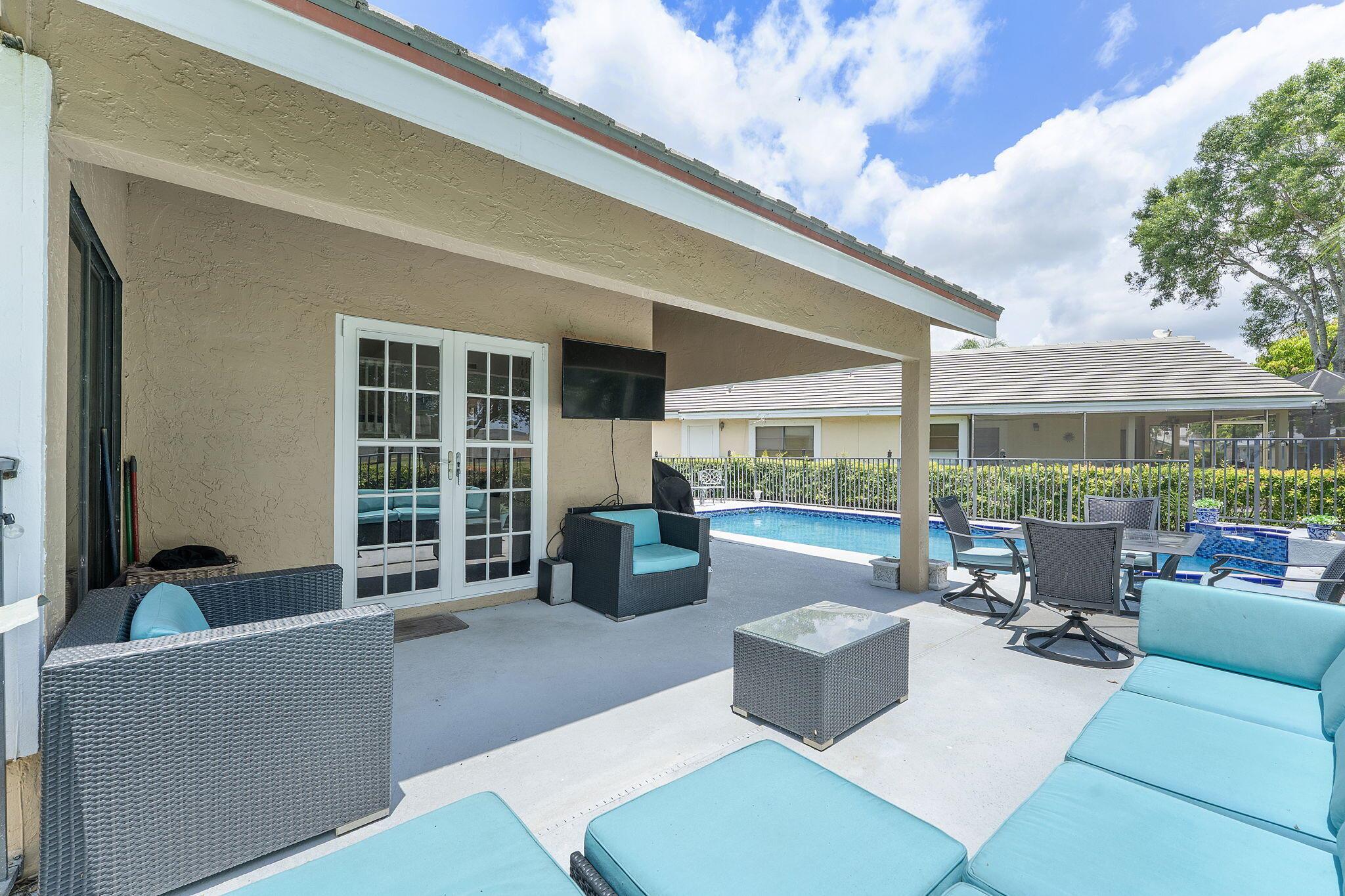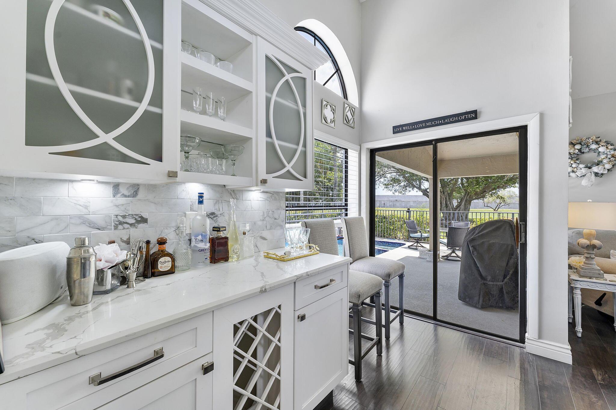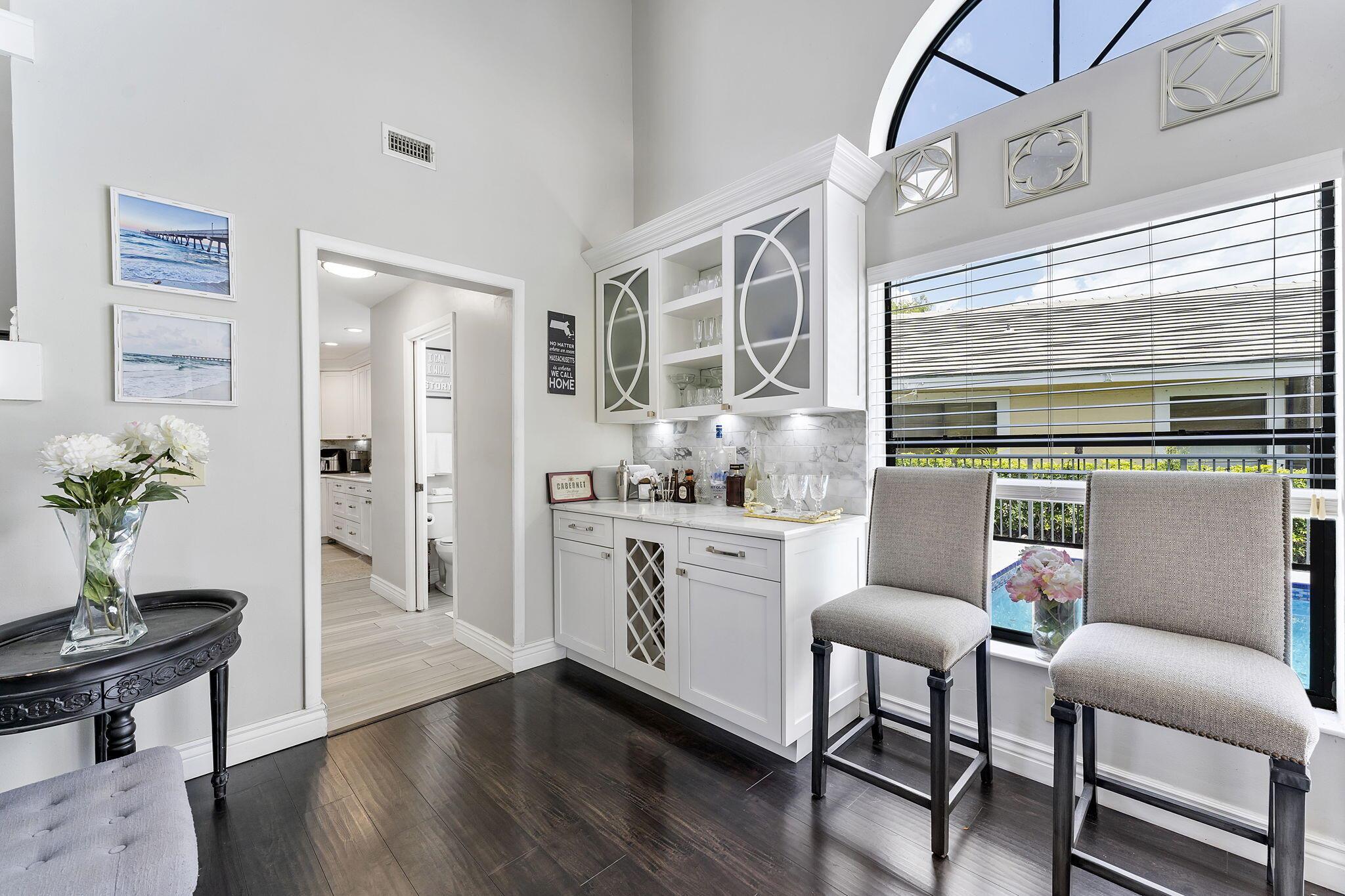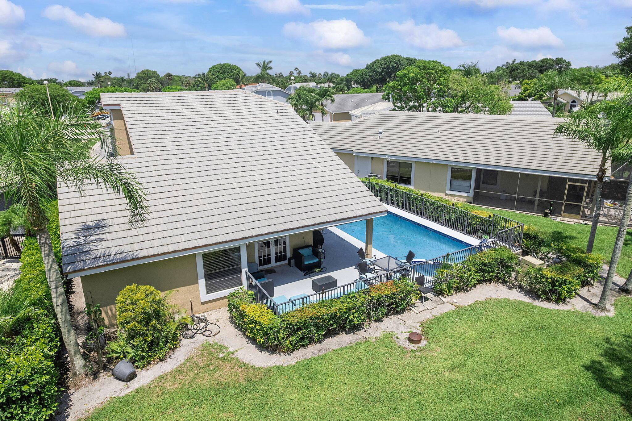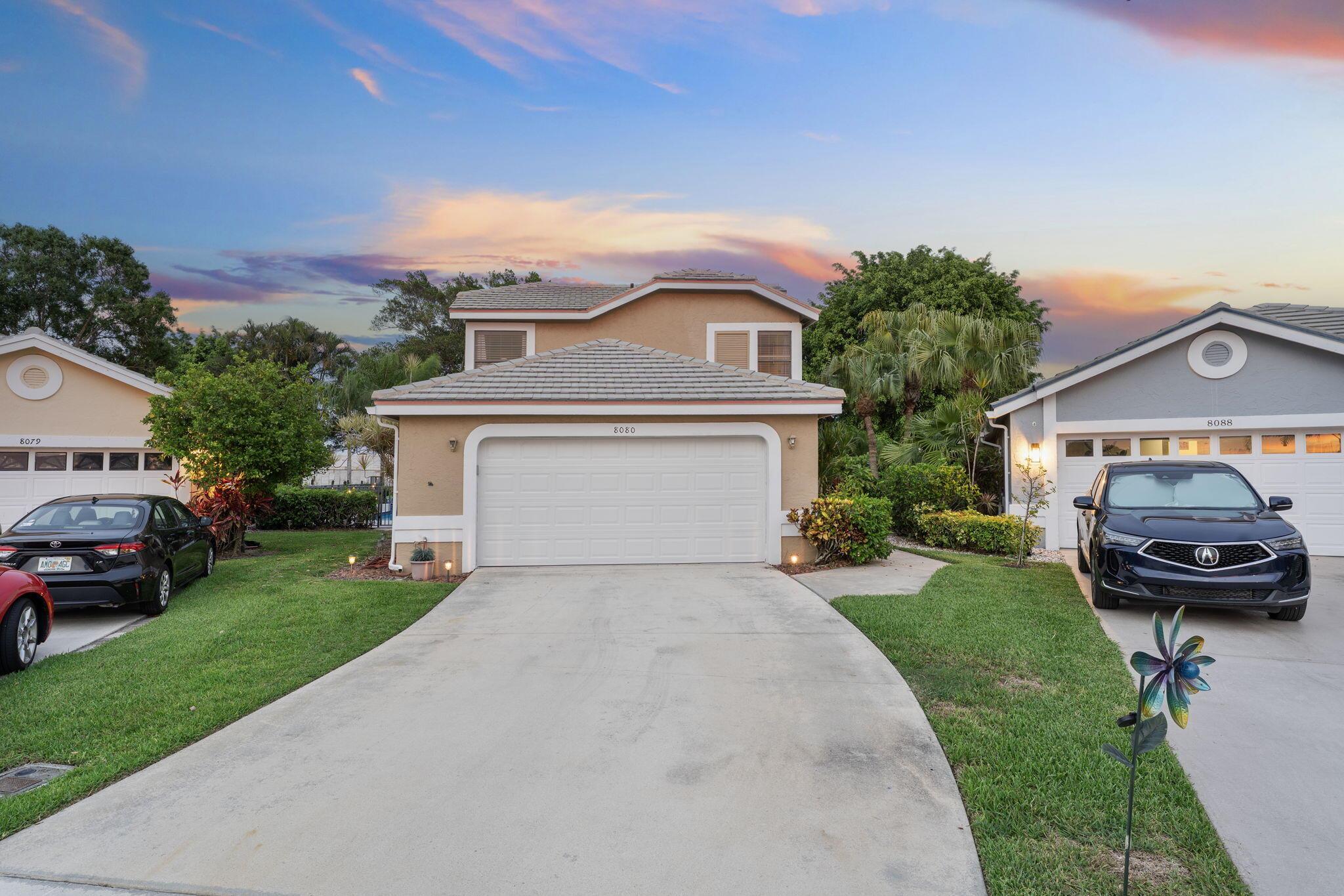 Welcome to your dream home on the 5th hole of a beautifully maintained golf course, nestled in a quiet cul-de-sac in one of South Florida’s premier gated communities with low HOA fees. This 3-bedroom, 2.5-bath home spans 1,851 sq ft under air, offering a bright and open floor plan with vaulted ceilings and stylish updates throughout. The primary suite is conveniently located on the first floor, featuring a spacious walk-in closet, ensuite bath with a separate soaking tub and walk-in shower. Enjoy cooking in the brand-new designer kitchen, complete with quartz countertops & backsplash, stainless steel appliances, and tile flooring. The rest of the home boasts beautiful wood look vinyl flooring, blending style and durability.