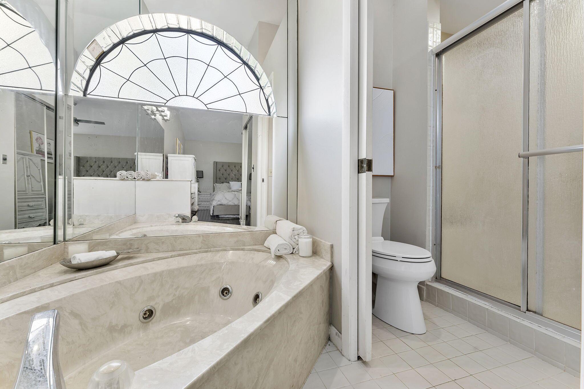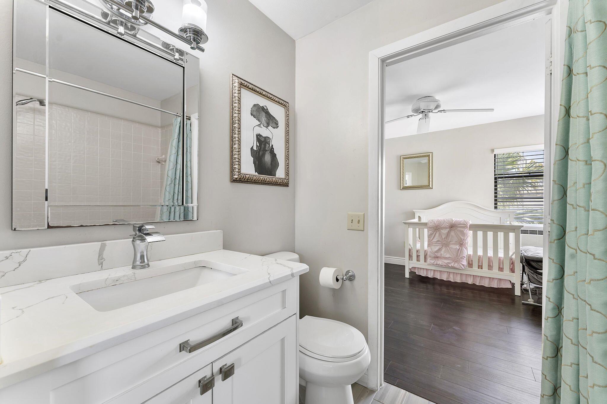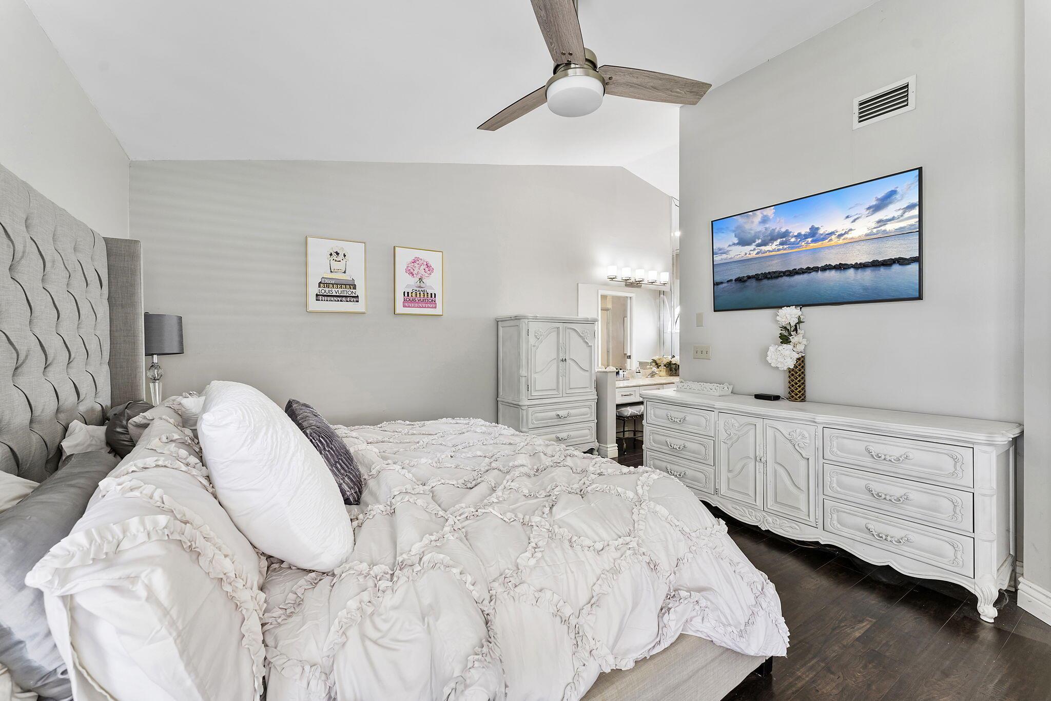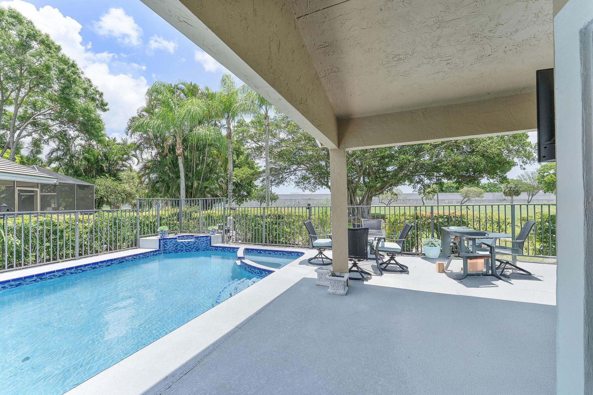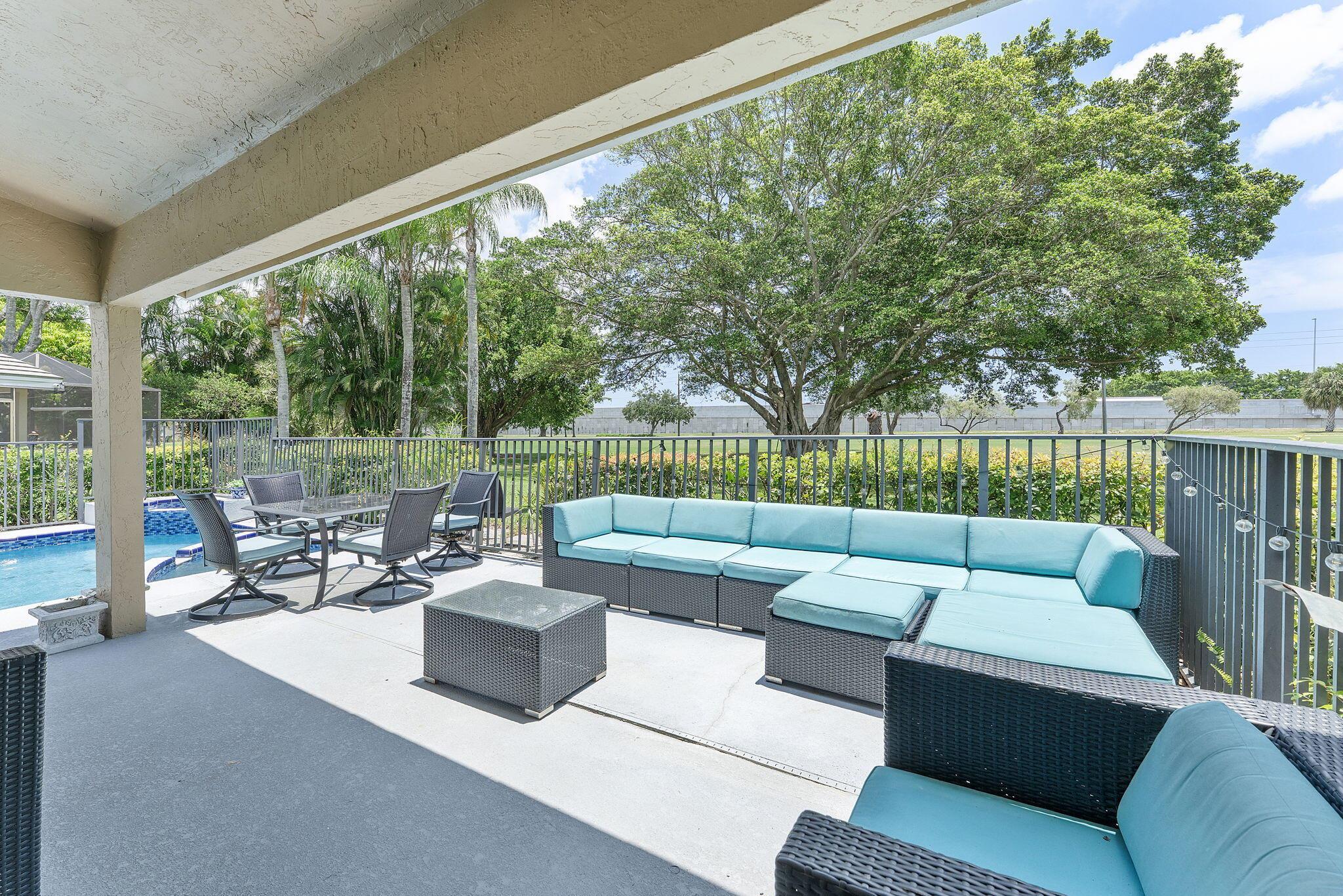Welcome to your dream home on the 5th hole of a beautifully maintained golf course, nestled in a quiet cul-de-sac in one of South Florida’s premier gated communities with low HOA fees. This 3-bedroom, 2.5-bath home spans 1,851 sq ft under air, offering a bright and open floor plan with vaulted ceilings and stylish updates throughout. The primary suite is conveniently located on the first floor, featuring a spacious walk-in closet, ensuite bath with a separate soaking tub and walk-in shower. Enjoy cooking in the brand-new designer kitchen, complete with quartz countertops & backsplash, stainless steel appliances, and tile flooring. The rest of the home boasts beautiful wood look vinyl flooring, blending style and durability.