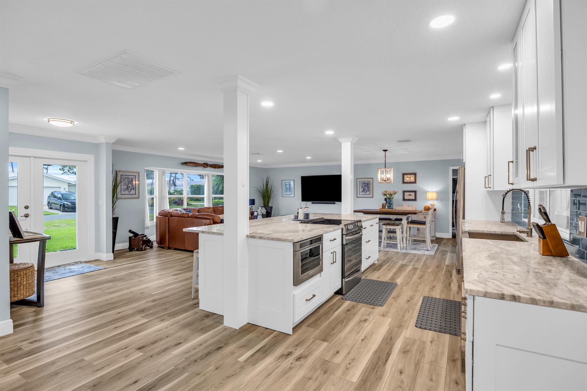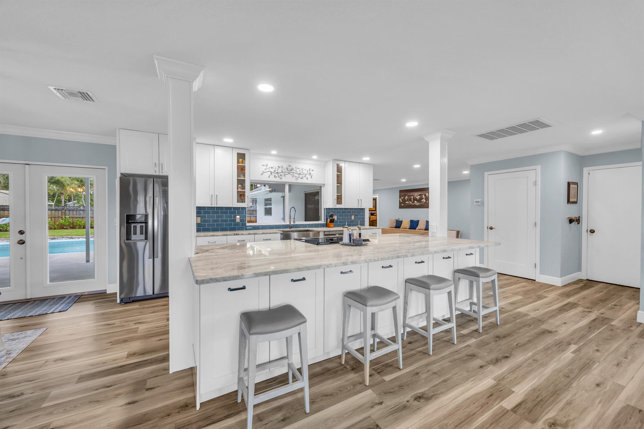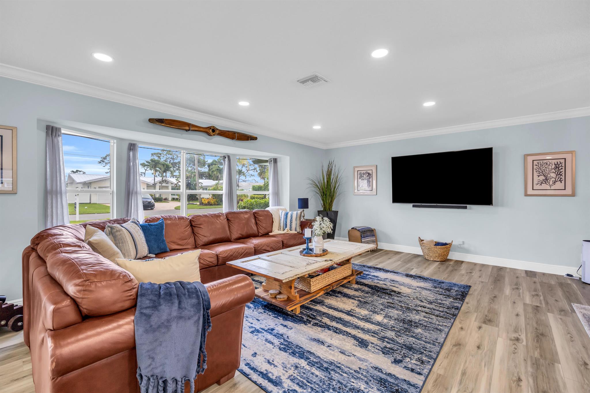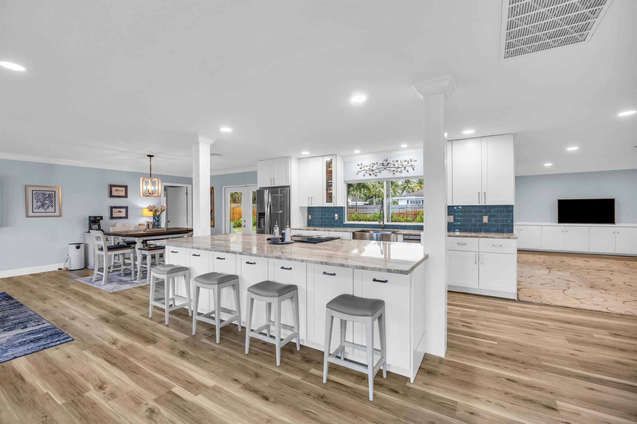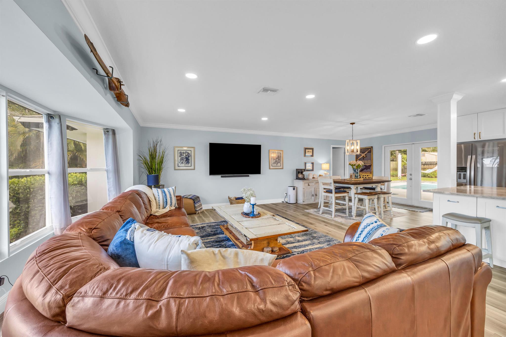 Discover this updated, 4-bedroom Tequesta Country Club home located on a quiet street. With an efficient, split floorplan this home feels larger than its roughly 2,350 sq feet of living space. Multiple living areas, a modern and open kitchen and plenty of windows make this a very comfortable home. Recent interior updates include flooring, new kitchen and appliances, modern lighting, and new paint and baseboard. Notable systems updates include hurricane impact windows and doors, 2021 air conditioning and water heater, 2022 pool equipment, new electrical panel, and new sprinkler system. This property offers an oversized covered patio, perfect for entertaining by your pool and generous backyard. Tequesta Country Club offers residents a private boat ramp and day dock. This property is just a
