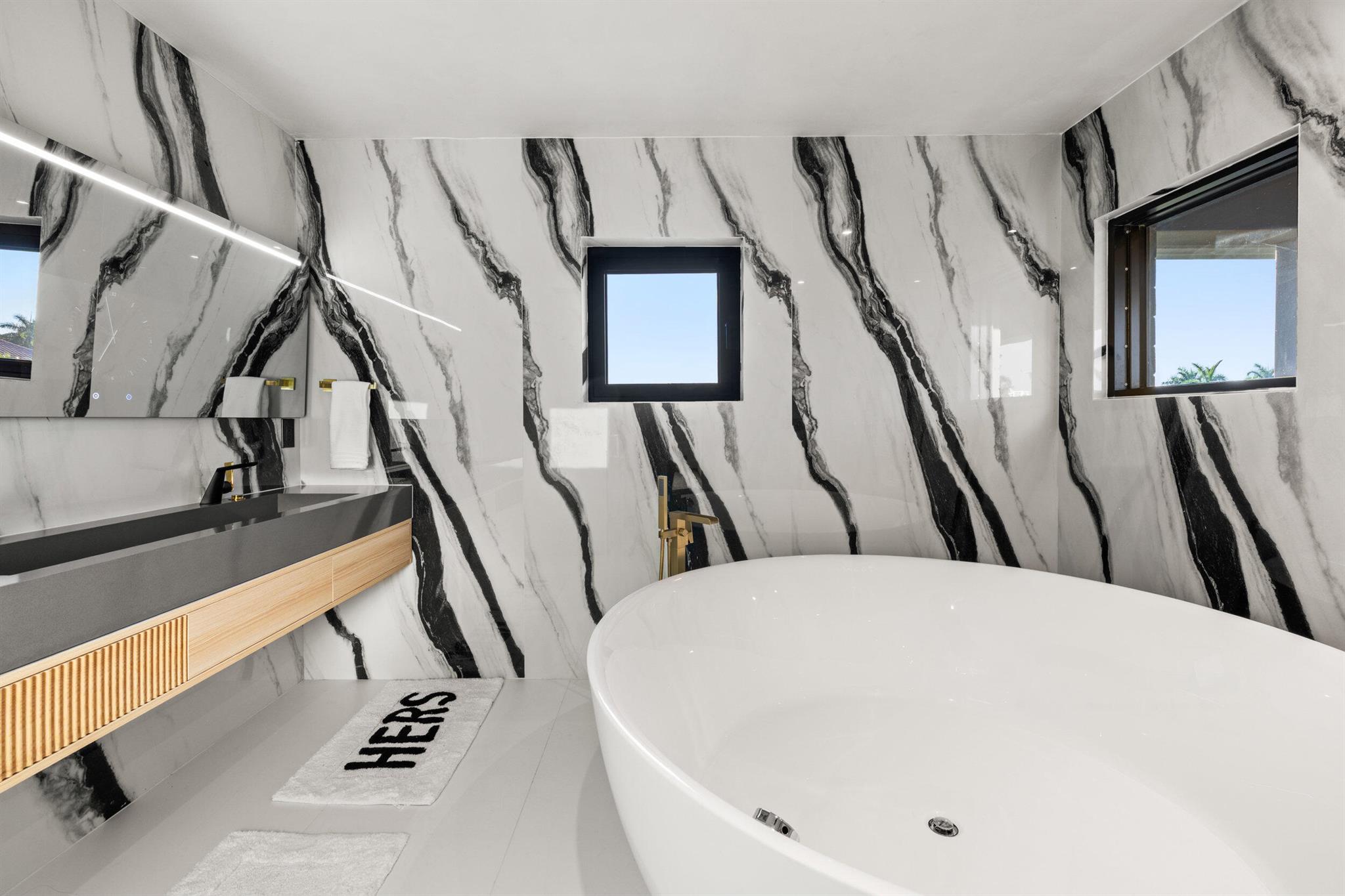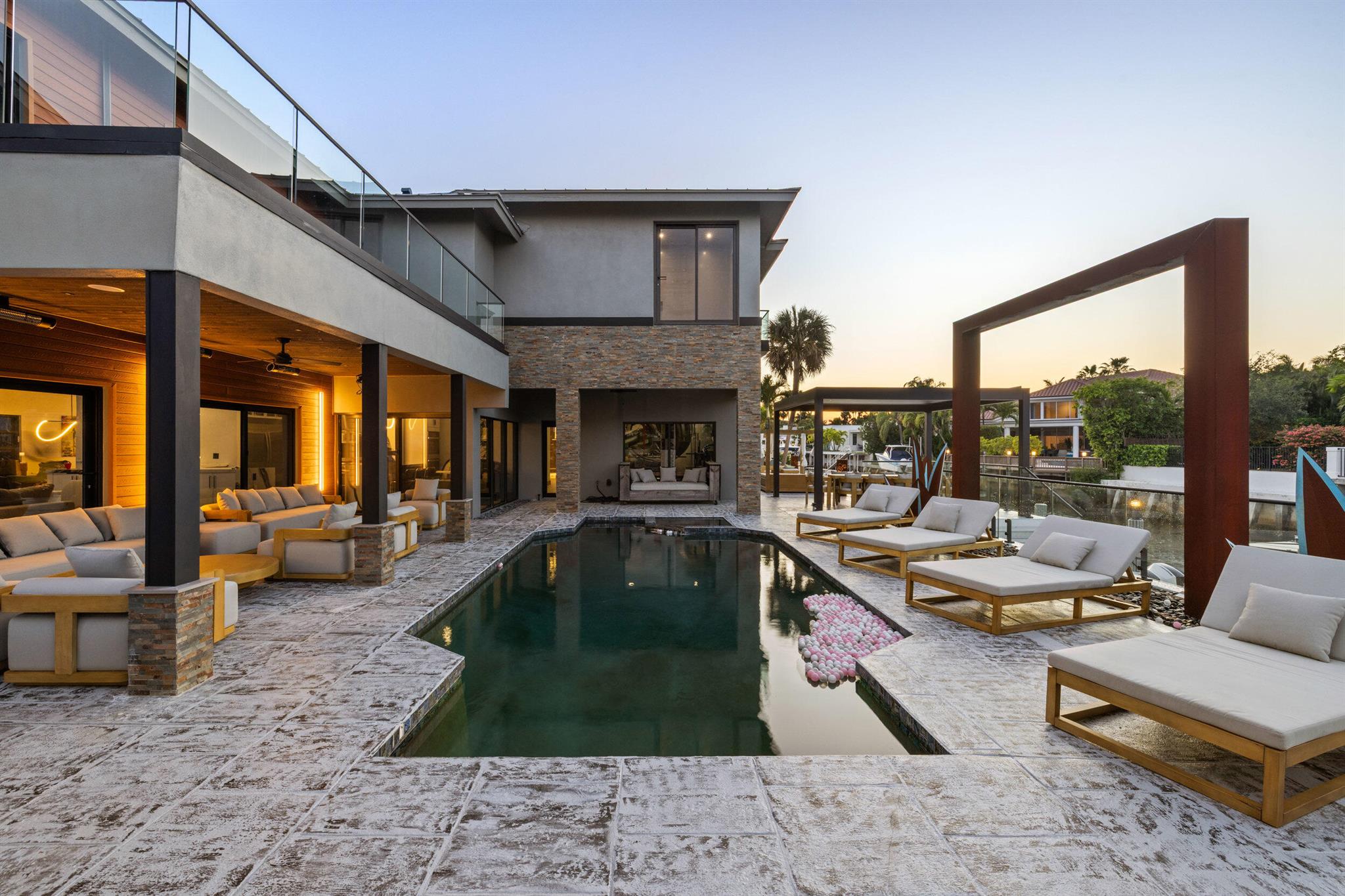 Introducing 839 NE Bay Isle Drive, a breathtaking reimagining of luxury coastal living in the prestigious enclave of Boca Bay Colony. This newly completed contemporary estate encompasses over 9,000 total square feet and sits on an oversized lot boasting 135 feet of deepwater frontage with direct ocean access just minutes away.Designed for the ultimate entertainer, this resort-style showplace offers 6 bedrooms, 8 bathrooms, a powder room, and an unrivaled collection of high-end features and curated finishes, offered fully furnished for immediate enjoyment. Upon entry through a striking glass pivot door, the Great Room welcomes you with soaring ceilings, expansive views of the pool deck, and 42” x 42” porcelain fl