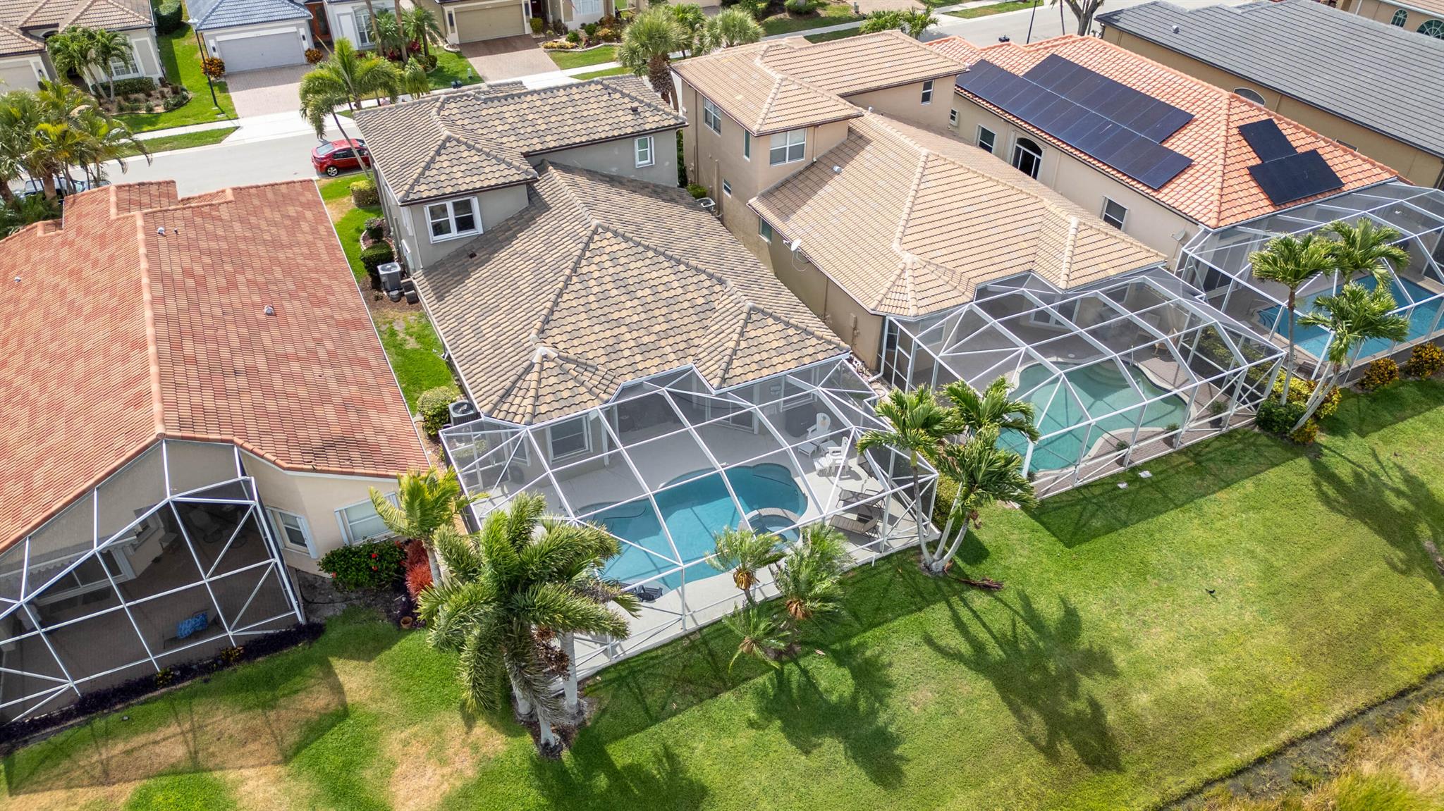 Beautifully maintained home with 2,871 sq ft of versatile living space. Features include a spacious kitchen with double ovens, formal dining, separate living and family rooms, home office, and a main-level primary suite with custom his-and-hers closets. Upstairs offers an oversized guest suite, additional bedroom, large bath, and a flex space loft–perfect for a media room, playroom, or workout space. Enjoy a private backyard oasis with pool, spa, and screened enclosure. Located in a resort-style community with clubhouse, pools, gym, restaurant, sports courts, playground, and 24-hour security. HOA includes internet, cable, lawn care, roof cleaning, exterior painting, and more.