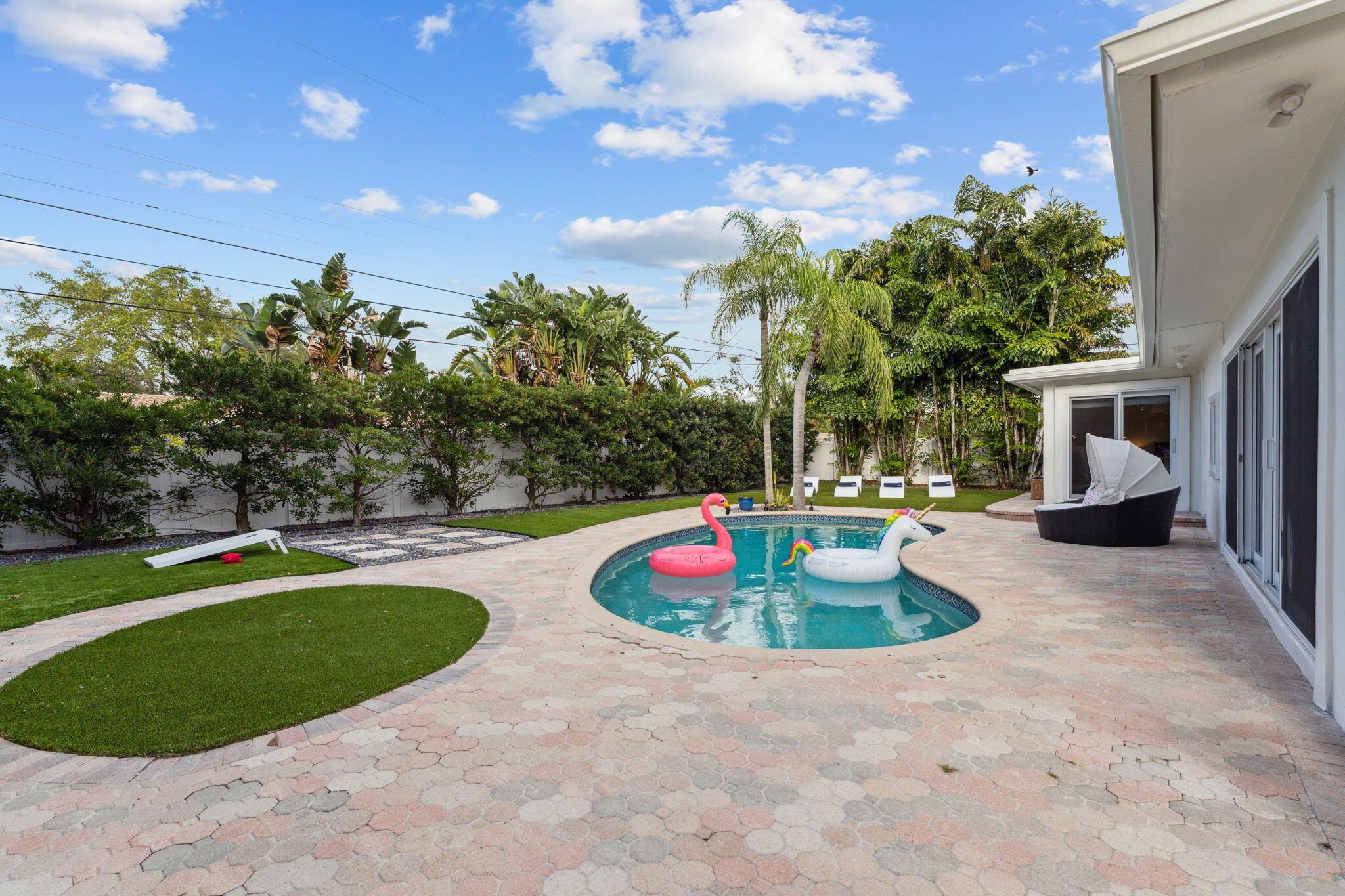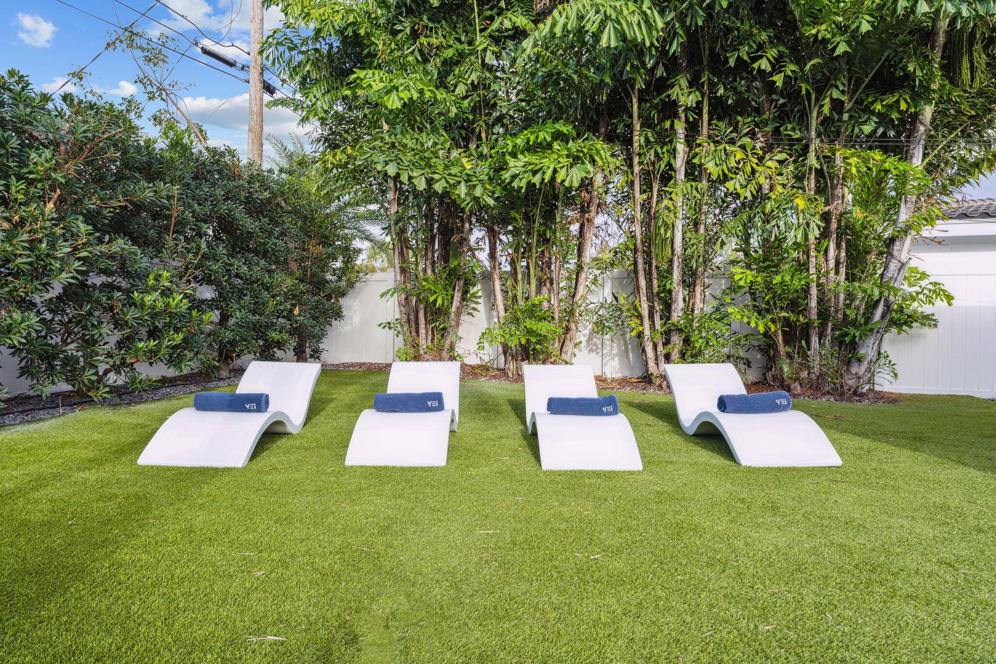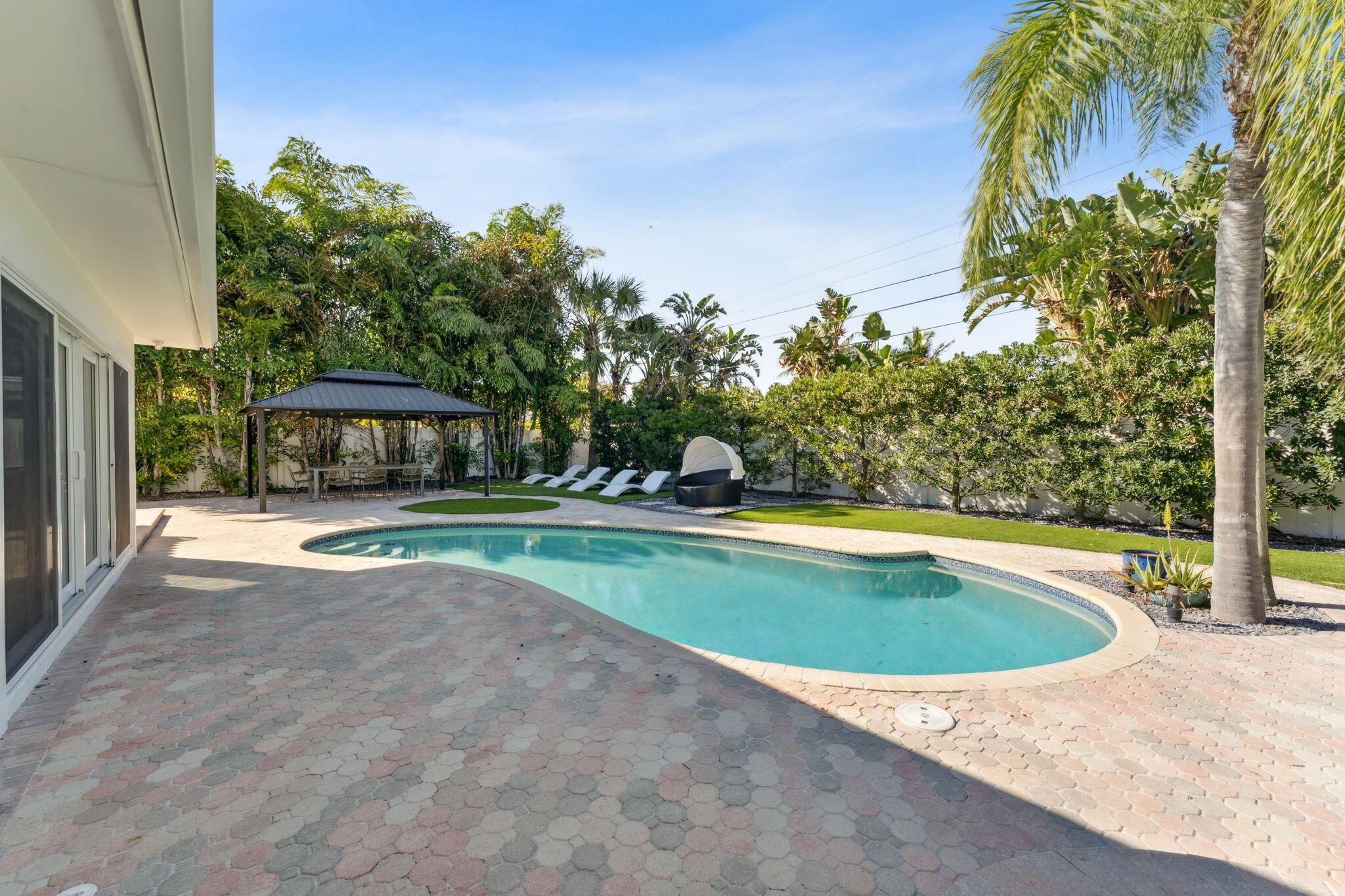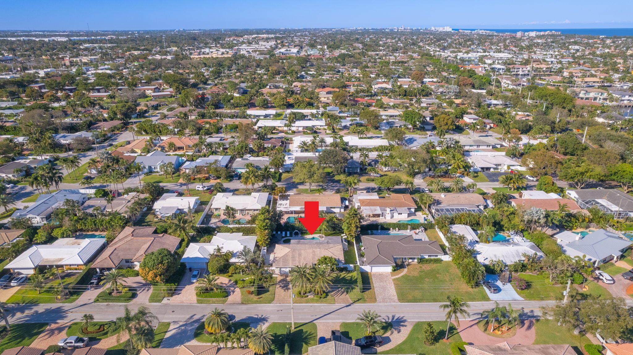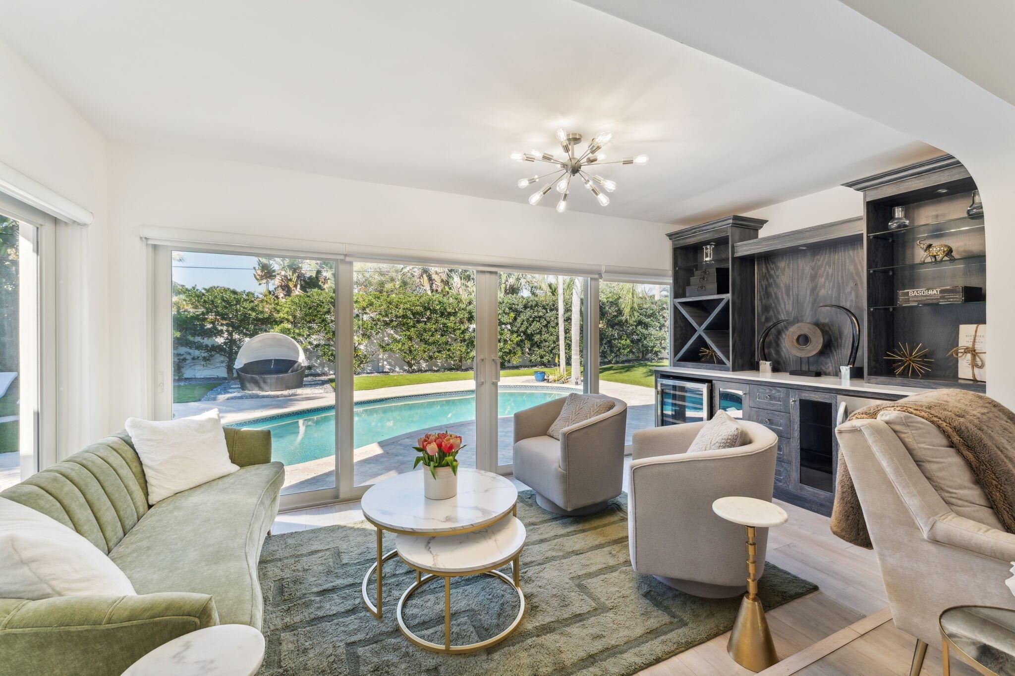 Stunning 3BR/2BA home in the prestigious Lighthouse Point! Currently an AirBnb but it can be your Dream Home. Step into a bright, open-concept great room with vaulted ceilings and views of the resort-style backyard. The chef’s kitchen boasts quartz countertops, custom cabinetry, Carrara marble backsplash, stainless steel appliances, and walnut-wrapped beams. Adjacent is a Florida room with a built-in bar and oversized sliders leading to the pool and electric-wired gazebo–perfect for entertaining.Enjoy low-maintenance living with artificial turf, a fully irrigated vegetable garden, and seamless indoor-outdoor flow. The oversized primary suite features a custom dressing room/office/nursery space, spa-style bath, double vanities, large shower, and direct pool access.