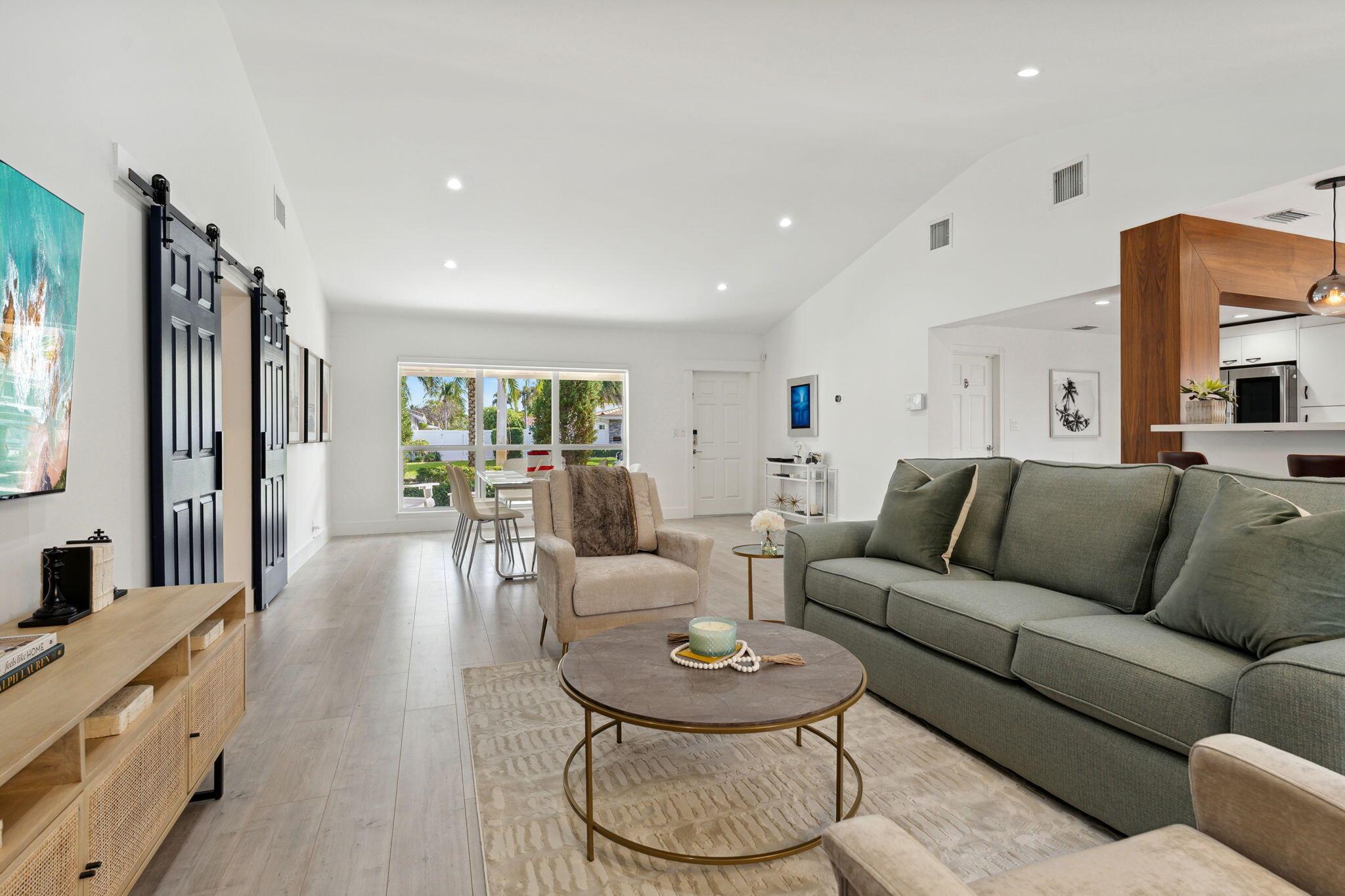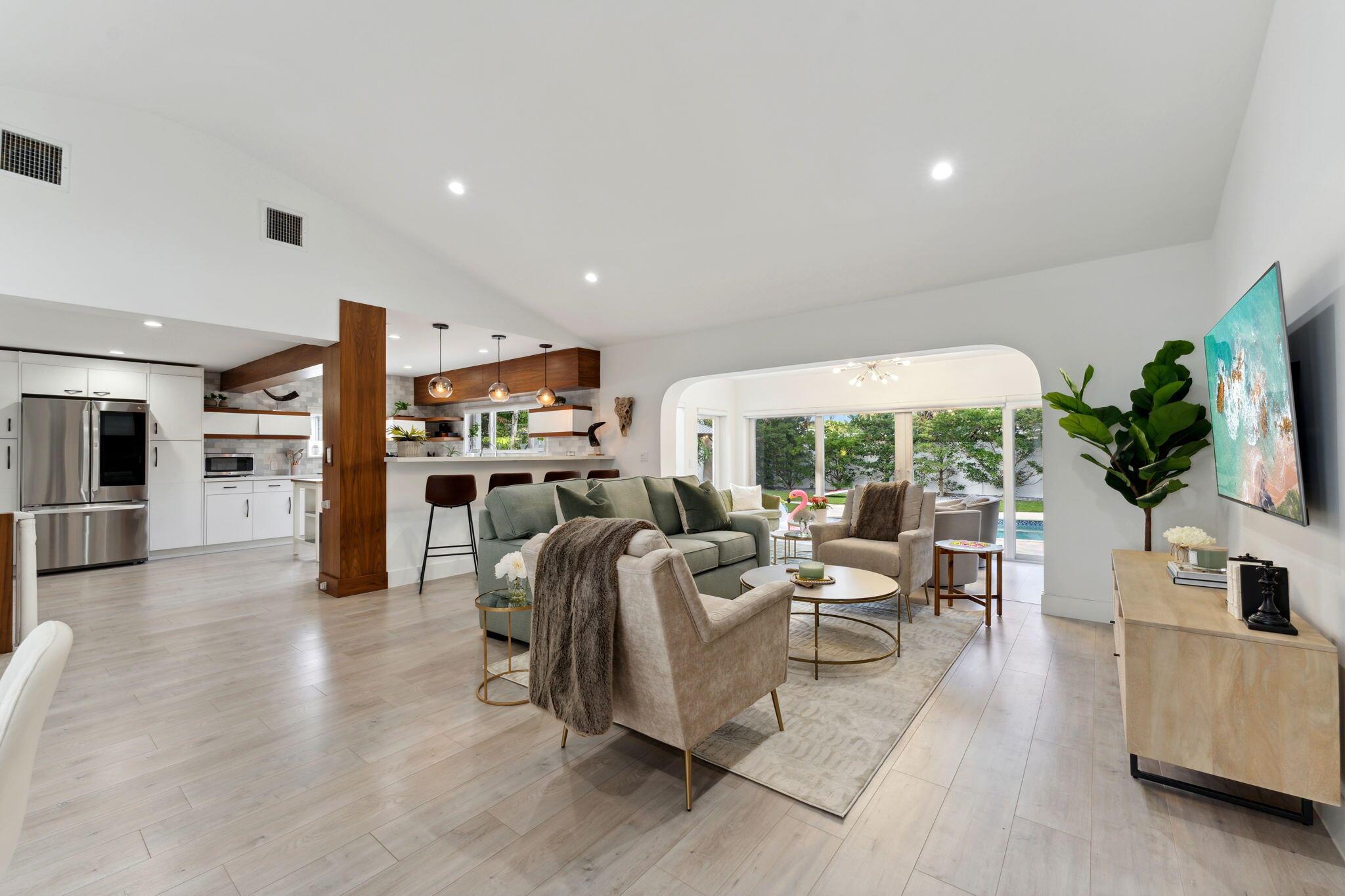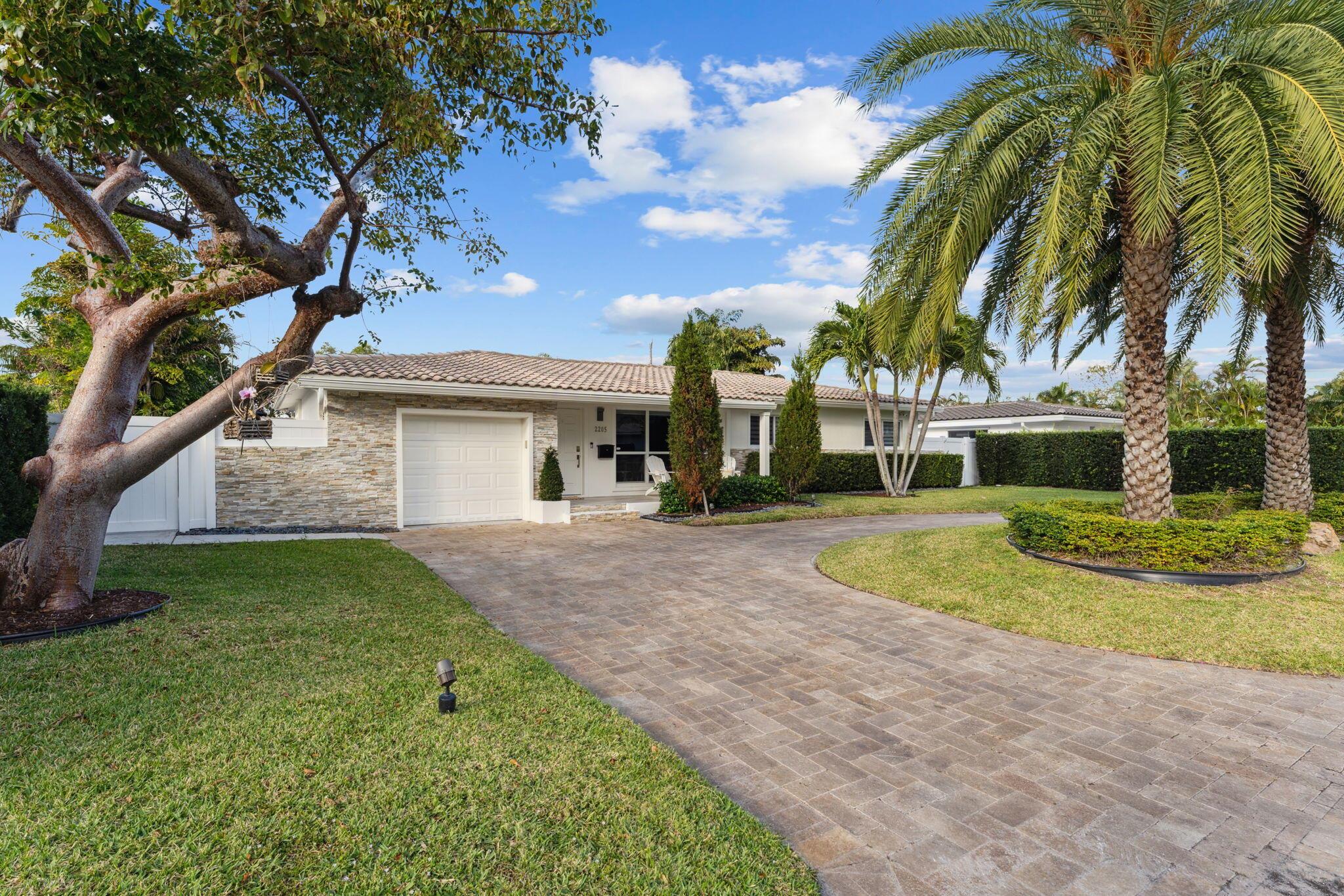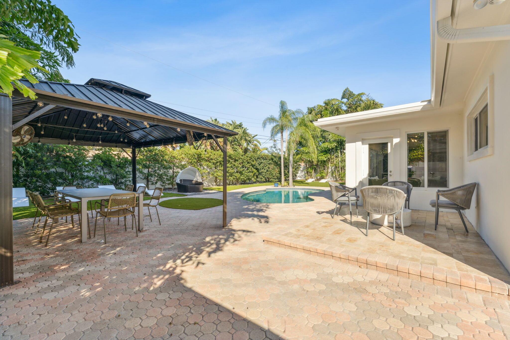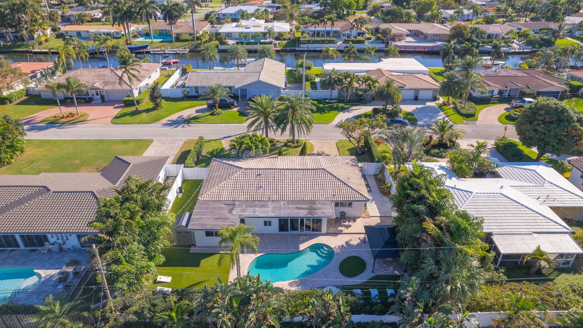 Stunning 3BR/2BA home in the prestigious Lighthouse Point! Currently an AirBnb but it can be your Dream Home. Step into a bright, open-concept great room with vaulted ceilings and views of the resort-style backyard. The chef’s kitchen boasts quartz countertops, custom cabinetry, Carrara marble backsplash, stainless steel appliances, and walnut-wrapped beams. Adjacent is a Florida room with a built-in bar and oversized sliders leading to the pool and electric-wired gazebo–perfect for entertaining.Enjoy low-maintenance living with artificial turf, a fully irrigated vegetable garden, and seamless indoor-outdoor flow. The oversized primary suite features a custom dressing room/office/nursery space, spa-style bath, double vanities, large shower, and direct pool access.