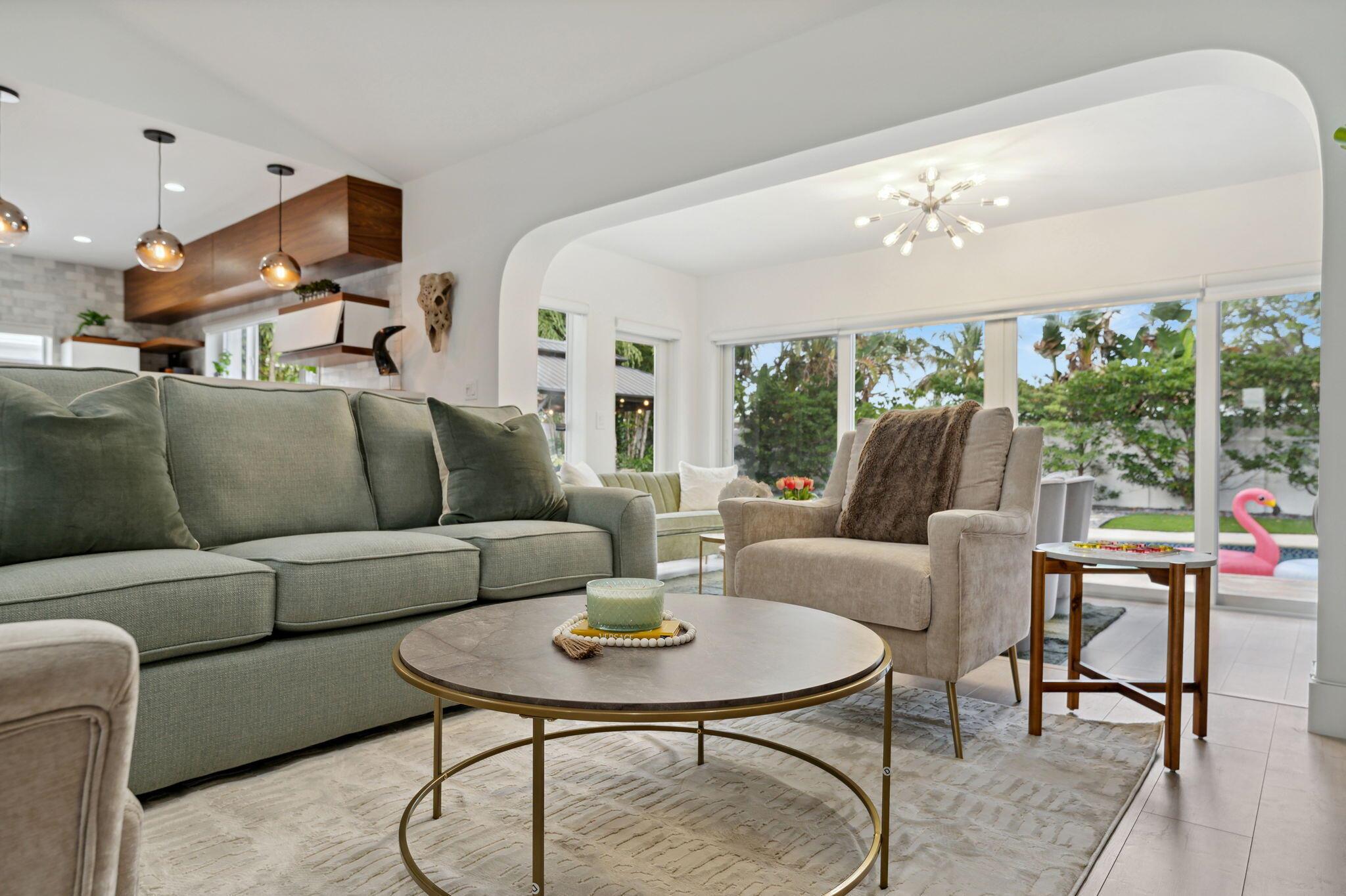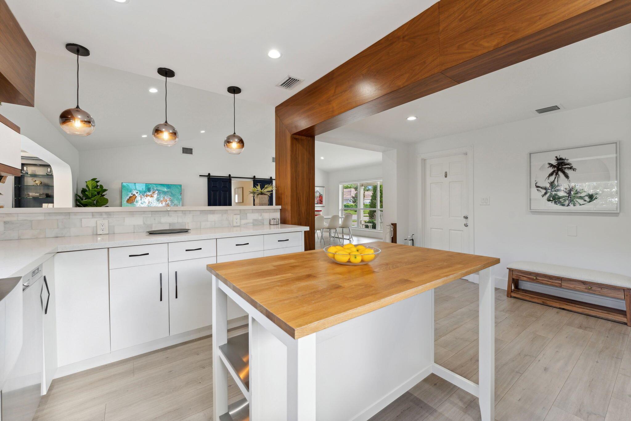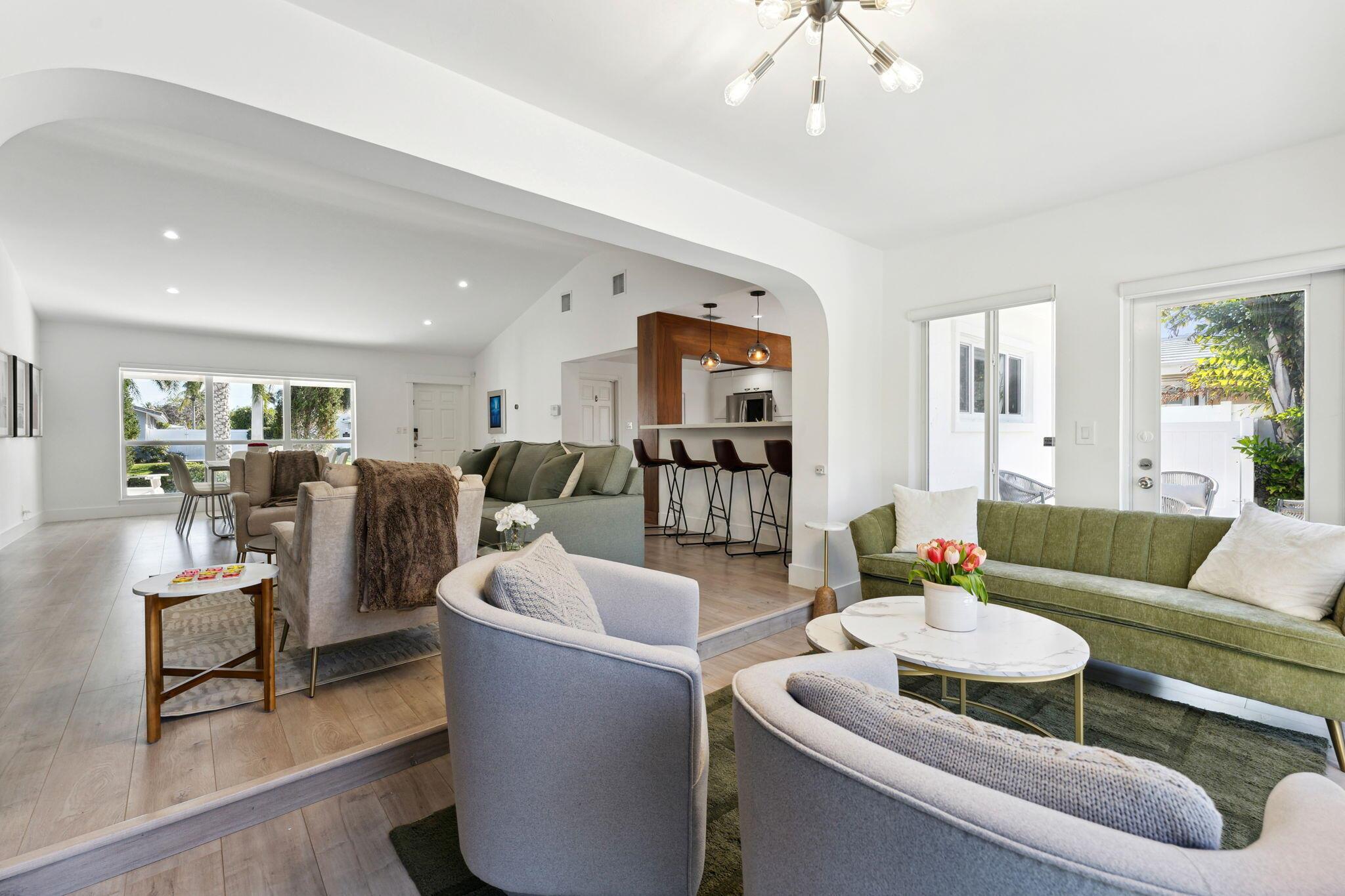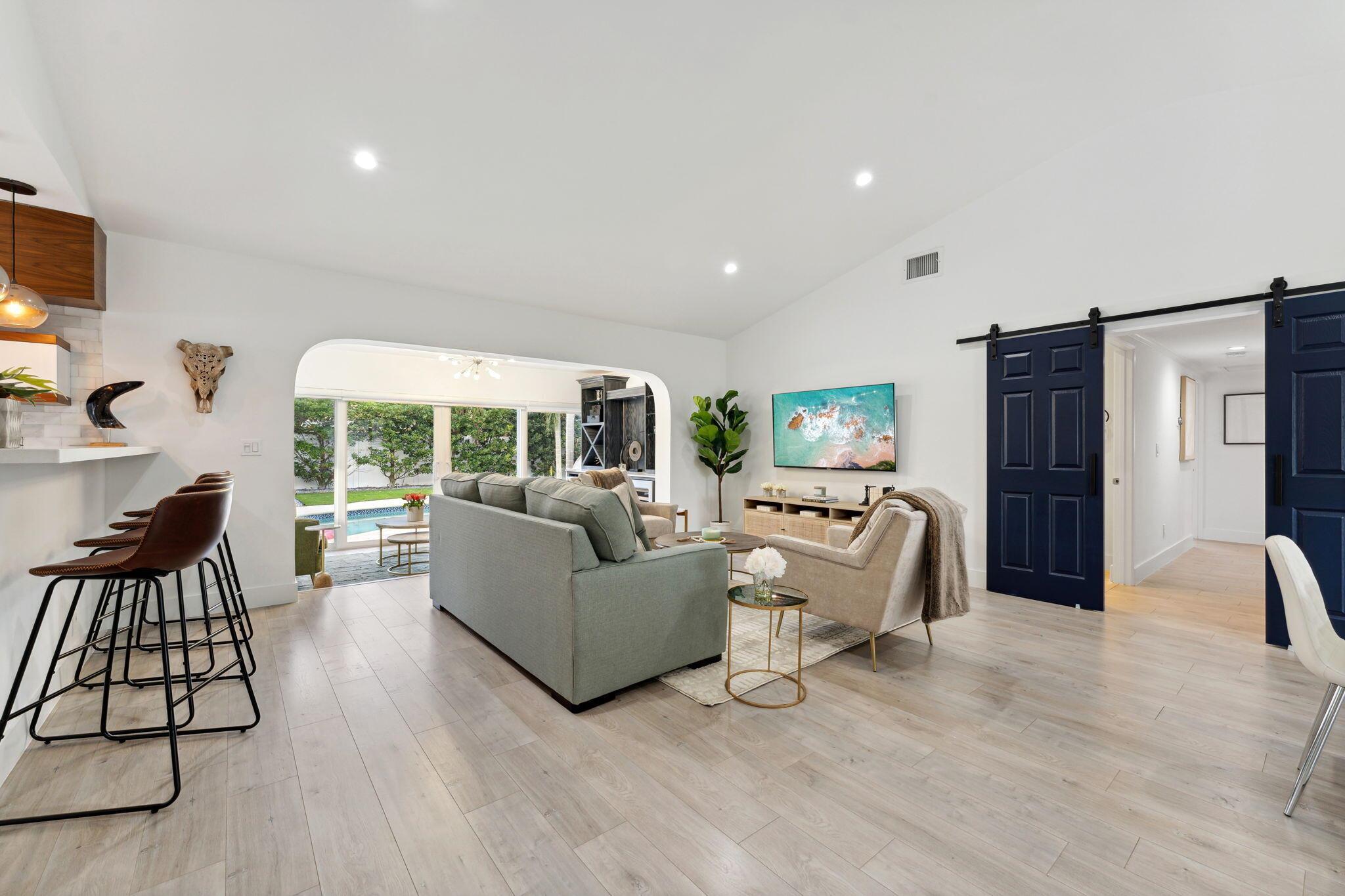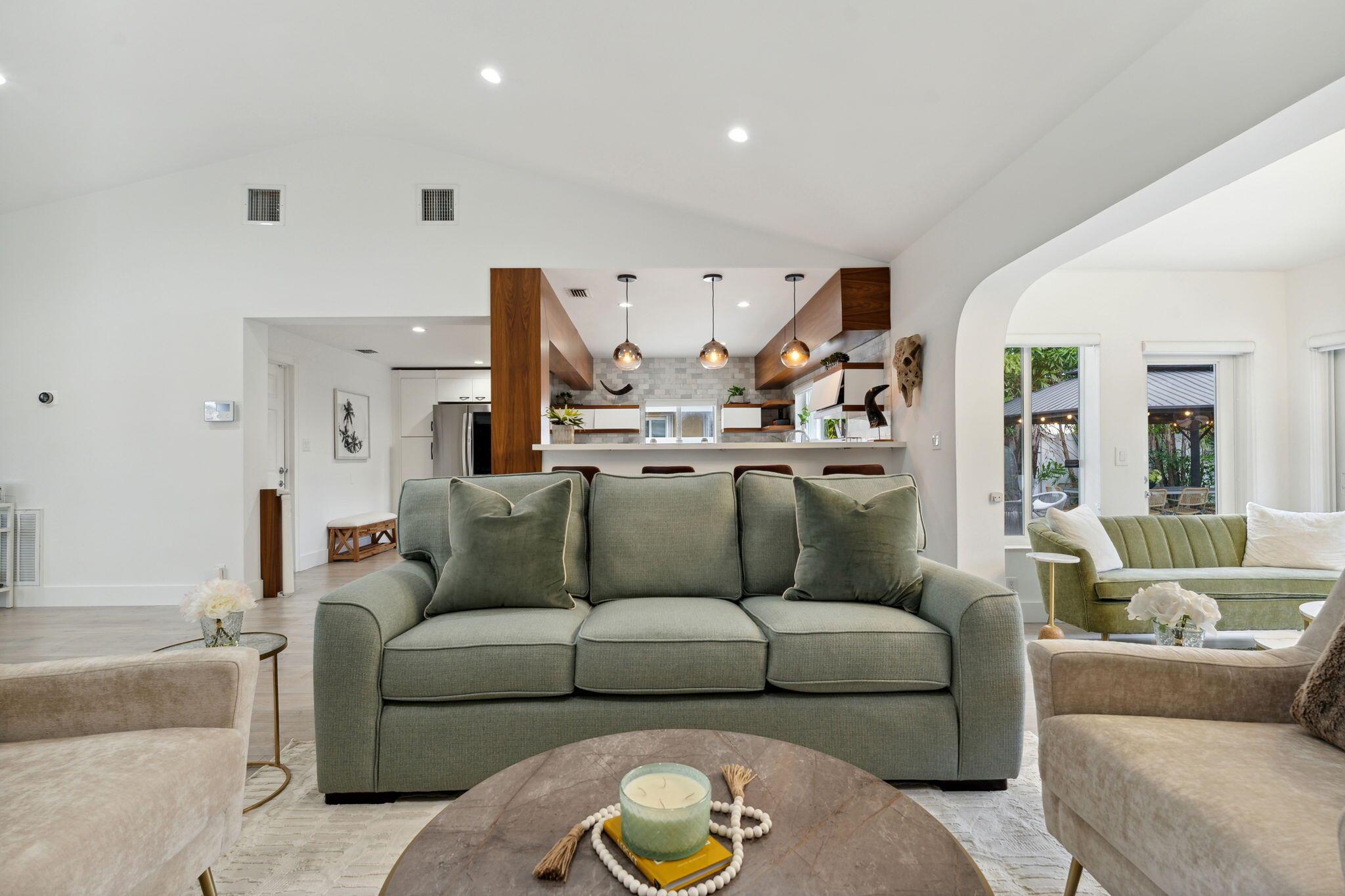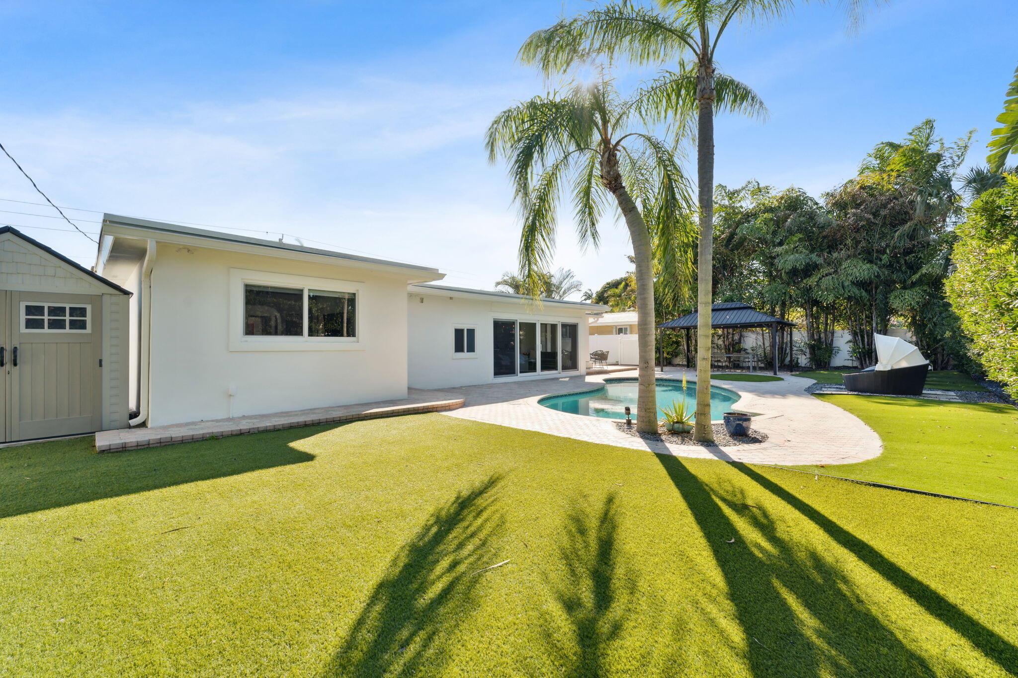 Stunning 3BR/2BA home in the prestigious Lighthouse Point! Currently an AirBnb but it can be your Dream Home. Step into a bright, open-concept great room with vaulted ceilings and views of the resort-style backyard. The chef’s kitchen boasts quartz countertops, custom cabinetry, Carrara marble backsplash, stainless steel appliances, and walnut-wrapped beams. Adjacent is a Florida room with a built-in bar and oversized sliders leading to the pool and electric-wired gazebo–perfect for entertaining.Enjoy low-maintenance living with artificial turf, a fully irrigated vegetable garden, and seamless indoor-outdoor flow. The oversized primary suite features a custom dressing room/office/nursery space, spa-style bath, double vanities, large shower, and direct pool access.