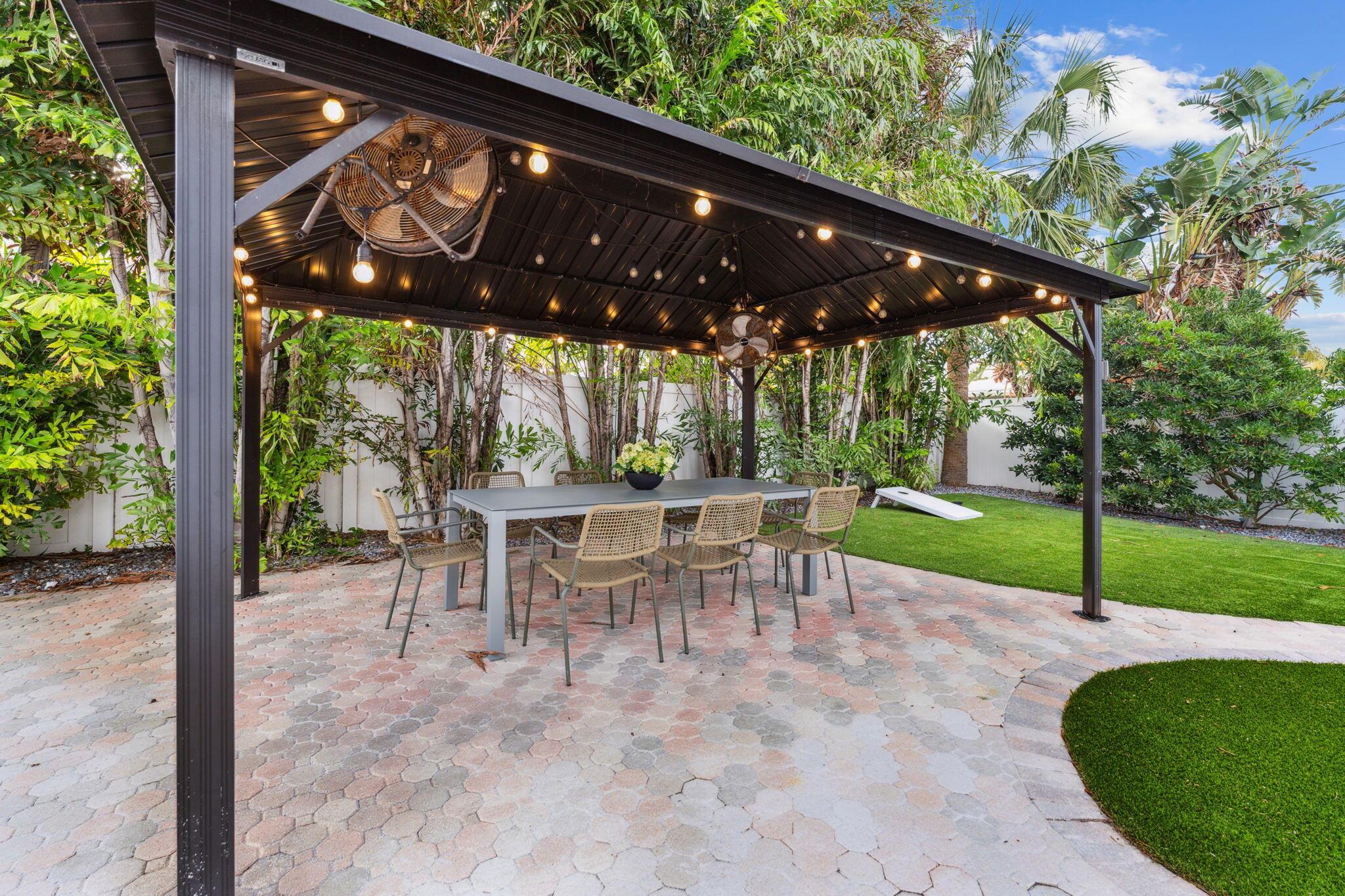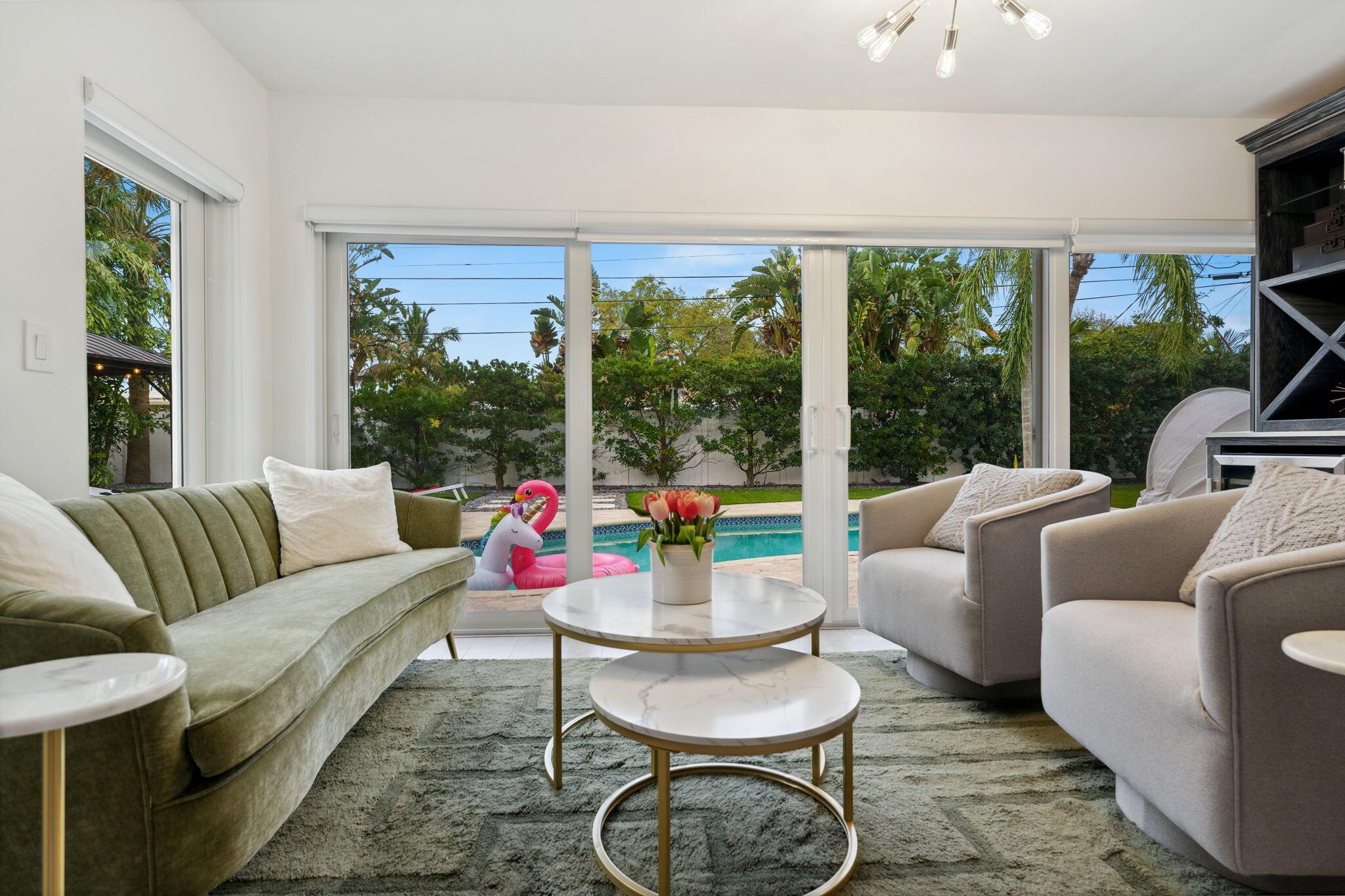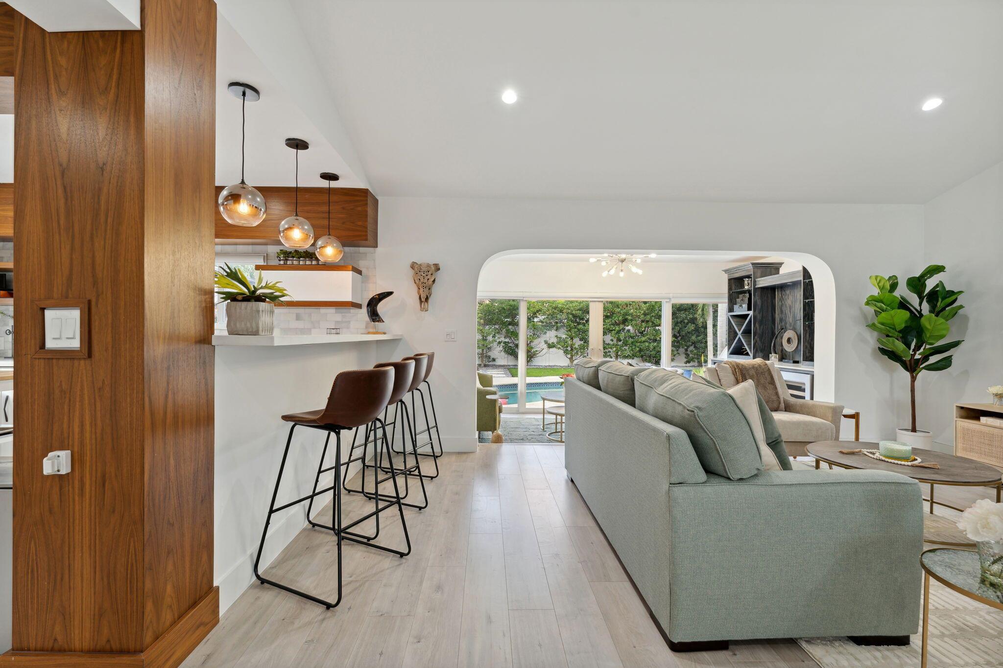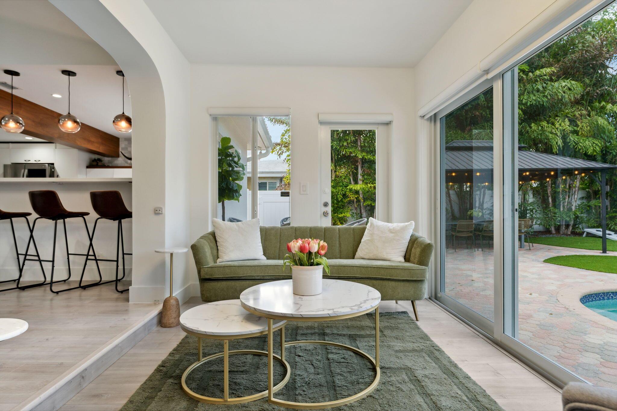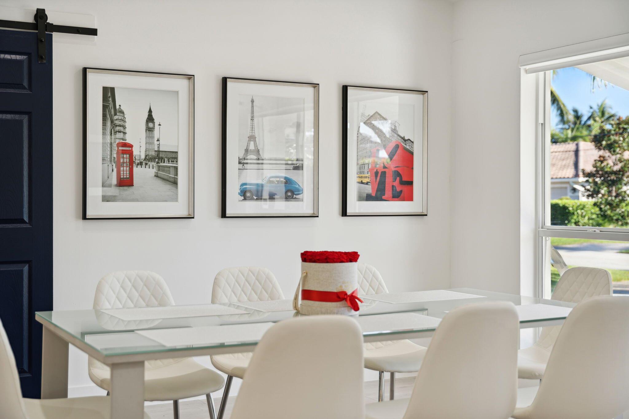 Stunning 3BR/2BA home in the prestigious Lighthouse Point! Currently an AirBnb but it can be your Dream Home. Step into a bright, open-concept great room with vaulted ceilings and views of the resort-style backyard. The chef’s kitchen boasts quartz countertops, custom cabinetry, Carrara marble backsplash, stainless steel appliances, and walnut-wrapped beams. Adjacent is a Florida room with a built-in bar and oversized sliders leading to the pool and electric-wired gazebo–perfect for entertaining.Enjoy low-maintenance living with artificial turf, a fully irrigated vegetable garden, and seamless indoor-outdoor flow. The oversized primary suite features a custom dressing room/office/nursery space, spa-style bath, double vanities, large shower, and direct pool access.