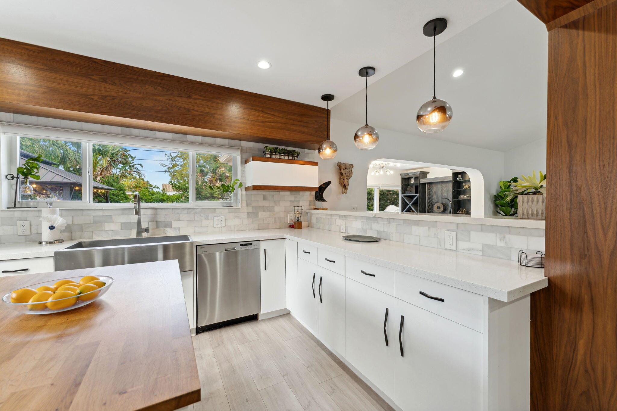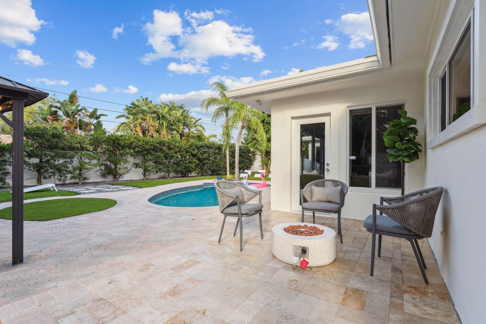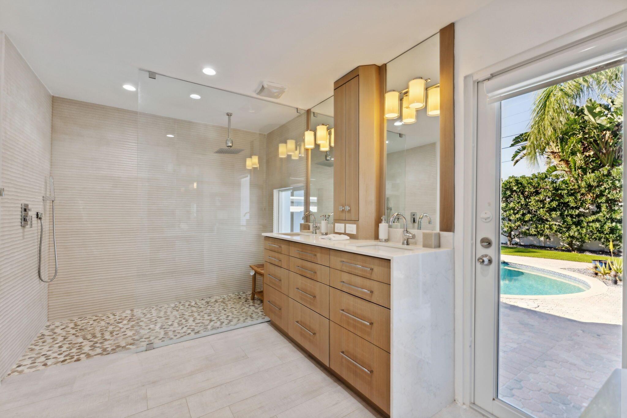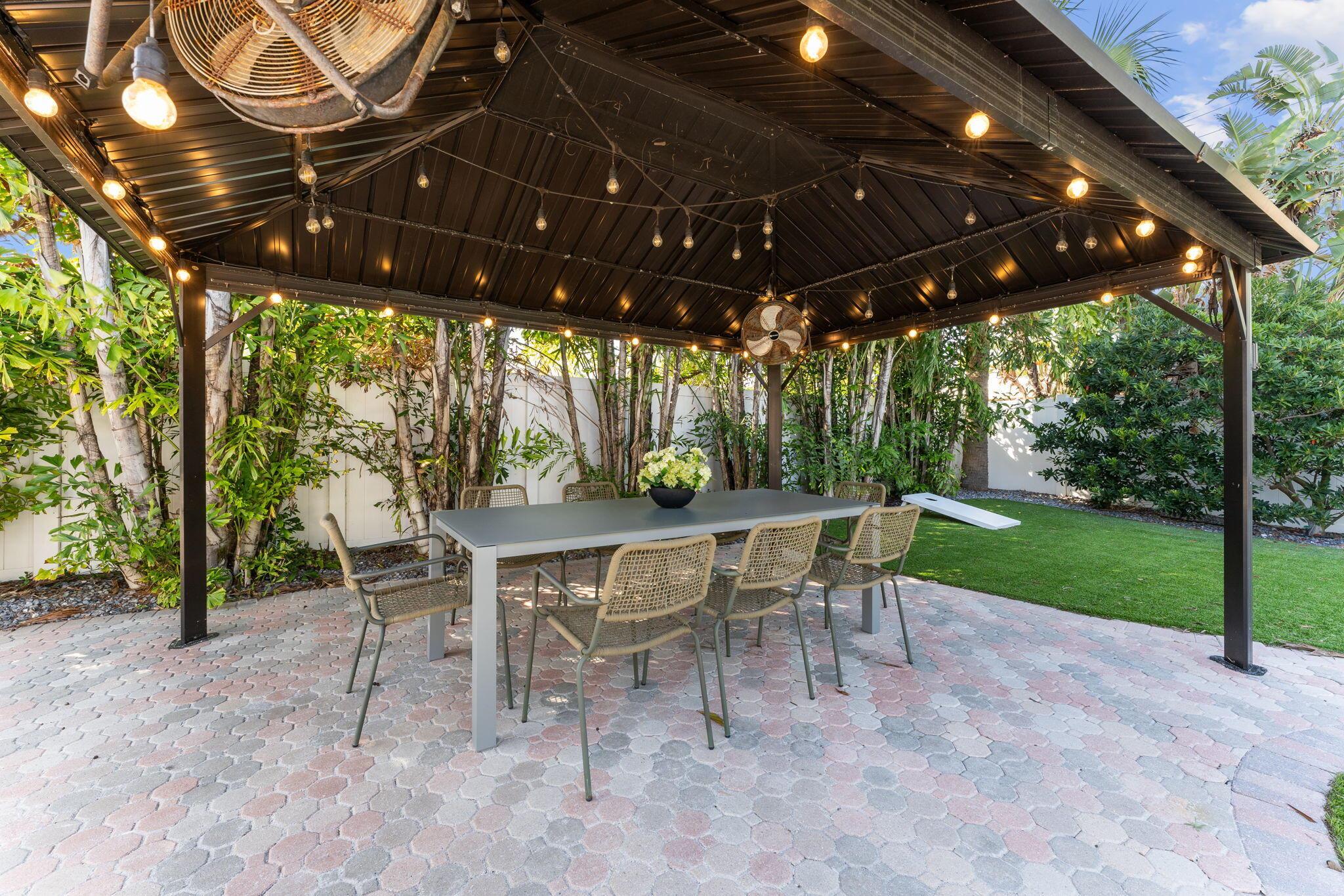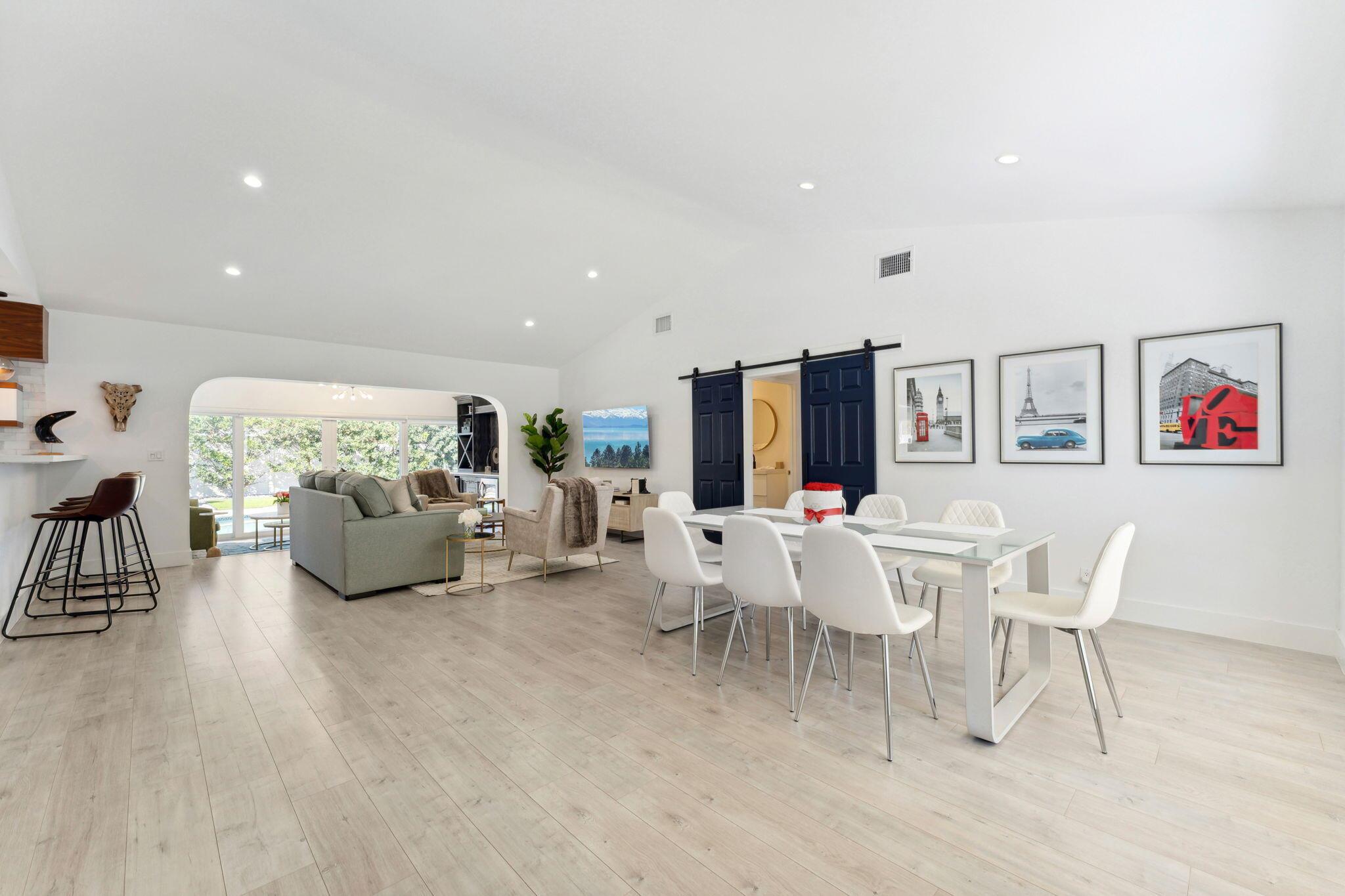 Stunning 3BR/2BA home in the prestigious Lighthouse Point! Currently an AirBnb but it can be your Dream Home. Step into a bright, open-concept great room with vaulted ceilings and views of the resort-style backyard. The chef’s kitchen boasts quartz countertops, custom cabinetry, Carrara marble backsplash, stainless steel appliances, and walnut-wrapped beams. Adjacent is a Florida room with a built-in bar and oversized sliders leading to the pool and electric-wired gazebo–perfect for entertaining.Enjoy low-maintenance living with artificial turf, a fully irrigated vegetable garden, and seamless indoor-outdoor flow. The oversized primary suite features a custom dressing room/office/nursery space, spa-style bath, double vanities, large shower, and direct pool access.