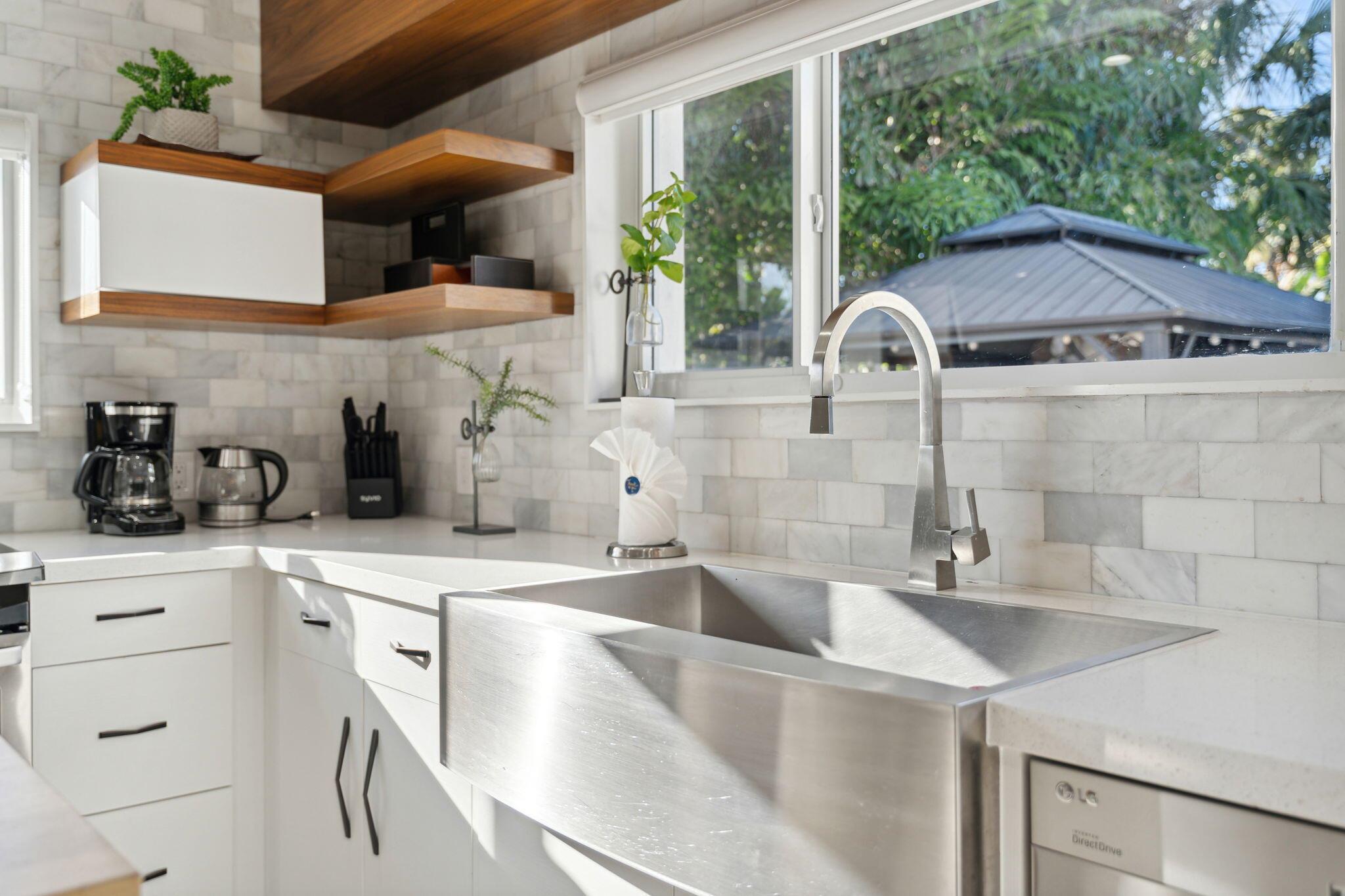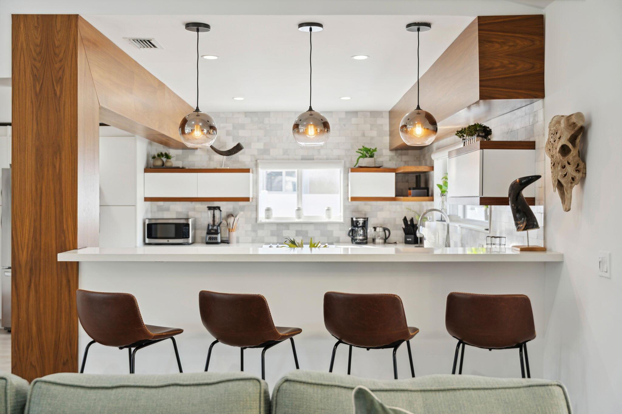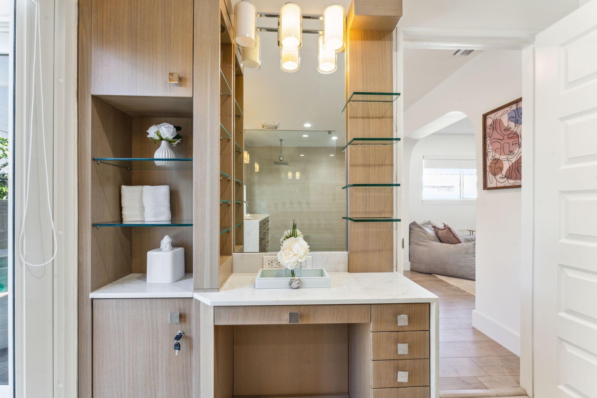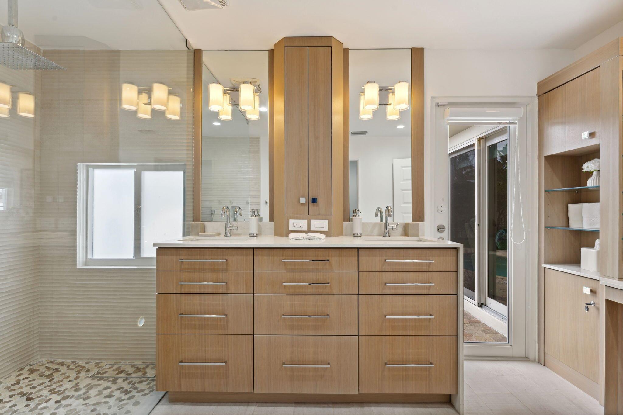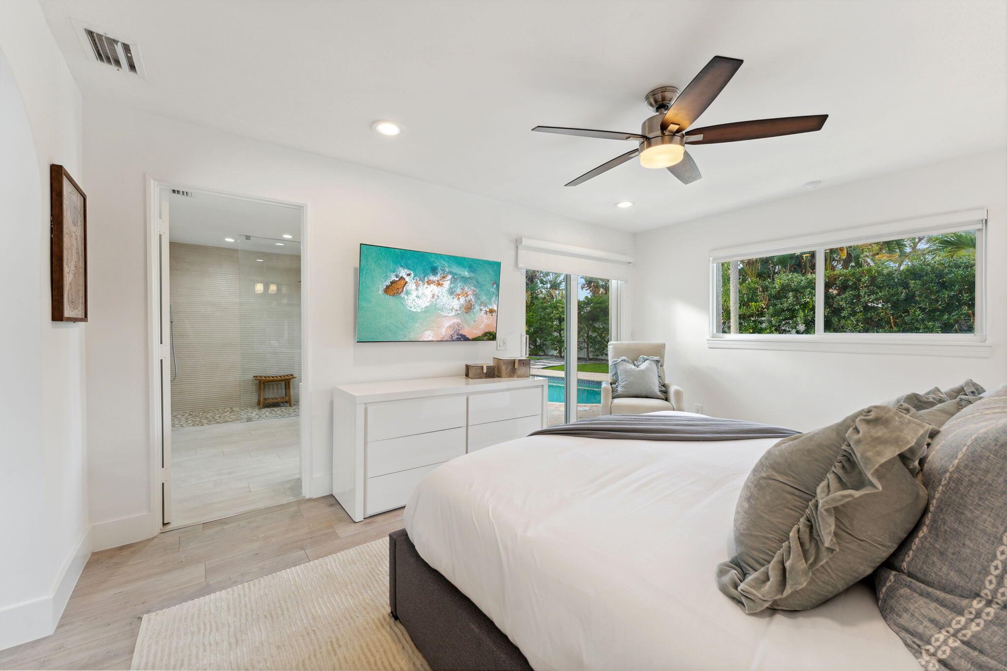 Stunning 3BR/2BA home in the prestigious Lighthouse Point! Currently an AirBnb but it can be your Dream Home. Step into a bright, open-concept great room with vaulted ceilings and views of the resort-style backyard. The chef’s kitchen boasts quartz countertops, custom cabinetry, Carrara marble backsplash, stainless steel appliances, and walnut-wrapped beams. Adjacent is a Florida room with a built-in bar and oversized sliders leading to the pool and electric-wired gazebo–perfect for entertaining.Enjoy low-maintenance living with artificial turf, a fully irrigated vegetable garden, and seamless indoor-outdoor flow. The oversized primary suite features a custom dressing room/office/nursery space, spa-style bath, double vanities, large shower, and direct pool access.