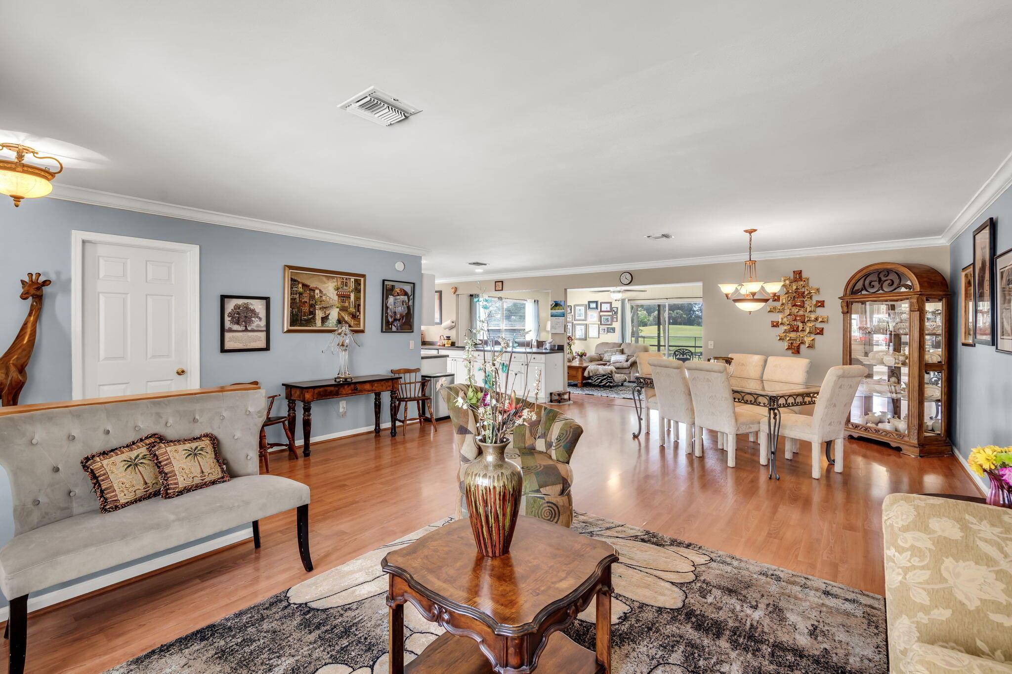 Welcome to your perfect Florida retreat! This beautifully maintained 3-bedroom, 2-bathroom home is located right by the second hole of the Palm Beach National Golf Course, offering stunning views of the green. Inside, you’ll find a spacious open-concept floor plan with a large kitchen, perfect for cooking and entertaining. The home features stainless steel appliances and a split layout for added privacy. Key updates include a 2023 AC, a 2020 water heater, a 2021 fence, and a new garage door. The septic was last cleaned in 2020, and the new washer and dryer are included. With no HOA and no membership fees, this home offers ultimate convenience and freedom.