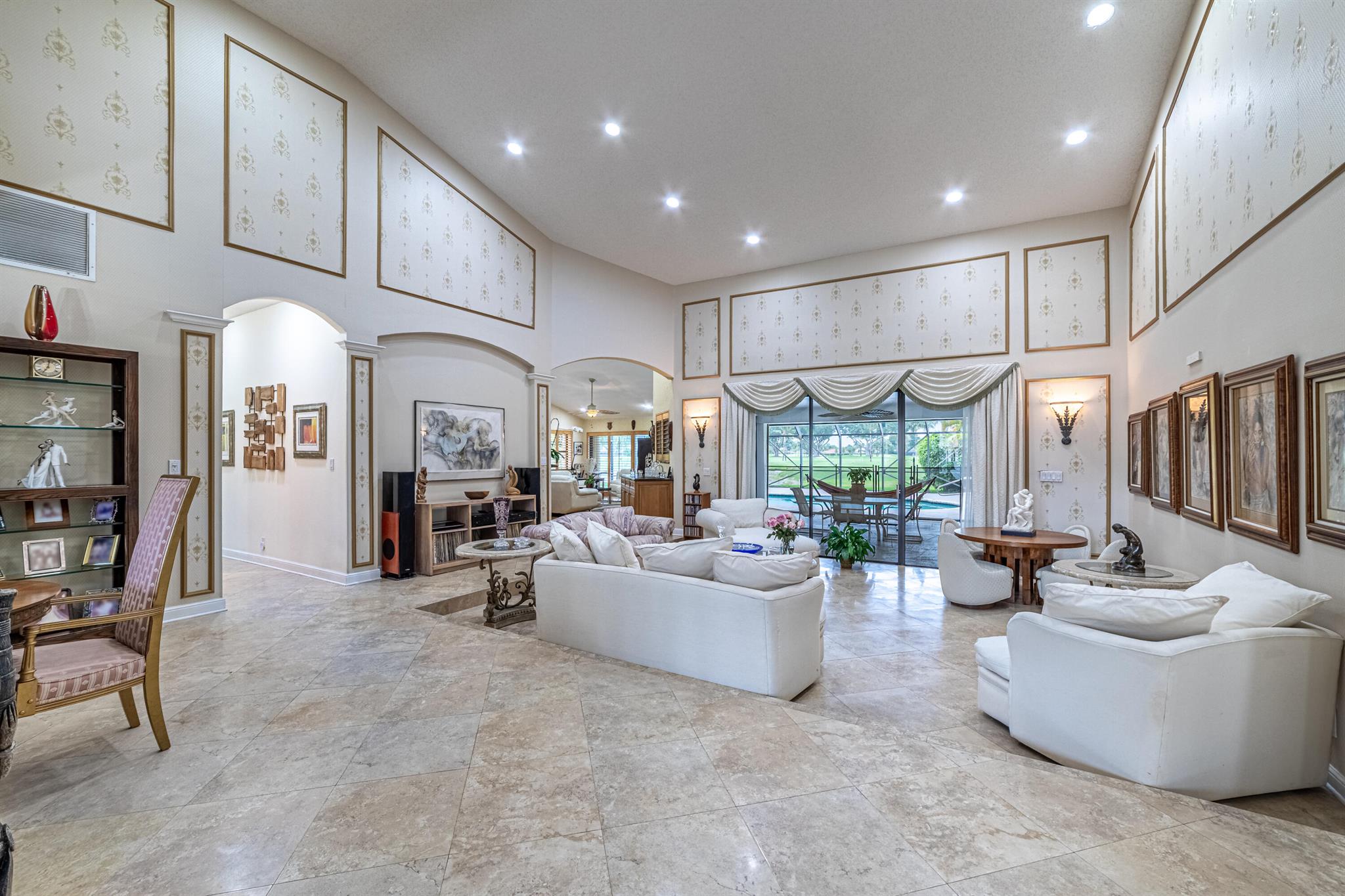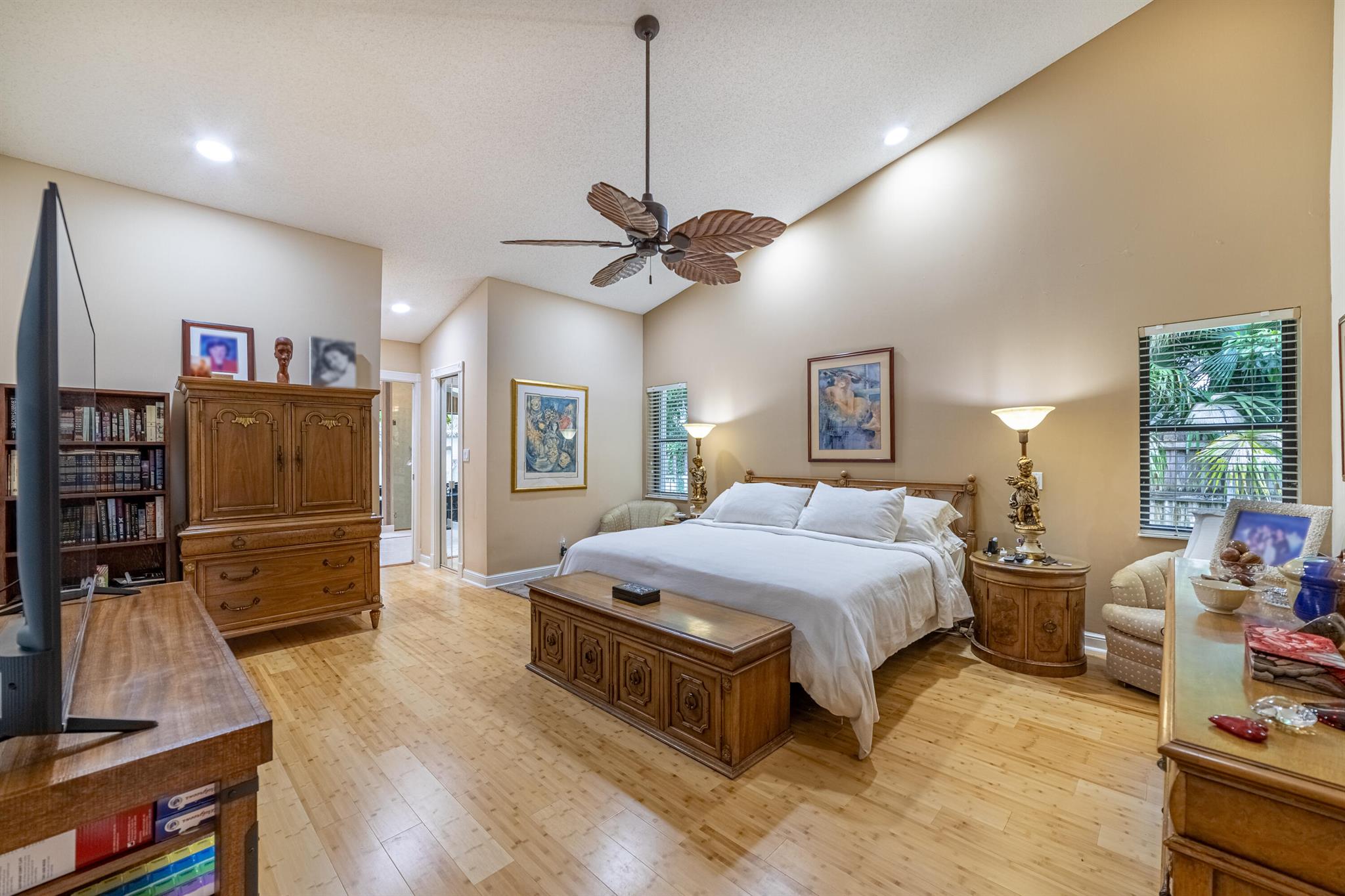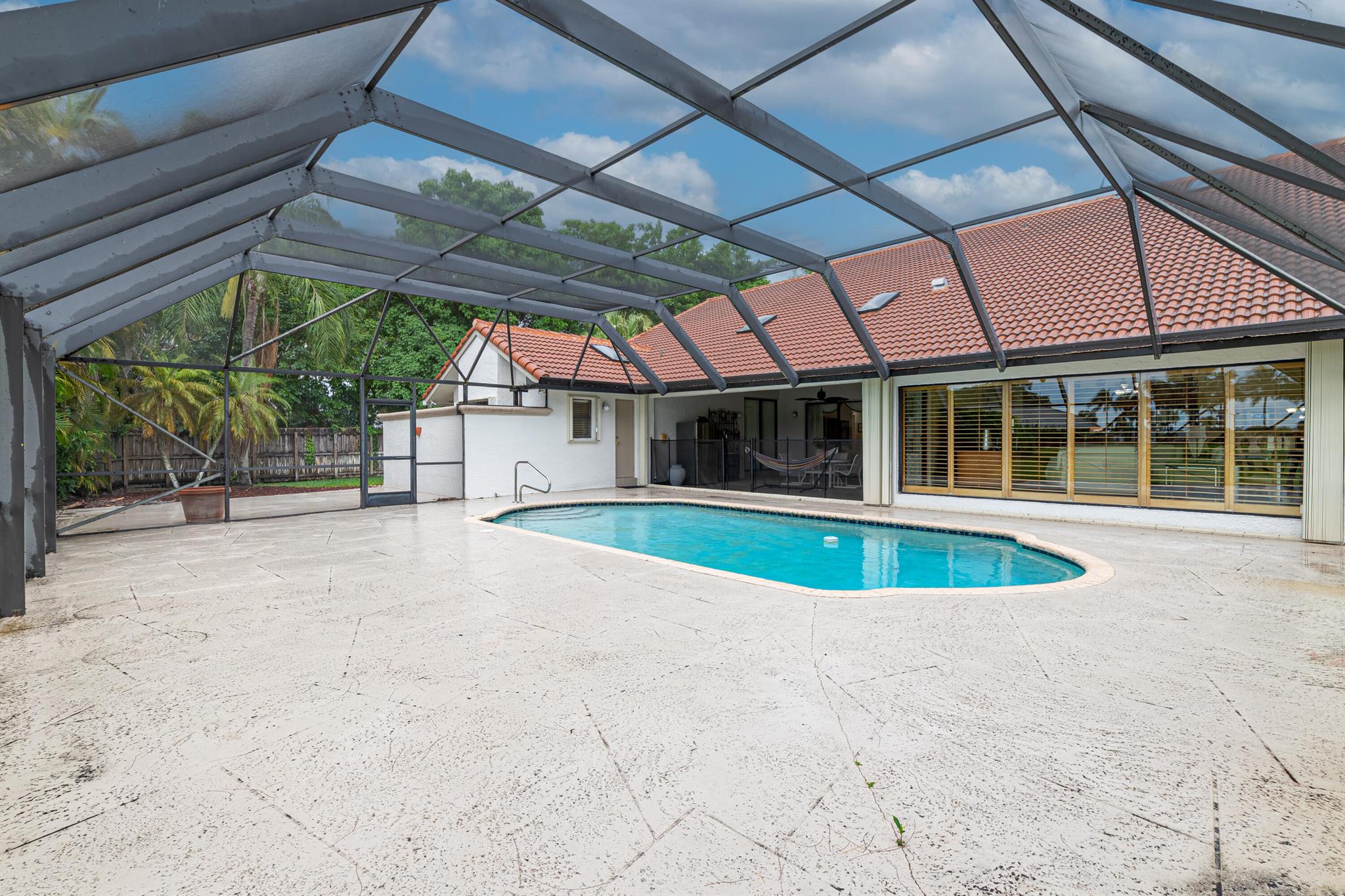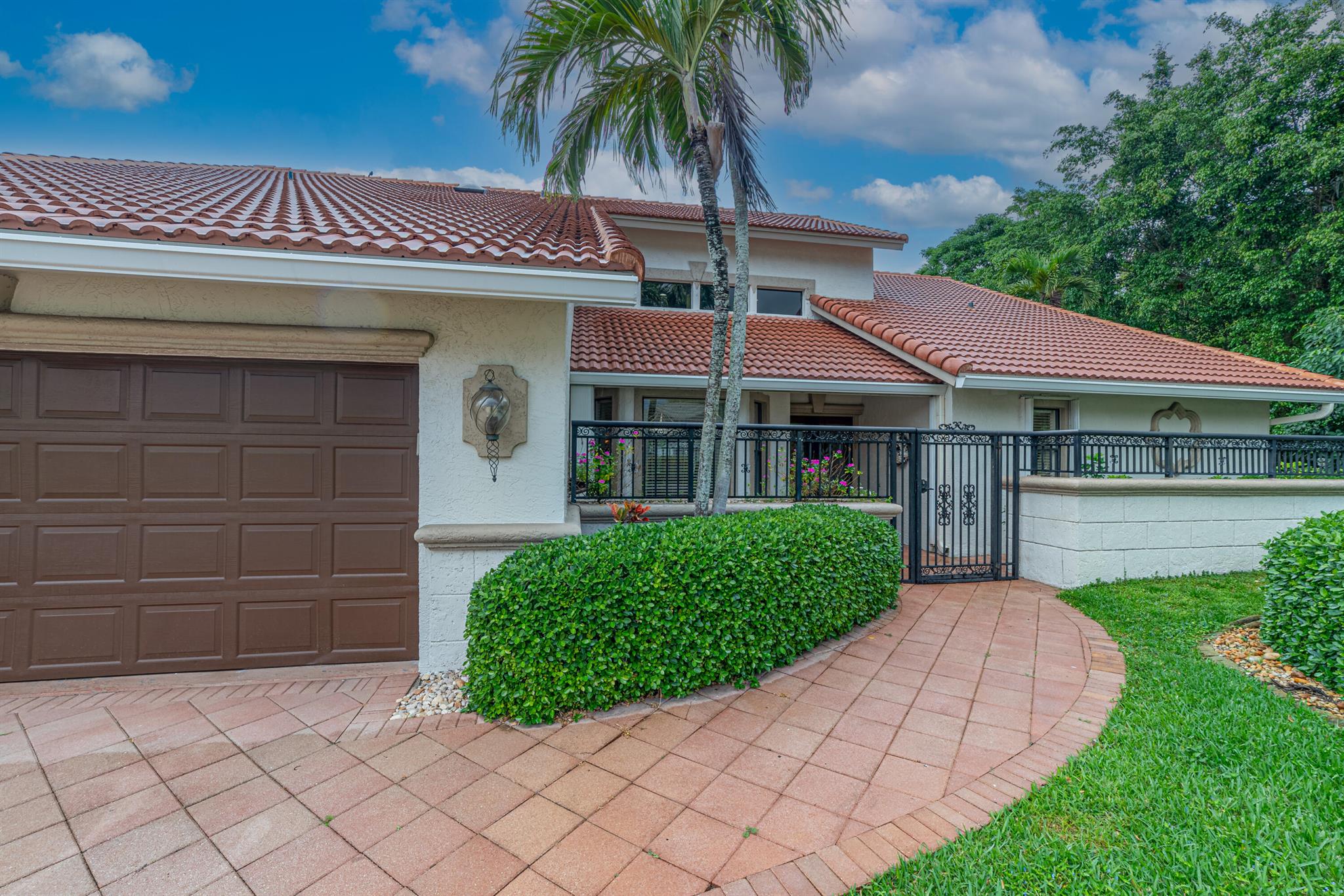 GORGEOUS HOME SITED CLOSE TO THE CLUB, OVERLOOKING A LAKE AND A GOLF COURSE IN THE BEAUTIFUL BOCA WOODS COUNTRY CLUB! THIS HOUSE WILL SATISFY ANY FANATIC GOLFER. ORIGINALLY DESIGNED BY THE FIRST OWNER THIS HOME HAS A PRIVATE GATED COURT YARD ENTRANCE, A VERY SPACIOUS LIVING ROOM WITH CATHEDRAL CEILINGS, WOOD FLOORS AND SATURNIA FLOORS, OPEN CONCEPT KITCHEN WITH A SNACK BAR A WET BAR, A BREAKFAST NOOK. WITH ALMOST 3000 SQUARE FEET UNDER AIR THIS HOUSE ACCOMMODATES MANY GUESTS ON SPECIAL OCCASIONS. A GIGANTIC OUTSIDE COVERED PATIO HAS A BUILT IN BARBECUE AND A GATE TO SECURE YOUR PETS OR CHILDREN, THIS IS A VERY SPECIAL PLACE WHERE TO FARNIENTE CONTEMPLATING THE POOL AND LAKE VIEW. NEW BAMBOOS FLOORING IN THE 3 BEDROOMS INCLUDING THE MASTER .NEW ROOF 2023 PLUS SET