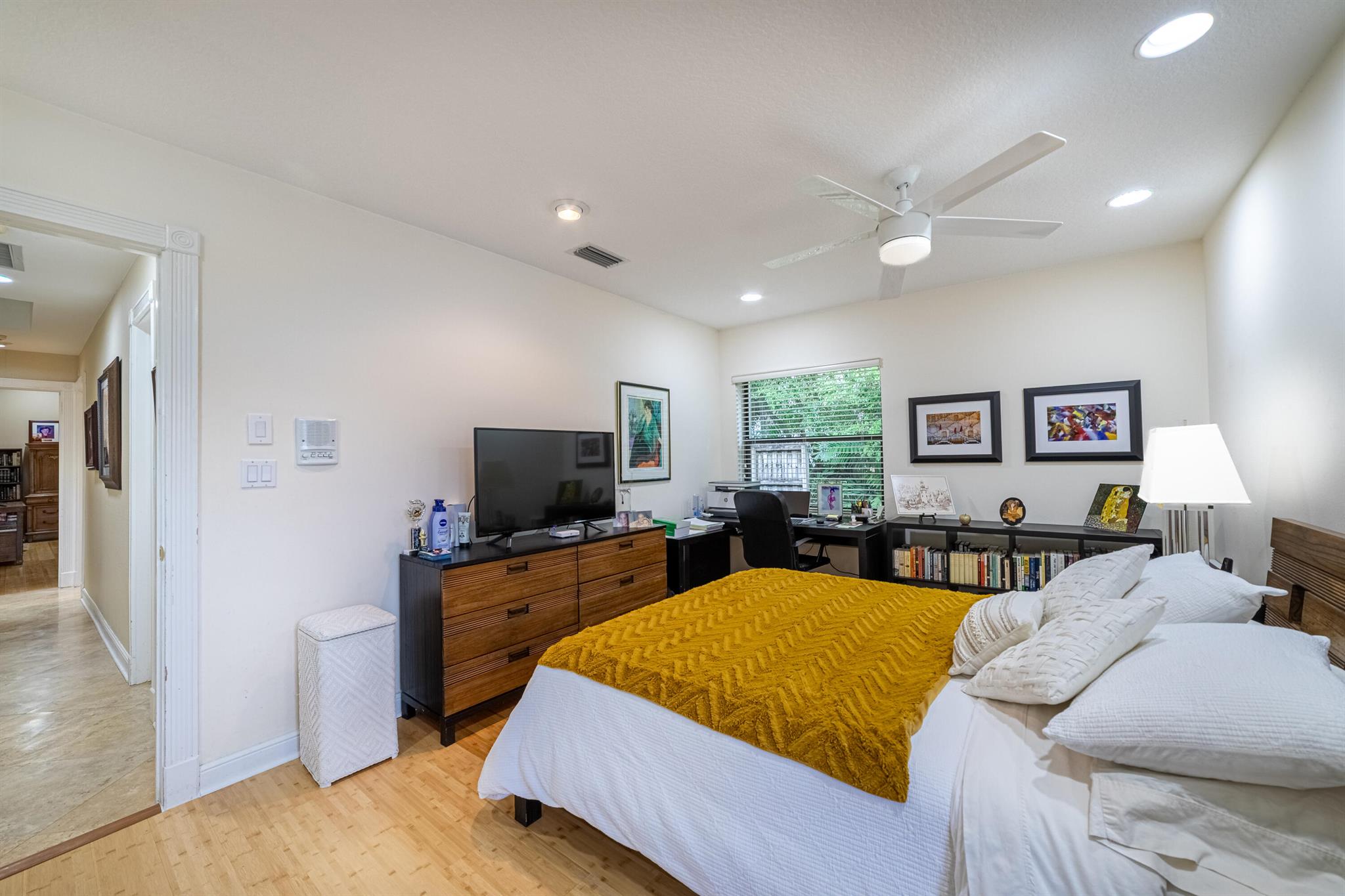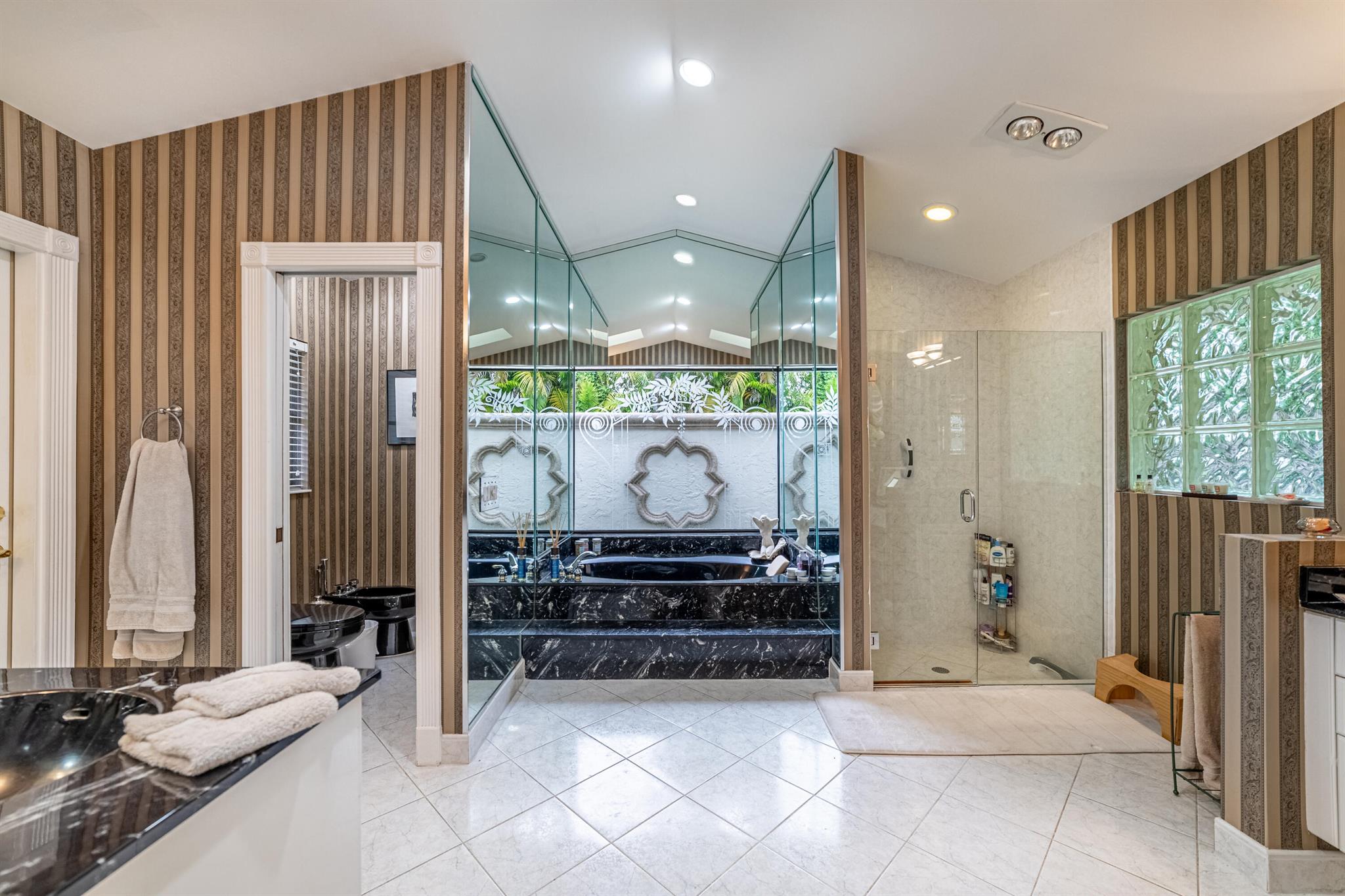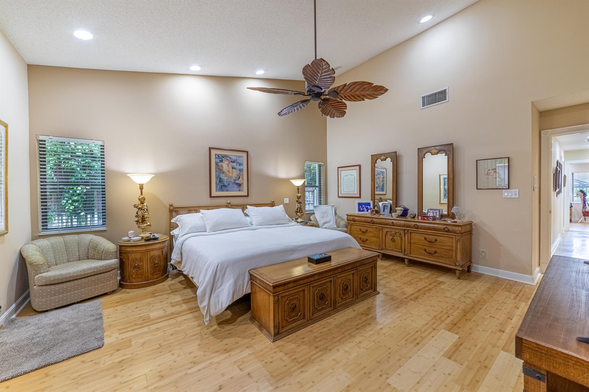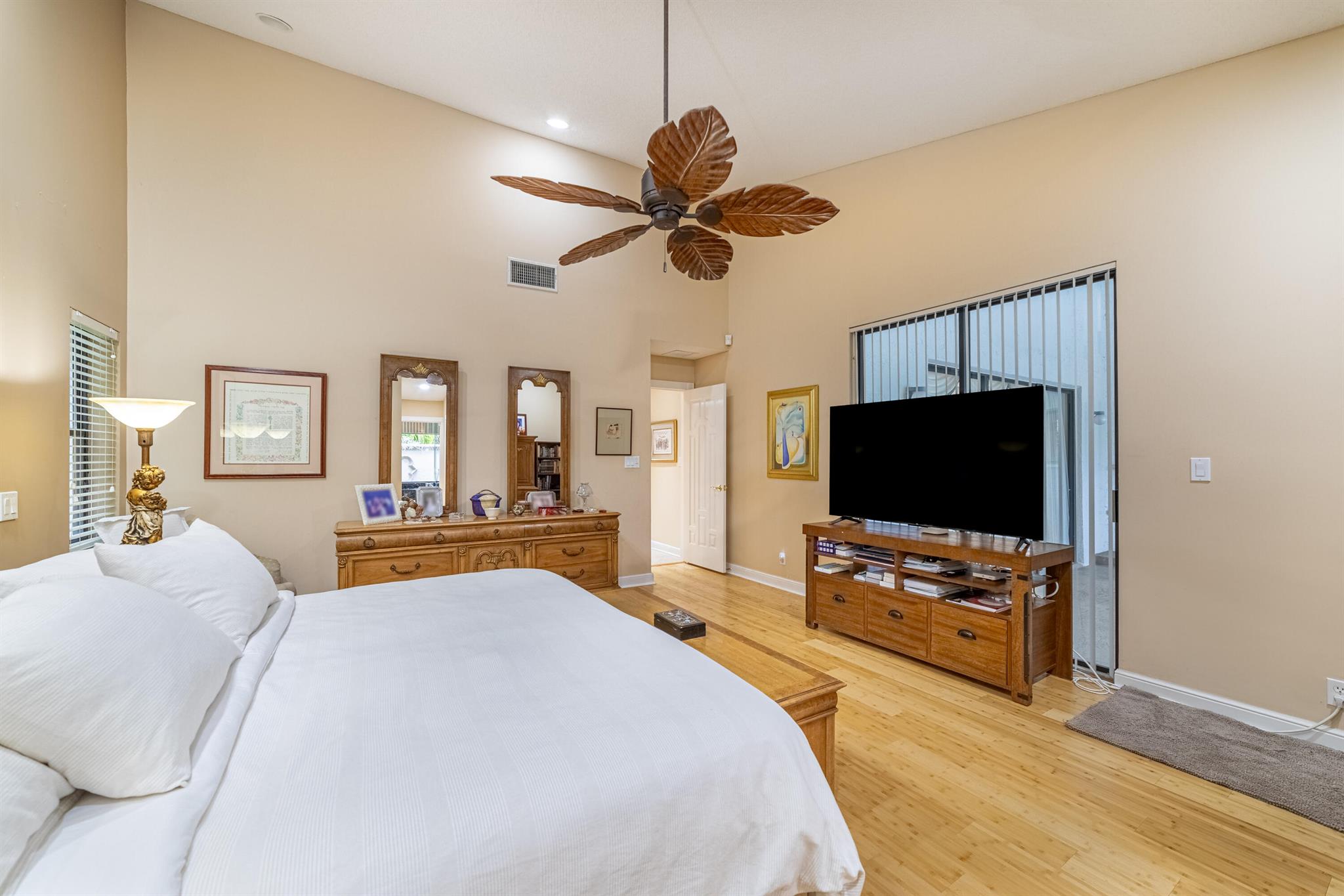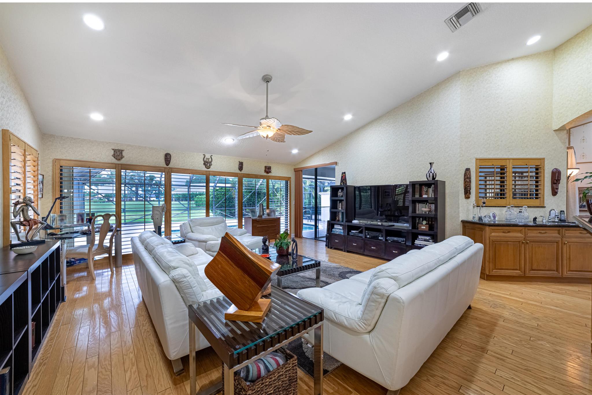 GORGEOUS HOME SITED CLOSE TO THE CLUB, OVERLOOKING A LAKE AND A GOLF COURSE IN THE BEAUTIFUL BOCA WOODS COUNTRY CLUB! THIS HOUSE WILL SATISFY ANY FANATIC GOLFER. ORIGINALLY DESIGNED BY THE FIRST OWNER THIS HOME HAS A PRIVATE GATED COURT YARD ENTRANCE, A VERY SPACIOUS LIVING ROOM WITH CATHEDRAL CEILINGS, WOOD FLOORS AND SATURNIA FLOORS, OPEN CONCEPT KITCHEN WITH A SNACK BAR A WET BAR, A BREAKFAST NOOK. WITH ALMOST 3000 SQUARE FEET UNDER AIR THIS HOUSE ACCOMMODATES MANY GUESTS ON SPECIAL OCCASIONS. A GIGANTIC OUTSIDE COVERED PATIO HAS A BUILT IN BARBECUE AND A GATE TO SECURE YOUR PETS OR CHILDREN, THIS IS A VERY SPECIAL PLACE WHERE TO FARNIENTE CONTEMPLATING THE POOL AND LAKE VIEW. NEW BAMBOOS FLOORING IN THE 3 BEDROOMS INCLUDING THE MASTER .NEW ROOF 2023 PLUS SET