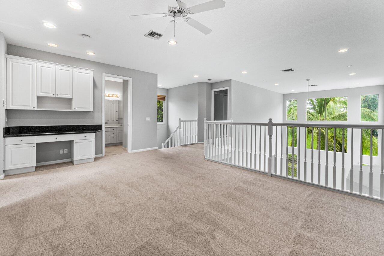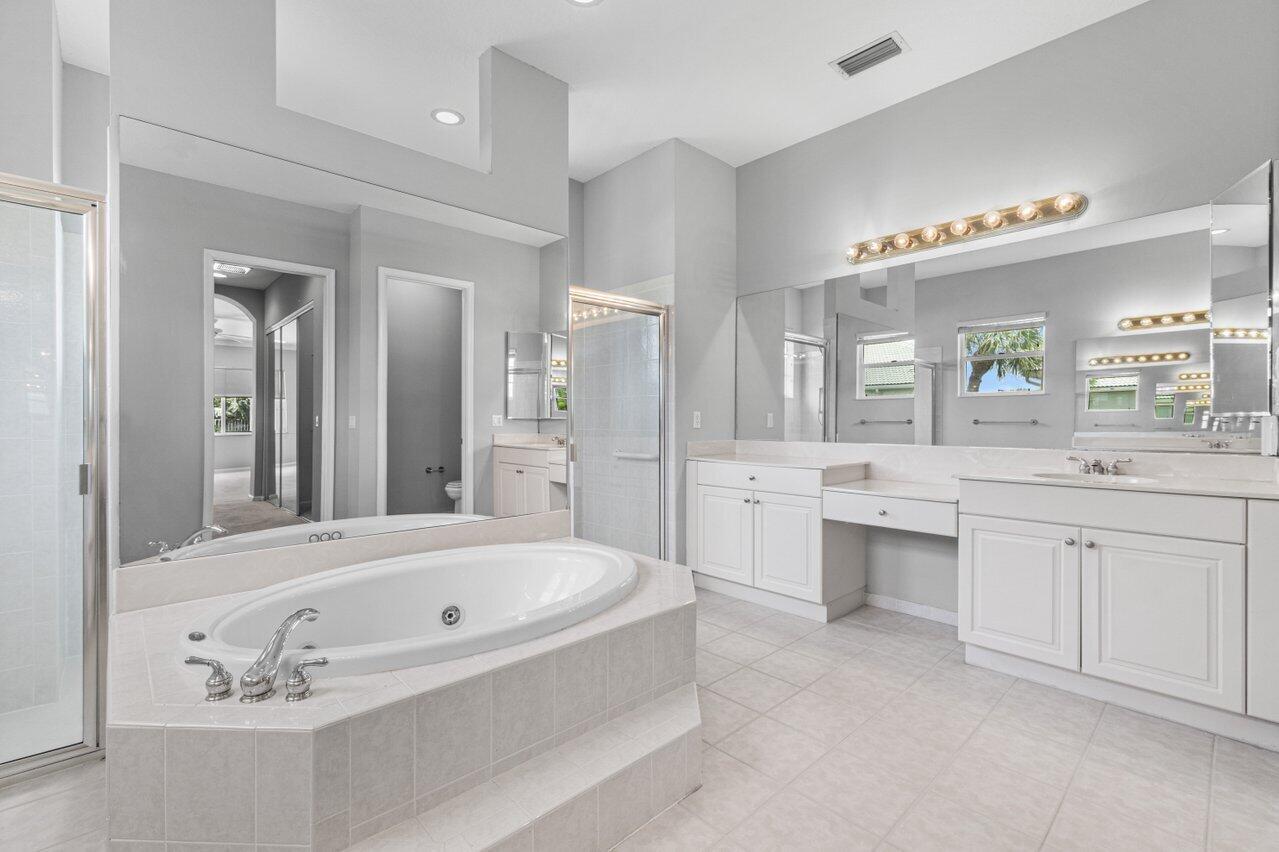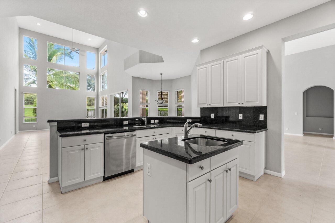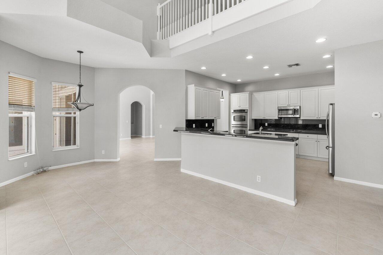 Highly desirable St. Martin model available in the premier gated community of The Isles at Wellington. Enjoy oversized 1/3 acre lot w/ Southern exposure. Floor plan lives large and open! Primary suite is completely private w/ large en-suite bath, huge shower, double sinks w/ vanity and jetted tub. Two huge closets! You have all the rooms for entertaining in this layout. Large island kitchen w/ prep sink, wall ovens and cooktop in neutral palate of white cabinets and black granite. Walk-in pantry. Soaring ceilings in the family room add to the grandeur. Convenient guest suite w/ full bath is also on main and bath doubles as a cabana bath. Upstairs consists of a large loft perfect for a second living area, 3 bedrooms and 2 bathrooms. One of the bedrooms has an en-suite.