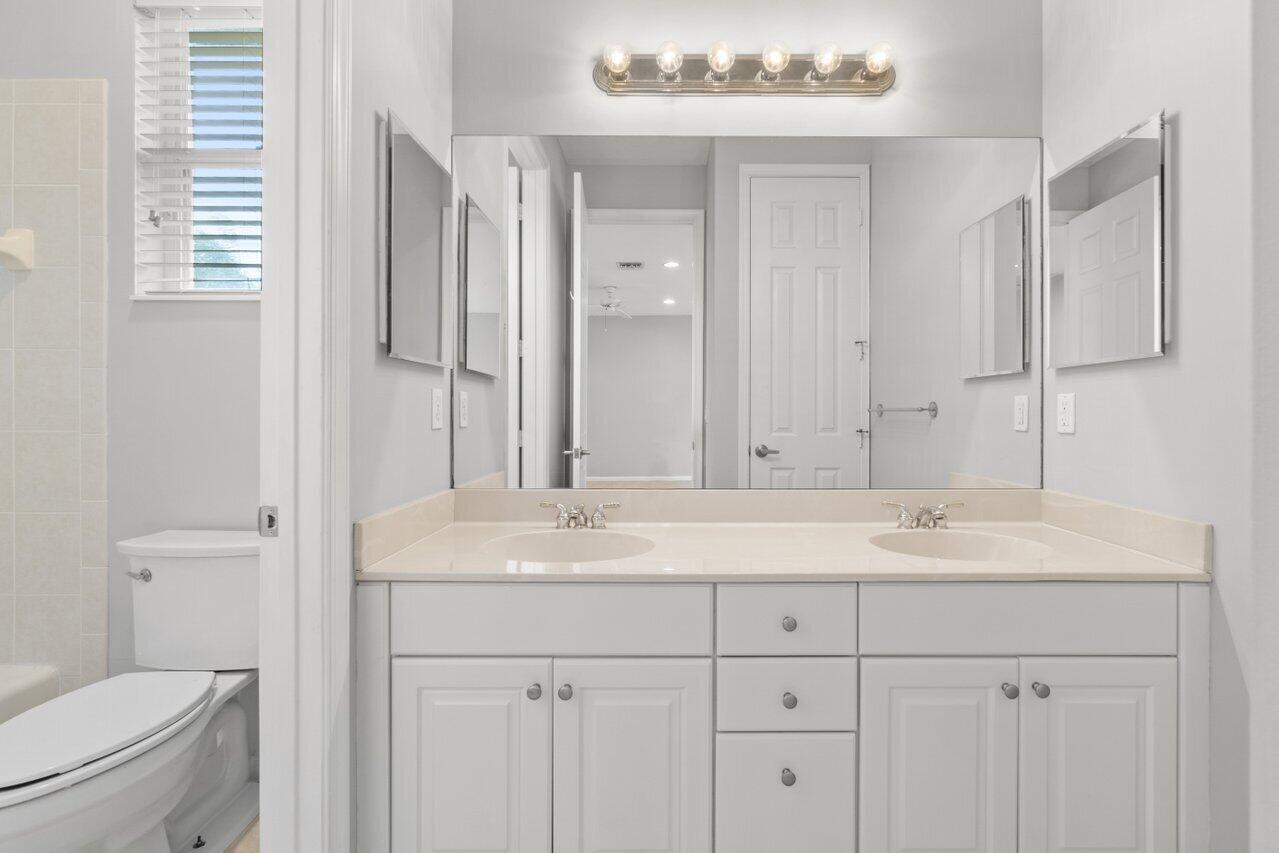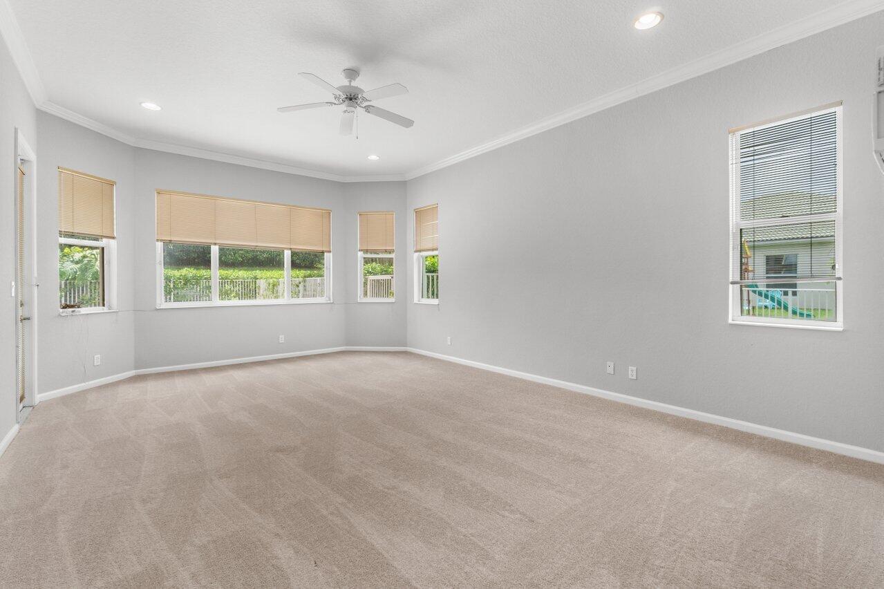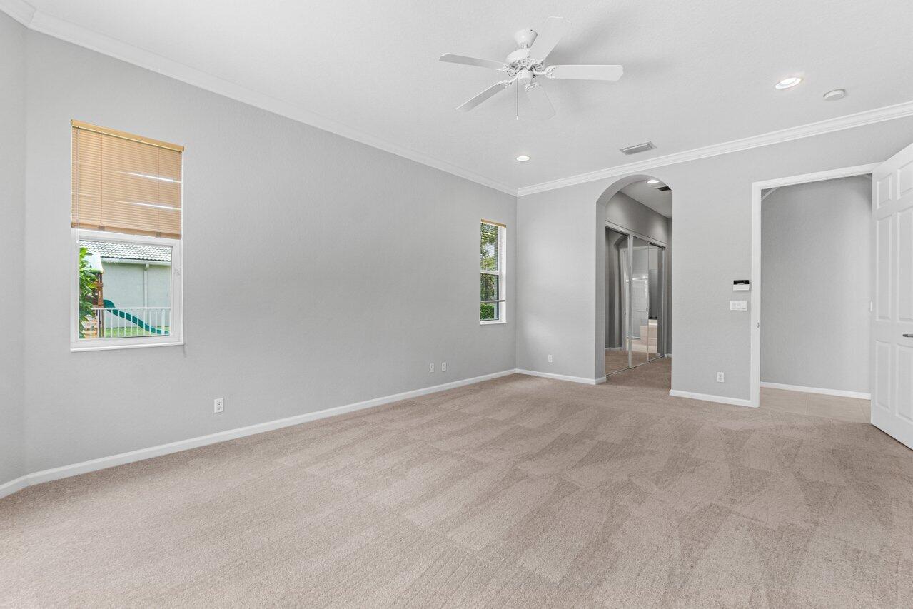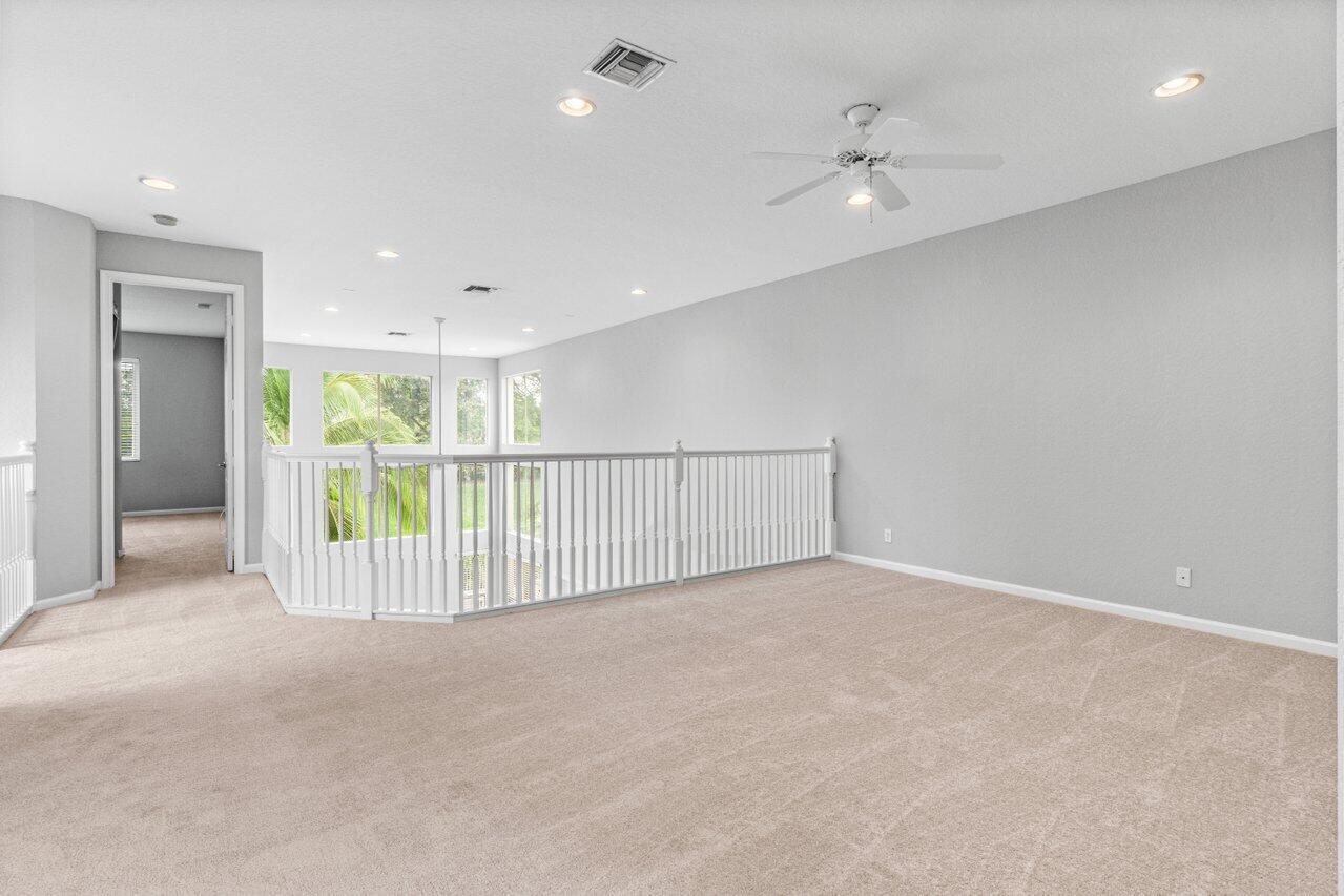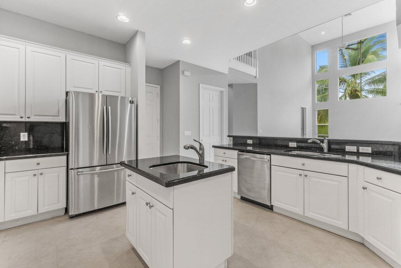 Highly desirable St. Martin model available in the premier gated community of The Isles at Wellington. Enjoy oversized 1/3 acre lot w/ Southern exposure. Floor plan lives large and open! Primary suite is completely private w/ large en-suite bath, huge shower, double sinks w/ vanity and jetted tub. Two huge closets! You have all the rooms for entertaining in this layout. Large island kitchen w/ prep sink, wall ovens and cooktop in neutral palate of white cabinets and black granite. Walk-in pantry. Soaring ceilings in the family room add to the grandeur. Convenient guest suite w/ full bath is also on main and bath doubles as a cabana bath. Upstairs consists of a large loft perfect for a second living area, 3 bedrooms and 2 bathrooms. One of the bedrooms has an en-suite.