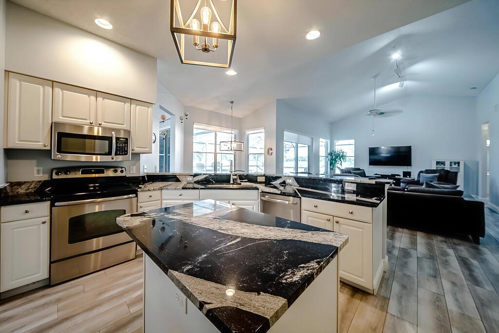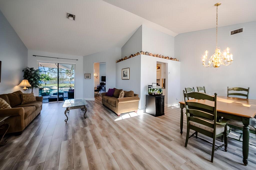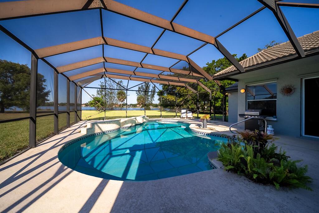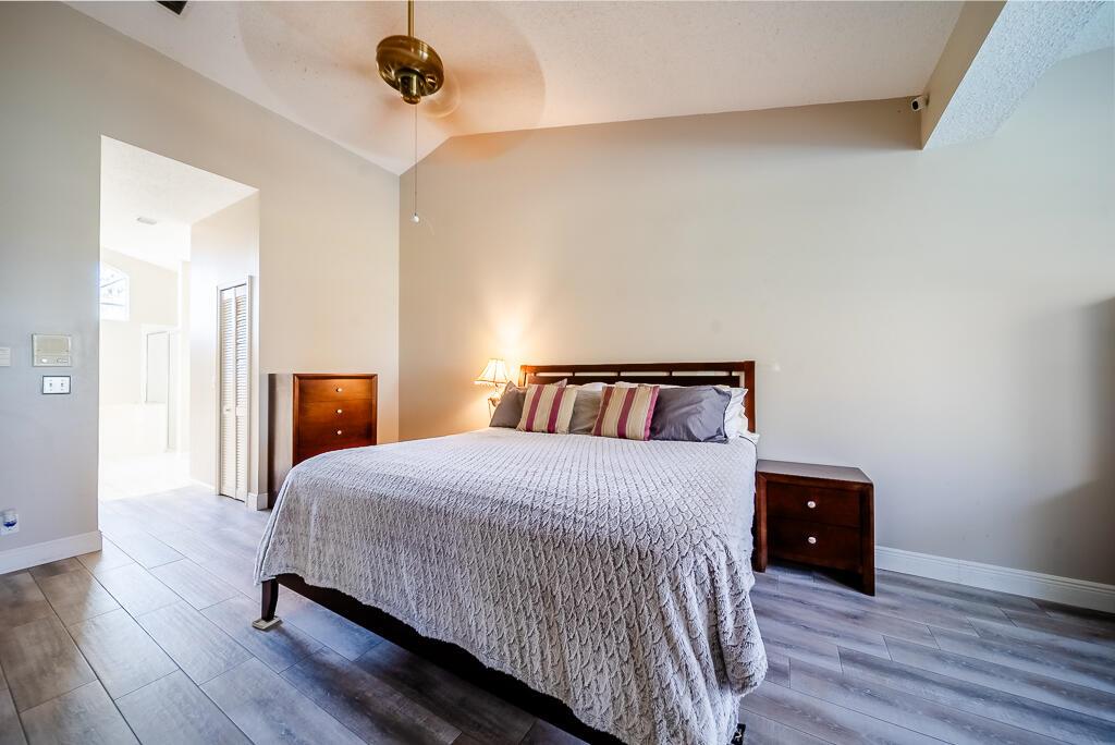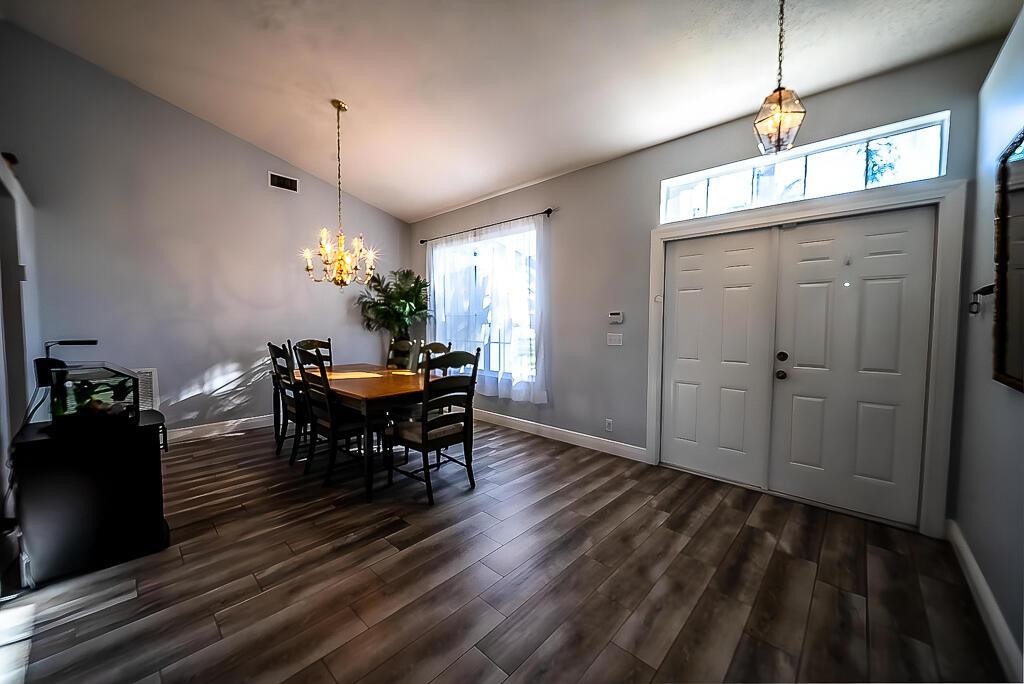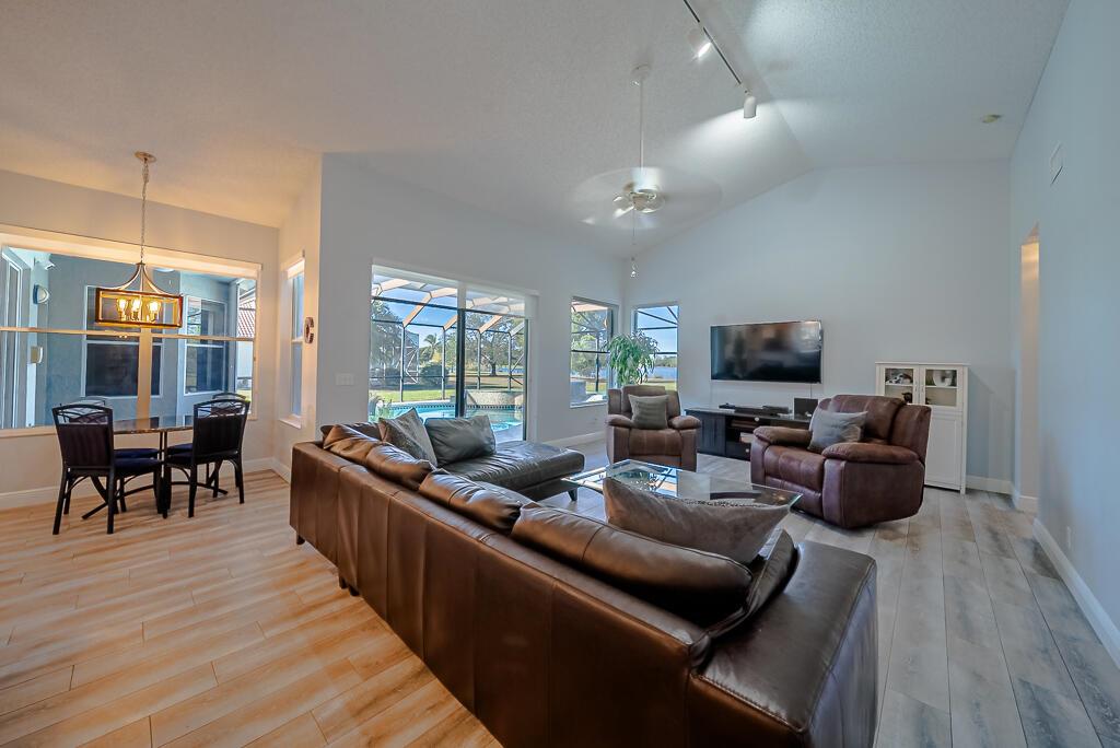 Stunning POOL AND WATERFRONT Home in Legend Lake Estates! Welcome to this beautiful, SINGLE STORY home located in the desirable Legend Lake Estates. The 4 bedroom, 3 bathroom , 2.5 oversized garage residence offers a spacious 2,286 sq ft of living space, nestled on a generous .62-acre lot with breathtaking lake views. From its elevated ceilings to its modern amenities, this home provides both comfort and style. Upon entering, you’ll be greeted by elevated ceilings, neutral paint tones and tile plank flooring throughout. The open floor plan includes a formal dining space, living room, and a cozy family room–perfect for both relaxation and entertaining. Ceiling fans and a central vacuum system add to the convenience.