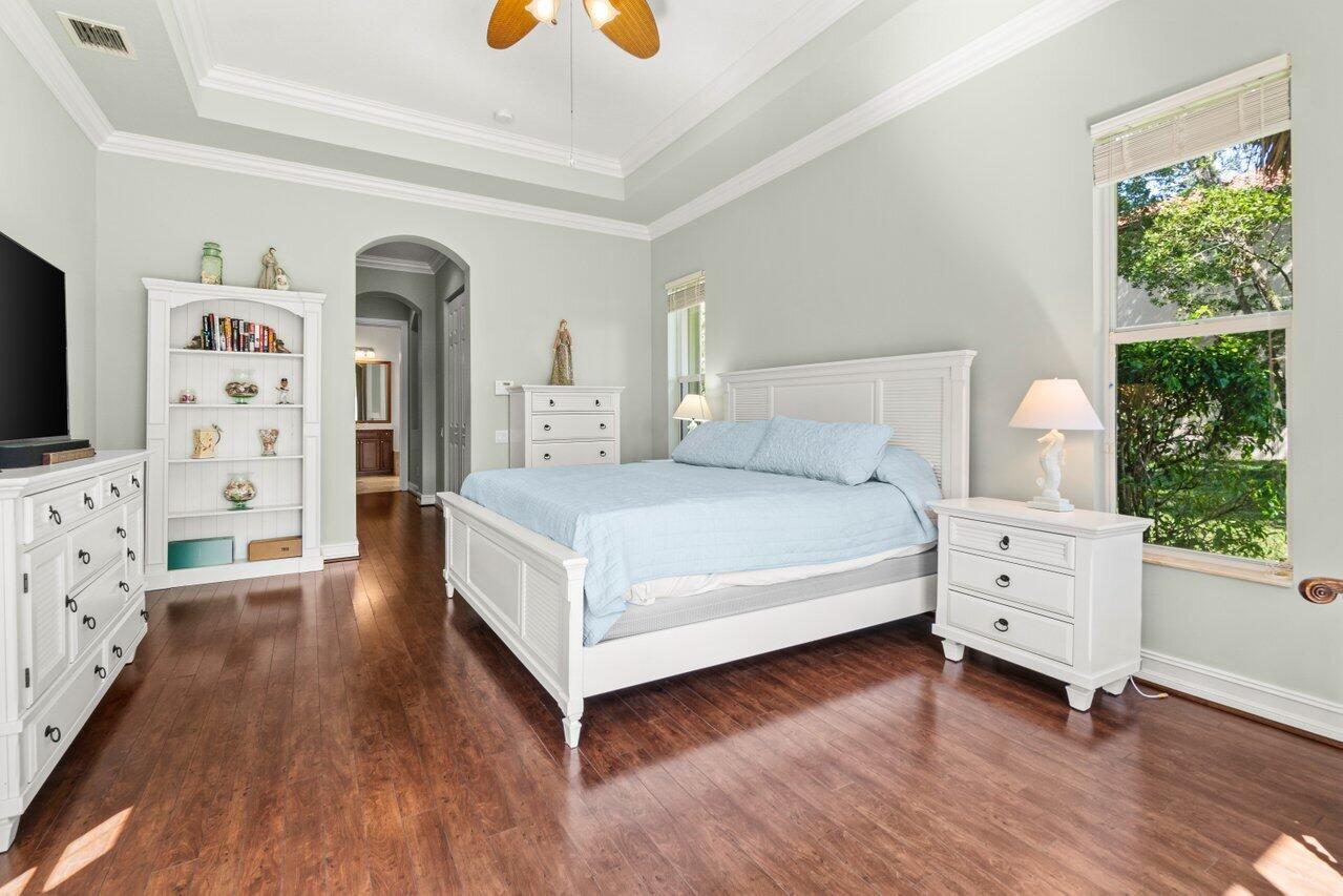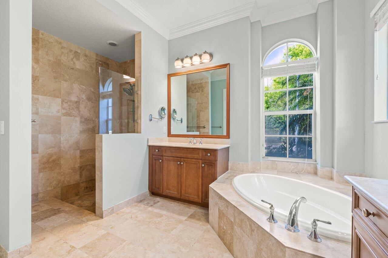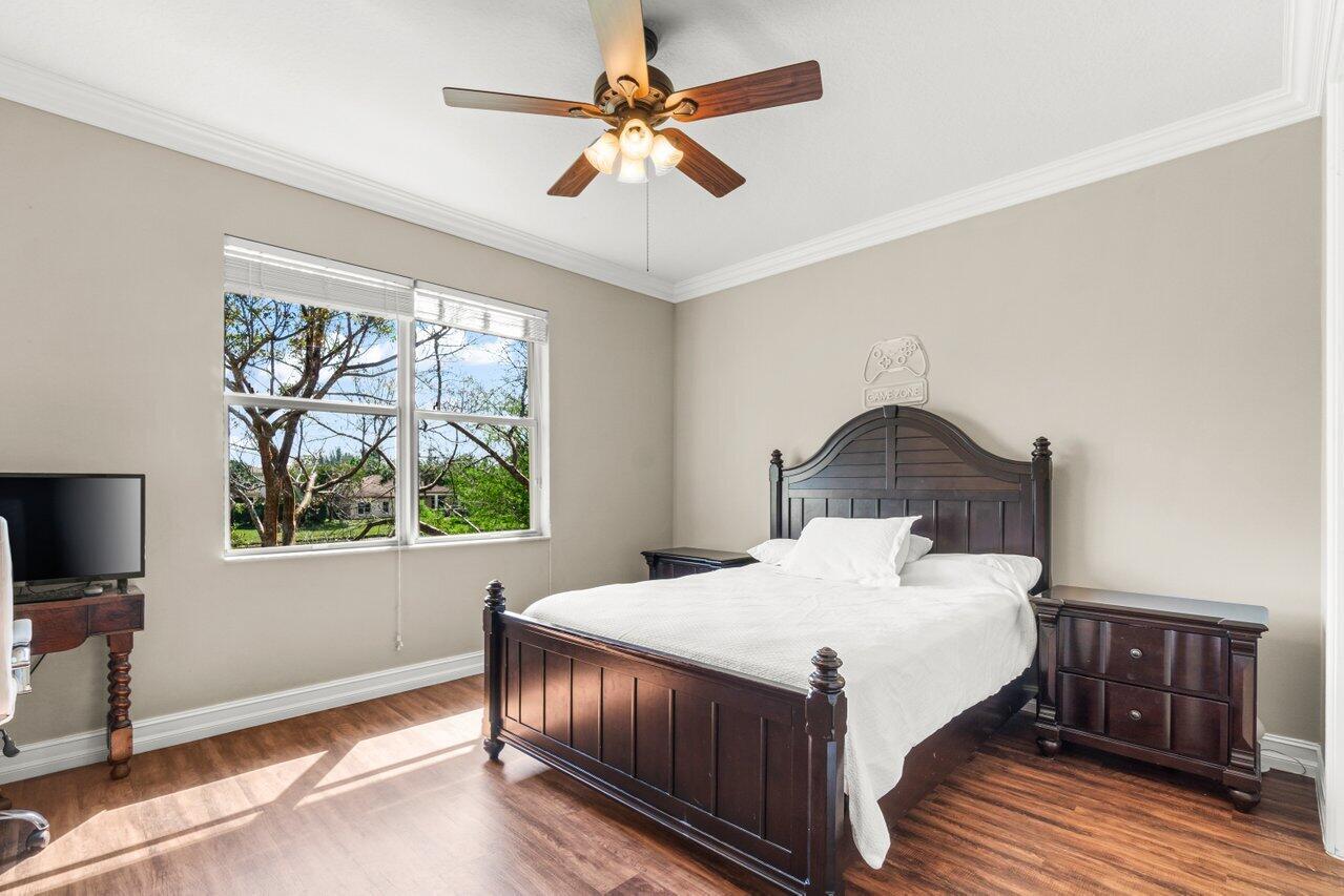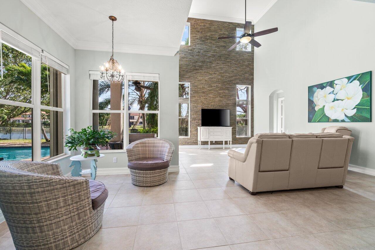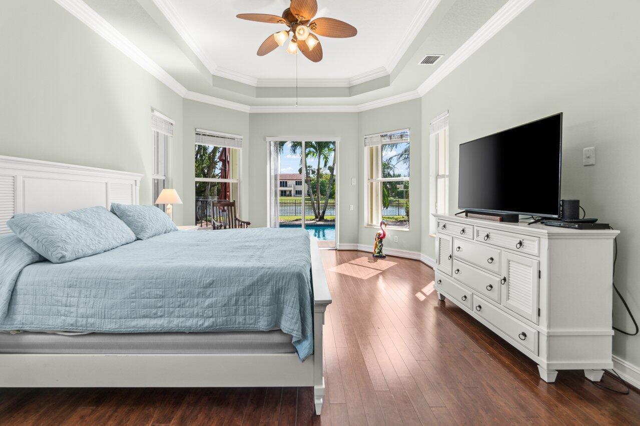 PRICED UNDER APPRAISED VALUE $1.125 Secluded in a gated community of just 24 homes, this 5 Bedroom 4 Bathroom 3 car garage pool home features a lake view giving way to luxury & privacy in a tranquil setting.Your primary bedroom is on the first floor with en suite,double walk-in closets, & beautiful water views along with a second bedroom & full bath providing flexibility to use as a first floor office.You’ll immediately notice the 10′-23′ tall ceilings highlighted with crown molding & expansive windows providing an abundance of natural light.Your formal dining & living room are off the entry.The open family room and kitchen make this an inviting home for family & prime for entertaining.Kitchen features stainless steel appliances, a bar, & an island.