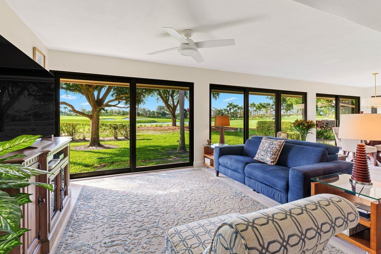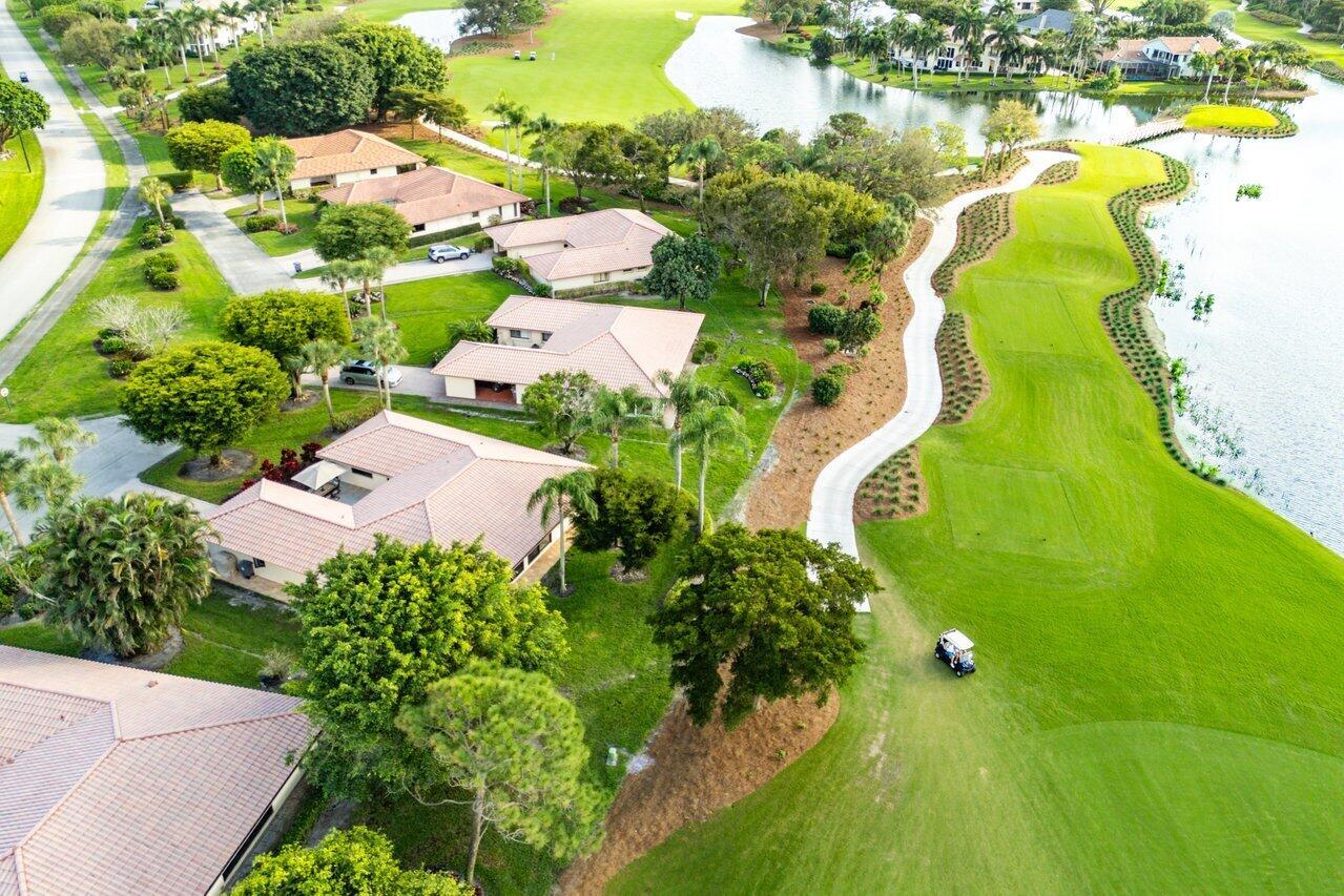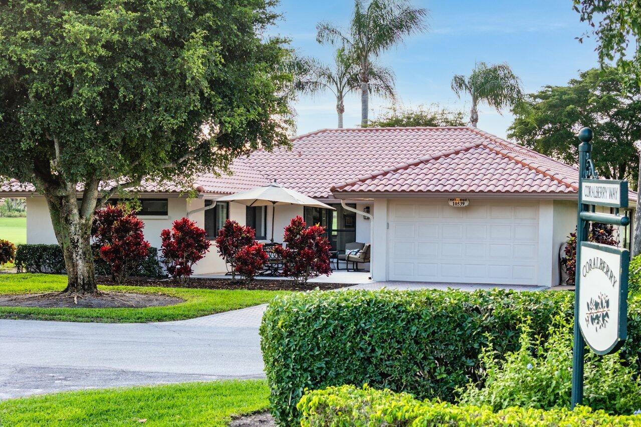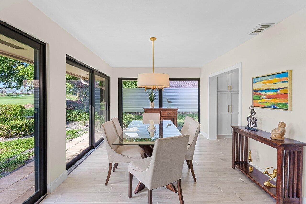 Exceptional lake & golf views on the newly designed North course from this beautifully updated villa, offering a perfect blend of comfort and style. Step inside to find wood-look tile flooring throughout. The open-concept kitchen is ideal for entertaining, providing ample space for gathering with family and friends .Enjoy peace of mind with new ductwork and impact glass windows, ensuring energy efficiency & security. Step outside to a private courtyard patio, a perfect retreat for relaxation or dining under the stars. The home also features a spacious garage (with EV connection) for added convenience. Best of all, take in stunning sunset views right from your own home. Quail Ridge is a mandatory membership community, offering golf, tennis, pickleball, spa & fitness and beautiful clubhouse