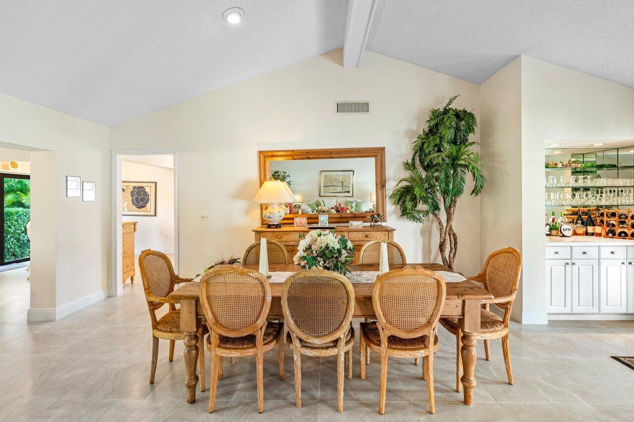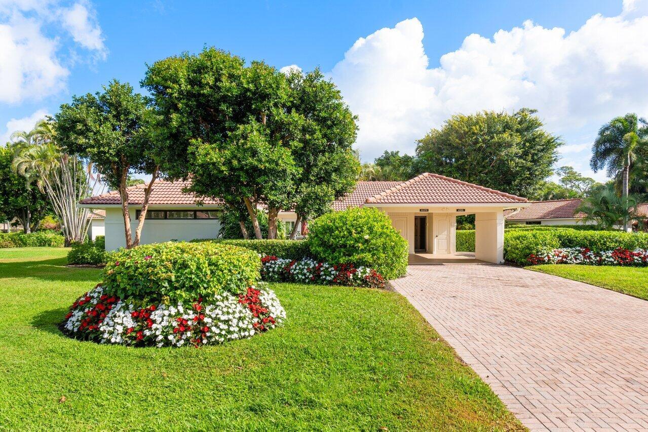 Beautifully designed 3-bedroom, 2-bathroom villa, offering comfort, style, and convenience. Step through the stunning French doors into a warm and inviting foyer, complete with a built-in bar and cabinetry, perfect for entertaining. The home features tile flooring throughout, ensuring easy maintenance and a sleek look. Enjoy picturesque tropical garden views from the living spaces, creating a serene atmosphere. Conveniently located near the area pool and all community amenities, this home provides both relaxation and recreation at your doorstep. Don’t miss this incredible opportunity to live in Quail Ridge! Quail Ridge is a mandatory membership private club community offering two golf courses, tennis, pickleball, spa & fitness and a fabulous clubhouse.