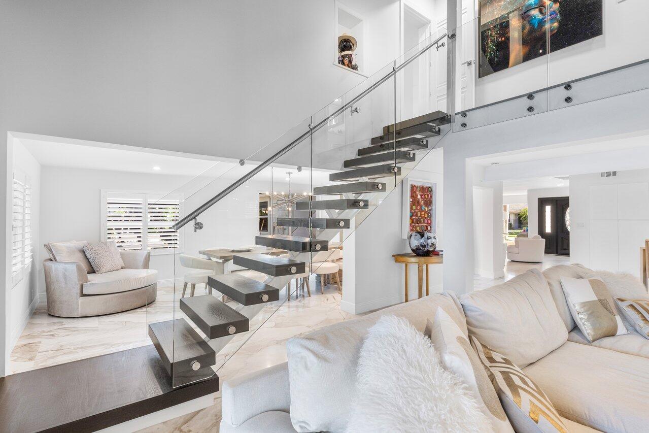 This gorgeous home is now being offered unfurnished and without artwork. Furnishings and art can still be purchased additionally. Welcome to this stunning waterfront 4-bedroom plus den/office, 4-bathroom, single-family home in one of East Boca Raton’s most sought-out neighborhoods. Tucked back in the heart of Carriage Hill, this luxurious waterfront home is the epitome of sophistication and elegance. Zoned for ”A” Rated Addison Mizner Elementary School district. Walking distance to new El Rio Park with pickleball, basketball & beach volleyball courts, playground and kayak/paddleboard launch. Only minutes from downtown Boca Raton, Mizner Park, Brightline Boca Raton train station, Atlantic Avenue in Delray Beach, Boca Raton Executive Airport as well as 3 Major International Airports