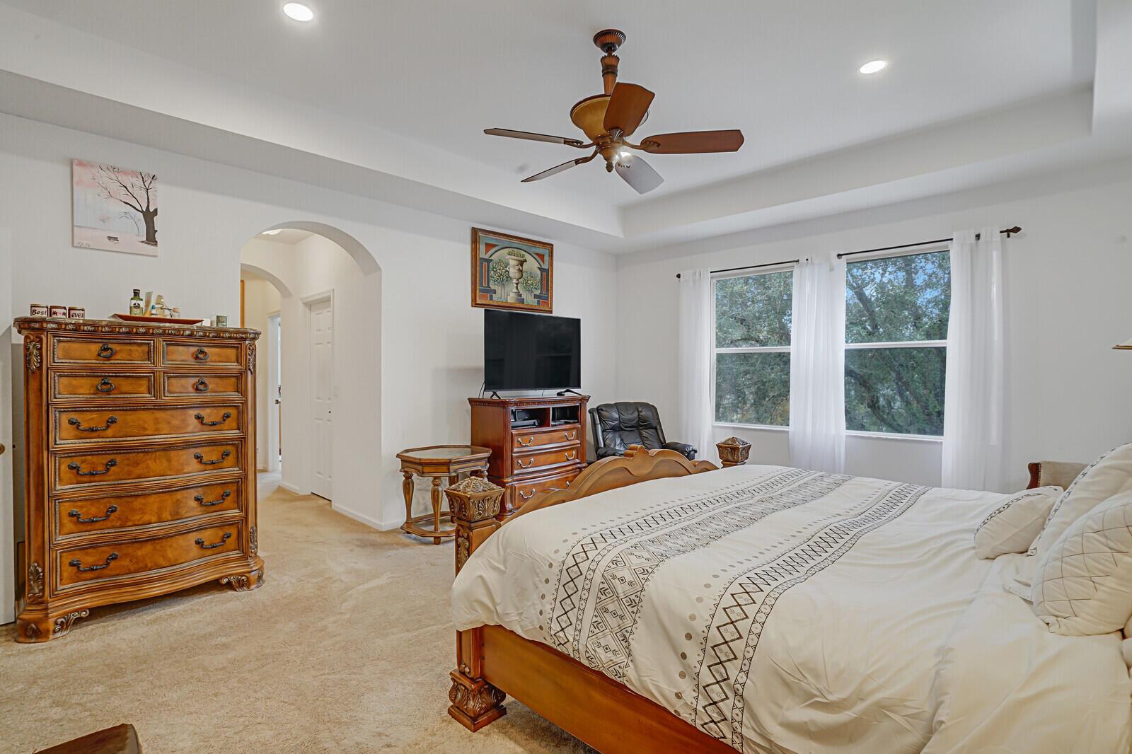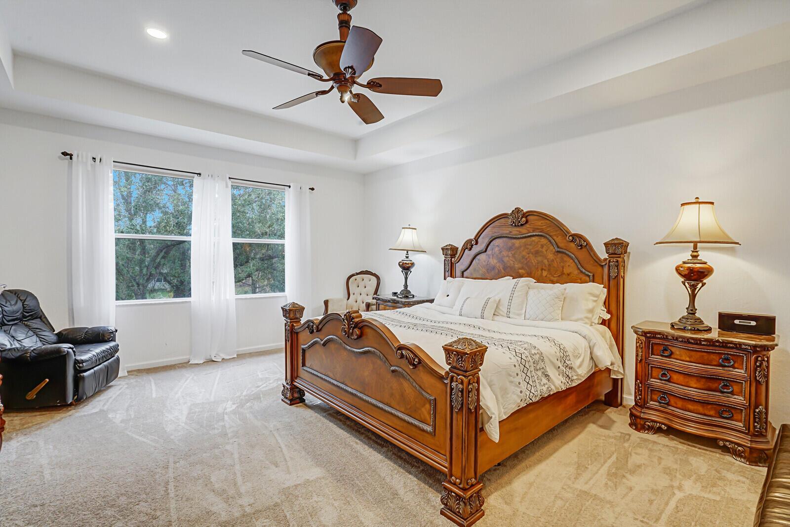 Sabal Model home with a newer AC August 2022. Open floor plan great entertaining home with an formal living room and breakfast area. Includes an intercom and ring alarm. Gorgeous lake views with a nice patio to enjoy. A huge master bedroom w/tray ceilings, overlooking the lake. His & Hers Master Bathroom w/connecting shower & separate toilets. His & Hers walk-in-closet. Palmyra offers gated entry, community pool, playground & picnic area. Zoned for ”A” Rated Hidden Oaks K. A perfect location for easy access to 95 close to shopping and beaches. Association fees cover lawn care.