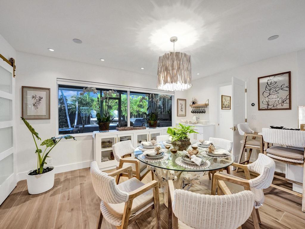 Step into this exquisite, meticulously designed, and fully renovated 3-bedroom, 3-bathroom sanctuary crafted by the esteemed interior designer, Jeanne Michelle Design of Palm Beach Florida. Embrace Coastal living at its finest, adorned with tasteful textured wallpaper in bedrooms themed with a fresh and clean design, complemented by high-quality furnishings, fine antiques and nature-inspired accessories that effortlessly evoke seaside elegance. This Turnkey Gem is presented fully furnished, leaving no detail overlooked, ensuring a seamless move-in experience.