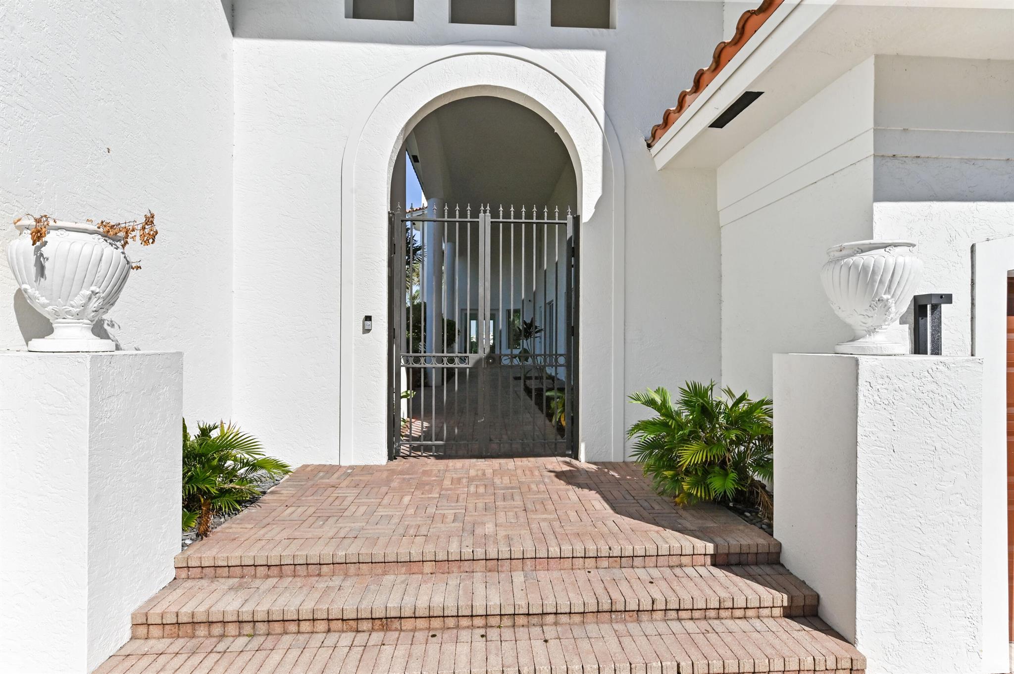 Experience waterfront luxury in this newly renovated direct intracoastal home. Enjoy morning coffee with breathtaking waterfront views, overlooking the heated infinity edge pool & spa, just above your private sandy beach. The interior features soaring 30-foot ceilings, marble floors, quartz countertops, Viking kitchen appliances and designer finishes throughout. The grand primary suite has dual walk-in closets, a free-standing tub and a private patio with panoramic water views. Recent updates include custom lighting, quartz fireplace, custom closets, Gray Malin wallpaper, and freshly painted interior & exterior. The separate guest cottage complete with a kitchen is located just off of the gated courtyard. The impact doors & windows, gated entrance, smart home technology, 40-kw generator,