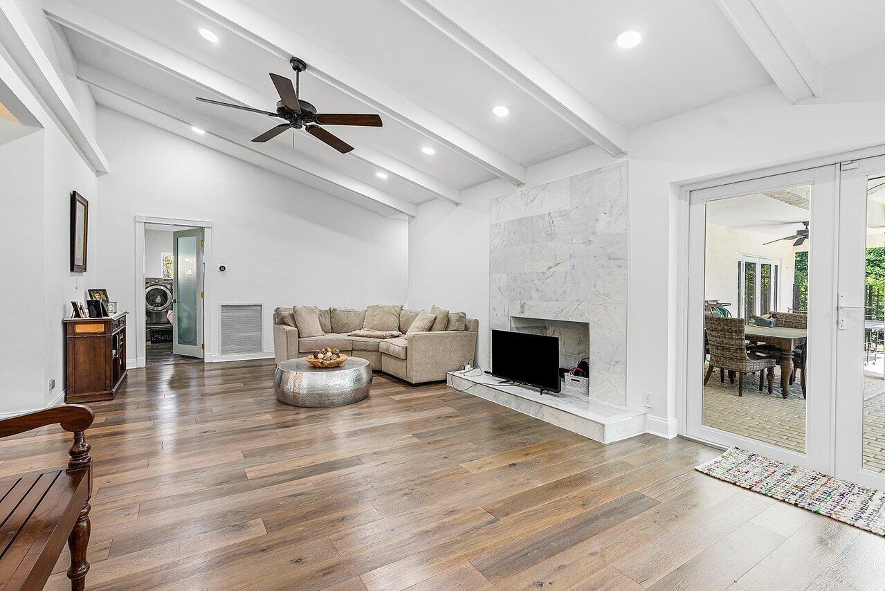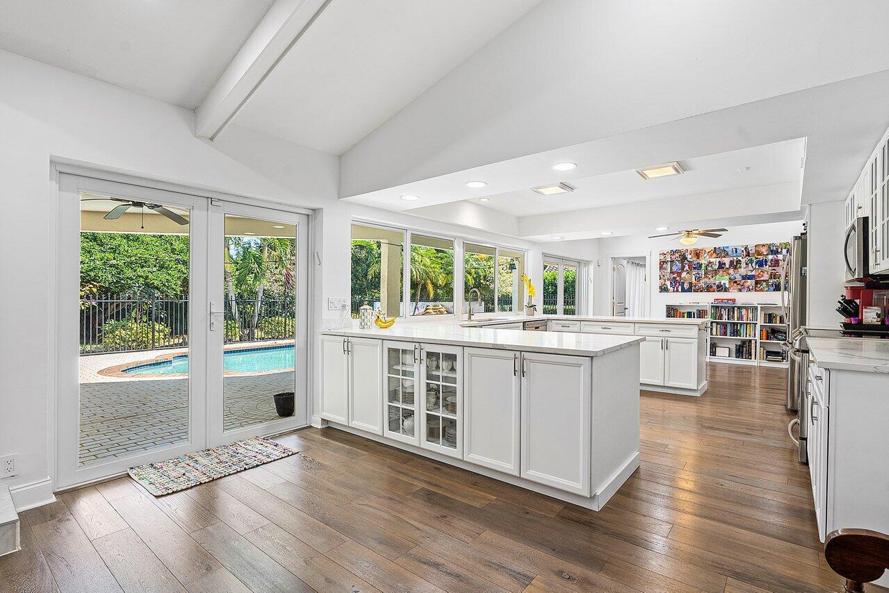 Nestled in centrally located Boca Raton, this 4 bedroom, 3.5 bathroom finds itself in the enchanting Estancia Community. The home boasts 2,870 sq feet under air (4,190 total square footage) on a 15,317 square foot lot. The kitchen is beautifully updated with brand new stainless steel appliances and quartz countertops. The living room is remodeled with brand new wooden floors. Natural light cascades into both of these spaces bringing a sense of warmth into the home. An expansive outdoor patio and pool adorned by lush greenery make it the perfect place to host get-togethers.