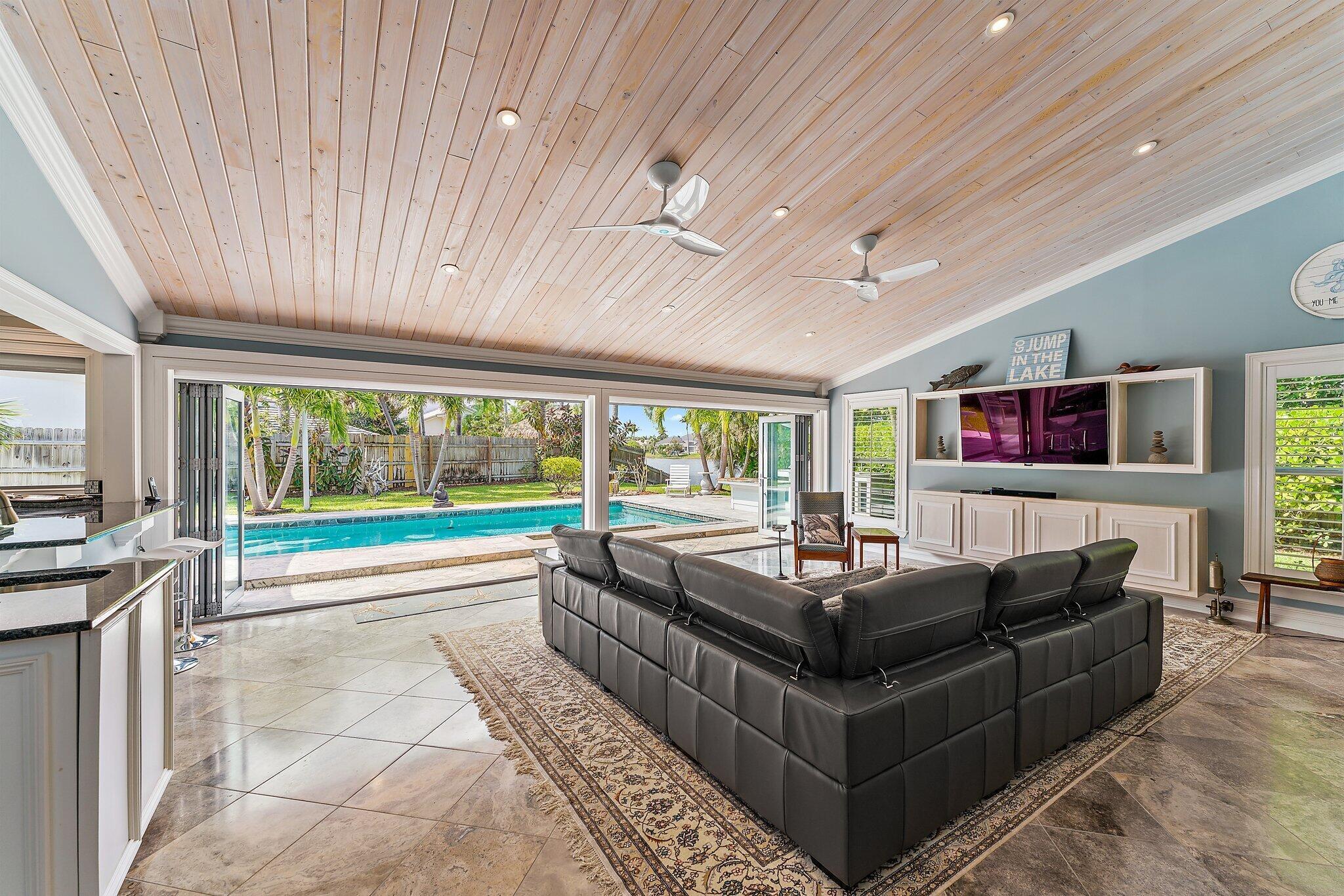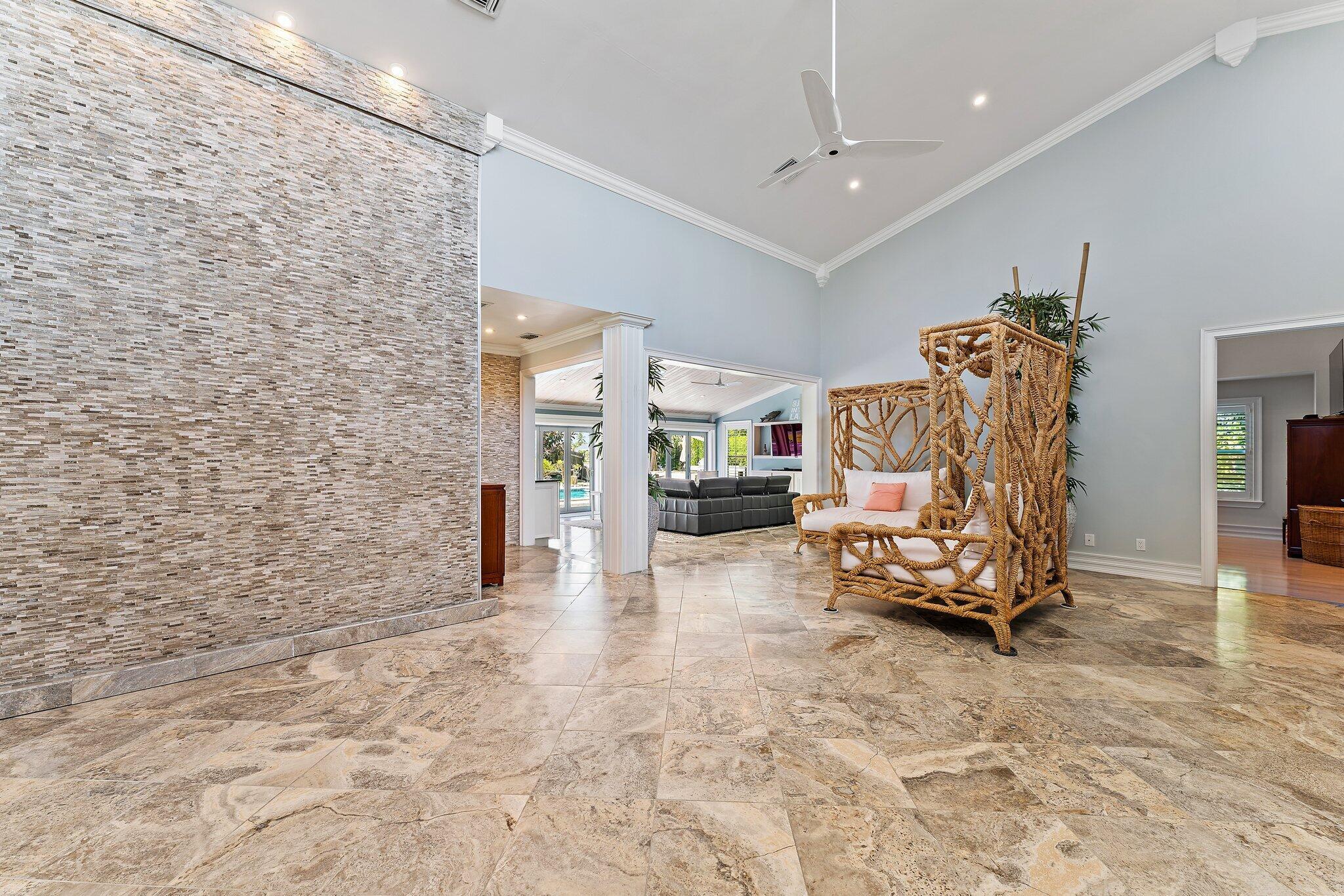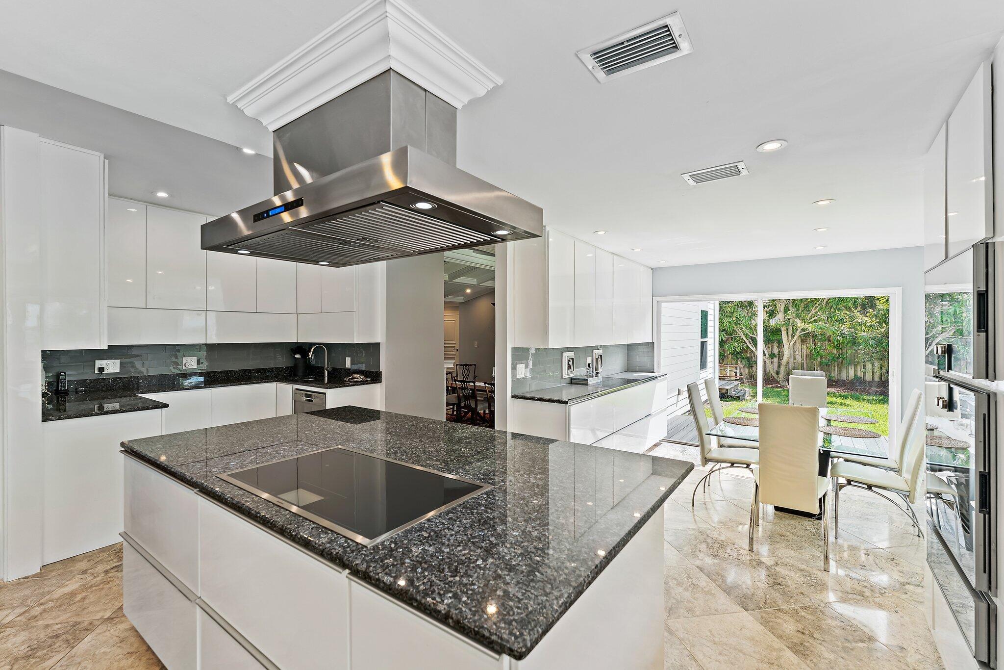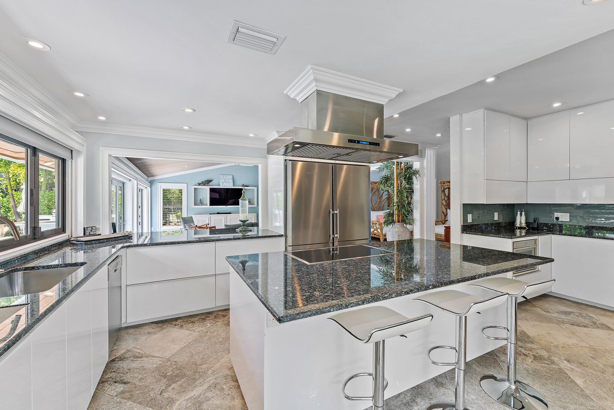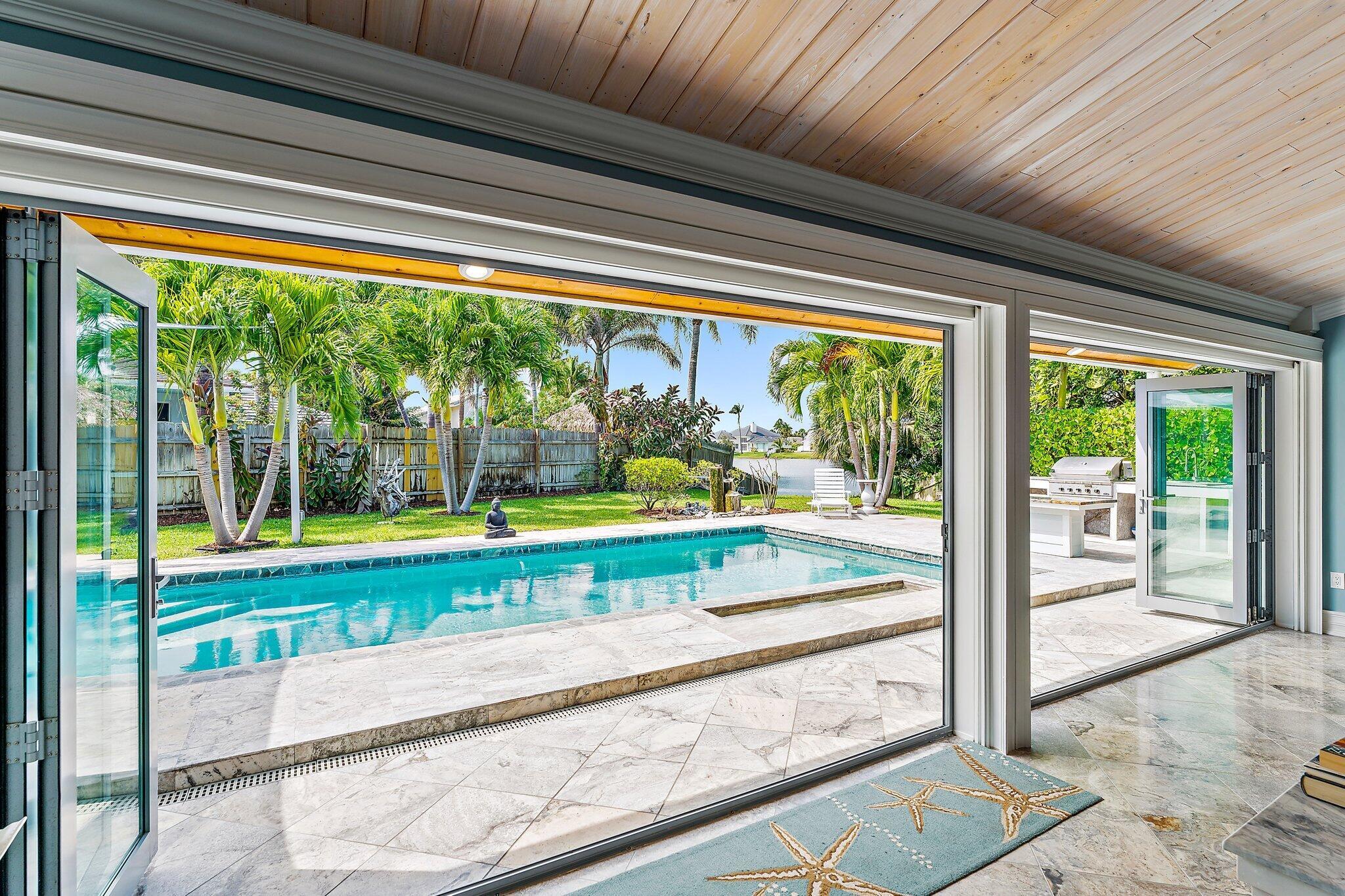 An updated home with a brand new metal roof, located on the lake in a unique community of Olympus. The house boasts large bedrooms, formal living and dining rooms, fireplace, impact windows, bamboo and tile floors! Step into the welcoming foyer to the formal living room with vaulted ceilings and a waterfall wall. The formal dining room is open to the living room and the kitchen, it can be converted into additional bedroom. A full complement of top of the line appliances, and fully retractable impact windows looking out to the lake, heated pool, and lanai. Master suite is oversized with vaulted ceilings. Olympus is located near the beaches of Juno and Jupiter as well as great dining and shopping venues. This home offers a luxurious living experience experience.
