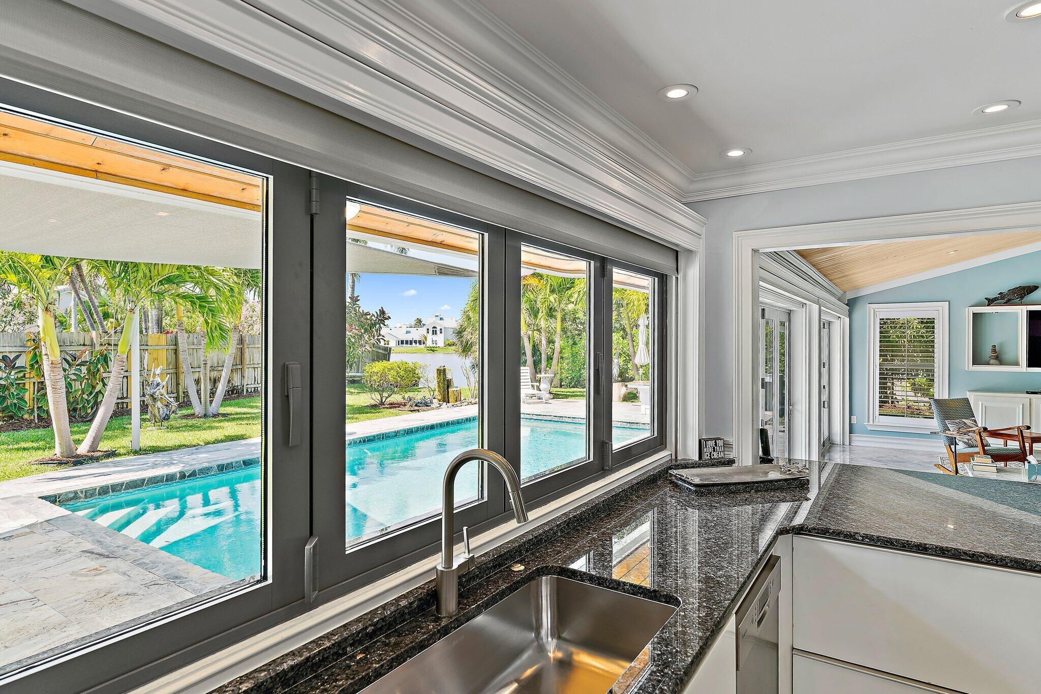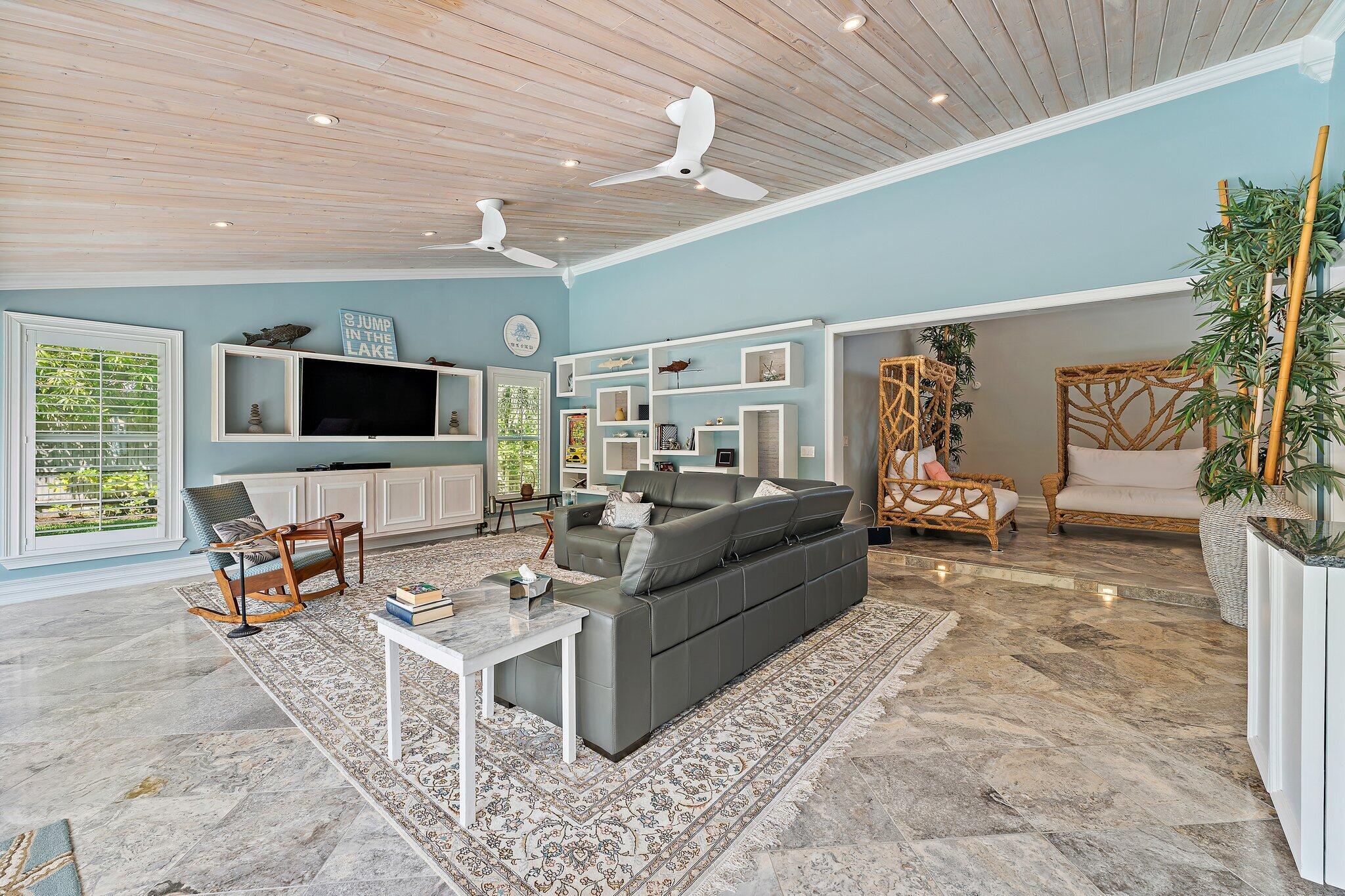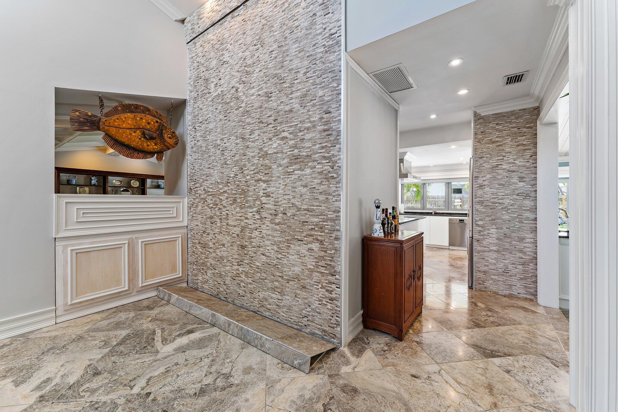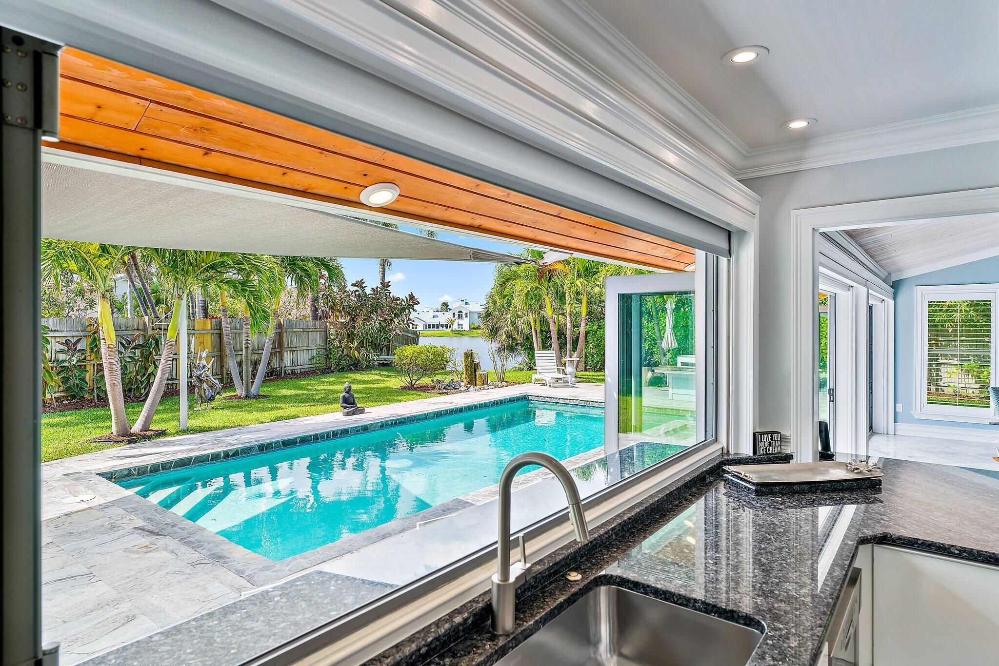 An updated home with a brand new metal roof, located on the lake in a unique community of Olympus. The house boasts large bedrooms, formal living and dining rooms, fireplace, impact windows, bamboo and tile floors! Step into the welcoming foyer to the formal living room with vaulted ceilings and a waterfall wall. The formal dining room is open to the living room and the kitchen, it can be converted into additional bedroom. A full complement of top of the line appliances, and fully retractable impact windows looking out to the lake, heated pool, and lanai. Master suite is oversized with vaulted ceilings. Olympus is located near the beaches of Juno and Jupiter as well as great dining and shopping venues. This home offers a luxurious living experience experience.