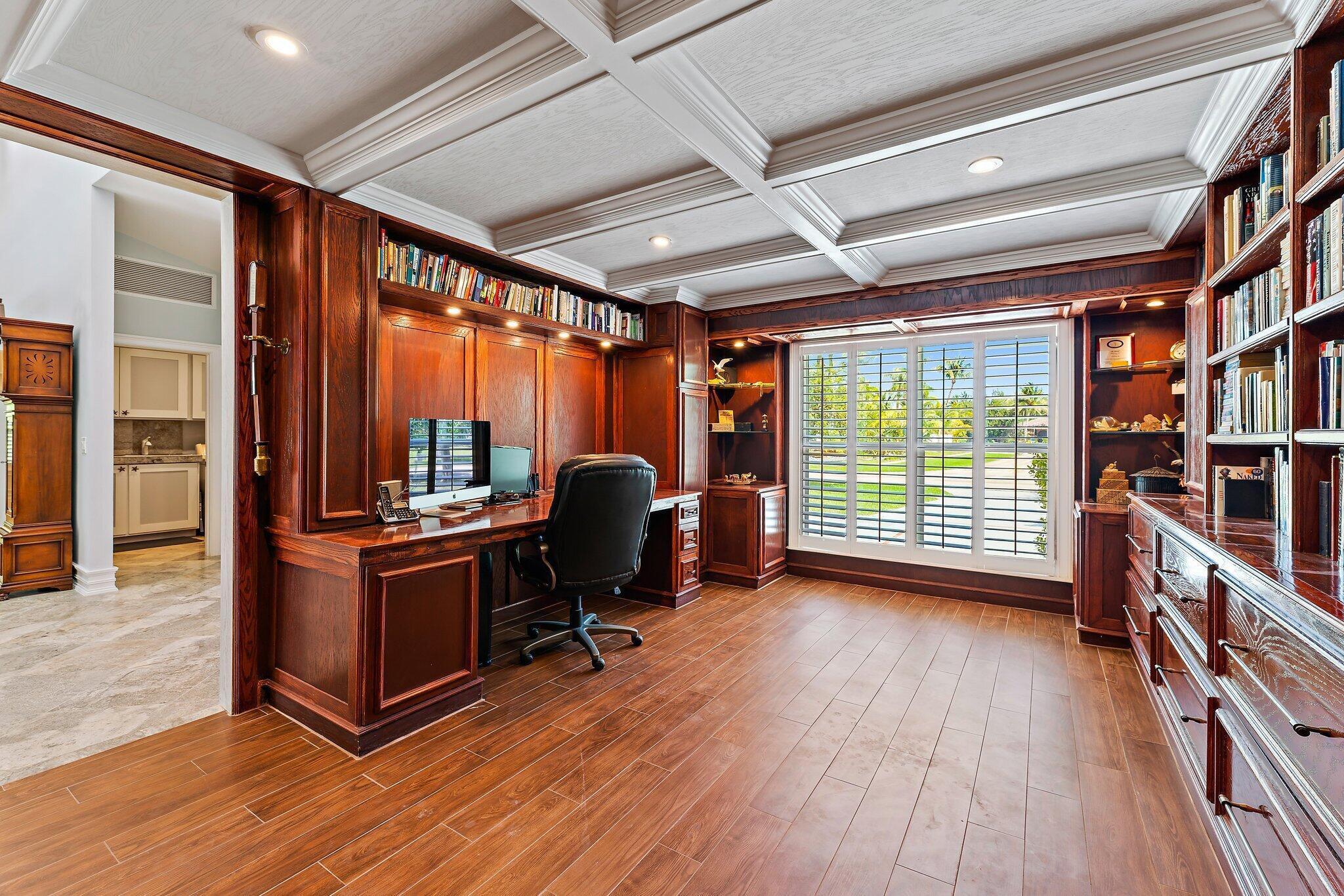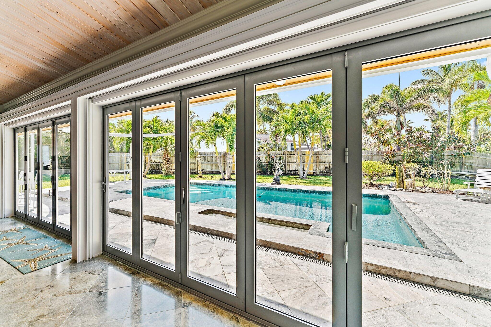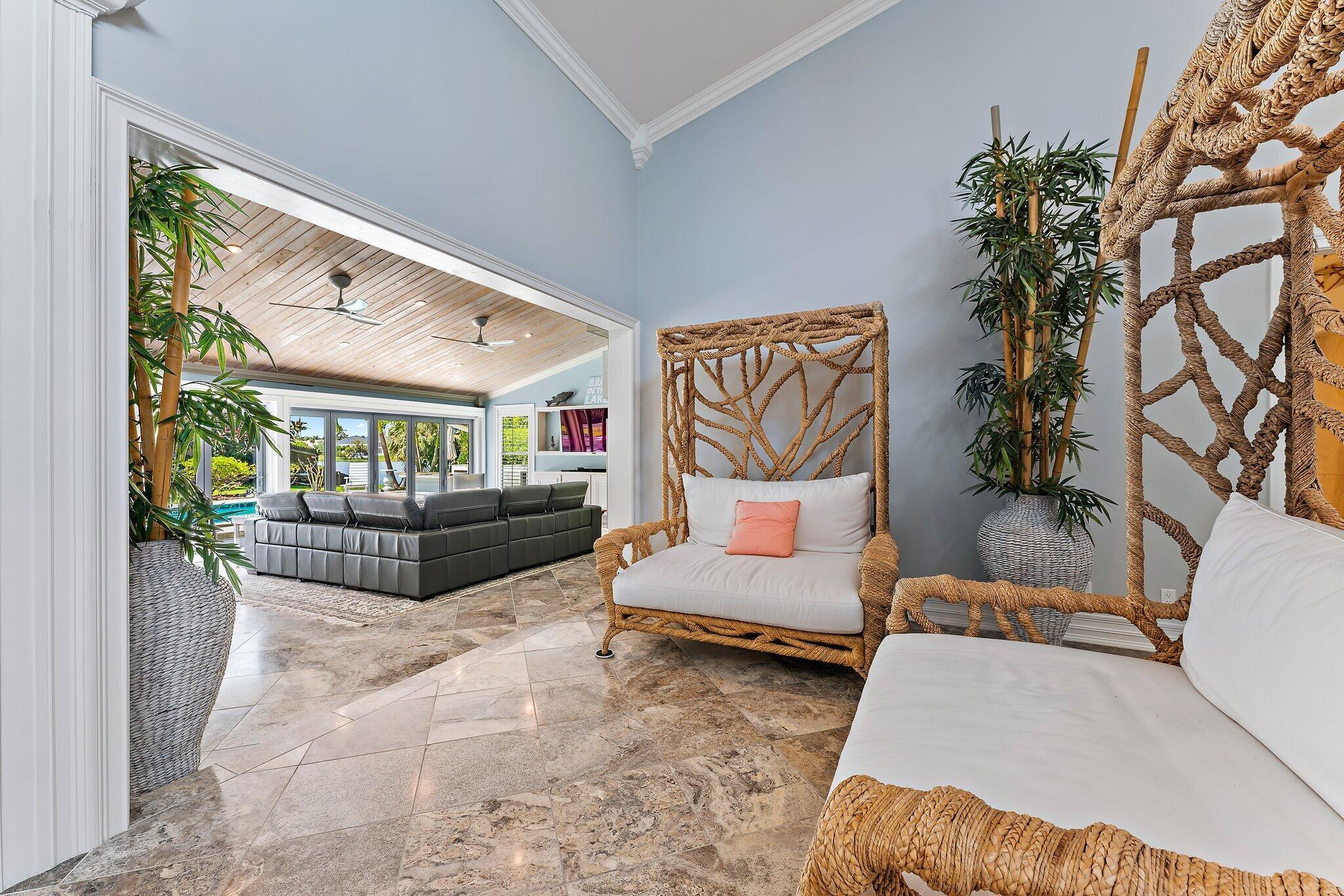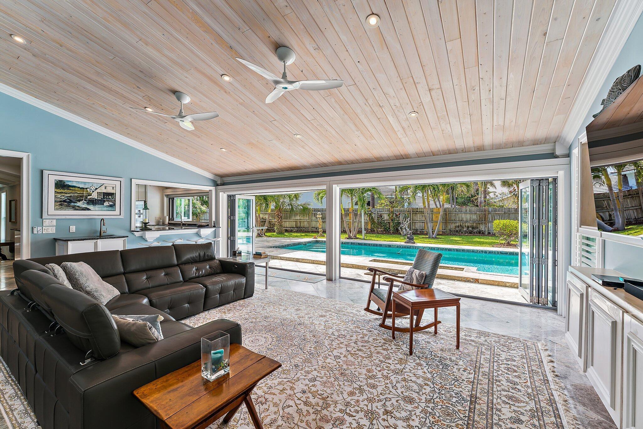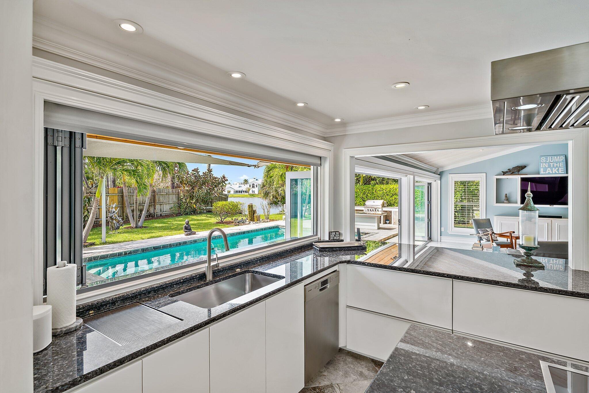 An updated home with a brand new metal roof, located on the lake in a unique community of Olympus. The house boasts large bedrooms, formal living and dining rooms, fireplace, impact windows, bamboo and tile floors! Step into the welcoming foyer to the formal living room with vaulted ceilings and a waterfall wall. The formal dining room is open to the living room and the kitchen, it can be converted into additional bedroom. A full complement of top of the line appliances, and fully retractable impact windows looking out to the lake, heated pool, and lanai. Master suite is oversized with vaulted ceilings. Olympus is located near the beaches of Juno and Jupiter as well as great dining and shopping venues. This home offers a luxurious living experience experience.
