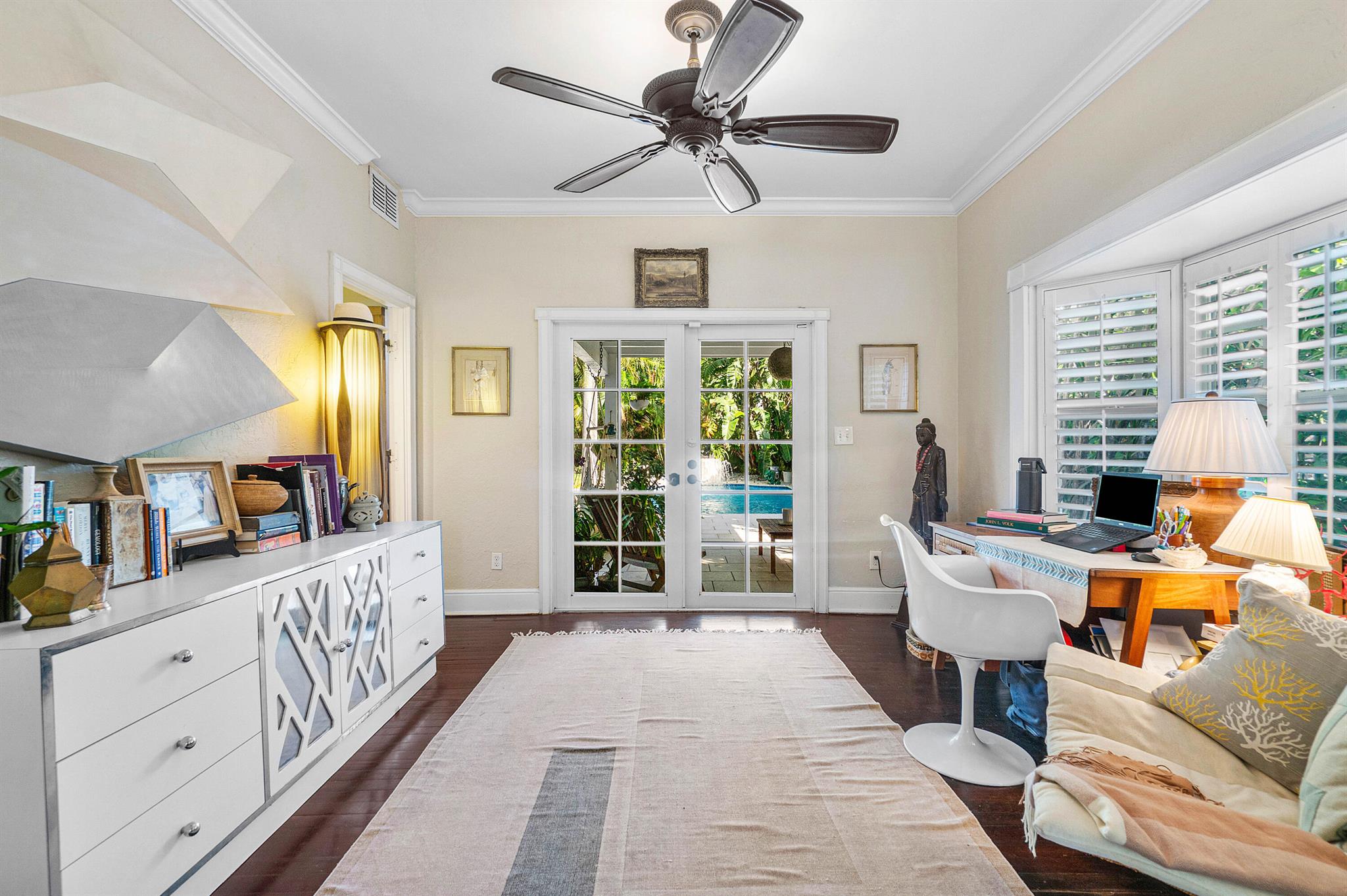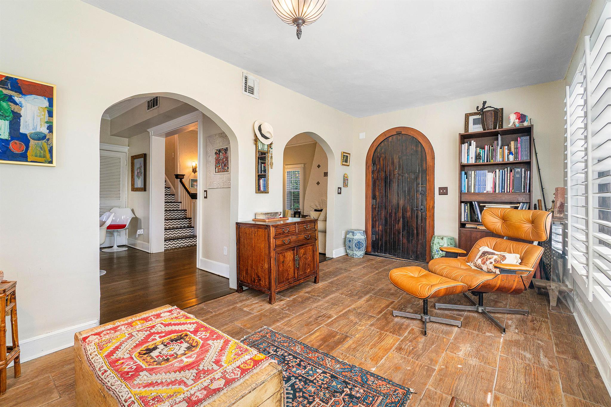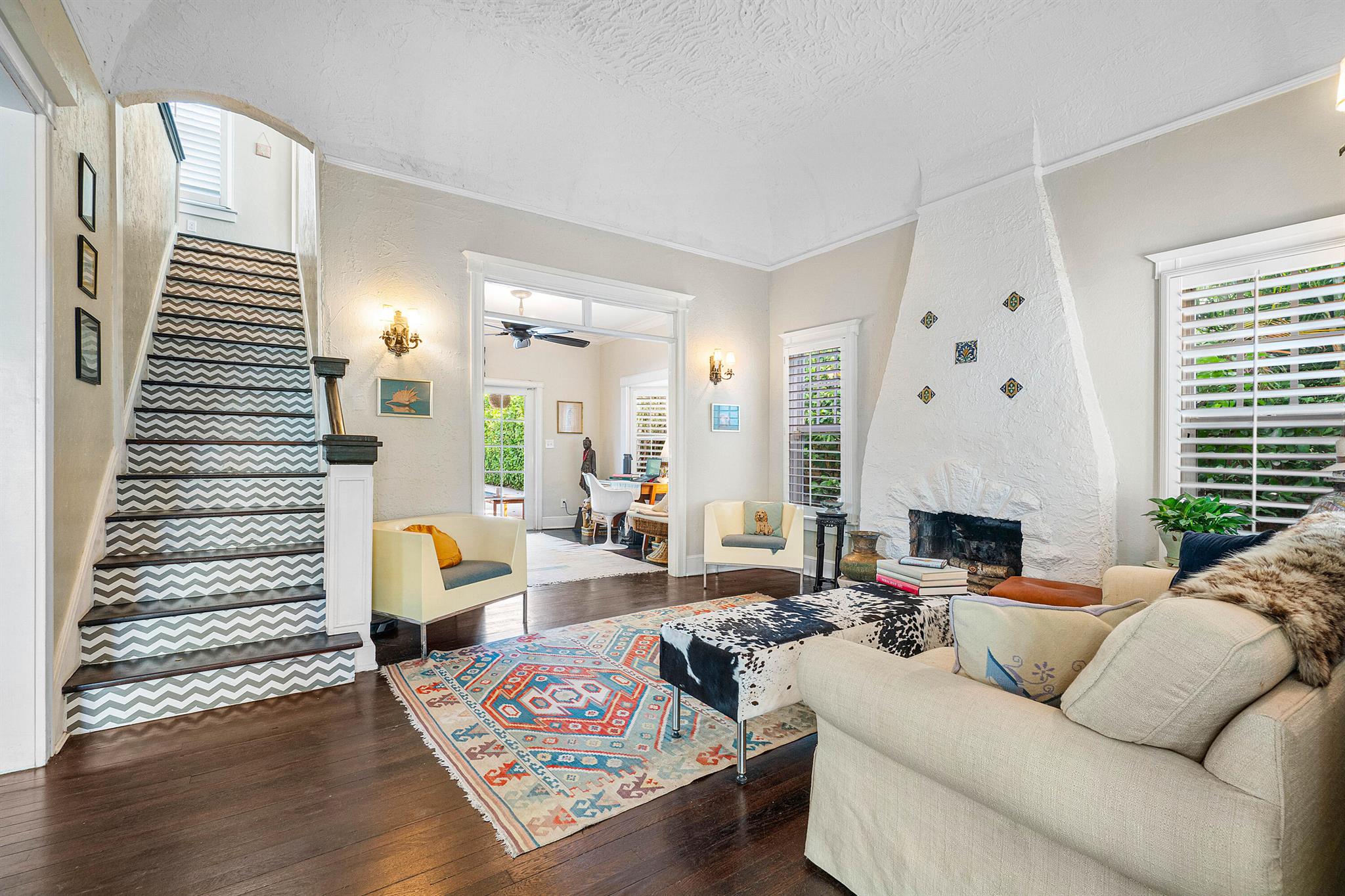 Charming Spanish Mediterranean home in the historic El Cid neighborhood, circa 1926. Built with an abundance of classic details including wood floors, a stone fireplace, high ceilings up to 12 feet, multiple archways and plaster walls. Currently set up as a 2 bedrooms, 2 baths + a den. The den can be converted to have a 3rd bedroom on the first floor. The lushly landscaped and private backyard has a tranquil pool which was added in 2017. There are all impact windows and doors, newer pool surround, and newer driveway pavers to complete this ideal home. Truly the best priced home in El Cid with the best local schools, and situated around the corner from Joseph’s Market, Pink Steak, and Starbucks, and 1-1/2 blocks to the intracoastal waterway.