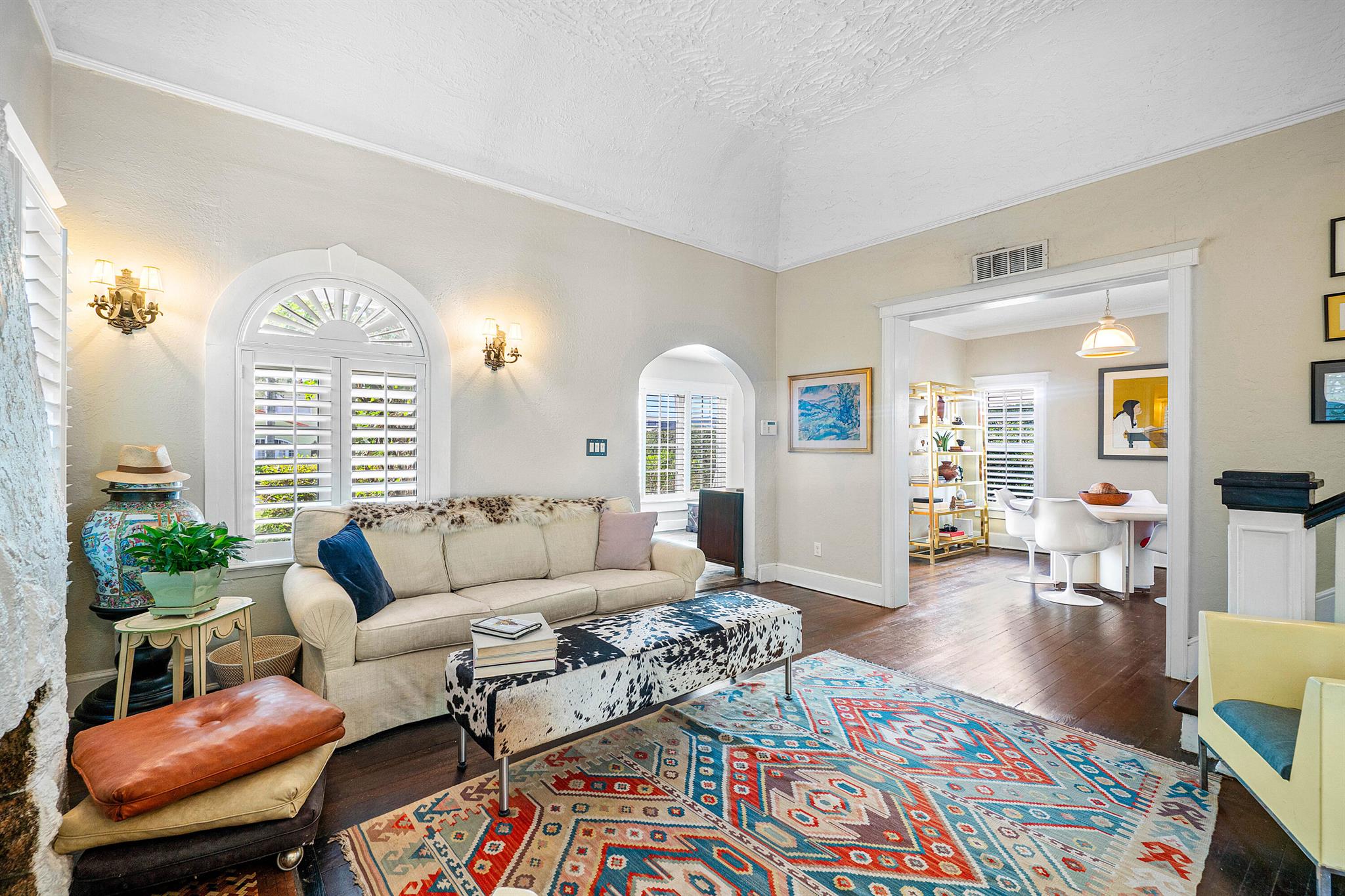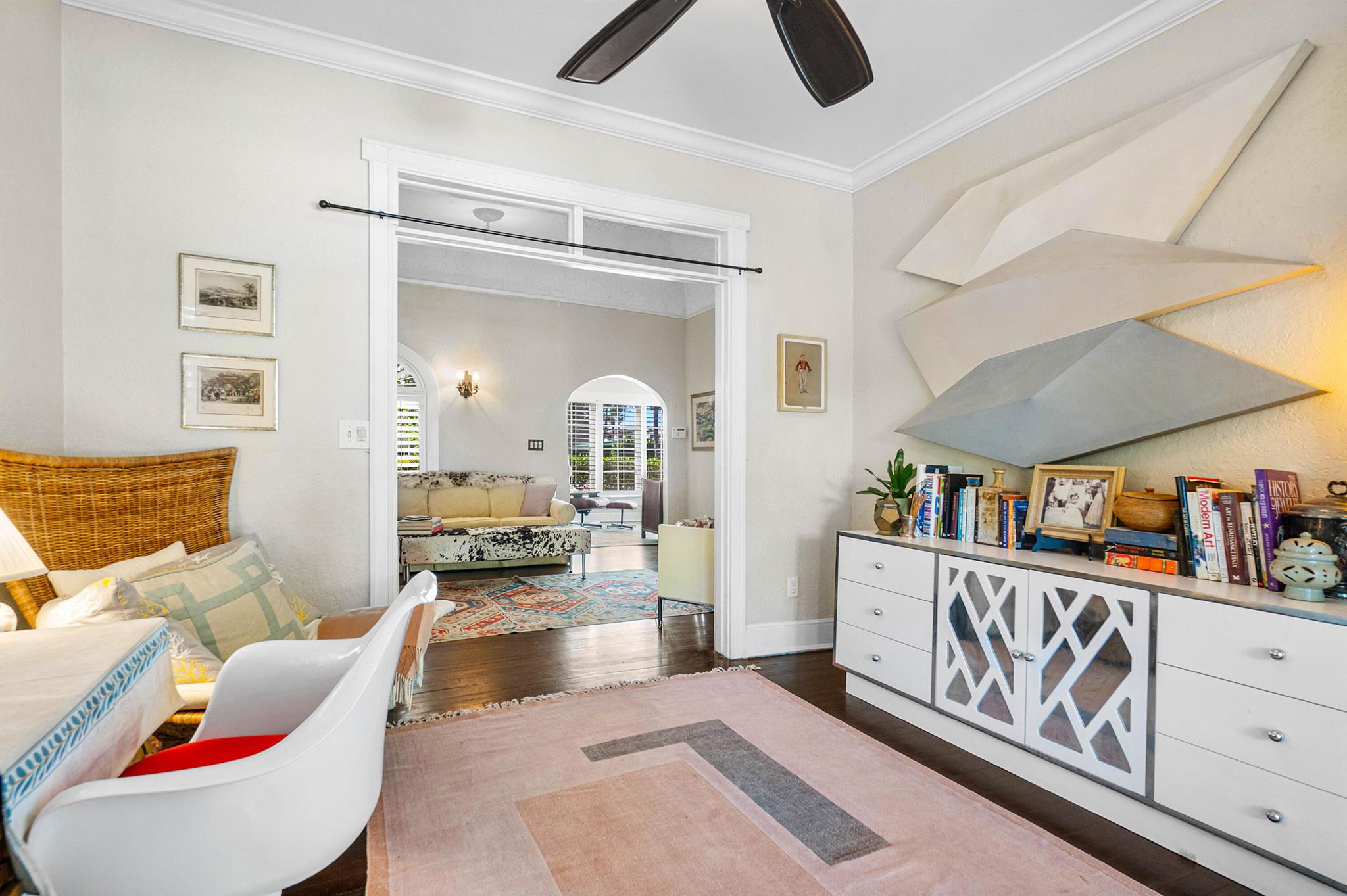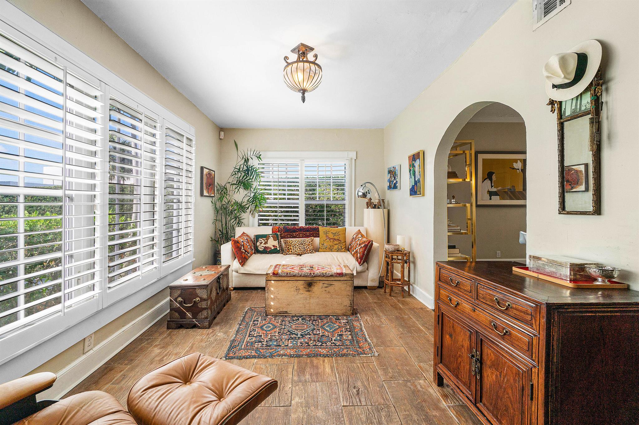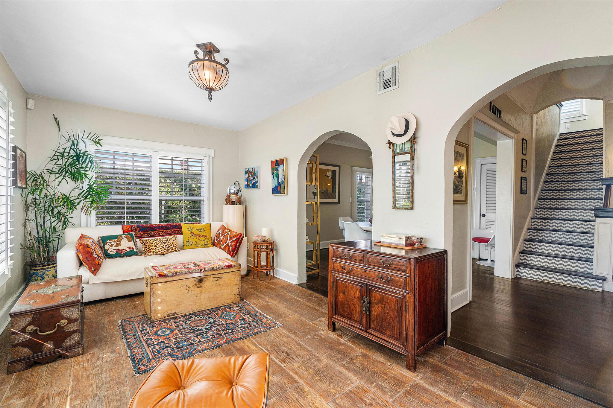 Charming Spanish Mediterranean home in the historic El Cid neighborhood, circa 1926. Built with an abundance of classic details including wood floors, a stone fireplace, high ceilings up to 12 feet, multiple archways and plaster walls. Currently set up as a 2 bedrooms, 2 baths + a den. The den can be converted to have a 3rd bedroom on the first floor. The lushly landscaped and private backyard has a tranquil pool which was added in 2017. There are all impact windows and doors, newer pool surround, and newer driveway pavers to complete this ideal home. Truly the best priced home in El Cid with the best local schools, and situated around the corner from Joseph’s Market, Pink Steak, and Starbucks, and 1-1/2 blocks to the intracoastal waterway.