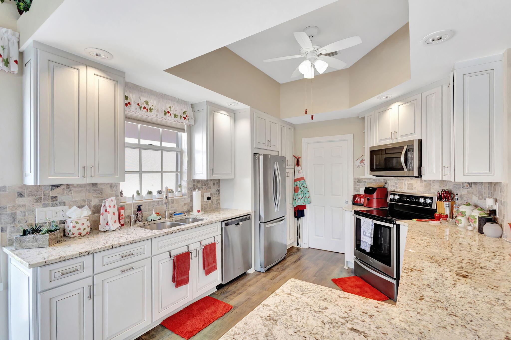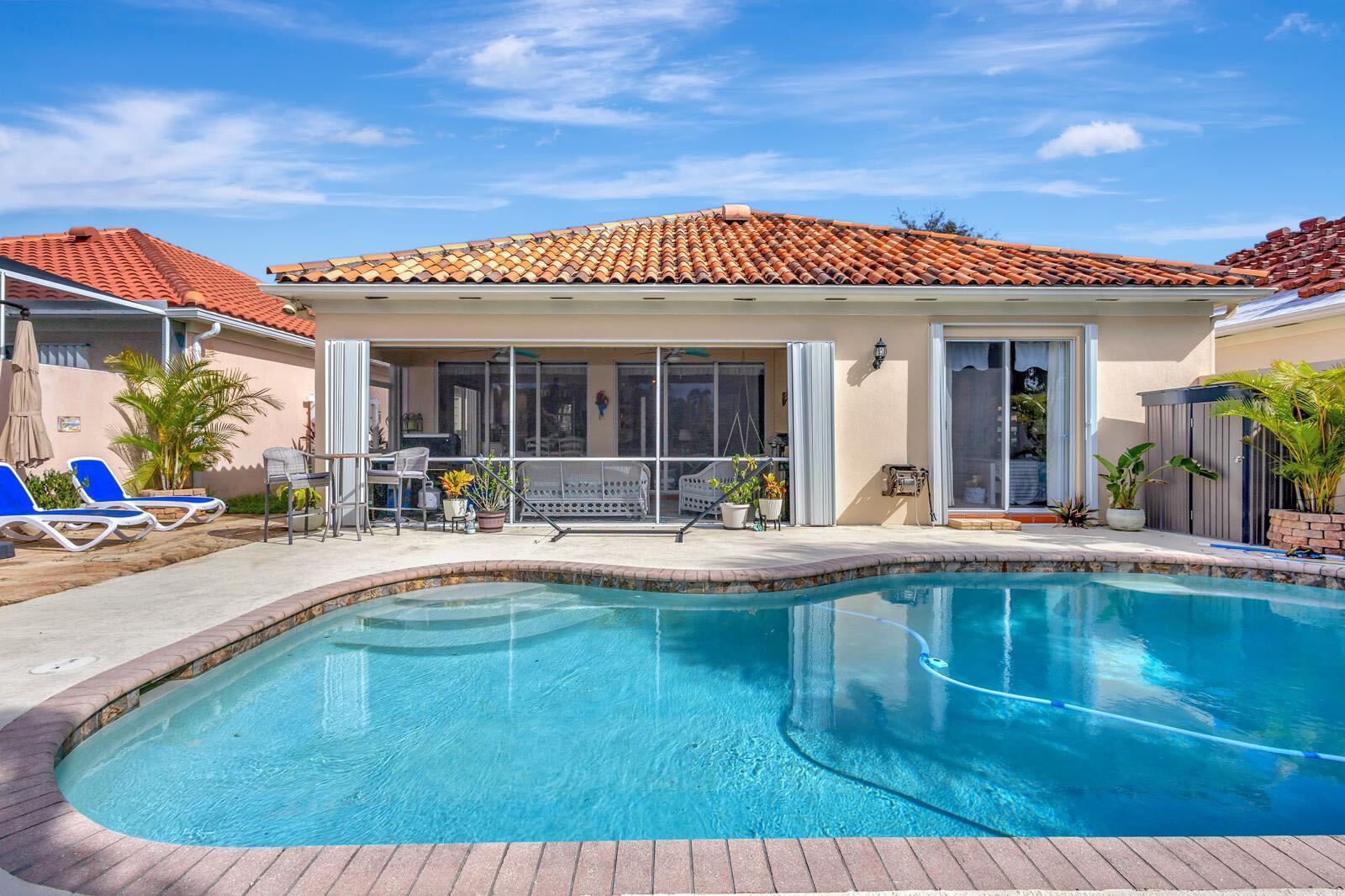 Discover comfort and convenience at 7064 Elkhorn Drive, a beautifully renovated 3-bed, 3-bath Oakmont model with a den in the sought-after Riverwalk community. This home features a custom pool with tranquil lake views, an updated kitchen with granite countertops, high ceilings, and an 18′ wall of sliding glass doors. Enjoy wood tile flooring, plantation shutters, a wet bar, and a luxurious master bath retreat with marble floors and a soaking tub. Riverwalk offers resort-style amenities, including pools, tennis, pickleball, fitness center, walking trails, and monthly classes, events, and clubs like yoga, Zumba, aqua fitness, and more. Conveniently located near schools, shops, and restaurants, this home is luxury living in West Palm Beach!