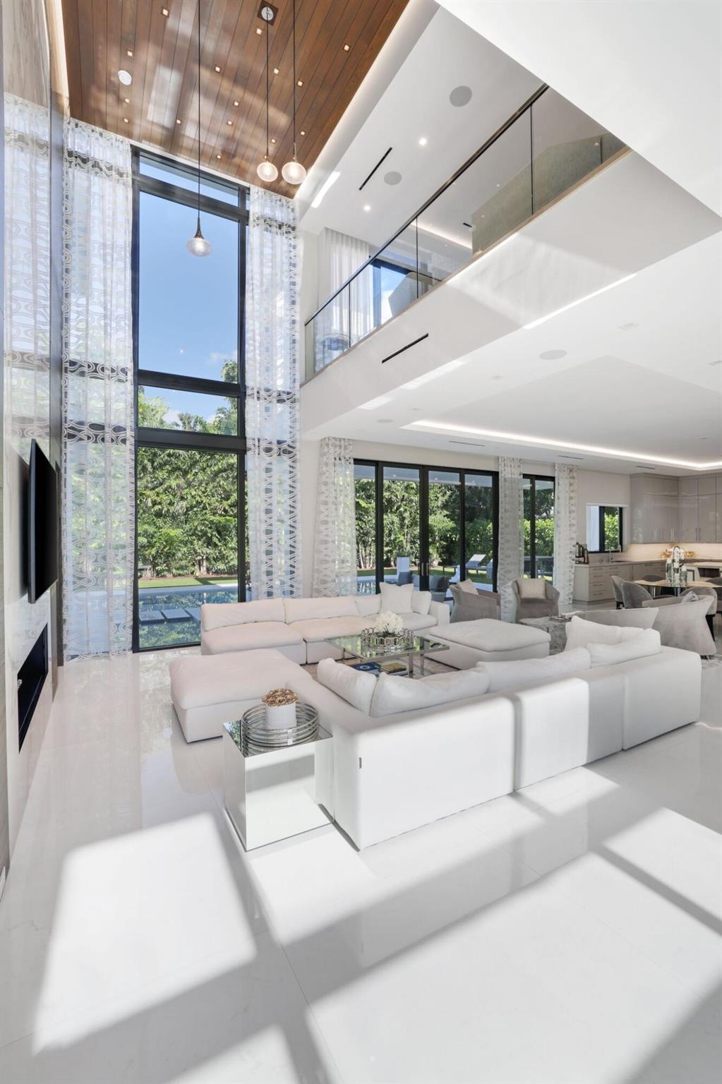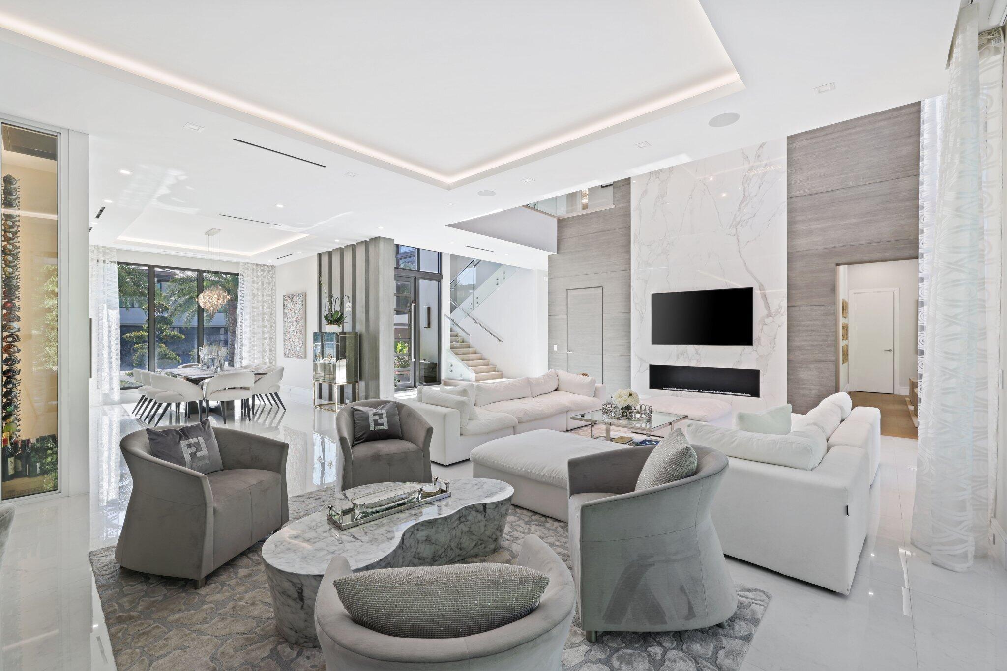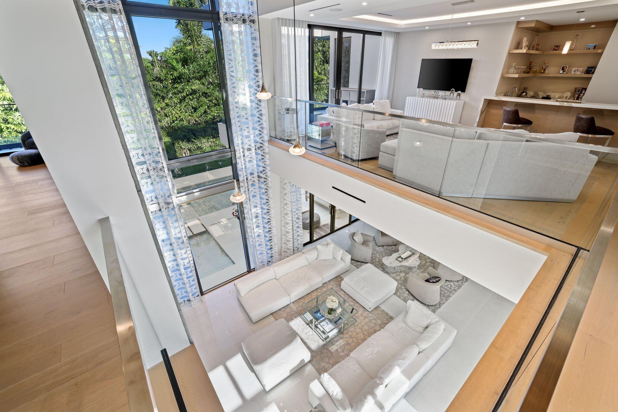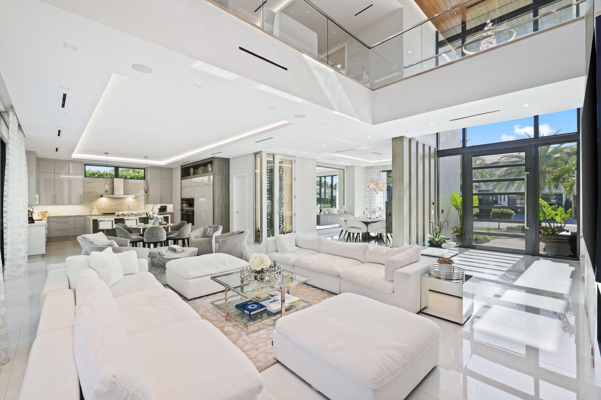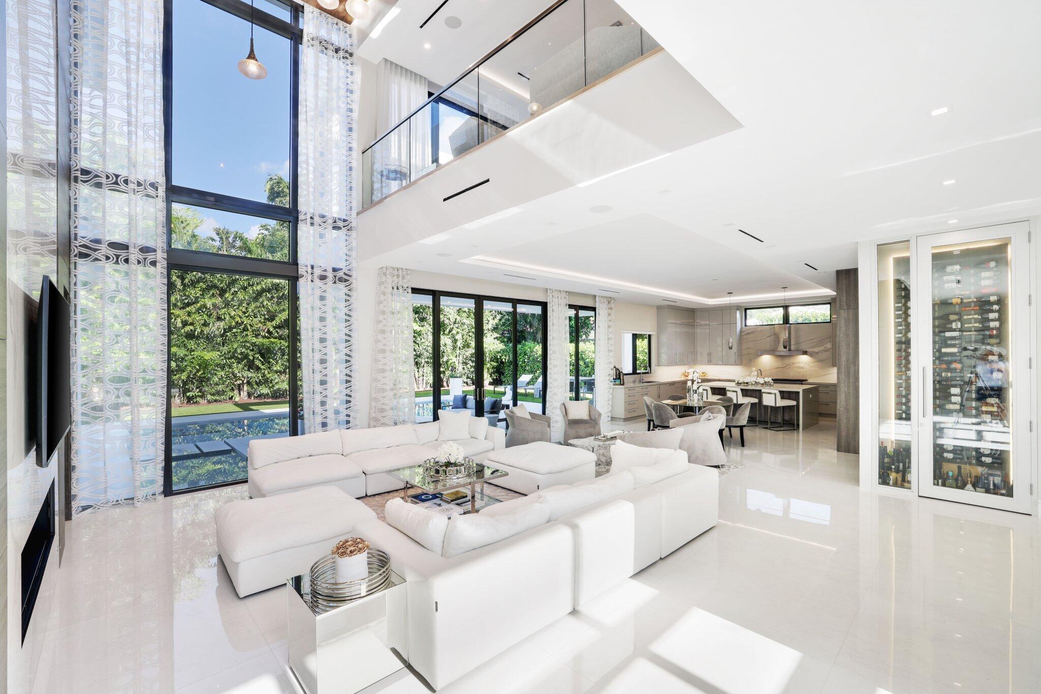 This Absolutely Gorgeous Modern Estate is offered fully furnished and features a 2 story Great room with stunning walls of glass, a gas fireplace, Formal Dining room w/Glass wine closet, Custom Kitchen w/Double thick edge Quartzite counter tops, Miele appliances, Custom Cabinets, large pantry, Carrara European imported 48 x 48 porcelain Tile. There is one ensuite bedroom downstairs as well as a club room off the pool w/ a Quartz Bar, cabana bath and closet. Upstairs is a great Loft area w/ a Custom Lacquer and Quartz Bar, An Exquisite Master with 2 large closets, morning bar, balcony and an incredible Master bath All the bedrooms are oversized. 2 laundry rooms, 3+golf cart garage & Elevator. The Private Backyard is huge w/ a beautiful pool, outdoor Loggia w/ Summer Kitchen.