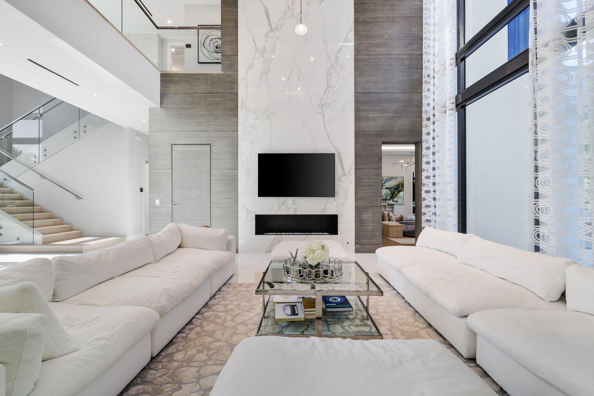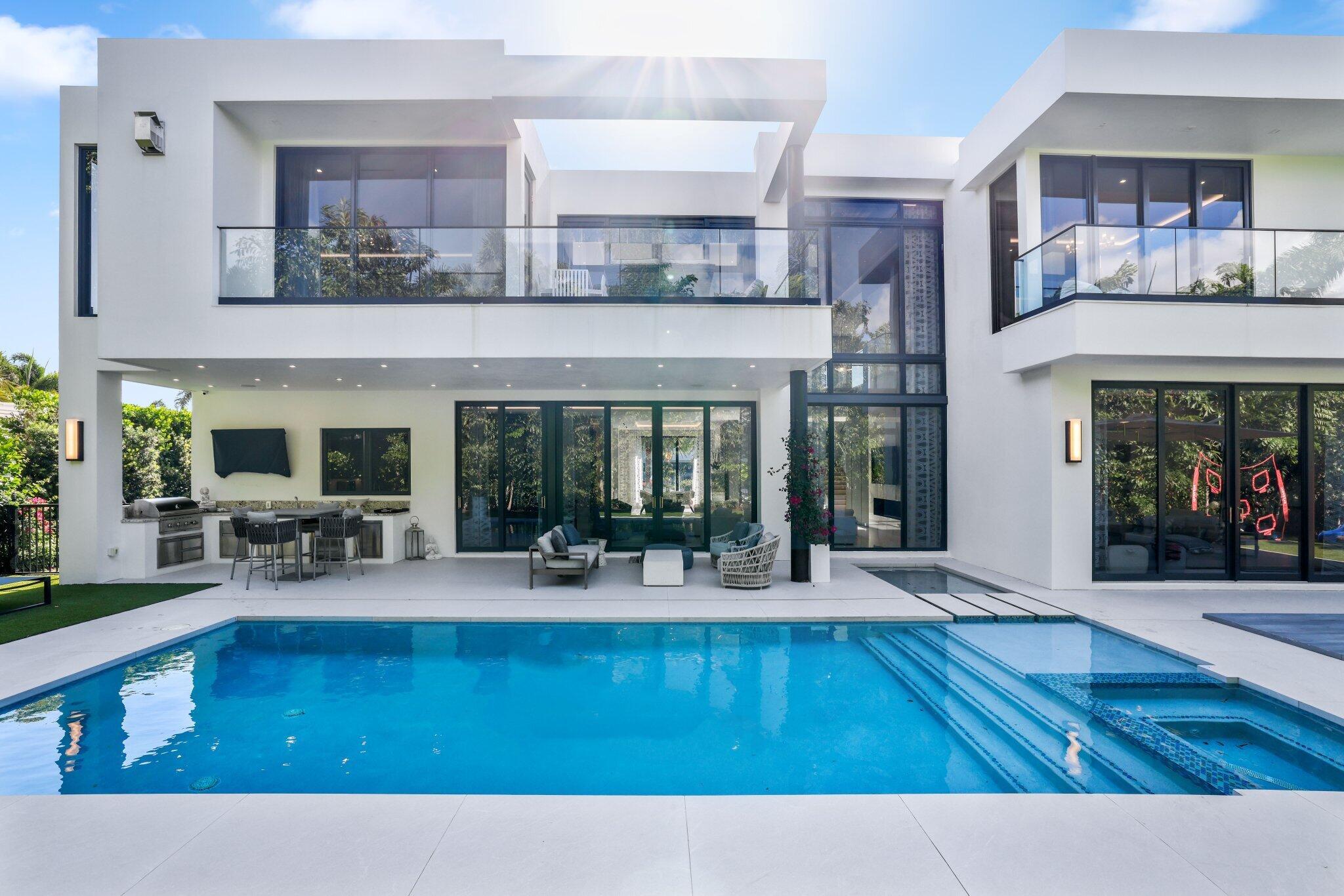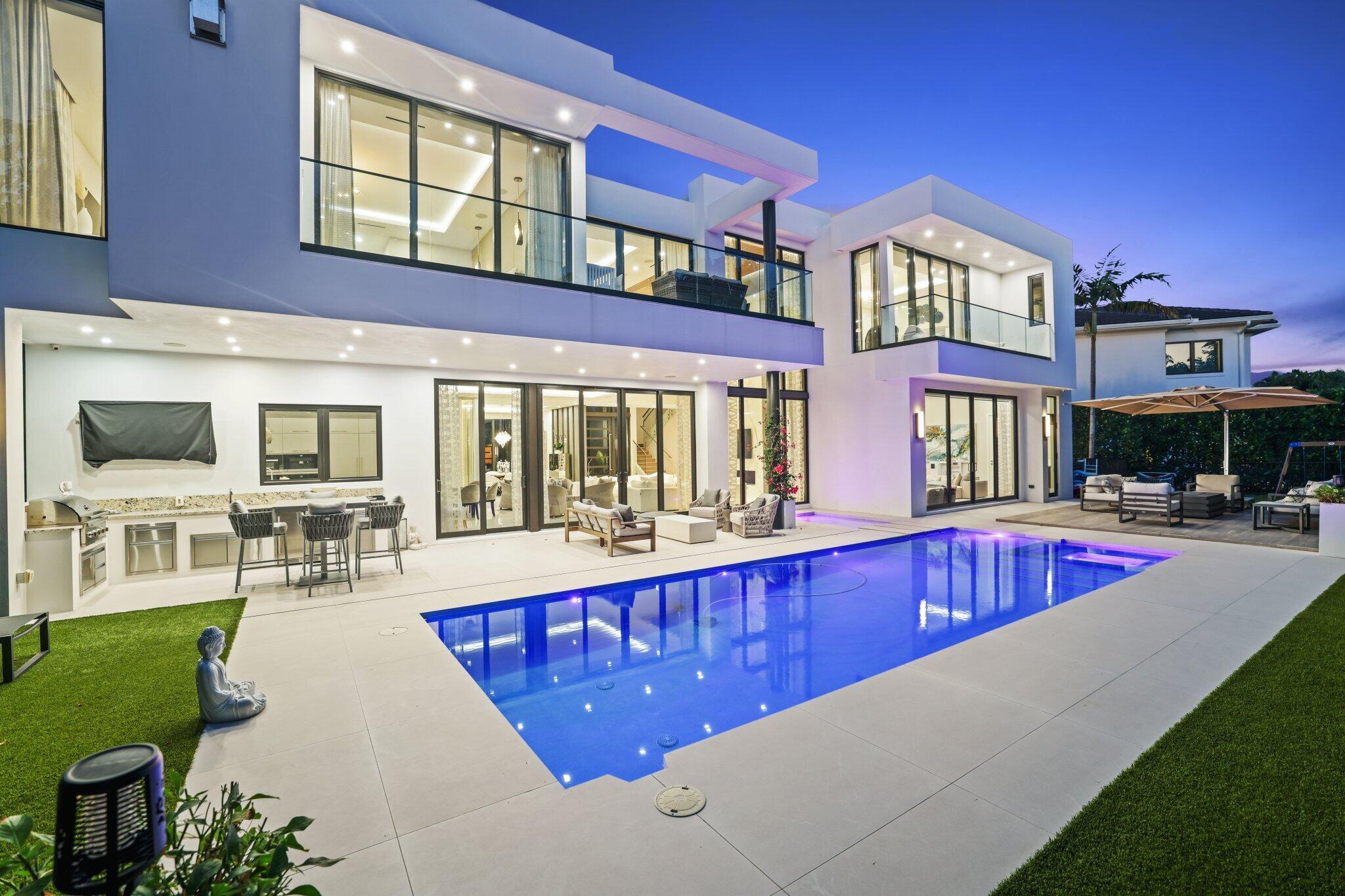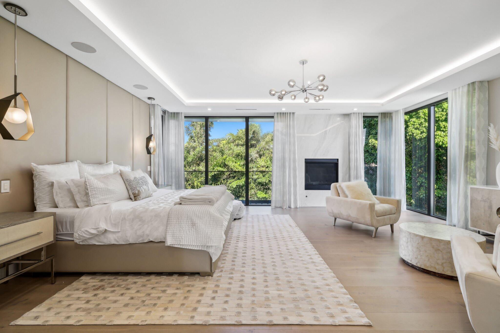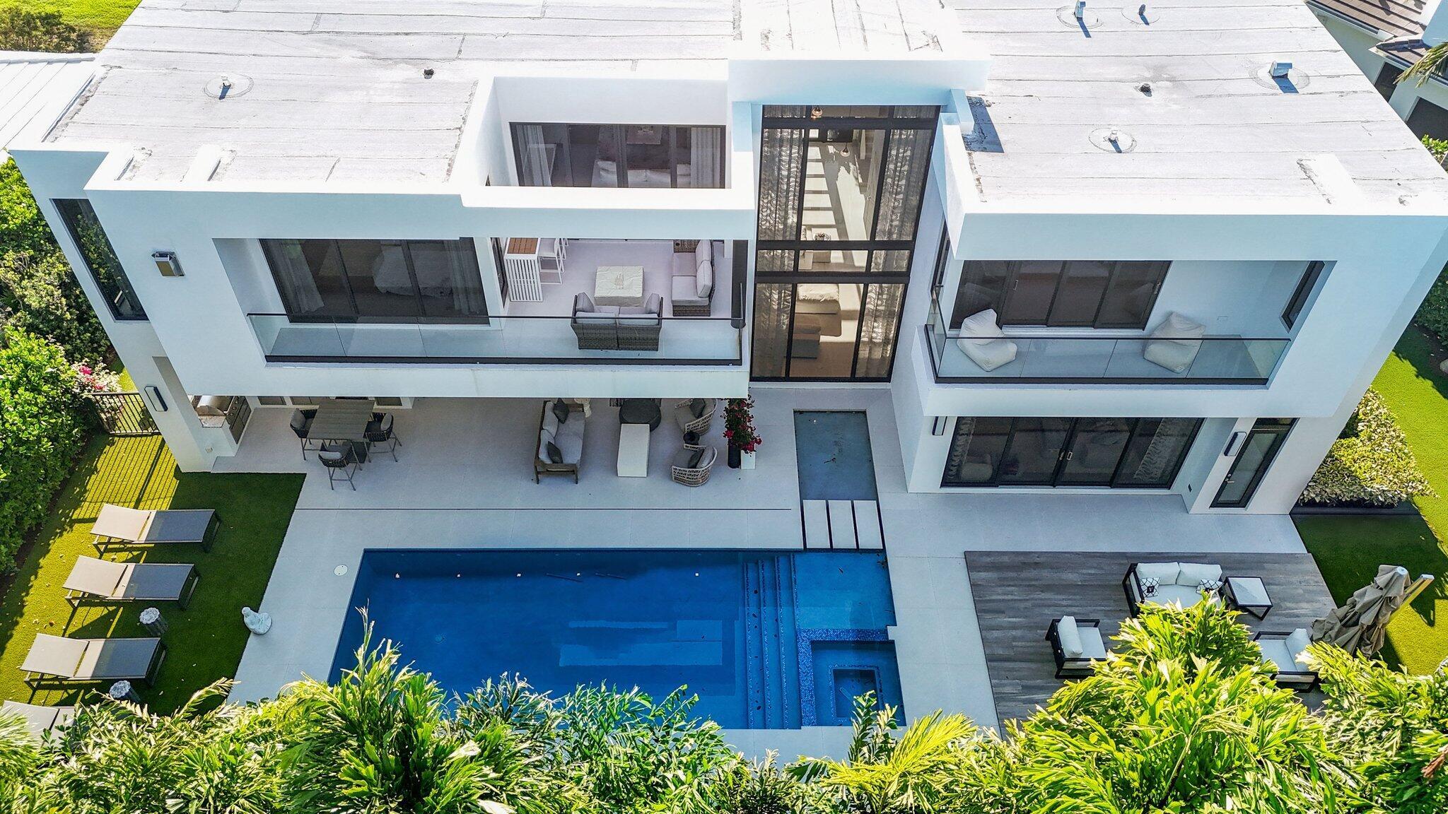 This Absolutely Gorgeous Modern Estate is offered fully furnished and features a 2 story Great room with stunning walls of glass, a gas fireplace, Formal Dining room w/Glass wine closet, Custom Kitchen w/Double thick edge Quartzite counter tops, Miele appliances, Custom Cabinets, large pantry, Carrara European imported 48 x 48 porcelain Tile. There is one ensuite bedroom downstairs as well as a club room off the pool w/ a Quartz Bar, cabana bath and closet. Upstairs is a great Loft area w/ a Custom Lacquer and Quartz Bar, An Exquisite Master with 2 large closets, morning bar, balcony and an incredible Master bath All the bedrooms are oversized. 2 laundry rooms, 3+golf cart garage & Elevator. The Private Backyard is huge w/ a beautiful pool, outdoor Loggia w/ Summer Kitchen.
