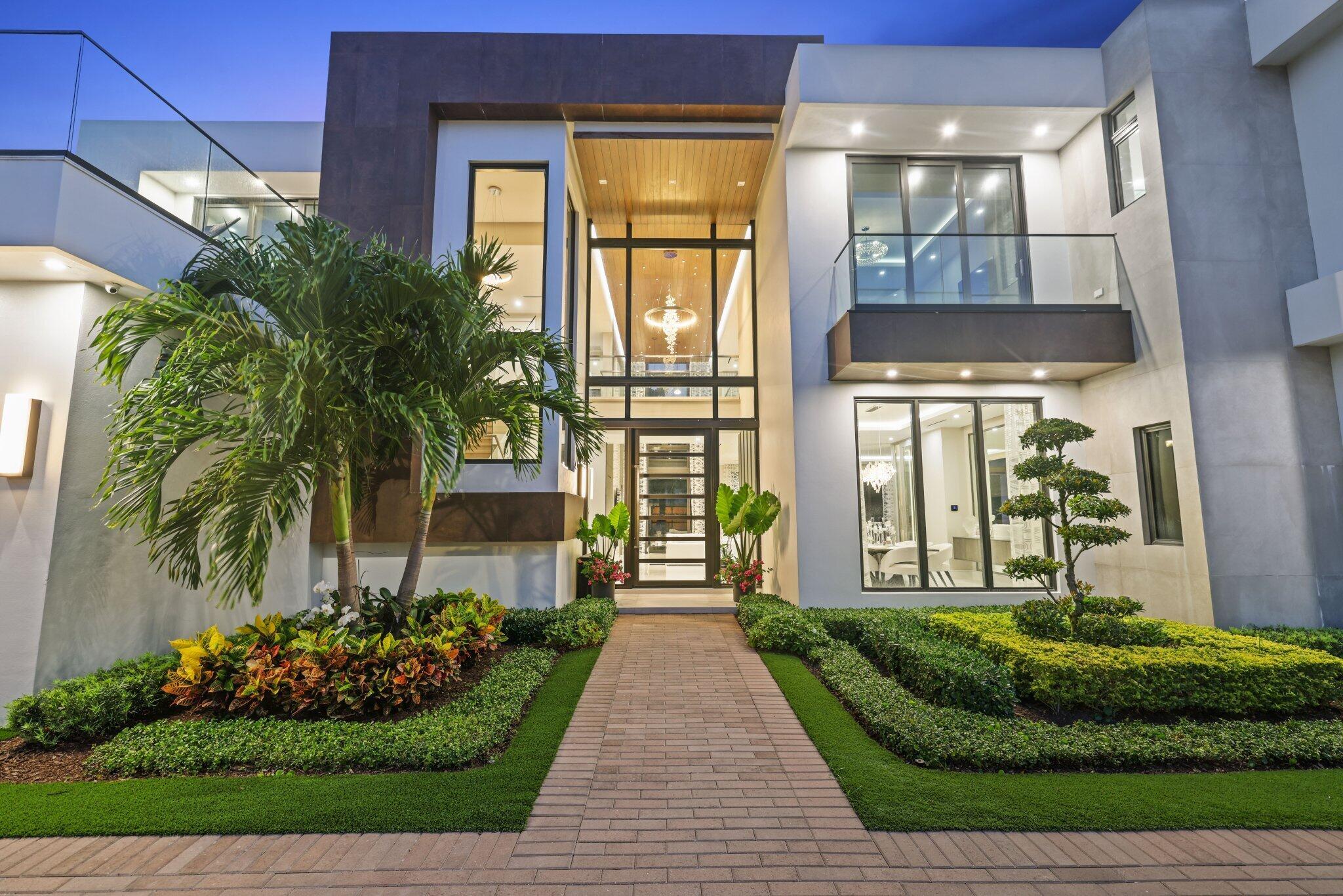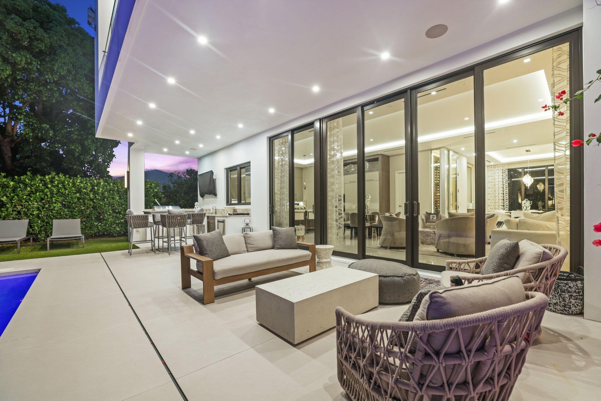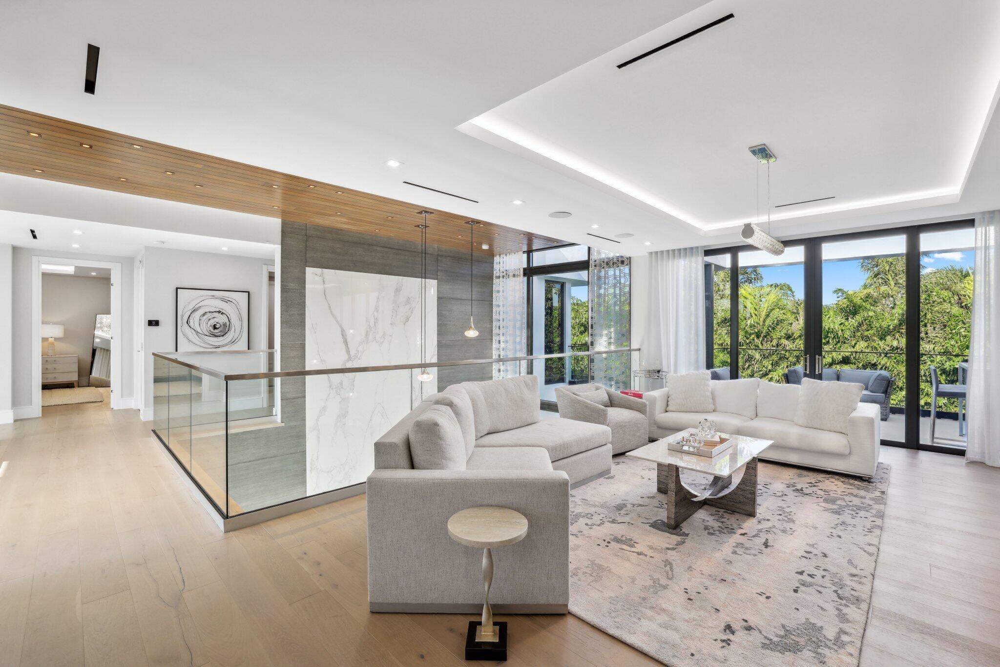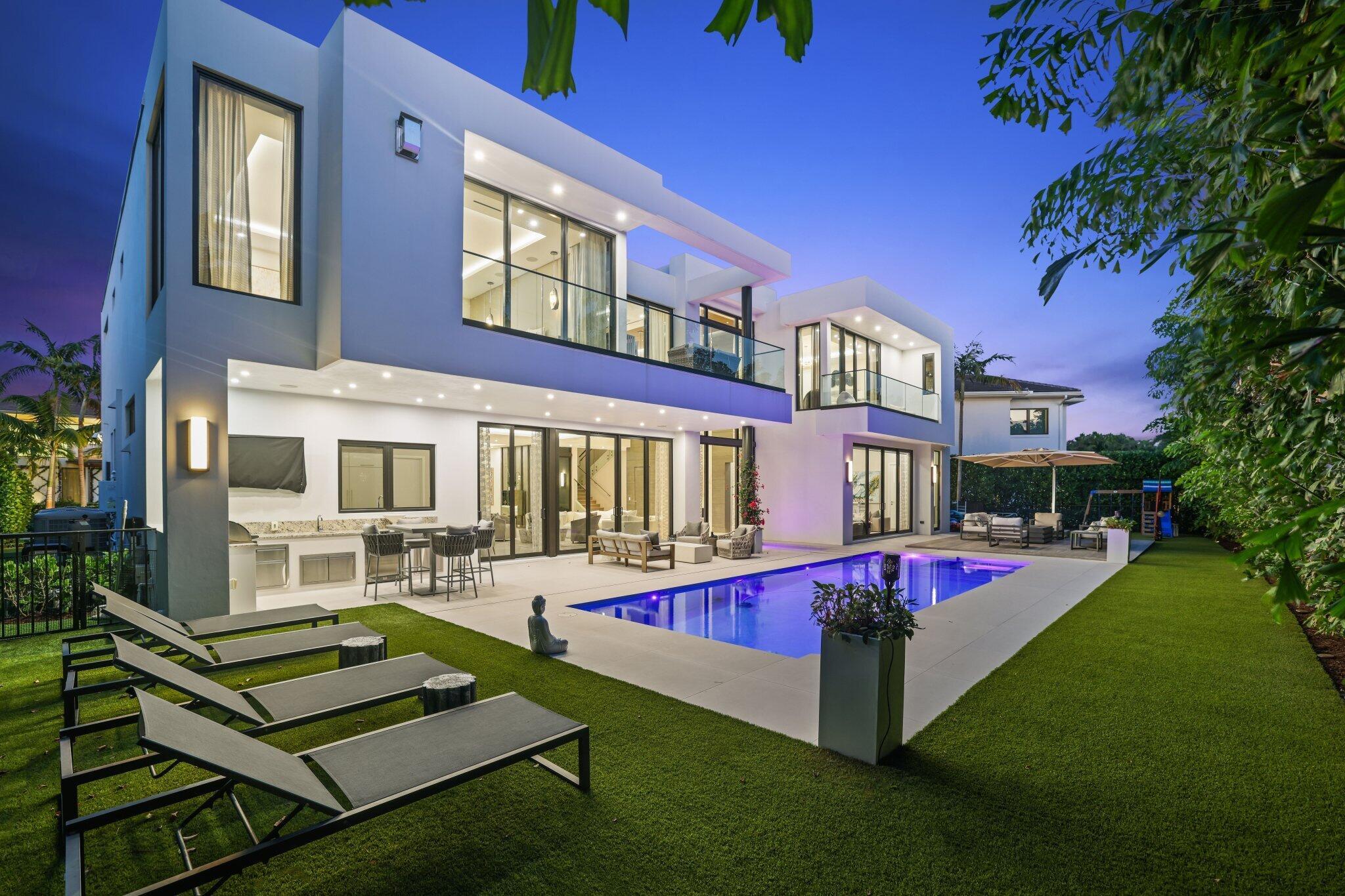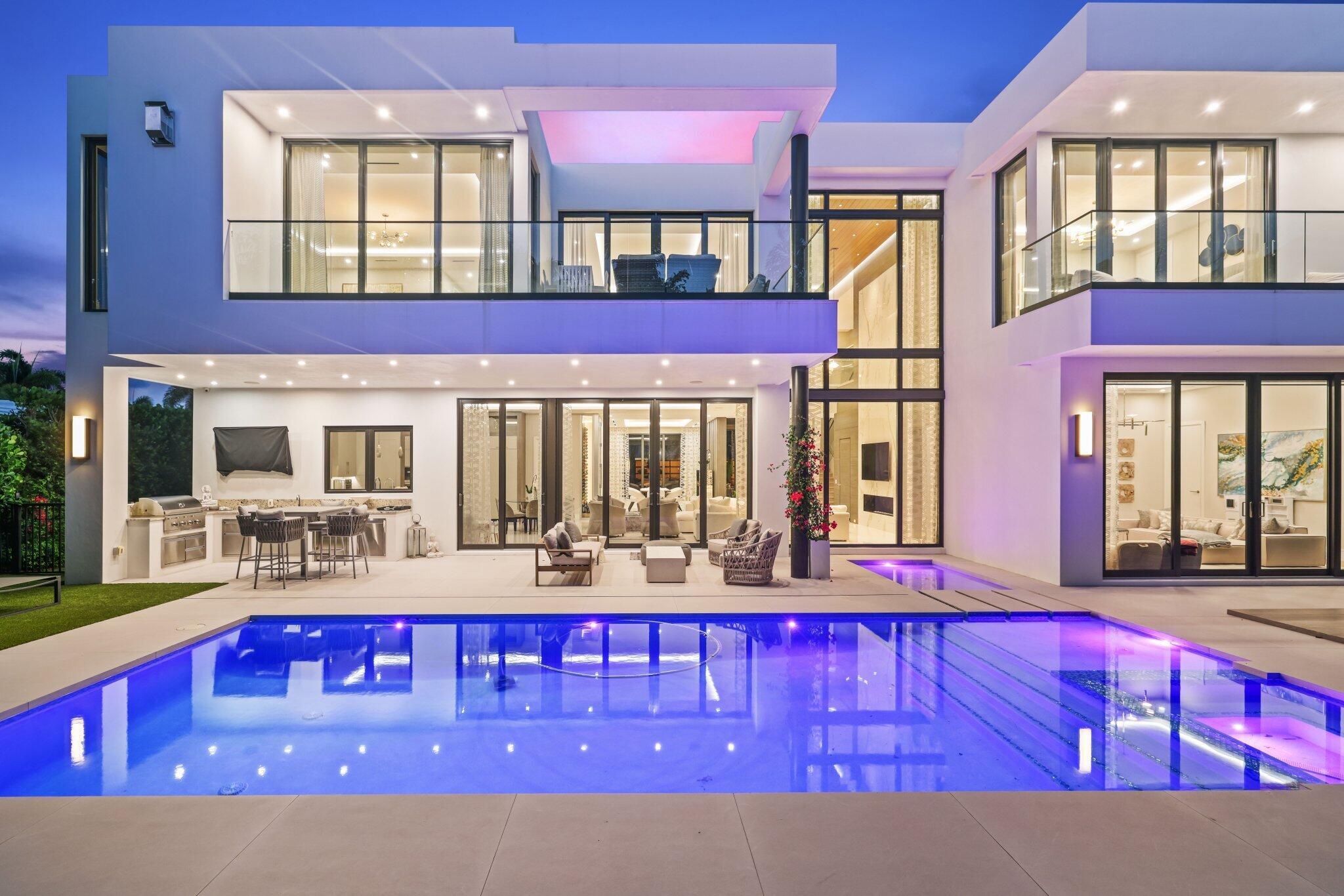This Absolutely Gorgeous Modern Estate is offered fully furnished and features a 2 story Great room with stunning walls of glass, a gas fireplace, Formal Dining room w/Glass wine closet, Custom Kitchen w/Double thick edge Quartzite counter tops, Miele appliances, Custom Cabinets, large pantry, Carrara European imported 48 x 48 porcelain Tile. There is one ensuite bedroom downstairs as well as a club room off the pool w/ a Quartz Bar, cabana bath and closet. Upstairs is a great Loft area w/ a Custom Lacquer and Quartz Bar, An Exquisite Master with 2 large closets, morning bar, balcony and an incredible Master bath All the bedrooms are oversized. 2 laundry rooms, 3+golf cart garage & Elevator. The Private Backyard is huge w/ a beautiful pool, outdoor Loggia w/ Summer Kitchen.