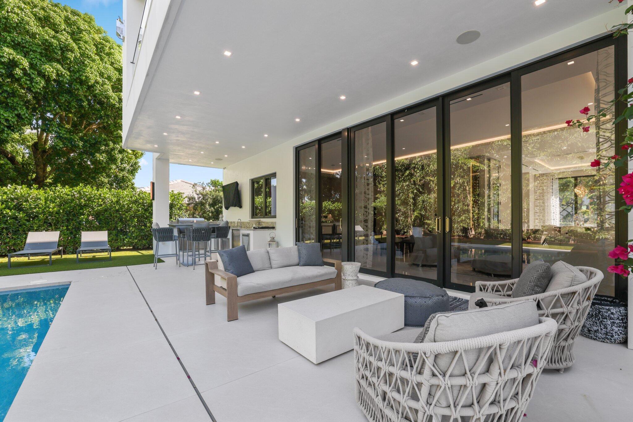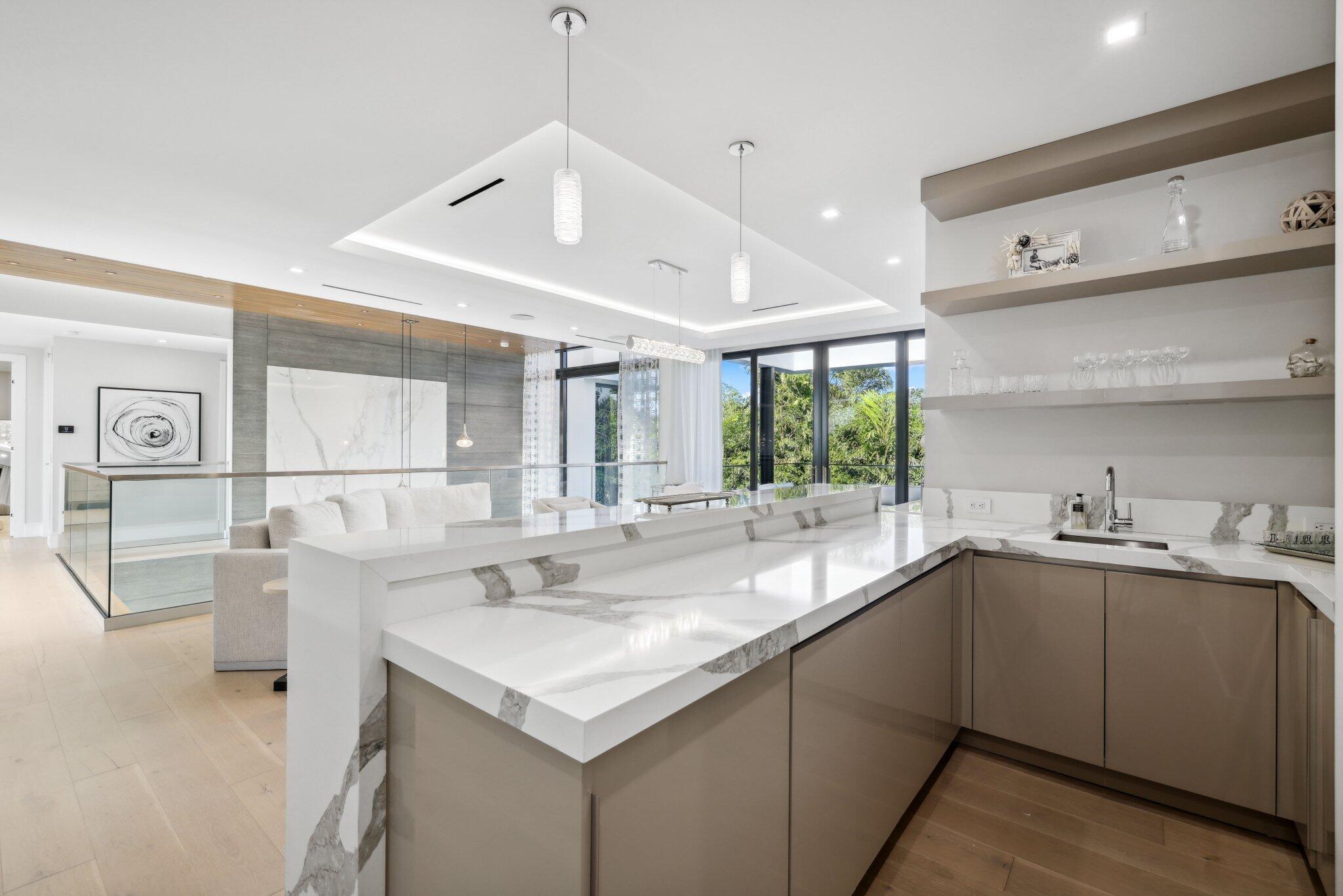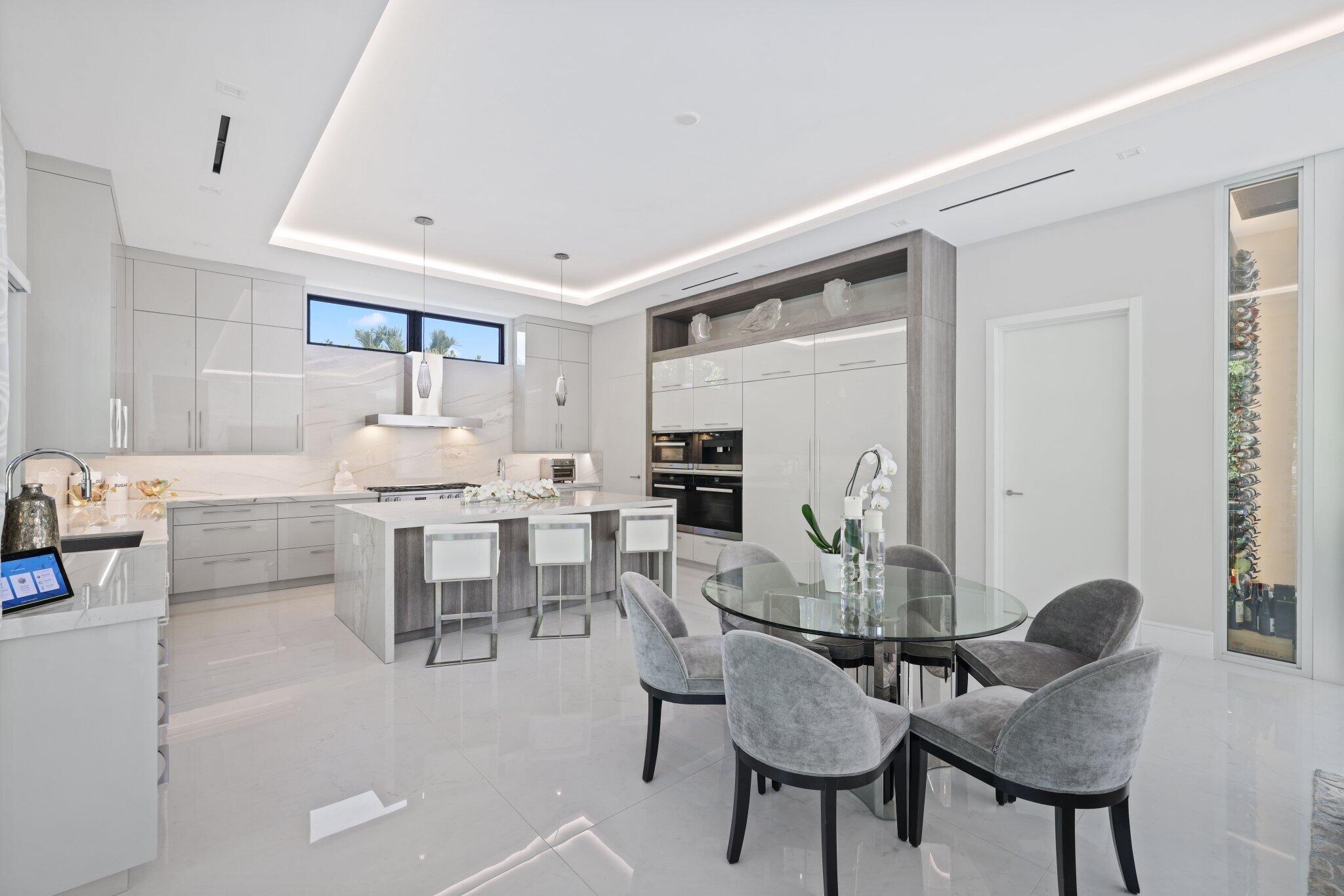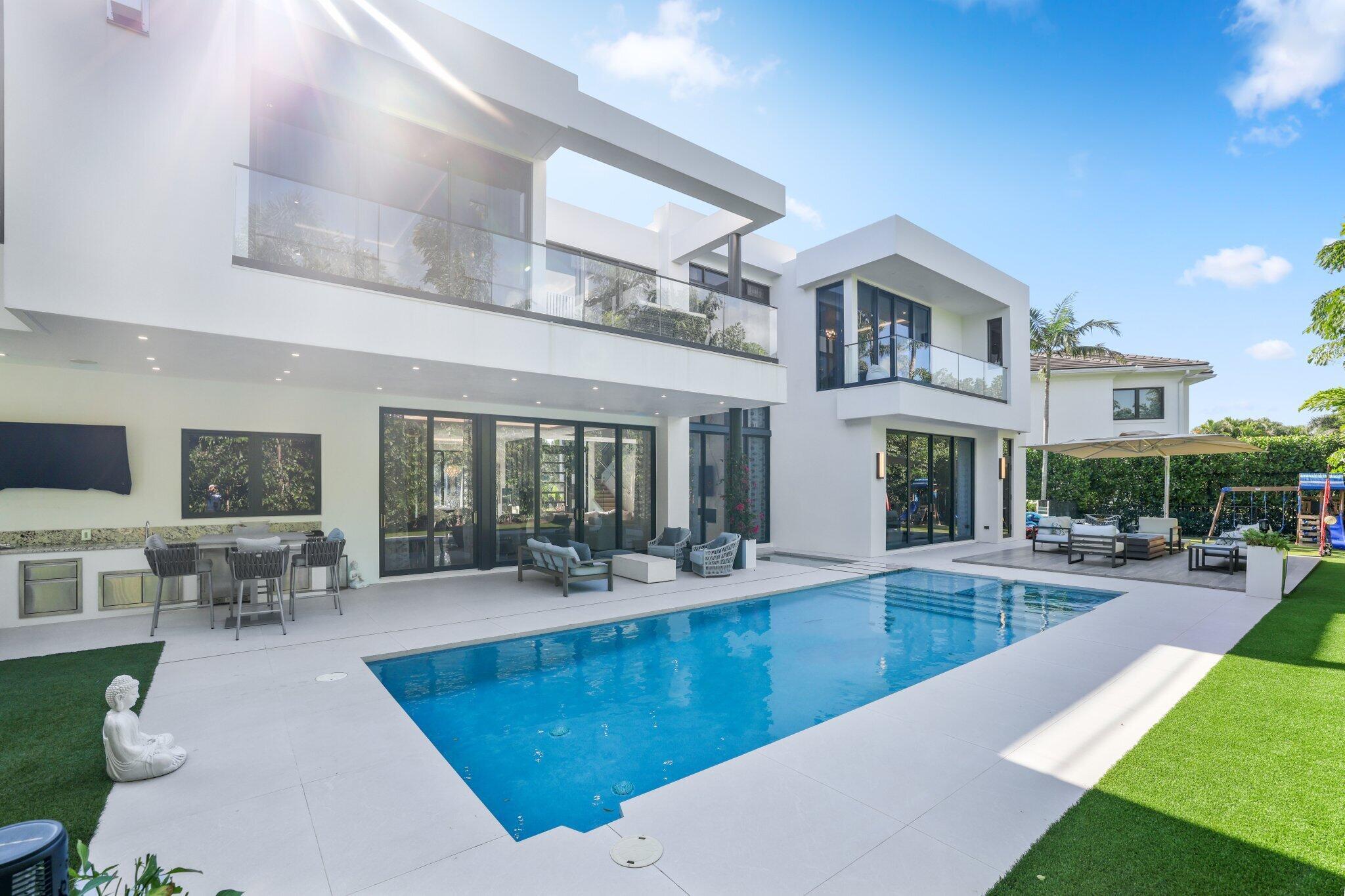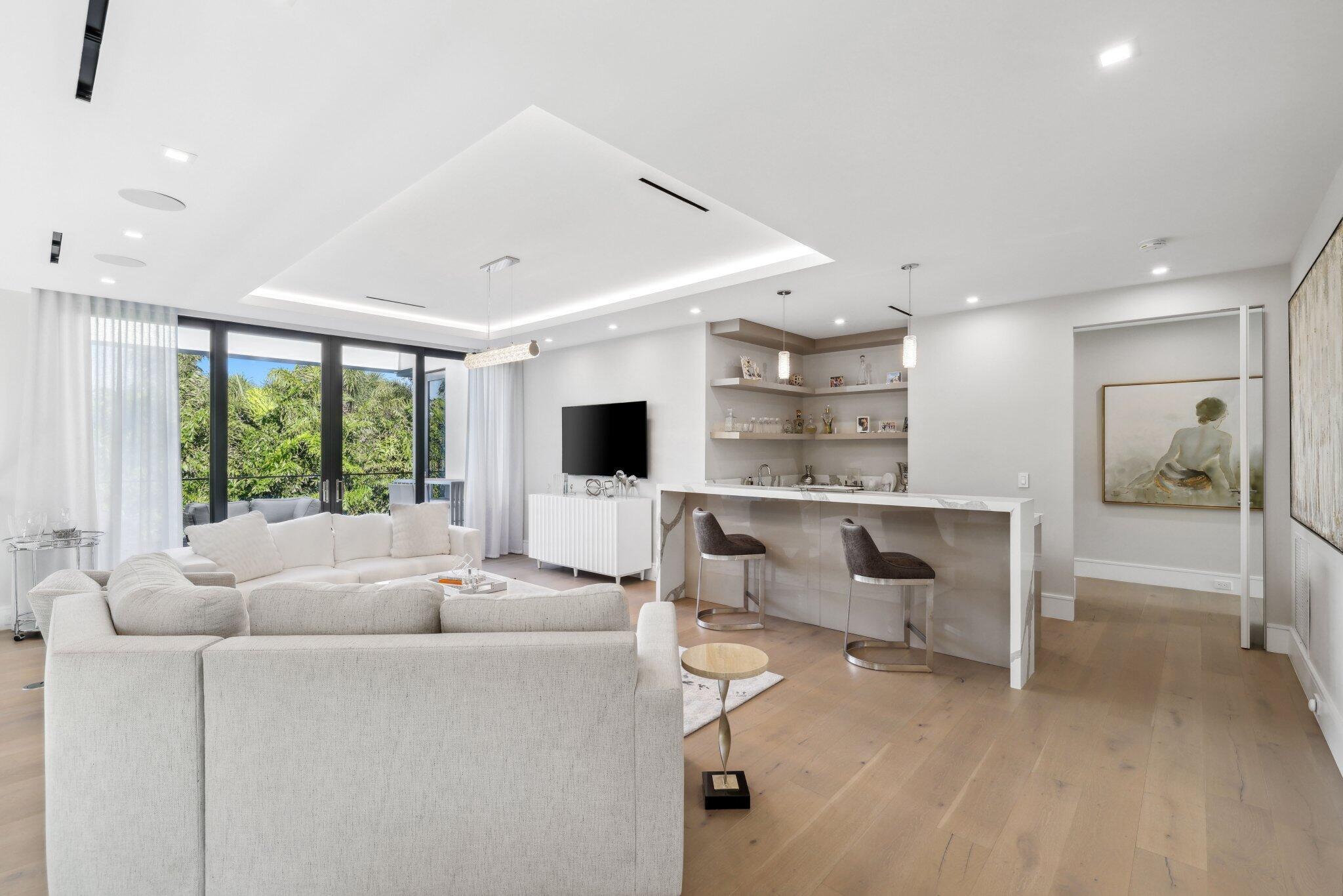 This Absolutely Gorgeous Modern Estate is offered fully furnished and features a 2 story Great room with stunning walls of glass, a gas fireplace, Formal Dining room w/Glass wine closet, Custom Kitchen w/Double thick edge Quartzite counter tops, Miele appliances, Custom Cabinets, large pantry, Carrara European imported 48 x 48 porcelain Tile. There is one ensuite bedroom downstairs as well as a club room off the pool w/ a Quartz Bar, cabana bath and closet. Upstairs is a great Loft area w/ a Custom Lacquer and Quartz Bar, An Exquisite Master with 2 large closets, morning bar, balcony and an incredible Master bath All the bedrooms are oversized. 2 laundry rooms, 3+golf cart garage & Elevator. The Private Backyard is huge w/ a beautiful pool, outdoor Loggia w/ Summer Kitchen.