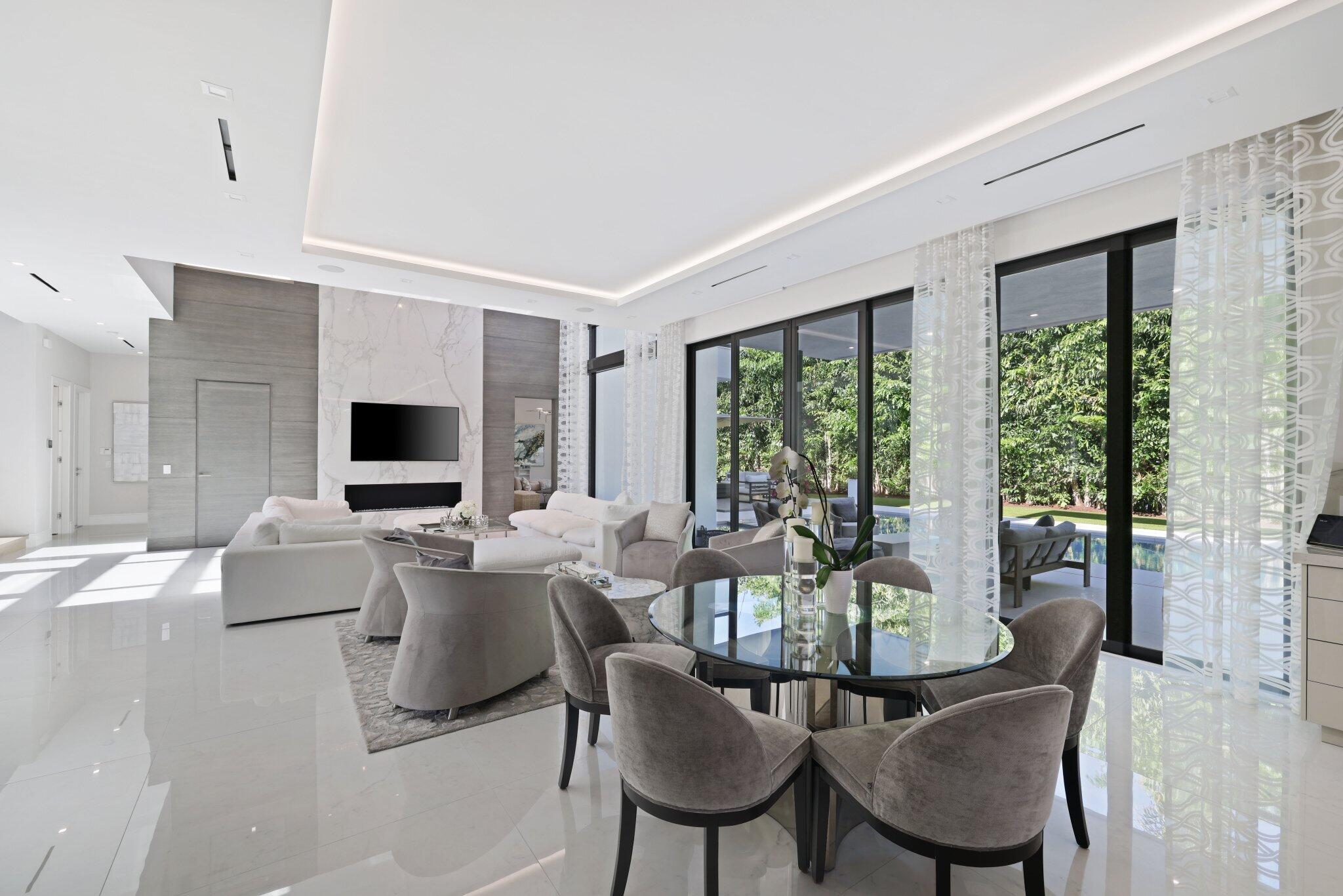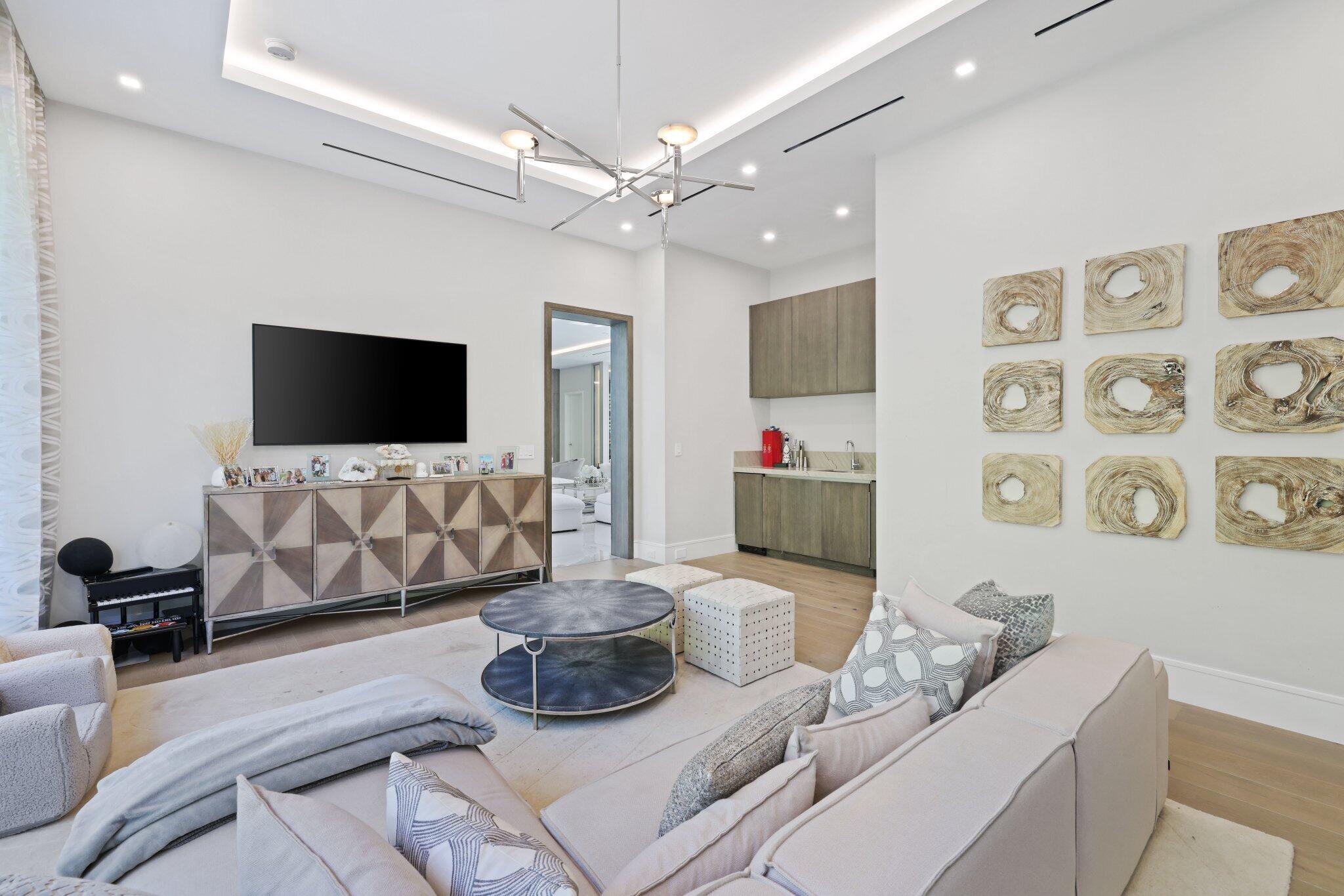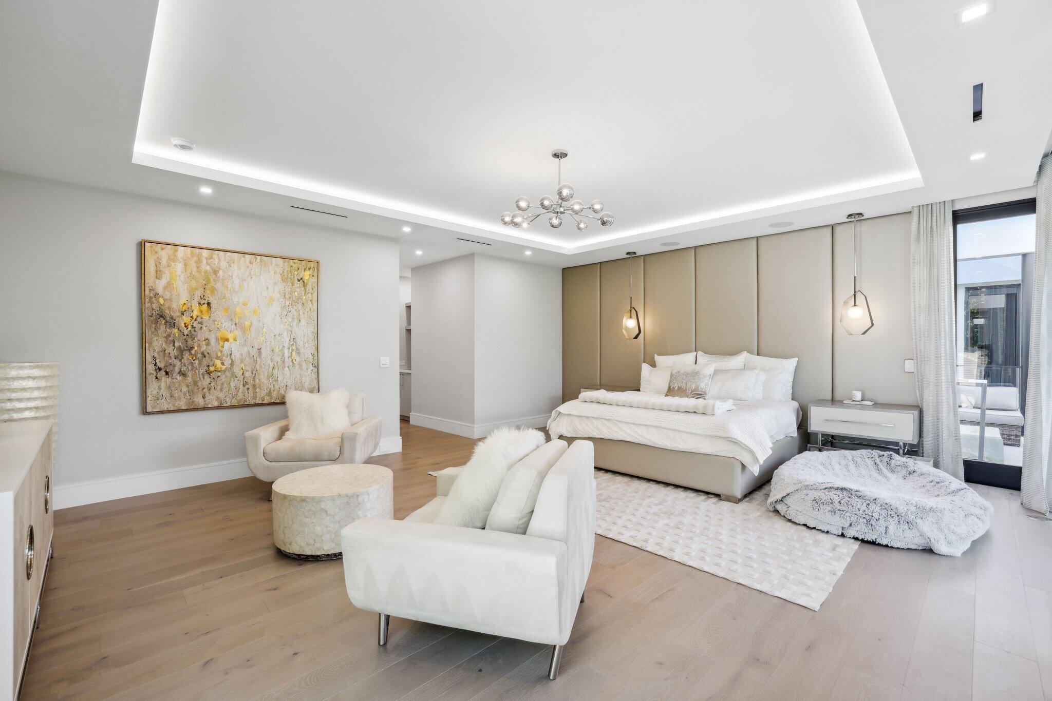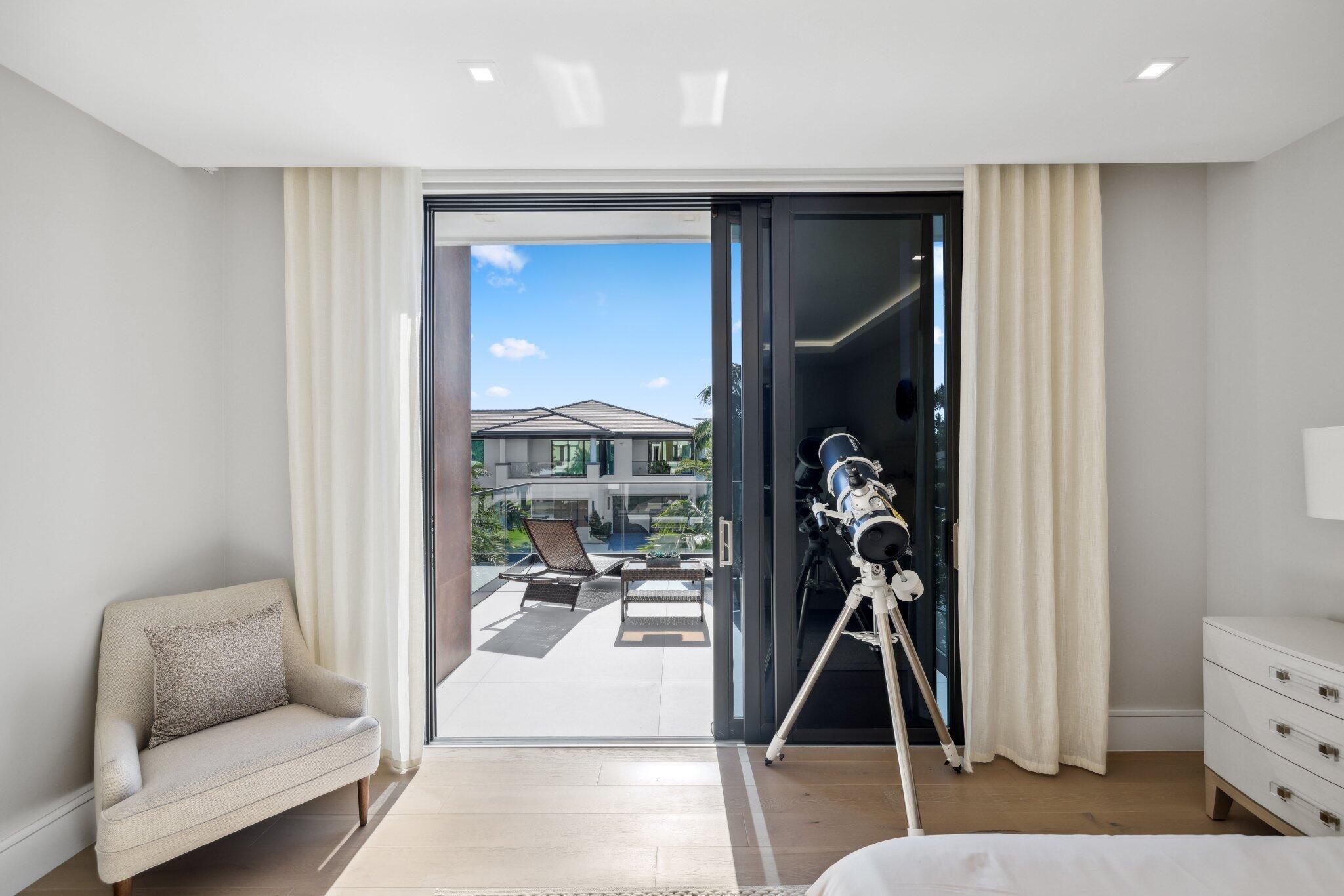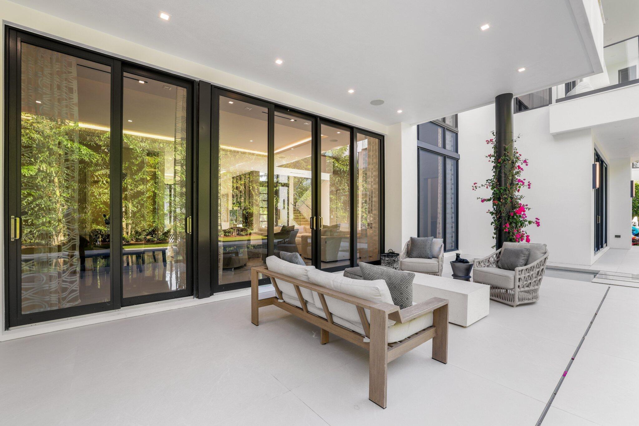 This Absolutely Gorgeous Modern Estate is offered fully furnished and features a 2 story Great room with stunning walls of glass, a gas fireplace, Formal Dining room w/Glass wine closet, Custom Kitchen w/Double thick edge Quartzite counter tops, Miele appliances, Custom Cabinets, large pantry, Carrara European imported 48 x 48 porcelain Tile. There is one ensuite bedroom downstairs as well as a club room off the pool w/ a Quartz Bar, cabana bath and closet. Upstairs is a great Loft area w/ a Custom Lacquer and Quartz Bar, An Exquisite Master with 2 large closets, morning bar, balcony and an incredible Master bath All the bedrooms are oversized. 2 laundry rooms, 3+golf cart garage & Elevator. The Private Backyard is huge w/ a beautiful pool, outdoor Loggia w/ Summer Kitchen.