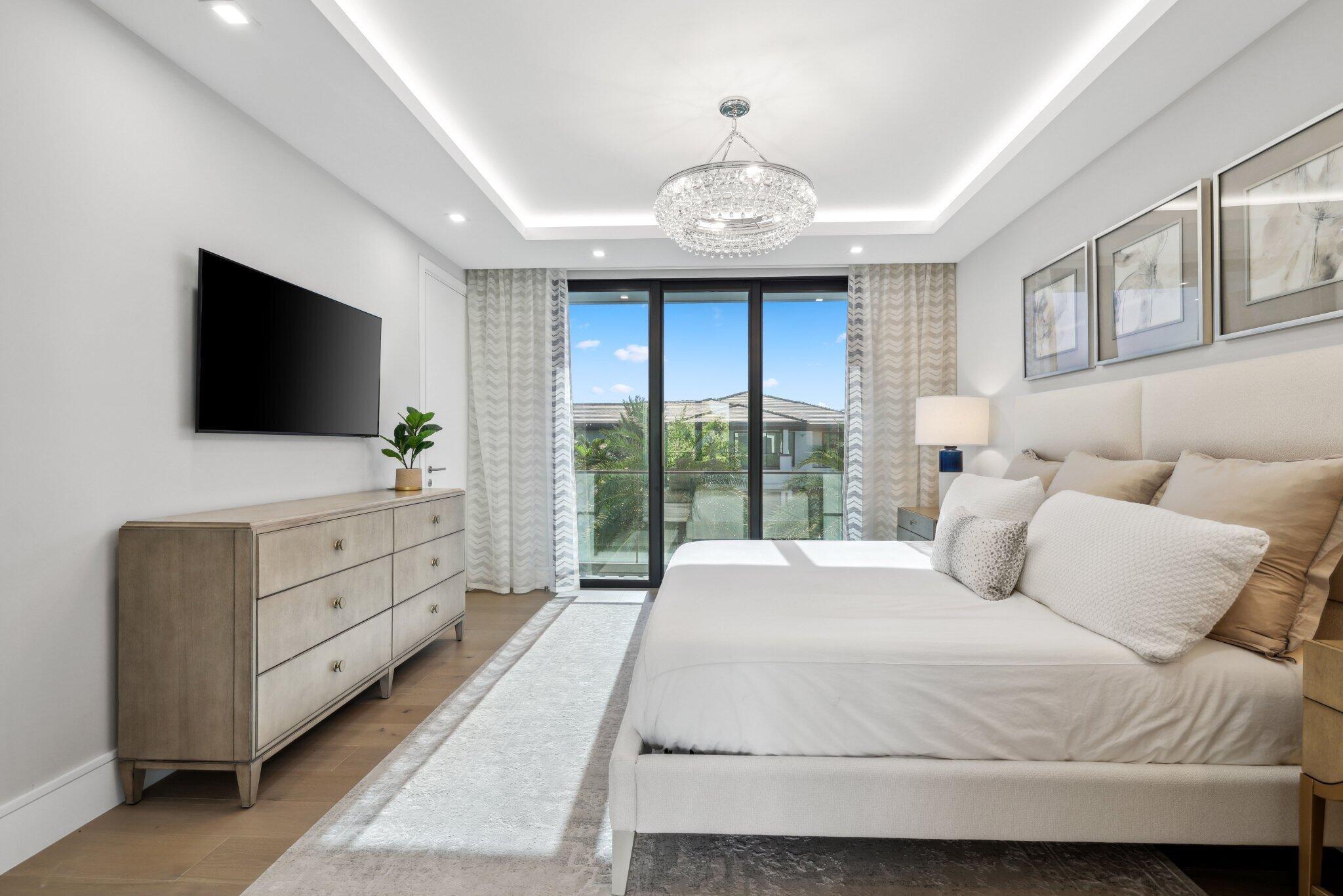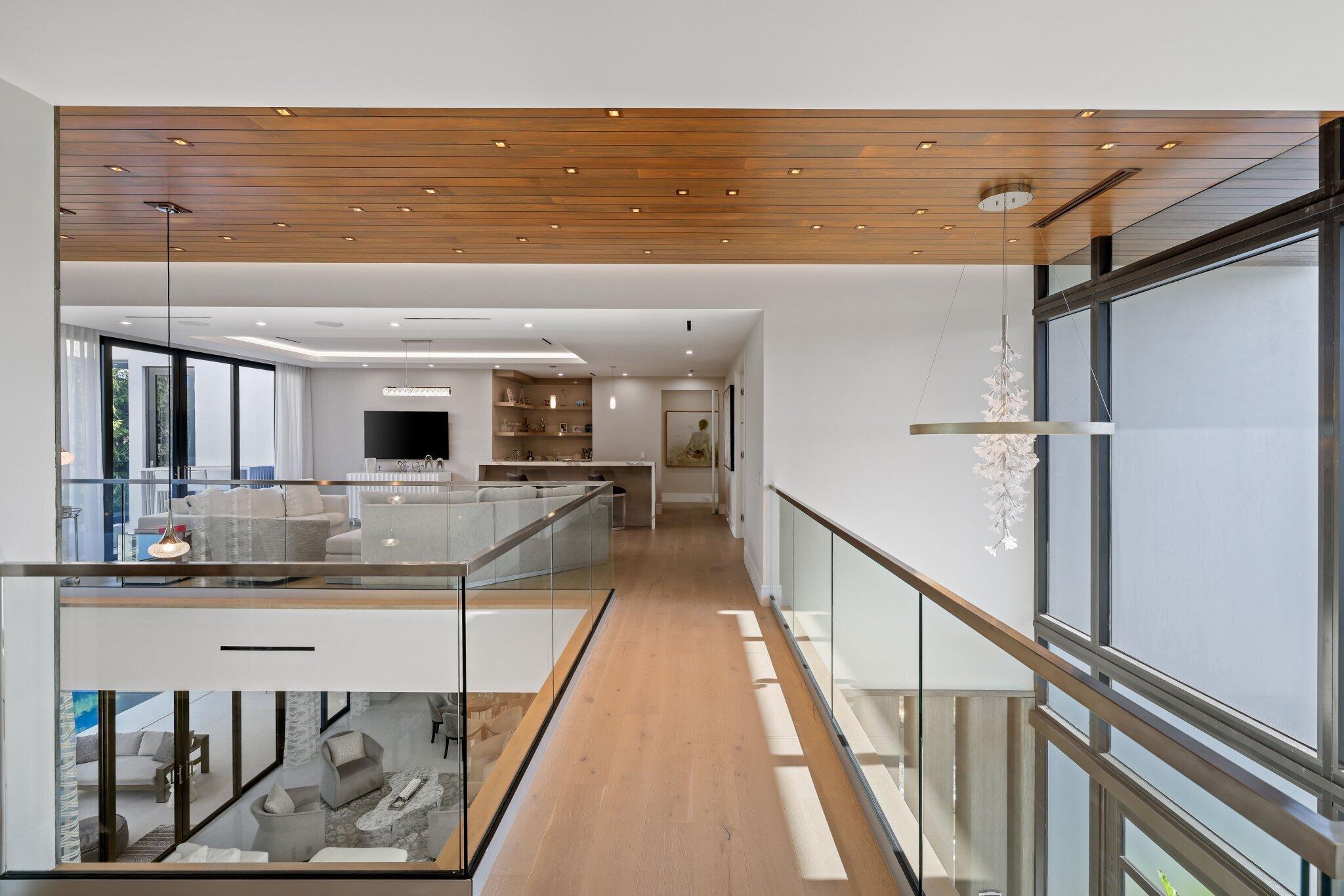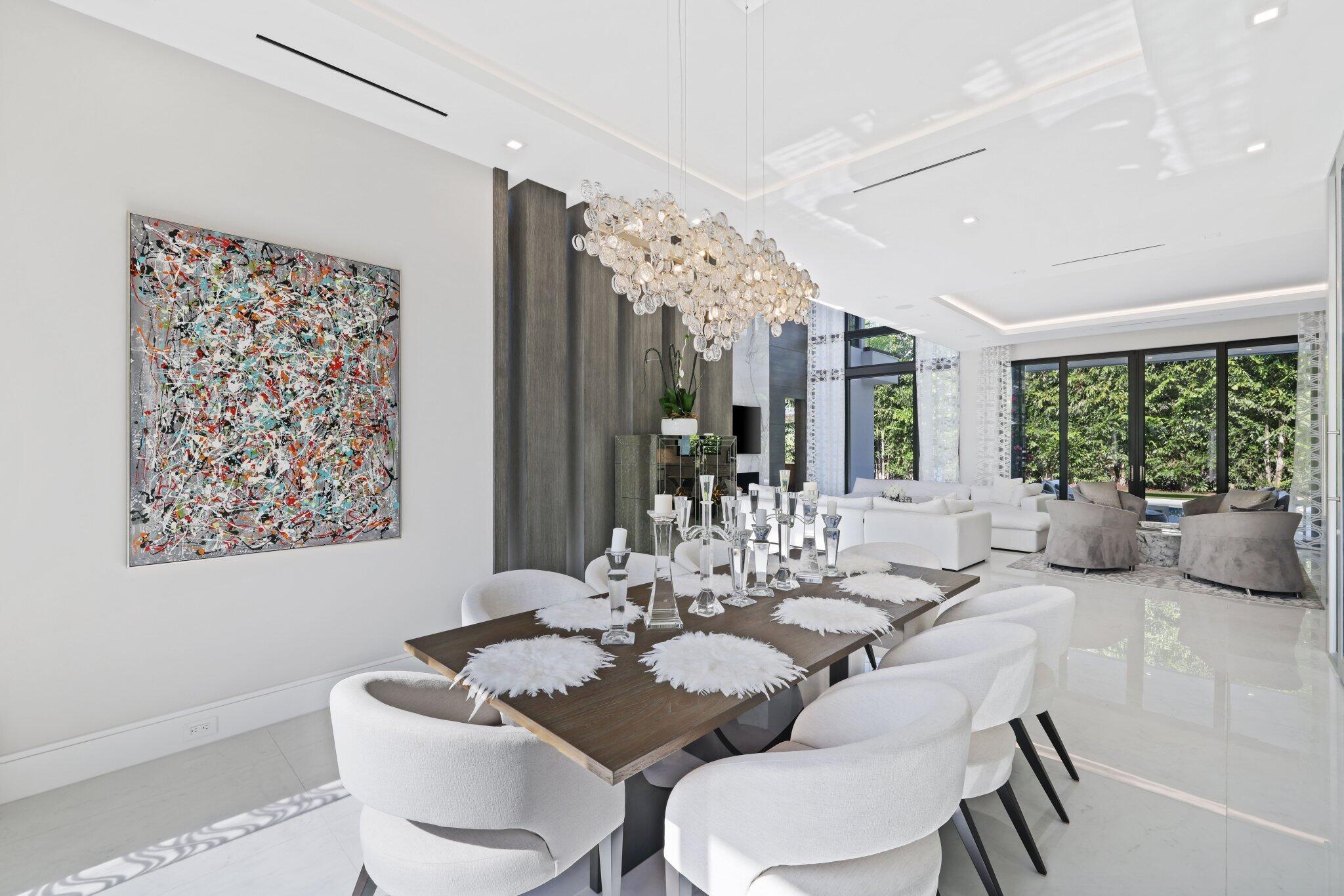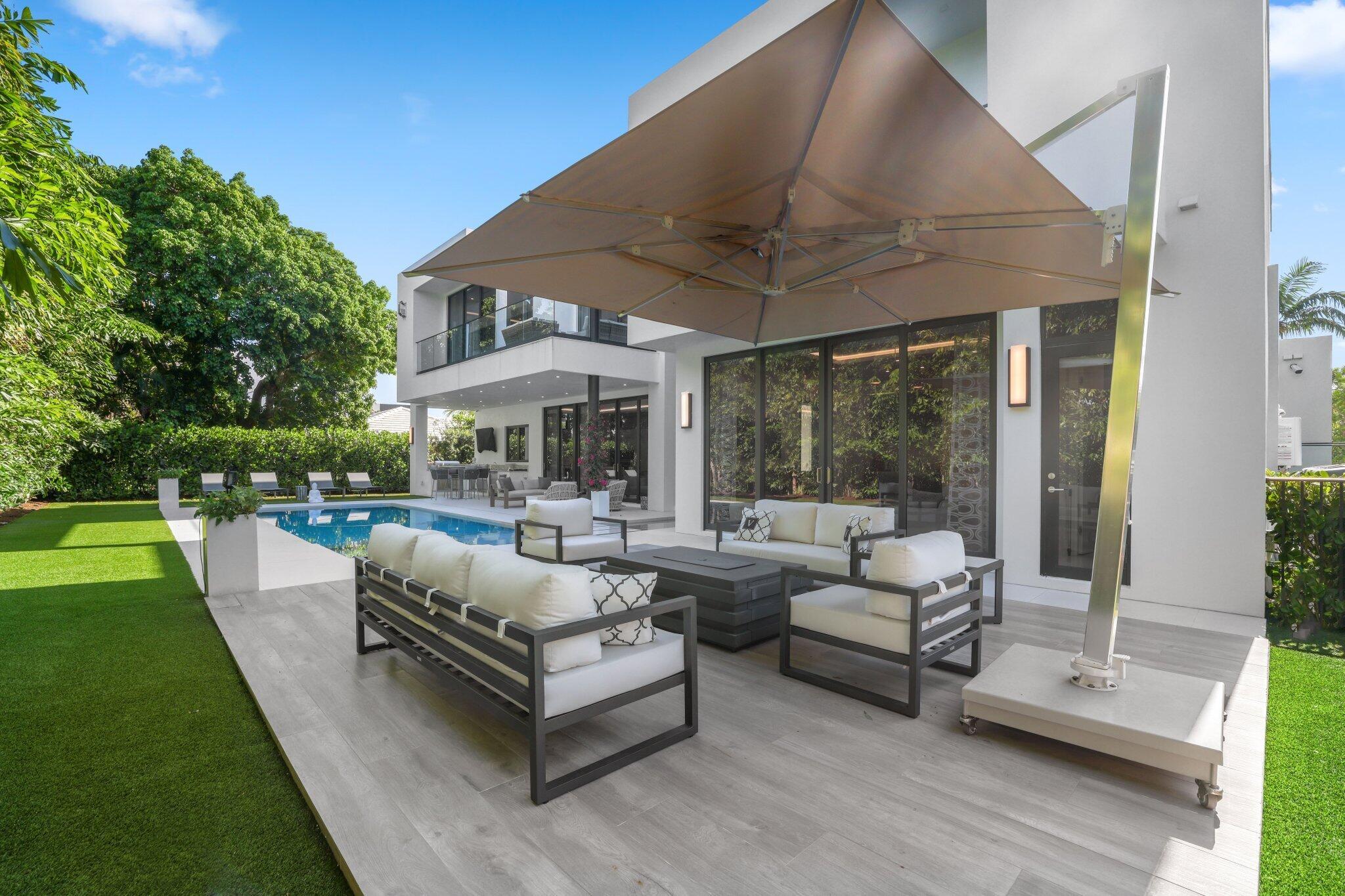 This Absolutely Gorgeous Modern Estate is offered fully furnished and features a 2 story Great room with stunning walls of glass, a gas fireplace, Formal Dining room w/Glass wine closet, Custom Kitchen w/Double thick edge Quartzite counter tops, Miele appliances, Custom Cabinets, large pantry, Carrara European imported 48 x 48 porcelain Tile. There is one ensuite bedroom downstairs as well as a club room off the pool w/ a Quartz Bar, cabana bath and closet. Upstairs is a great Loft area w/ a Custom Lacquer and Quartz Bar, An Exquisite Master with 2 large closets, morning bar, balcony and an incredible Master bath All the bedrooms are oversized. 2 laundry rooms, 3+golf cart garage & Elevator. The Private Backyard is huge w/ a beautiful pool, outdoor Loggia w/ Summer Kitchen.