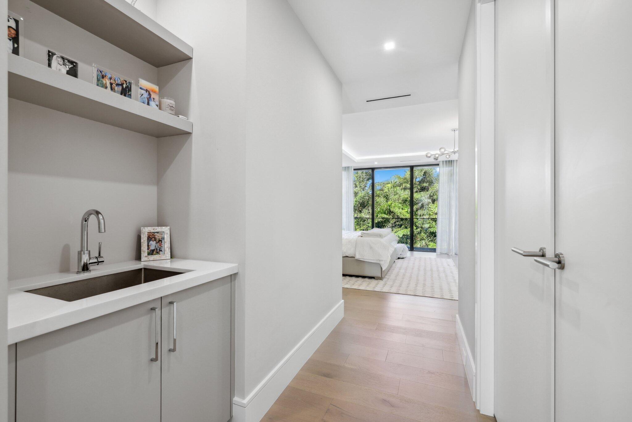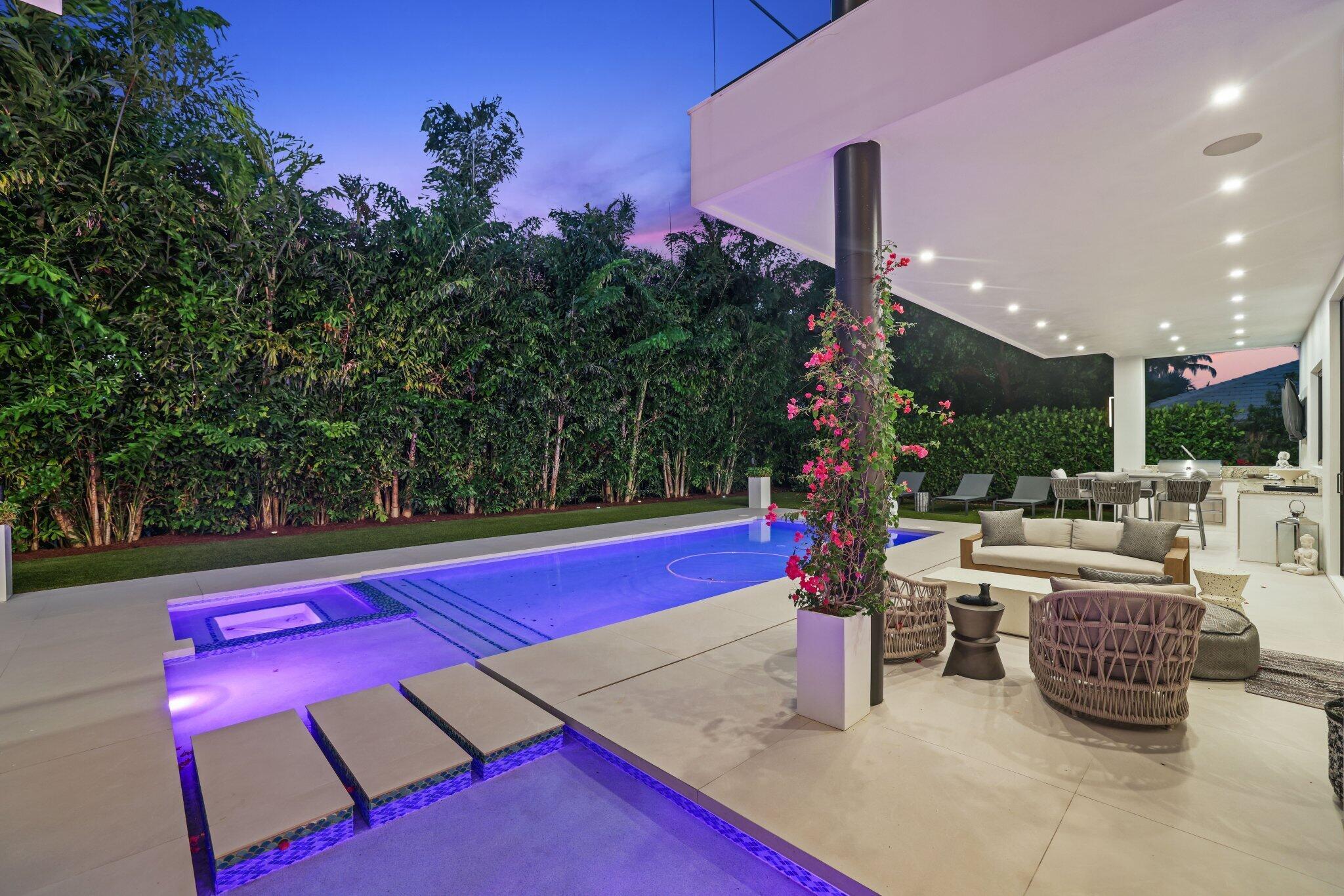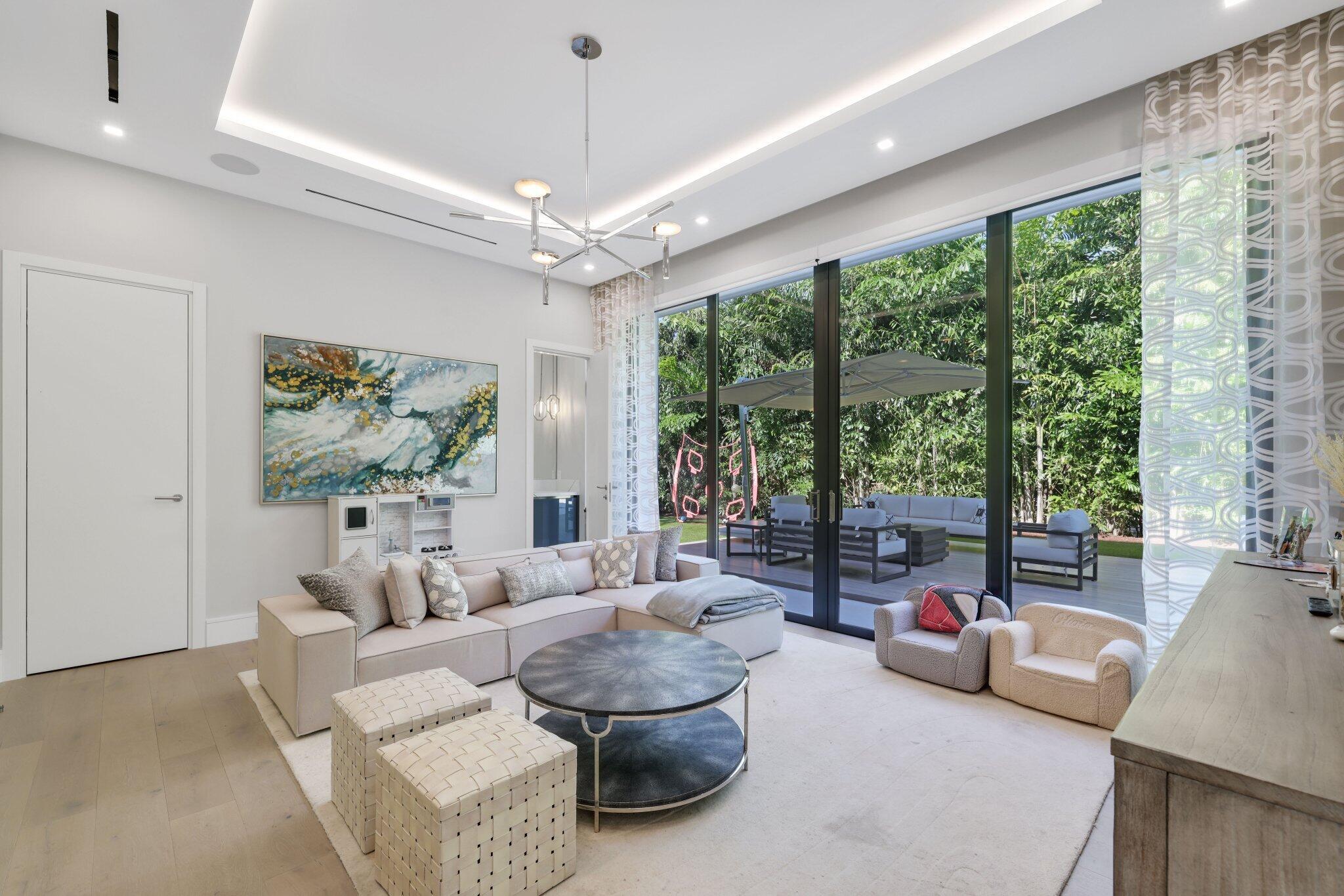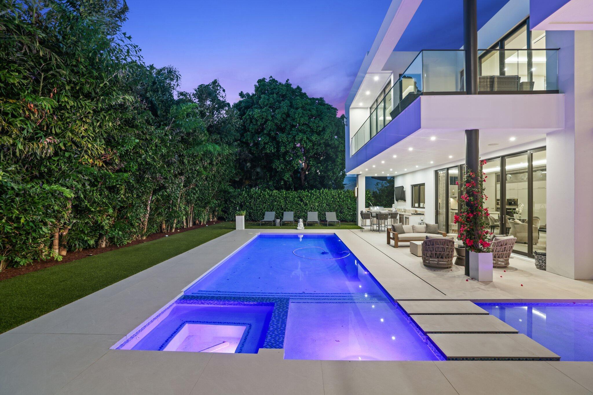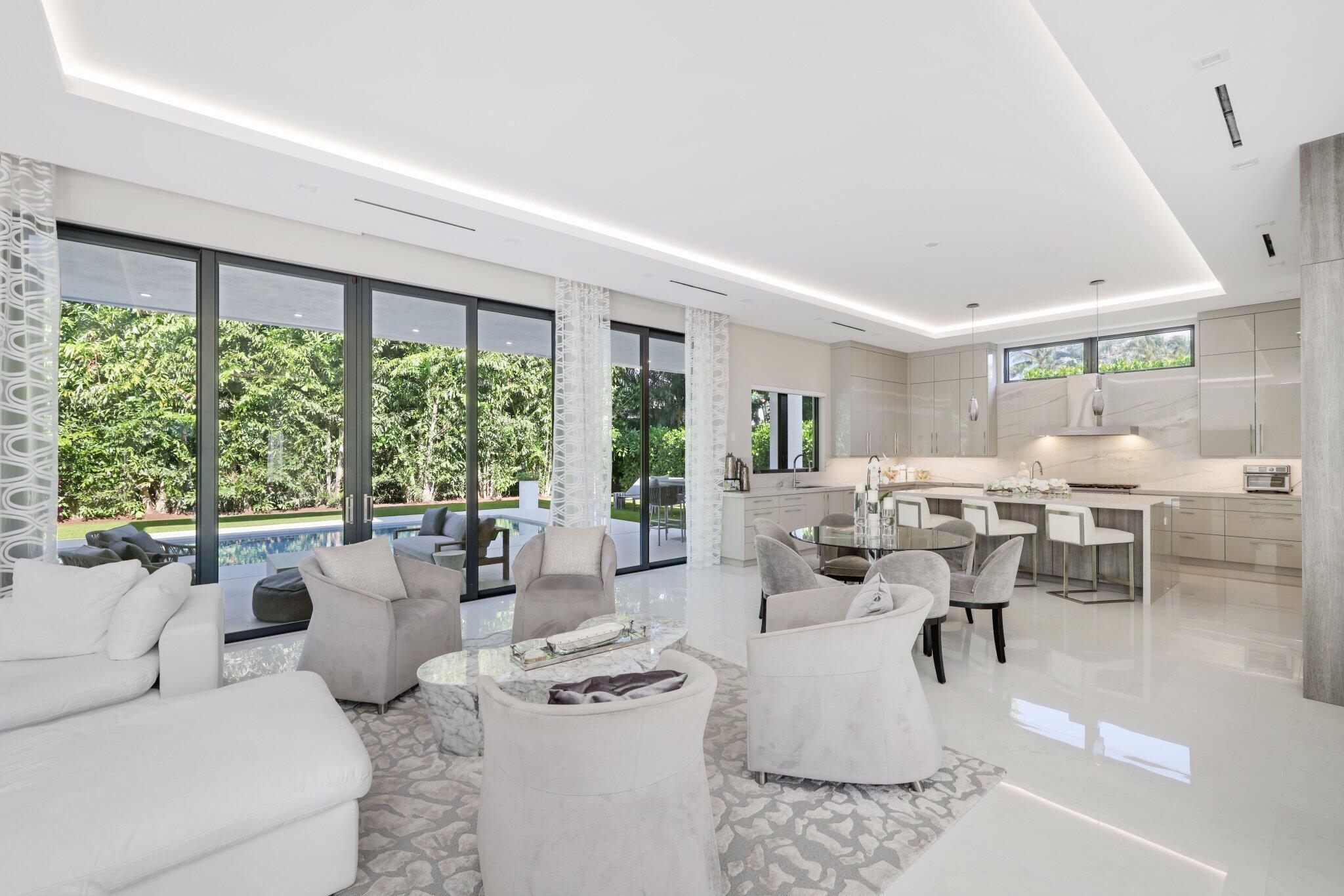 This Absolutely Gorgeous Modern Estate is offered fully furnished and features a 2 story Great room with stunning walls of glass, a gas fireplace, Formal Dining room w/Glass wine closet, Custom Kitchen w/Double thick edge Quartzite counter tops, Miele appliances, Custom Cabinets, large pantry, Carrara European imported 48 x 48 porcelain Tile. There is one ensuite bedroom downstairs as well as a club room off the pool w/ a Quartz Bar, cabana bath and closet. Upstairs is a great Loft area w/ a Custom Lacquer and Quartz Bar, An Exquisite Master with 2 large closets, morning bar, balcony and an incredible Master bath All the bedrooms are oversized. 2 laundry rooms, 3+golf cart garage & Elevator. The Private Backyard is huge w/ a beautiful pool, outdoor Loggia w/ Summer Kitchen.