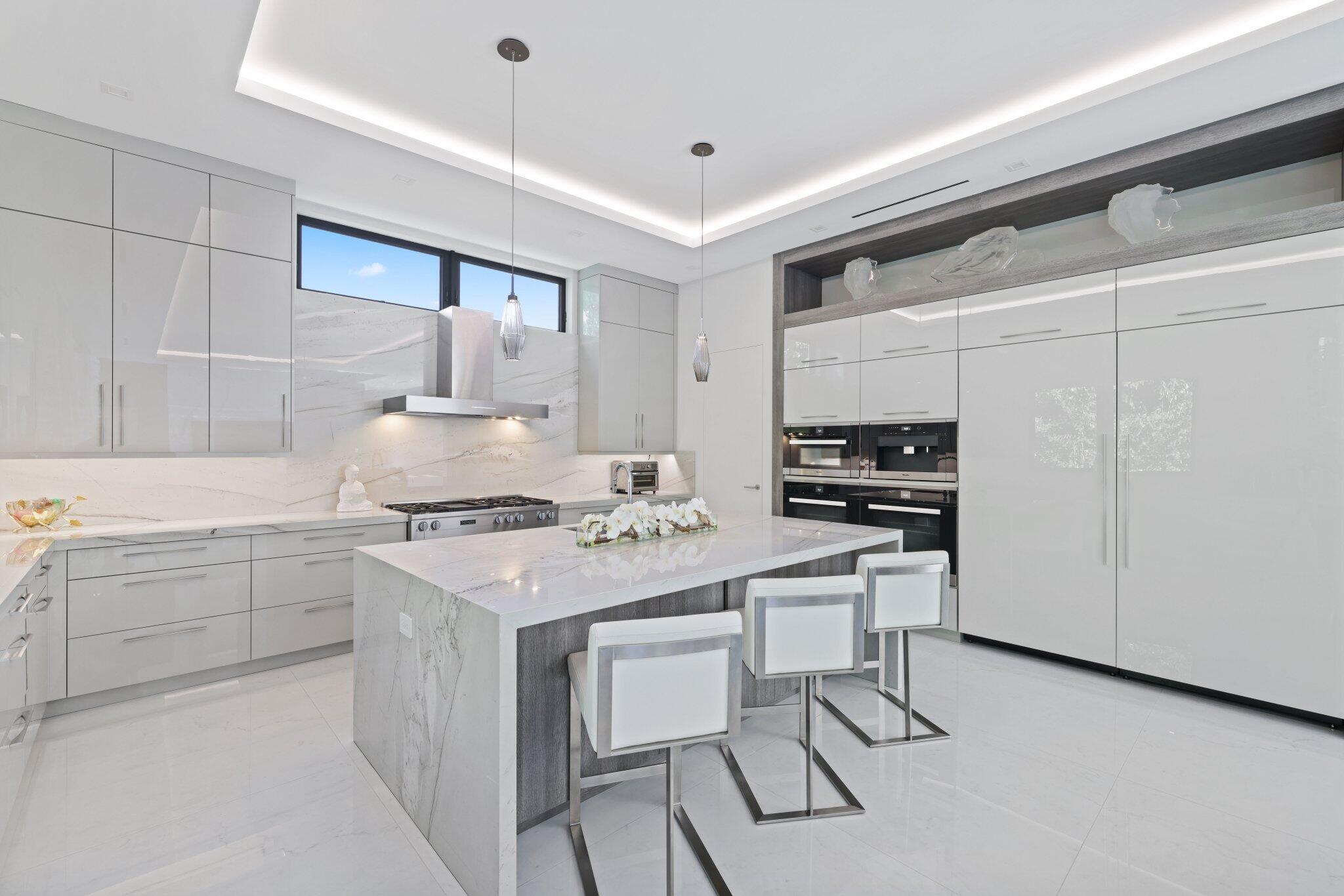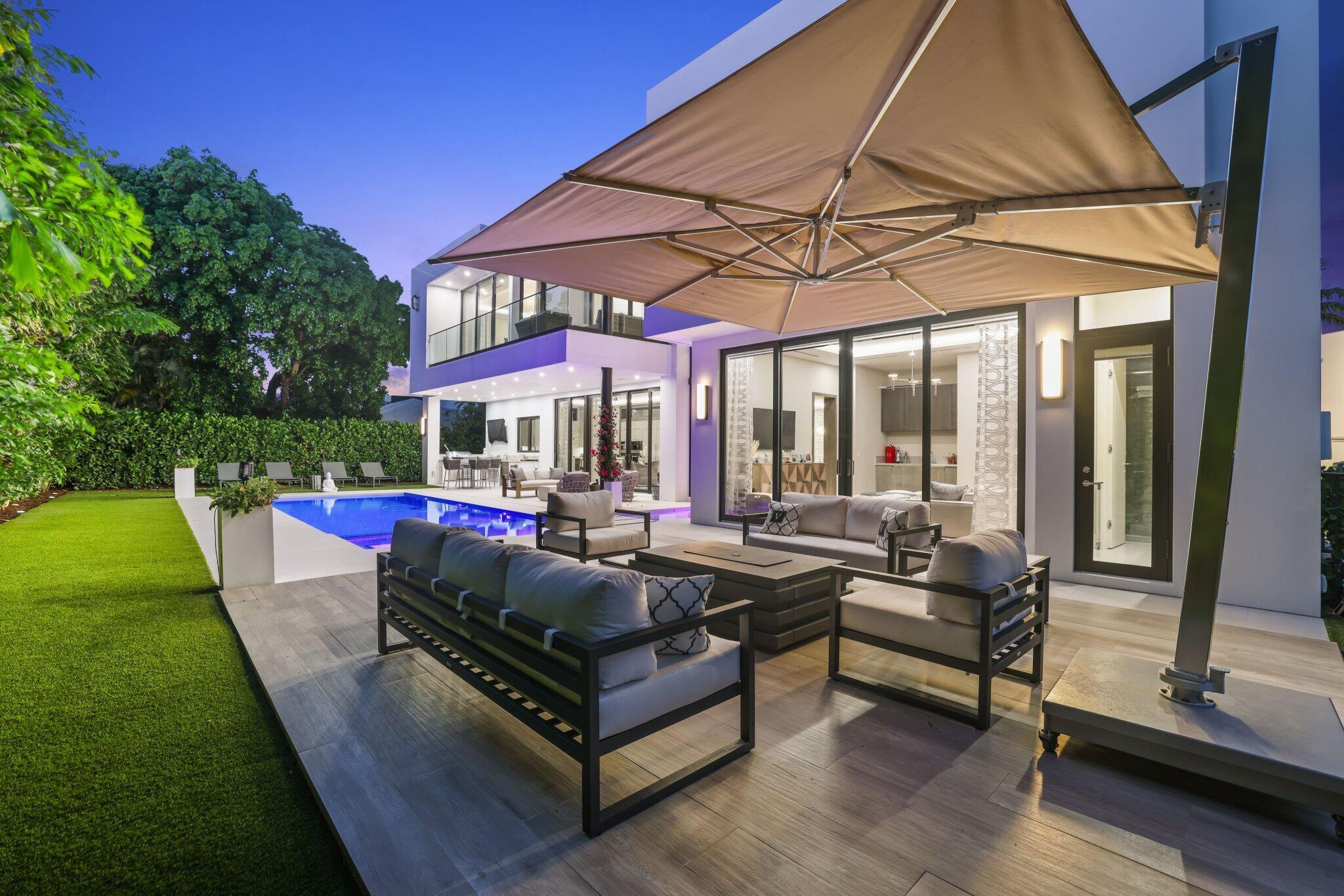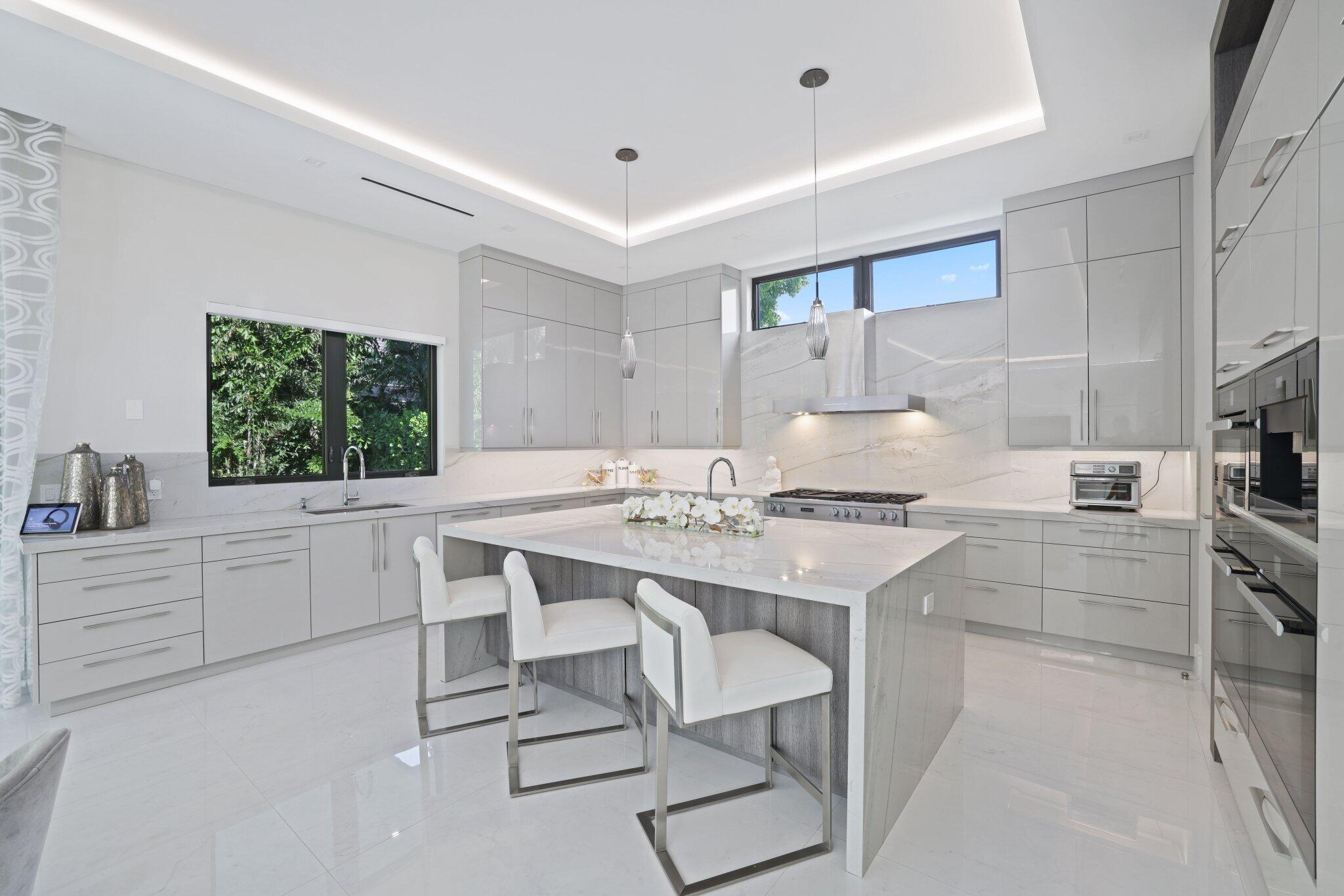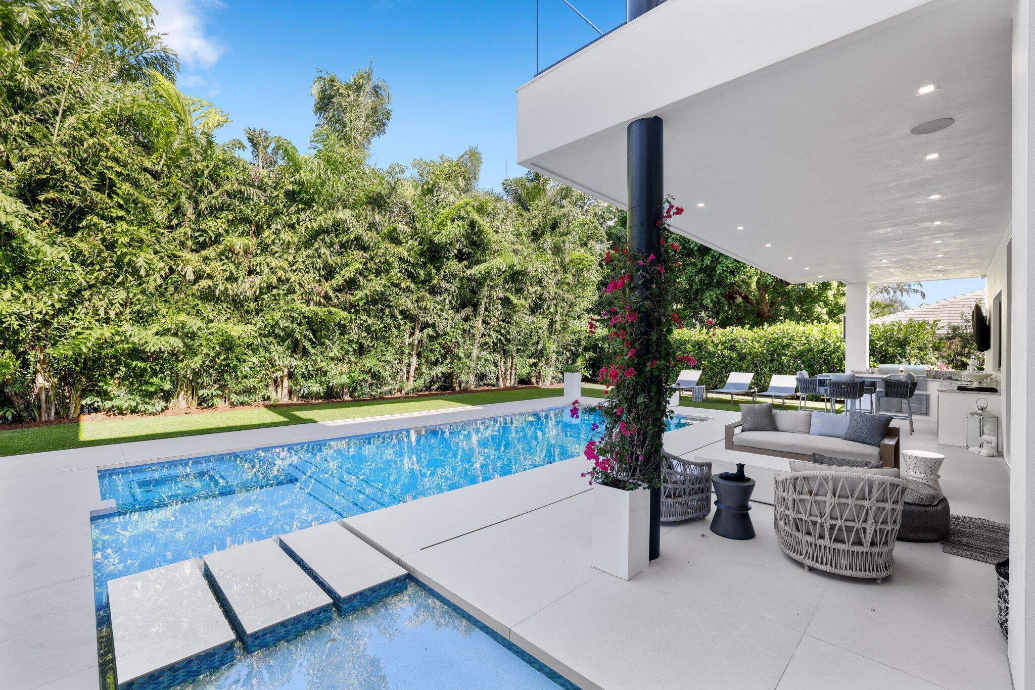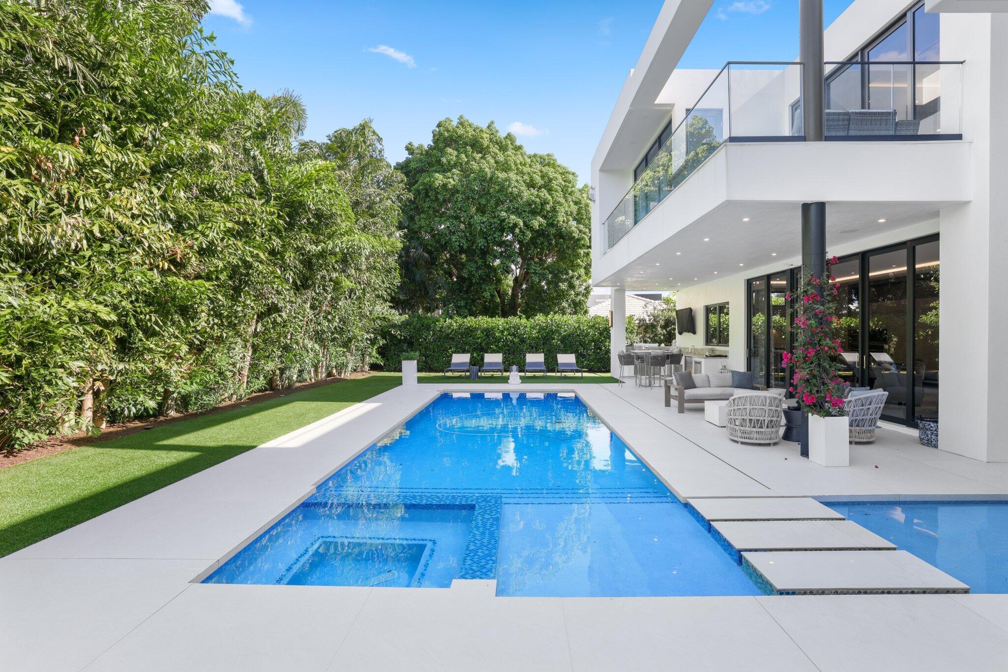 This Absolutely Gorgeous Modern Estate is offered fully furnished and features a 2 story Great room with stunning walls of glass, a gas fireplace, Formal Dining room w/Glass wine closet, Custom Kitchen w/Double thick edge Quartzite counter tops, Miele appliances, Custom Cabinets, large pantry, Carrara European imported 48 x 48 porcelain Tile. There is one ensuite bedroom downstairs as well as a club room off the pool w/ a Quartz Bar, cabana bath and closet. Upstairs is a great Loft area w/ a Custom Lacquer and Quartz Bar, An Exquisite Master with 2 large closets, morning bar, balcony and an incredible Master bath All the bedrooms are oversized. 2 laundry rooms, 3+golf cart garage & Elevator. The Private Backyard is huge w/ a beautiful pool, outdoor Loggia w/ Summer Kitchen.
