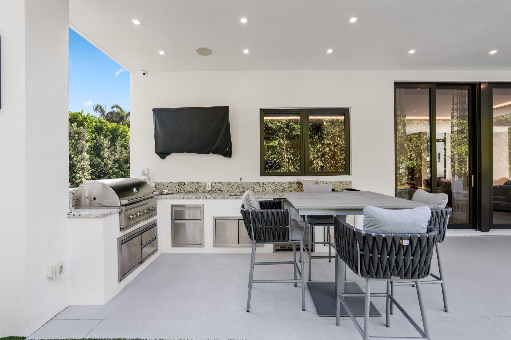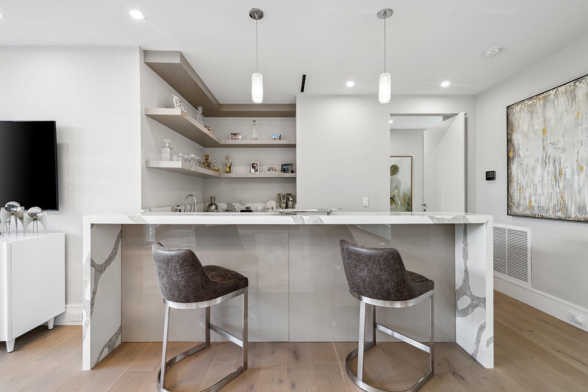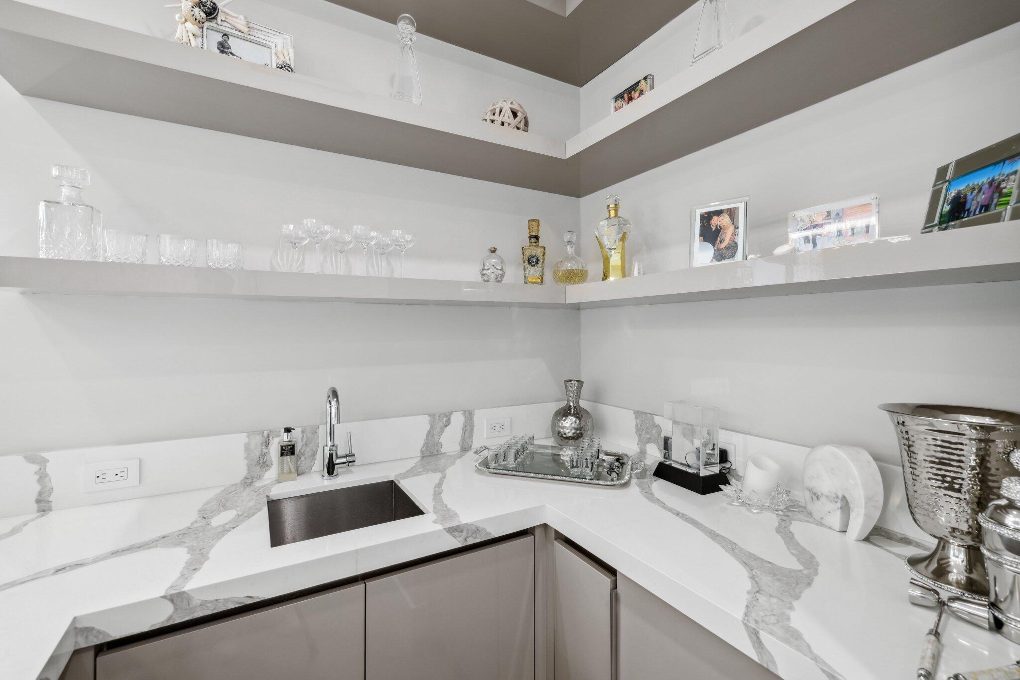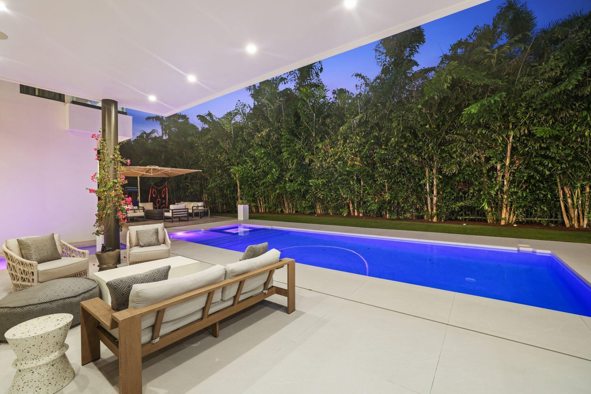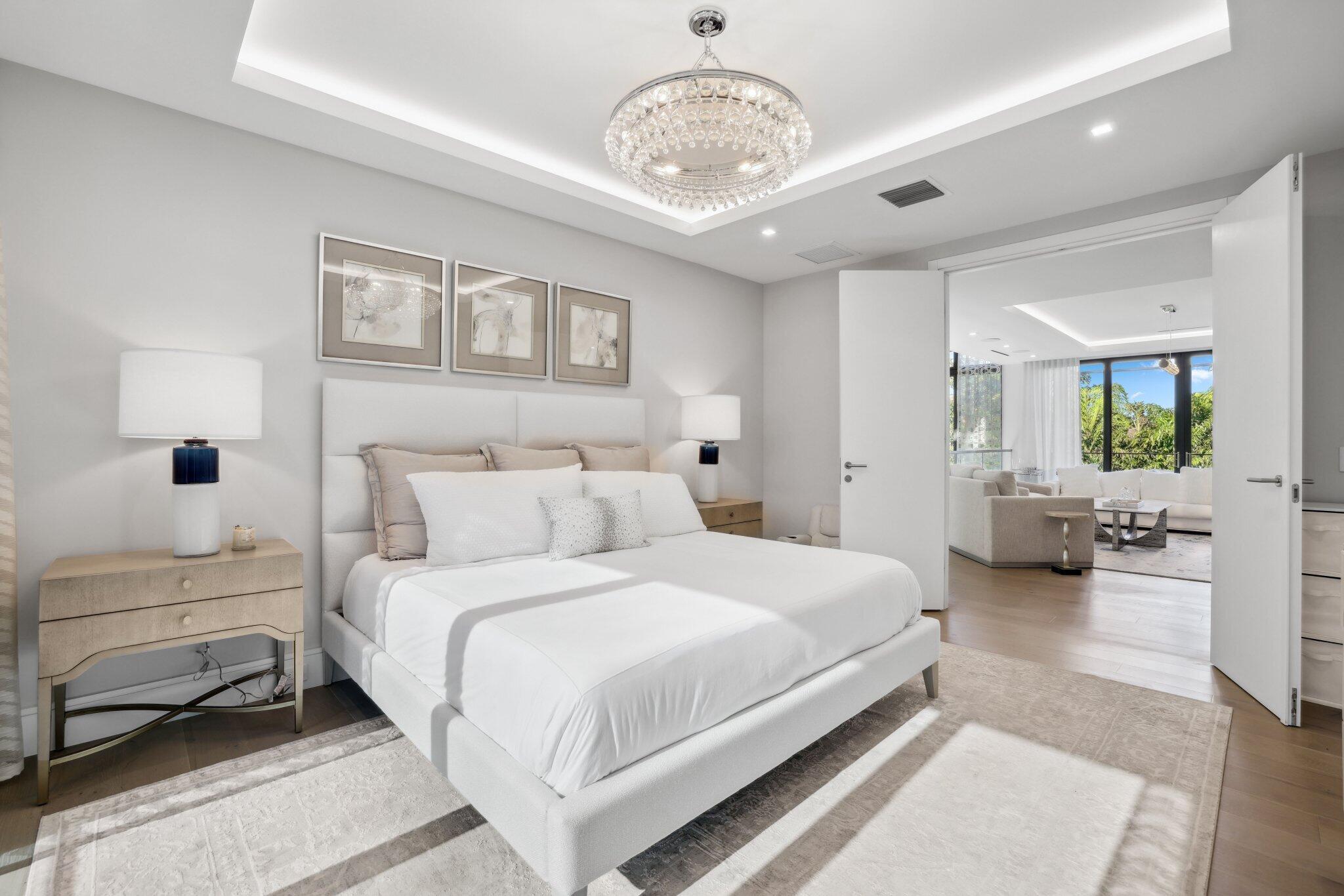 This Absolutely Gorgeous Modern Estate is offered fully furnished and features a 2 story Great room with stunning walls of glass, a gas fireplace, Formal Dining room w/Glass wine closet, Custom Kitchen w/Double thick edge Quartzite counter tops, Miele appliances, Custom Cabinets, large pantry, Carrara European imported 48 x 48 porcelain Tile. There is one ensuite bedroom downstairs as well as a club room off the pool w/ a Quartz Bar, cabana bath and closet. Upstairs is a great Loft area w/ a Custom Lacquer and Quartz Bar, An Exquisite Master with 2 large closets, morning bar, balcony and an incredible Master bath All the bedrooms are oversized. 2 laundry rooms, 3+golf cart garage & Elevator. The Private Backyard is huge w/ a beautiful pool, outdoor Loggia w/ Summer Kitchen.