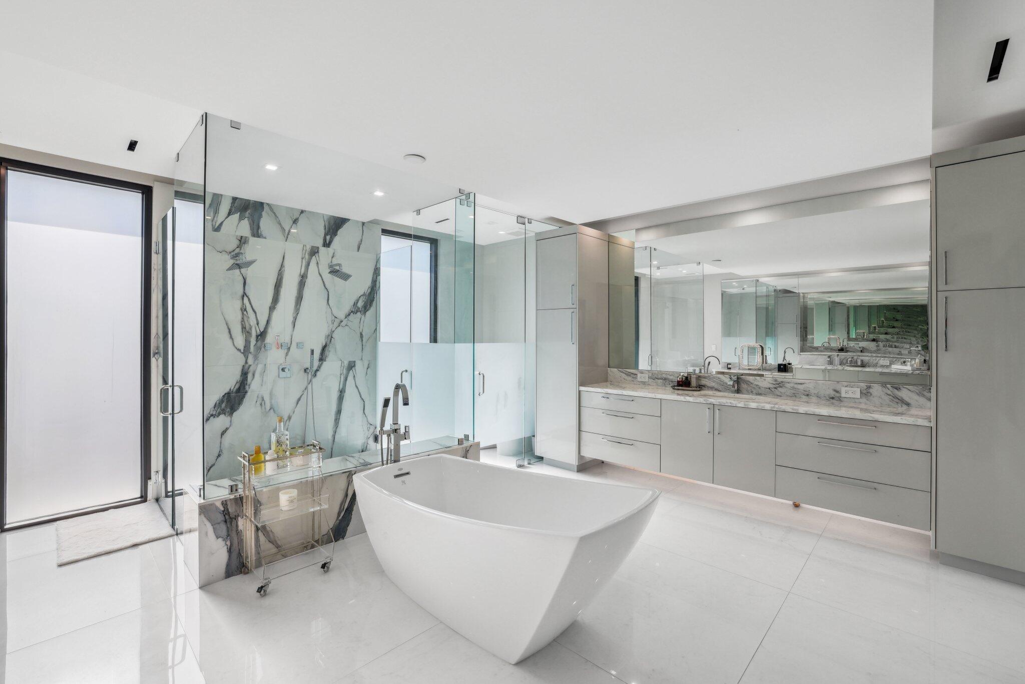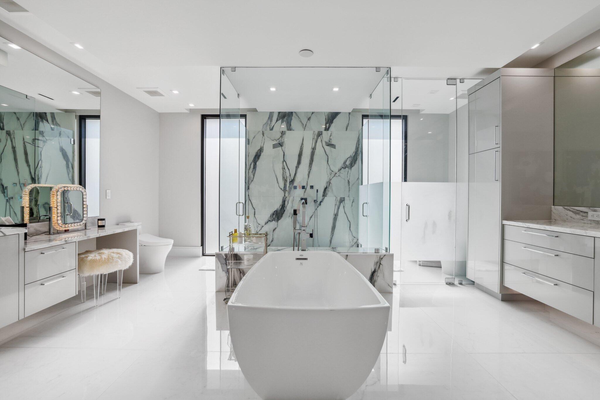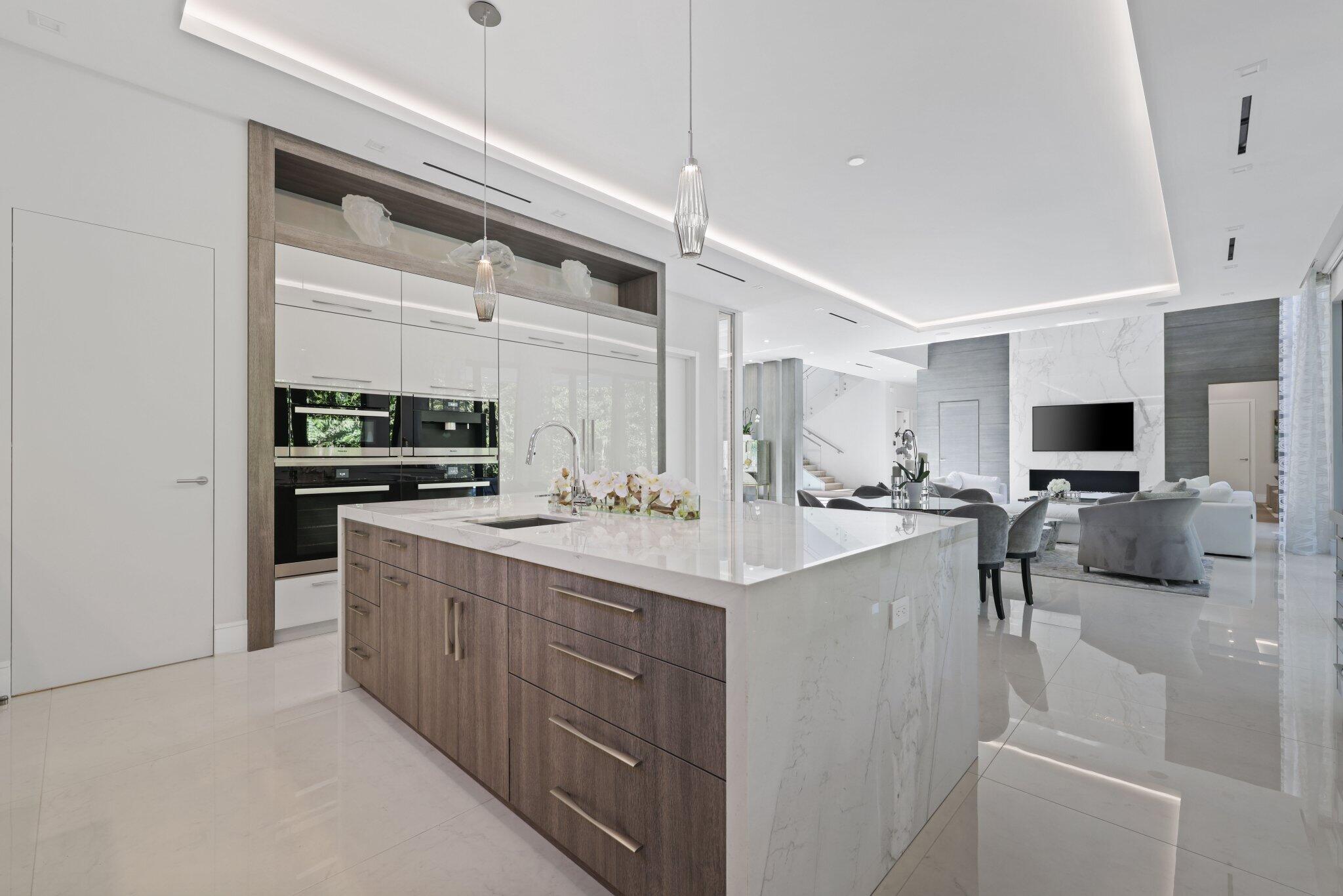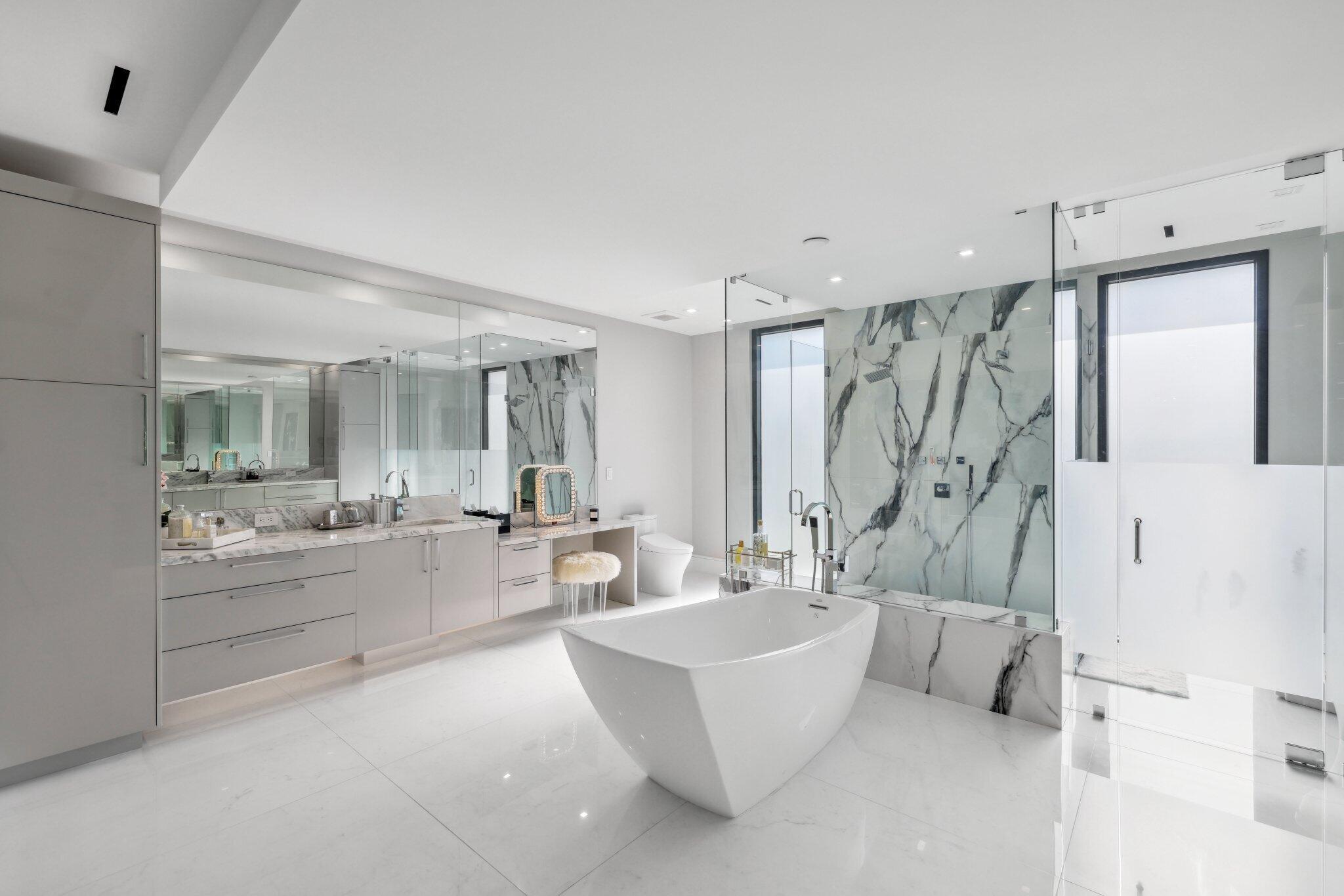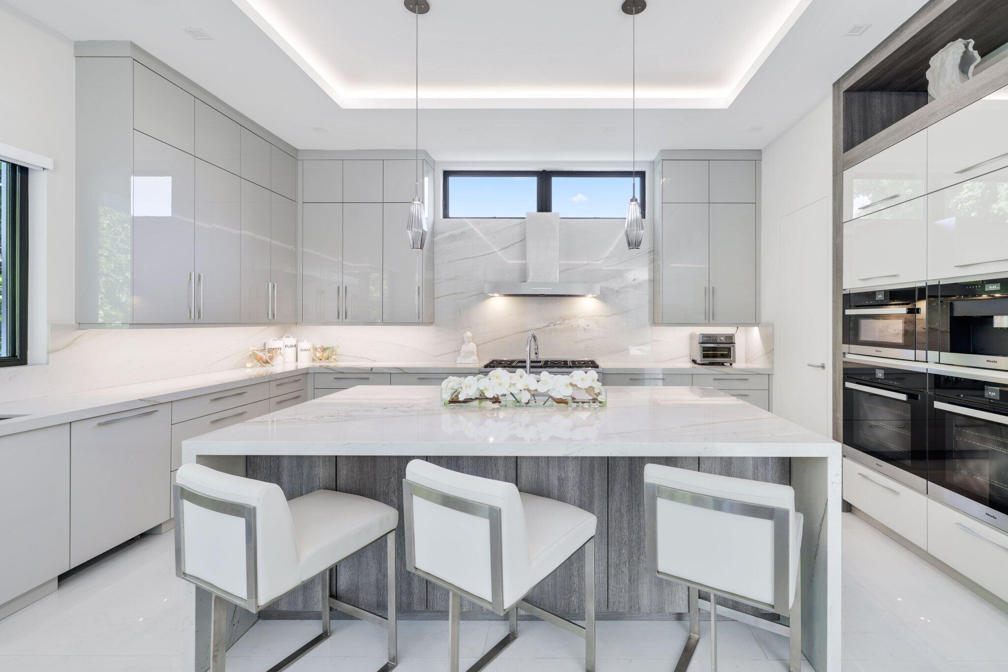 This Absolutely Gorgeous Modern Estate is offered fully furnished and features a 2 story Great room with stunning walls of glass, a gas fireplace, Formal Dining room w/Glass wine closet, Custom Kitchen w/Double thick edge Quartzite counter tops, Miele appliances, Custom Cabinets, large pantry, Carrara European imported 48 x 48 porcelain Tile. There is one ensuite bedroom downstairs as well as a club room off the pool w/ a Quartz Bar, cabana bath and closet. Upstairs is a great Loft area w/ a Custom Lacquer and Quartz Bar, An Exquisite Master with 2 large closets, morning bar, balcony and an incredible Master bath All the bedrooms are oversized. 2 laundry rooms, 3+golf cart garage & Elevator. The Private Backyard is huge w/ a beautiful pool, outdoor Loggia w/ Summer Kitchen.