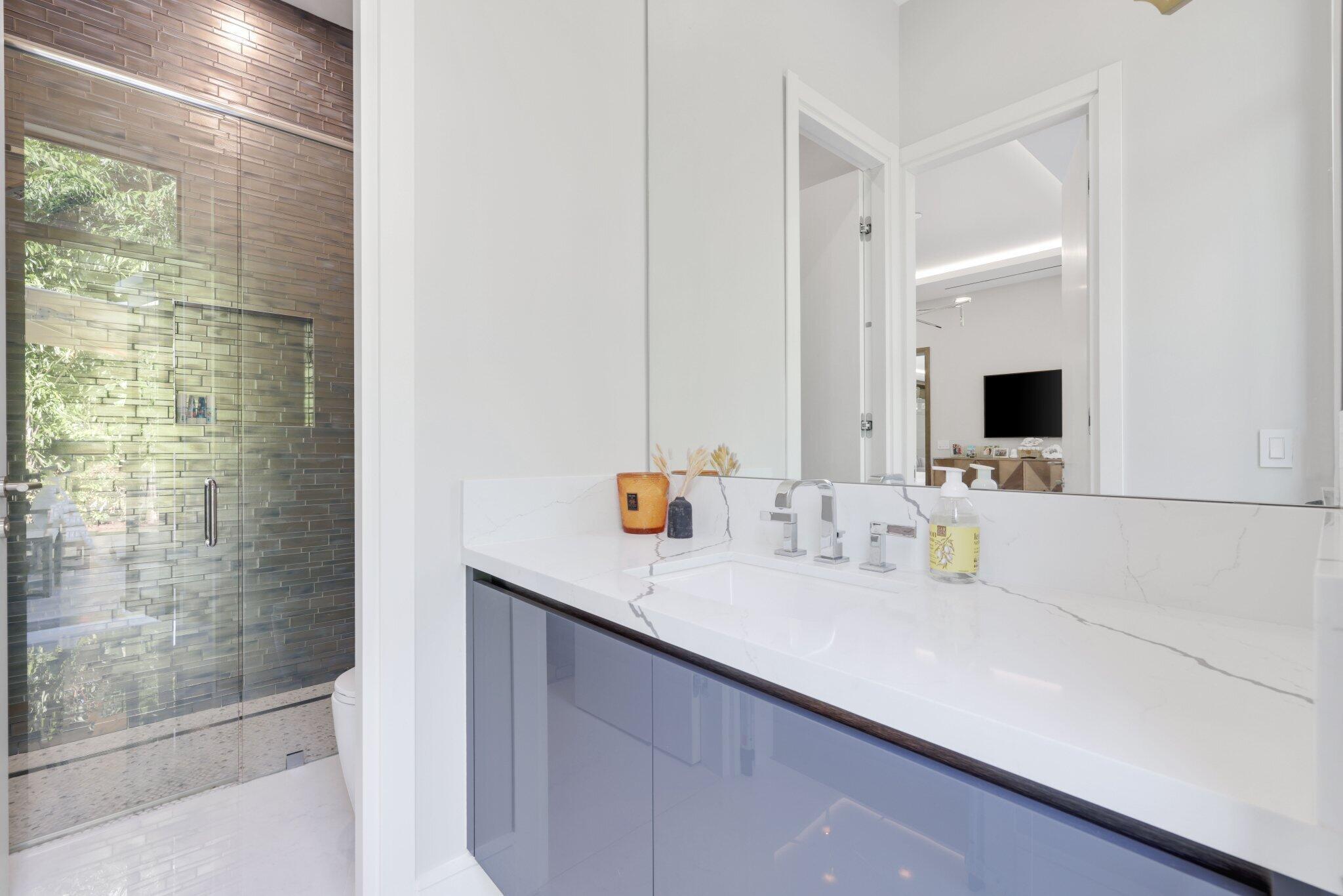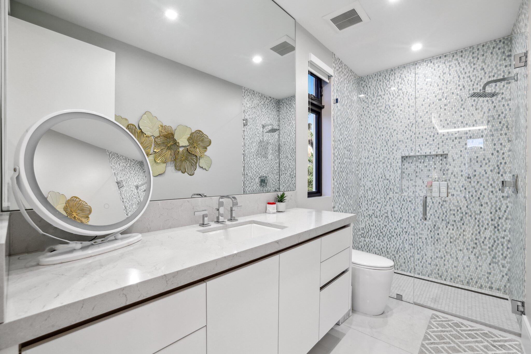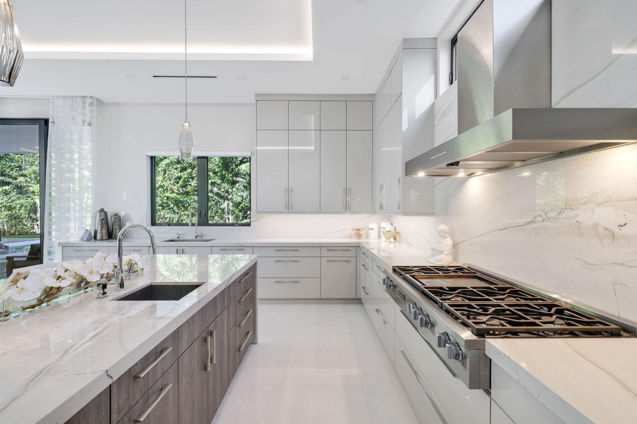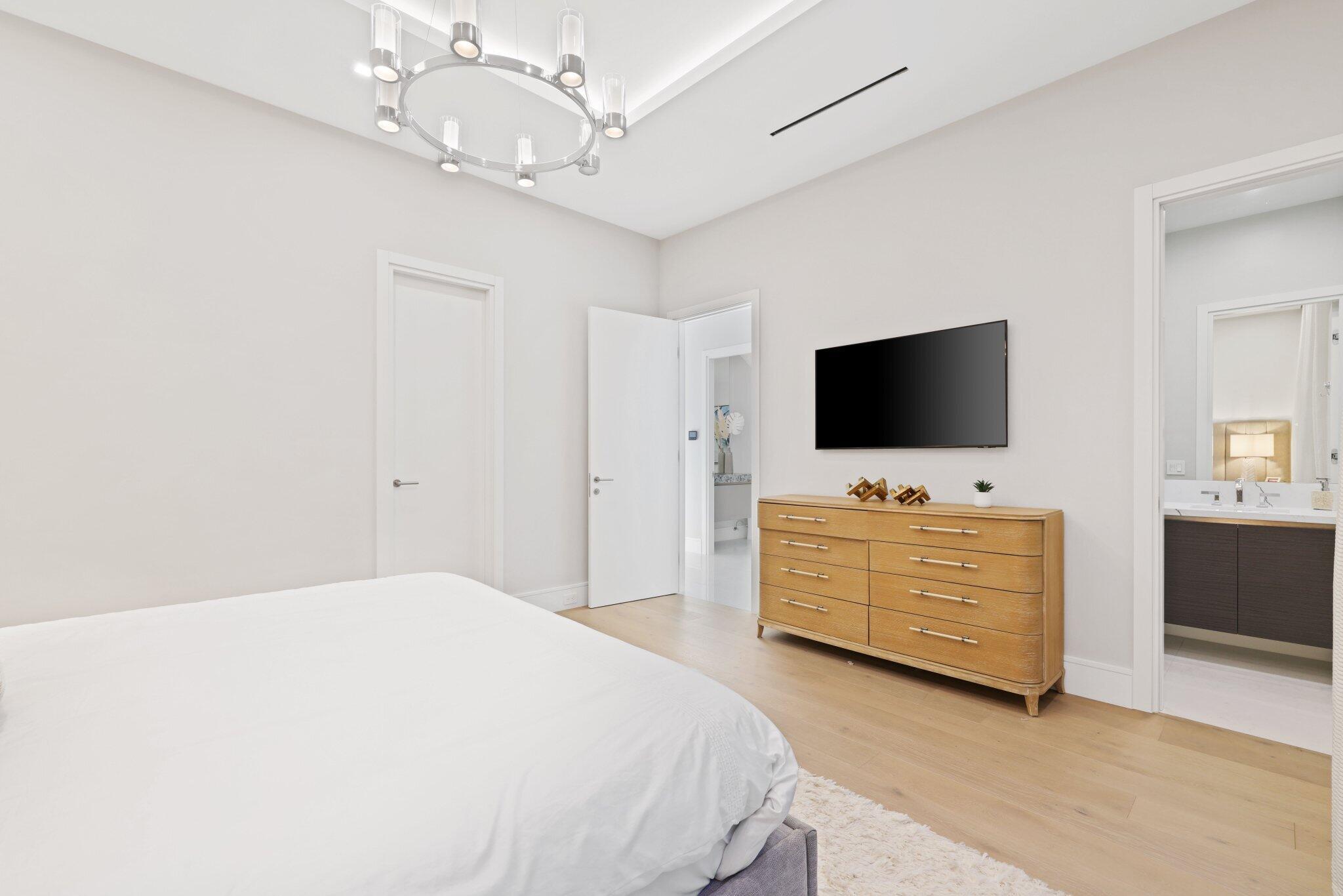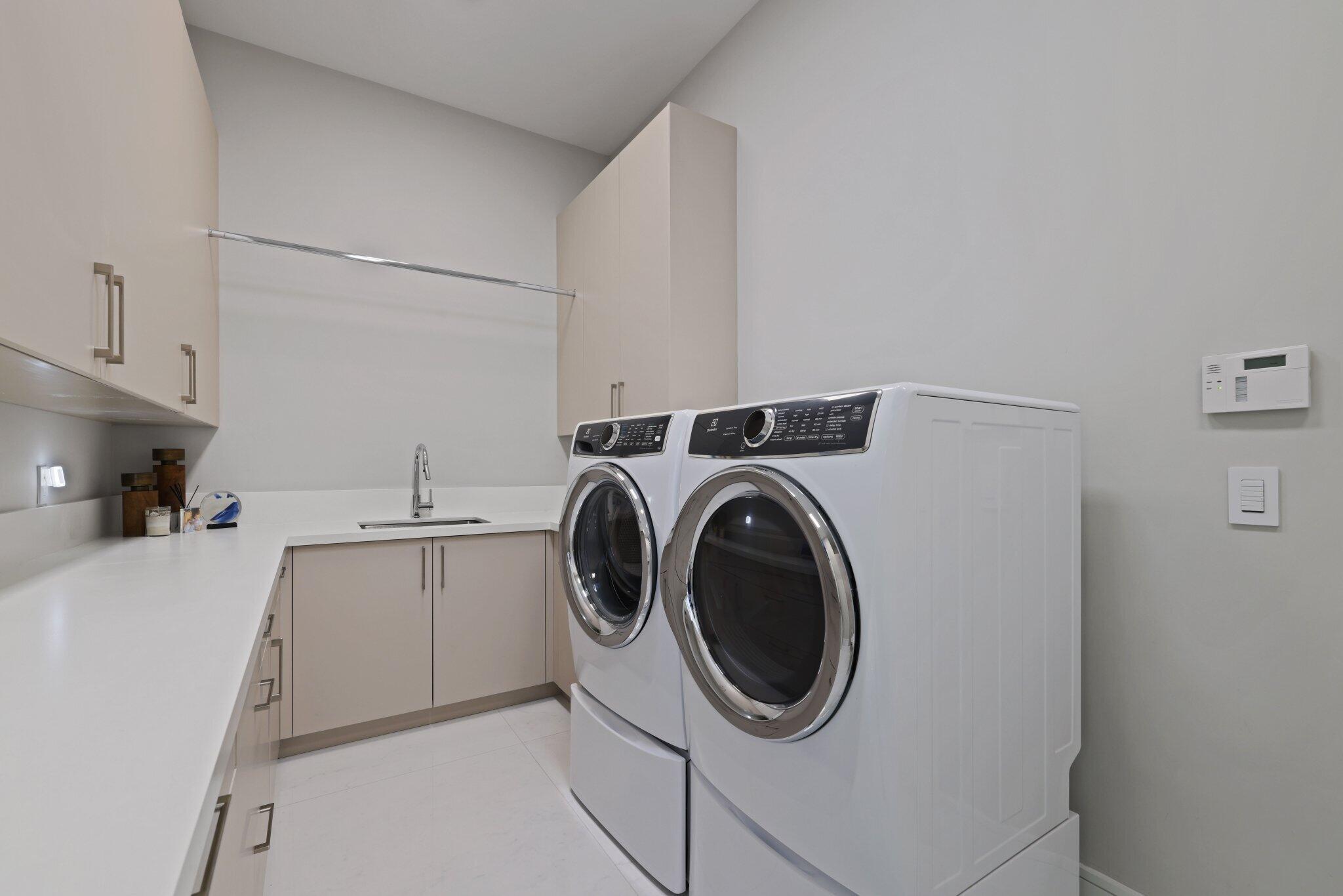 This Absolutely Gorgeous Modern Estate is offered fully furnished and features a 2 story Great room with stunning walls of glass, a gas fireplace, Formal Dining room w/Glass wine closet, Custom Kitchen w/Double thick edge Quartzite counter tops, Miele appliances, Custom Cabinets, large pantry, Carrara European imported 48 x 48 porcelain Tile. There is one ensuite bedroom downstairs as well as a club room off the pool w/ a Quartz Bar, cabana bath and closet. Upstairs is a great Loft area w/ a Custom Lacquer and Quartz Bar, An Exquisite Master with 2 large closets, morning bar, balcony and an incredible Master bath All the bedrooms are oversized. 2 laundry rooms, 3+golf cart garage & Elevator. The Private Backyard is huge w/ a beautiful pool, outdoor Loggia w/ Summer Kitchen.