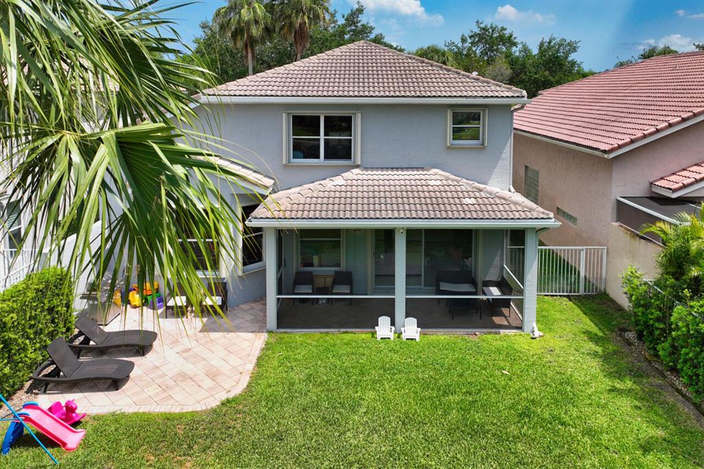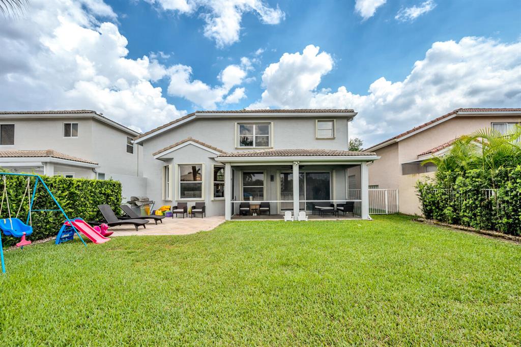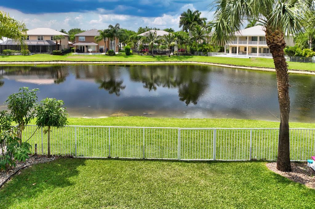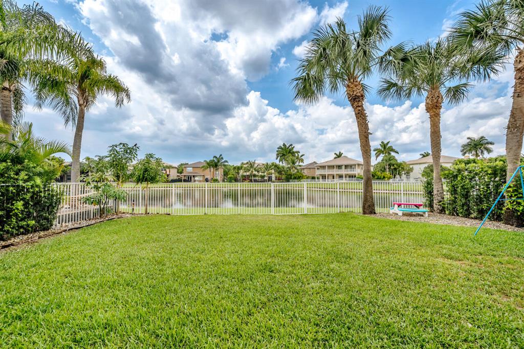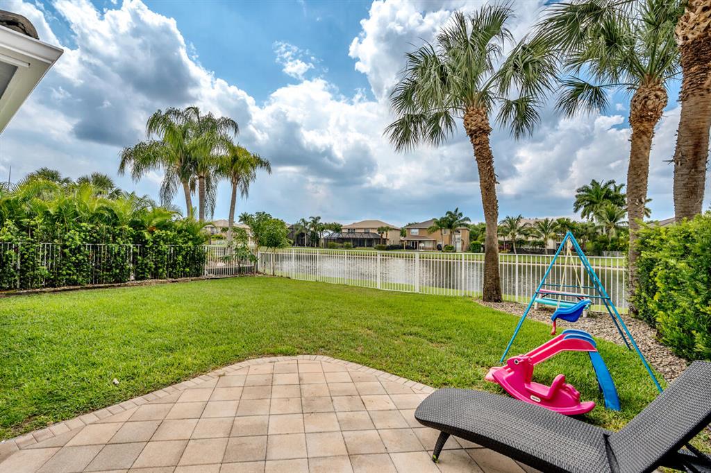 This is a beautiful & spacious 4 bed, 4 bath home located in gated Saturnia with wide lake & sunset views. One full bed & bath on 1st floor. The newly paved & extended driveway adds a touch of sophistication to the entrance. The home has newer accordion shutters for hurricane protection. The kitchen is a dream, featuring a newer stainless apps, 42” cabinets, granite countertops, large pantry, & a breakfast area overlooking the beautiful large lake. There is also a screened patio & a landscaped fenced yard for outdoor entertainment and relaxation. Upstairs are 3 bedrooms including large primary bedrm w/his & her baths! Saturnia is across the street from 2 A-Rated schools, just North of the nicest & largest park in Palm Beach with kids water park, golf, amphitheater, boating lake & more!