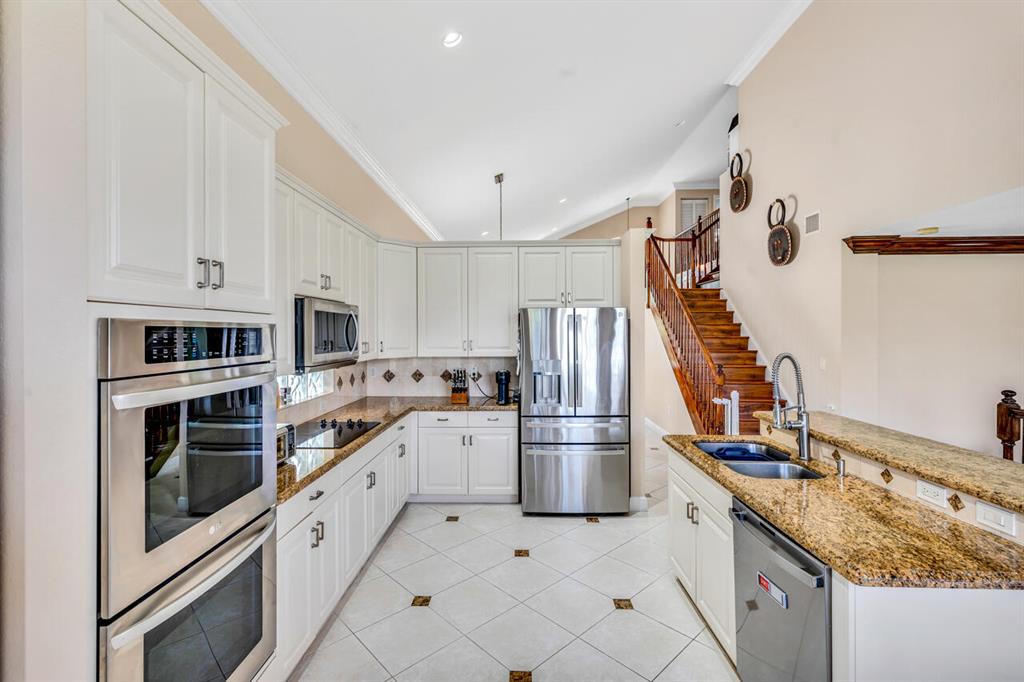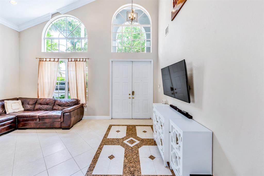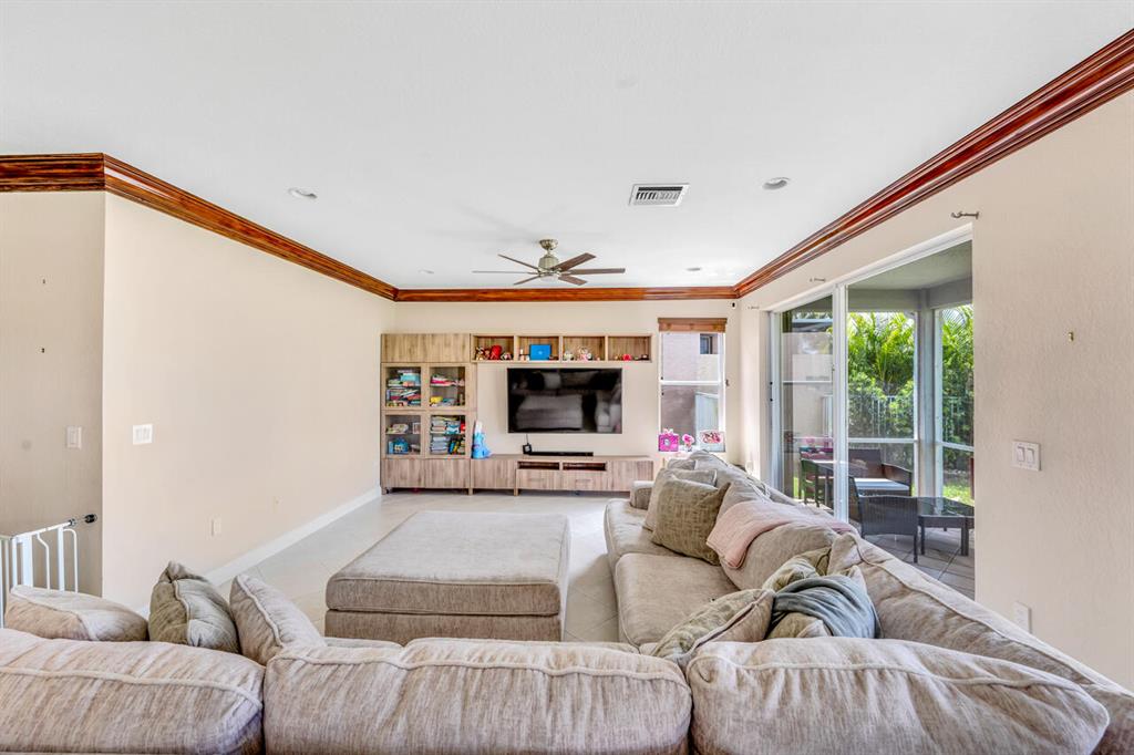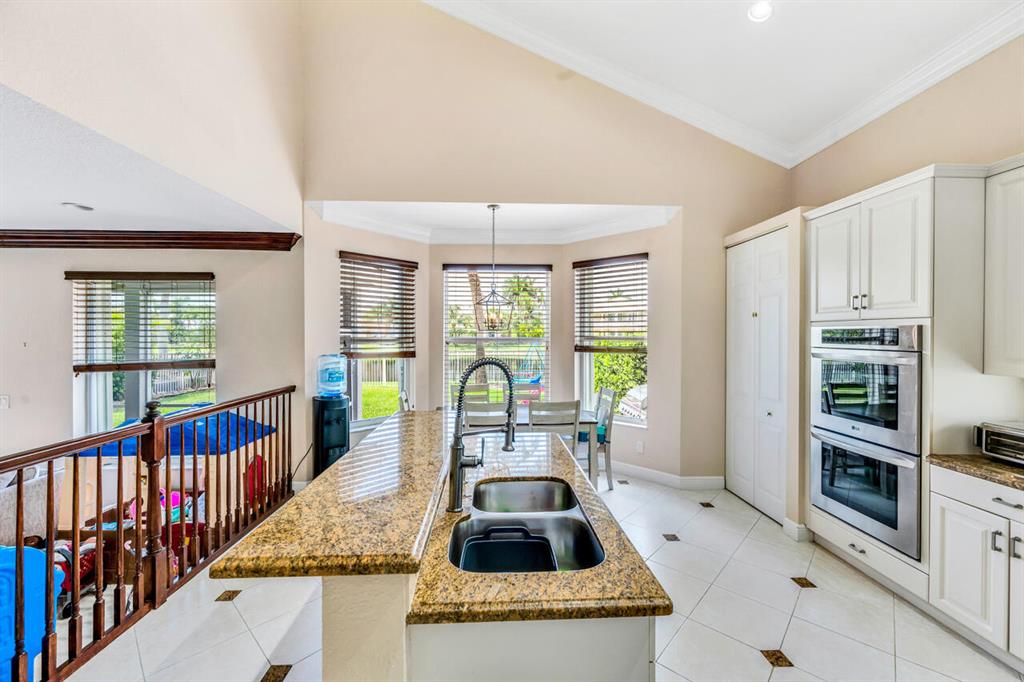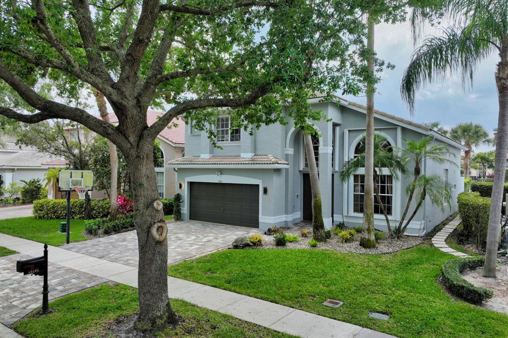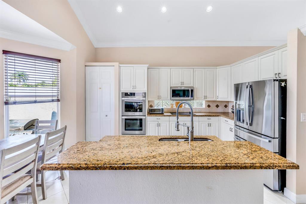 This is a beautiful & spacious 4 bed, 4 bath home located in gated Saturnia with wide lake & sunset views. One full bed & bath on 1st floor. The newly paved & extended driveway adds a touch of sophistication to the entrance. The home has newer accordion shutters for hurricane protection. The kitchen is a dream, featuring a newer stainless apps, 42” cabinets, granite countertops, large pantry, & a breakfast area overlooking the beautiful large lake. There is also a screened patio & a landscaped fenced yard for outdoor entertainment and relaxation. Upstairs are 3 bedrooms including large primary bedrm w/his & her baths! Saturnia is across the street from 2 A-Rated schools, just North of the nicest & largest park in Palm Beach with kids water park, golf, amphitheater, boating lake & more!